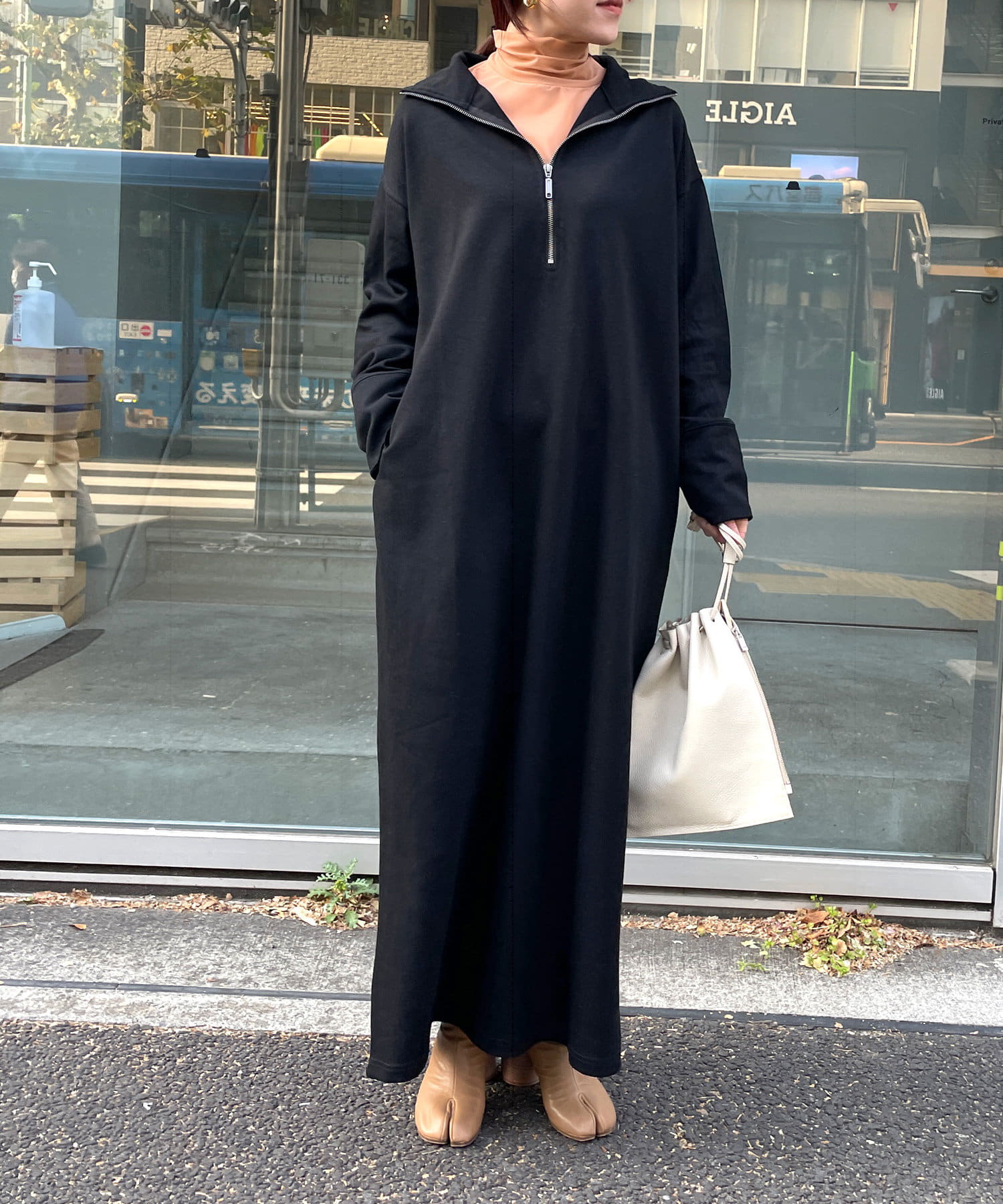 ・ハーフジップのデザインがポイントのワンピースです。