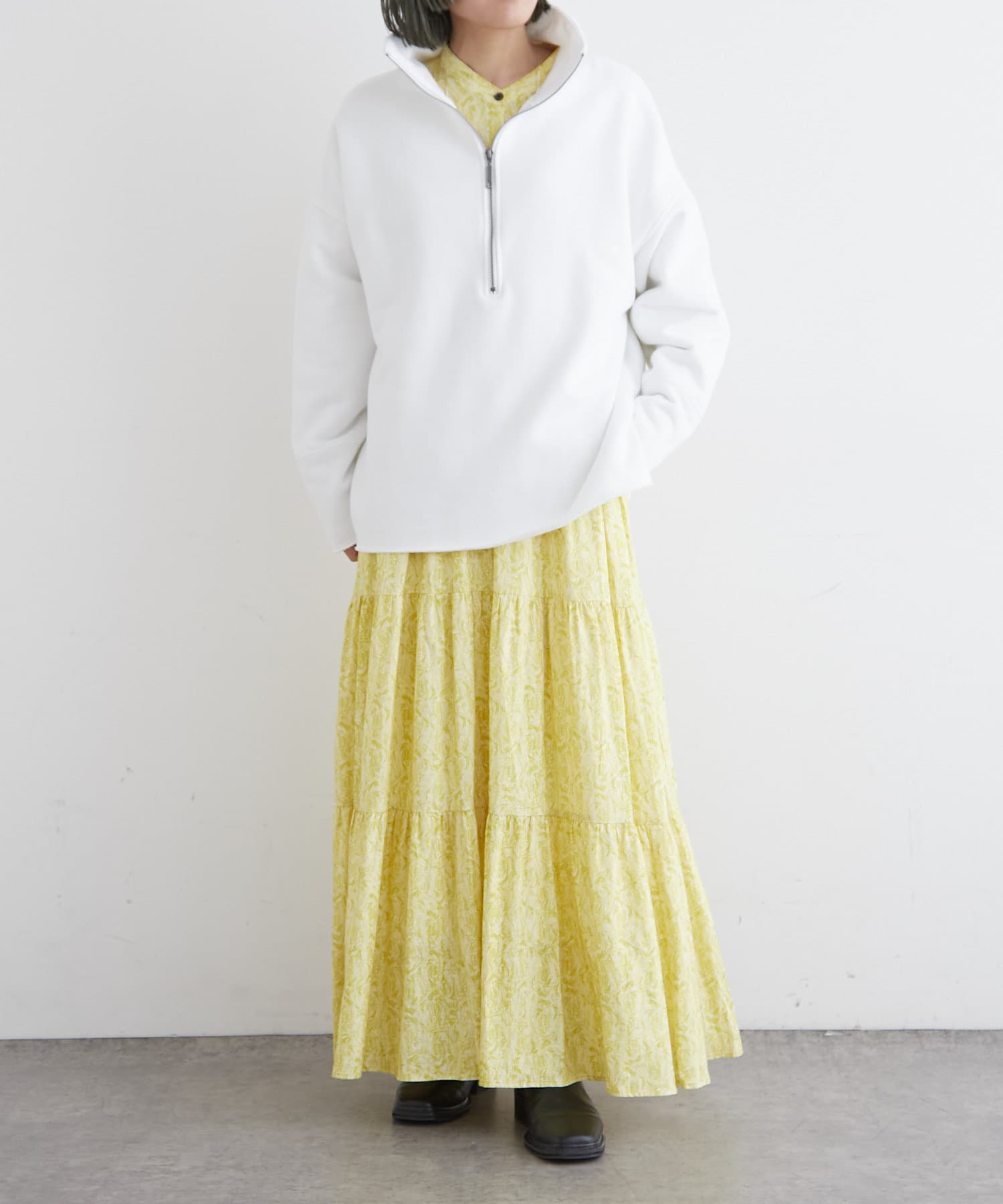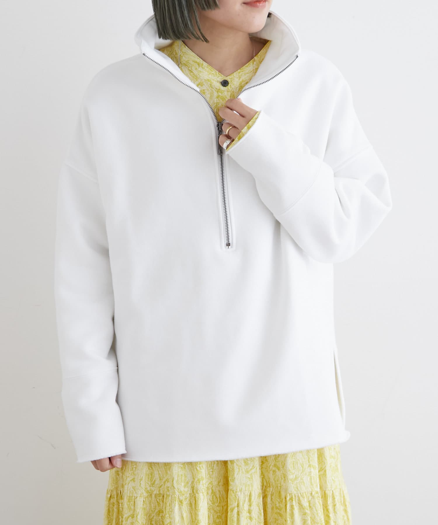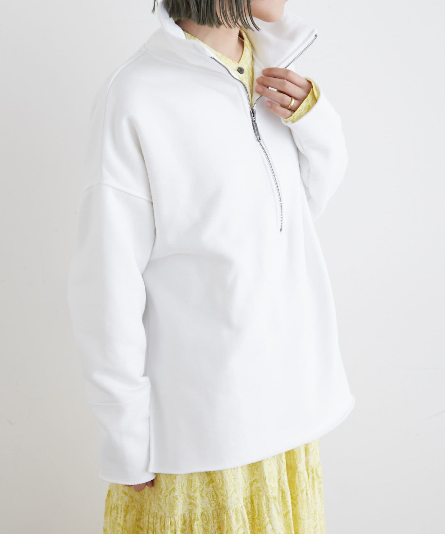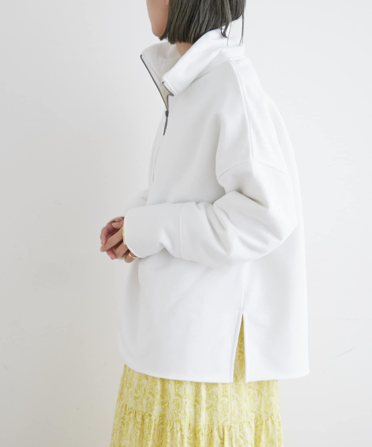 ・ニットやスウェットをレイヤードしたコーディネートや、ジャケットを合わせてキレイめな雰囲気でも着ていただけます。
