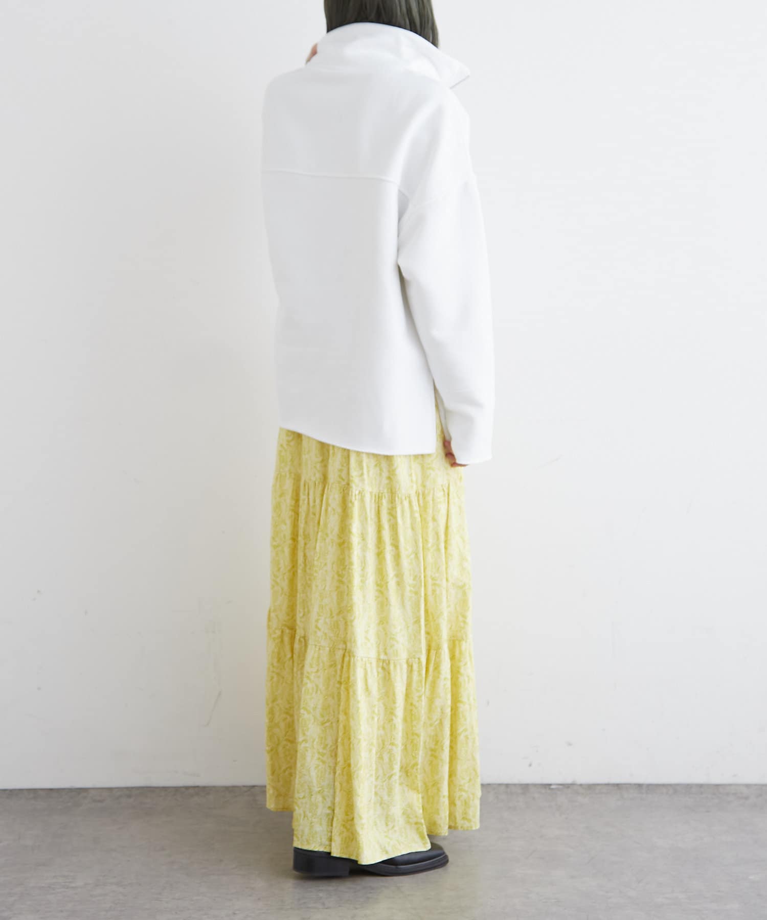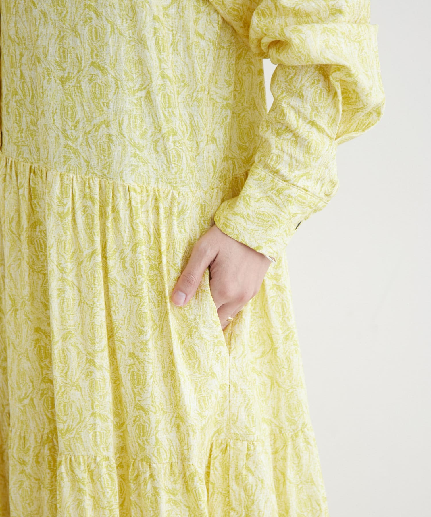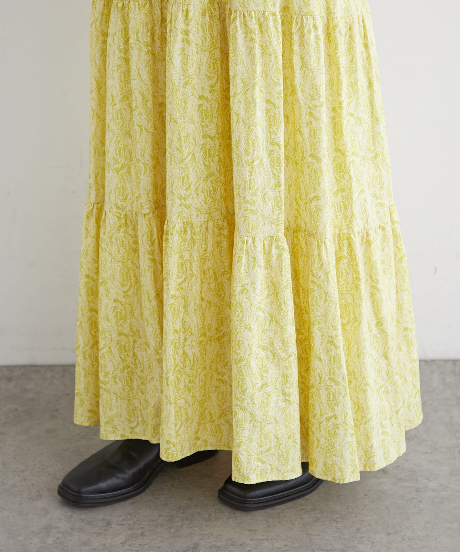 ・裾のティアードデザインが女性らしく一枚で華やかな印象になるアイテム。