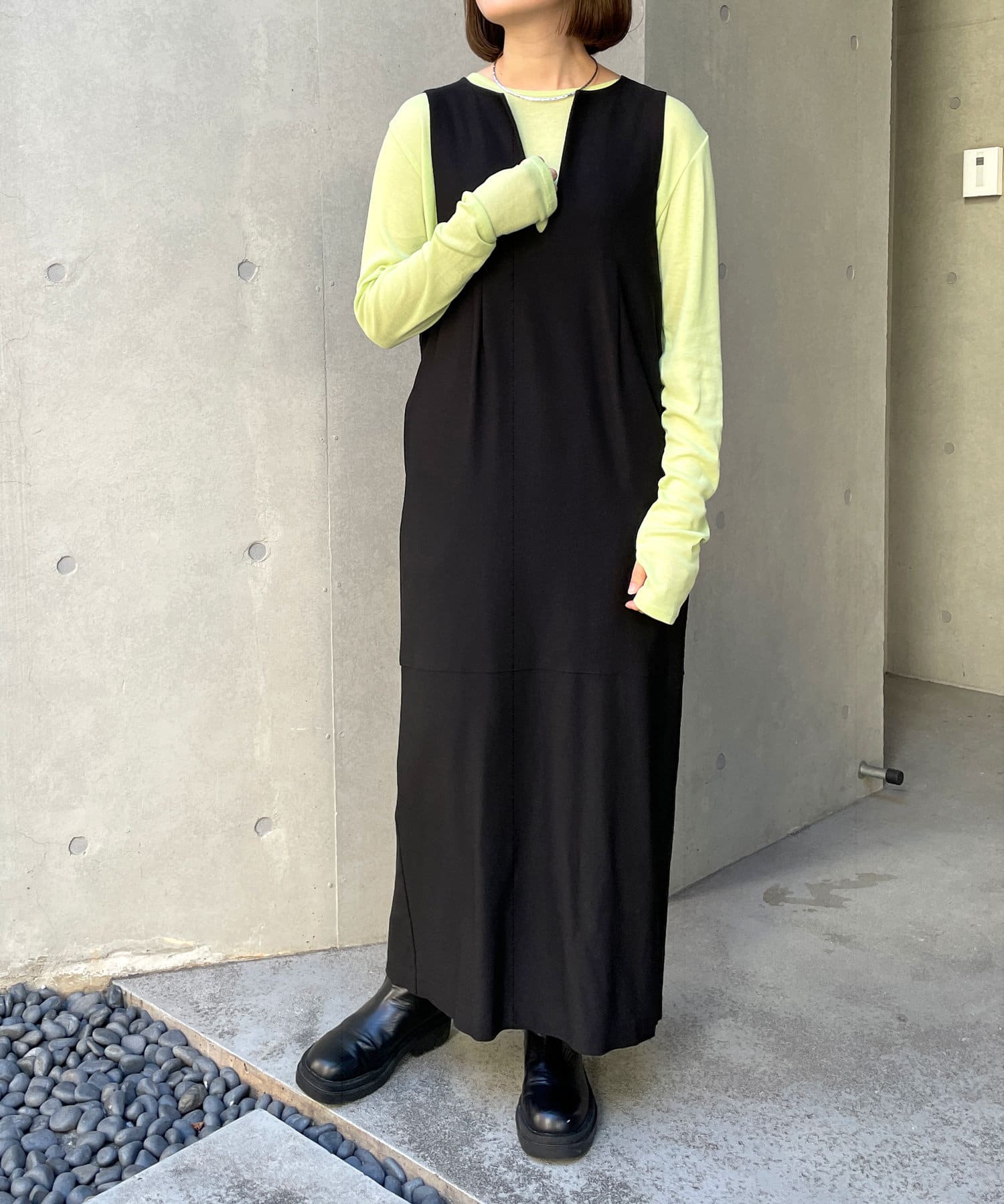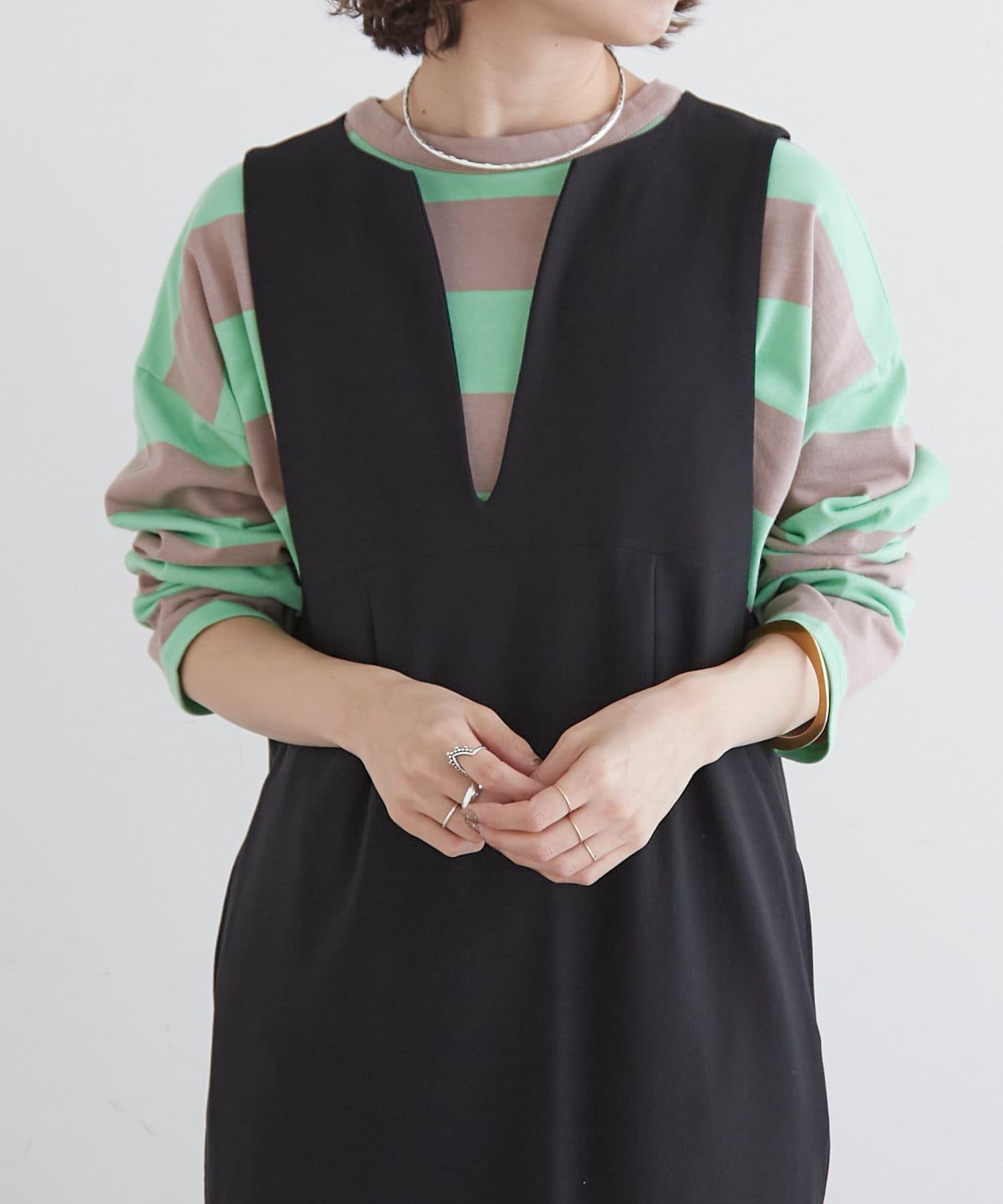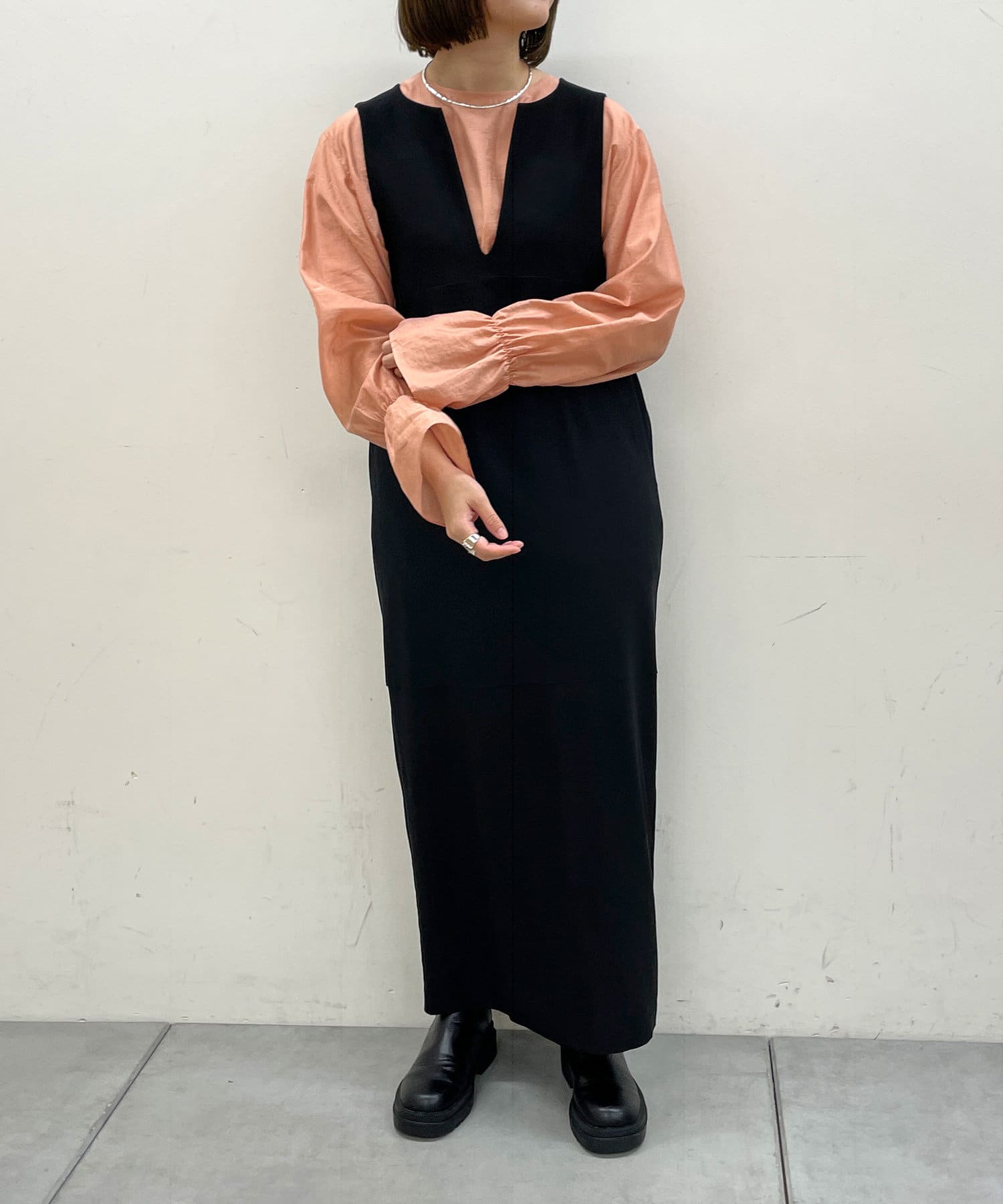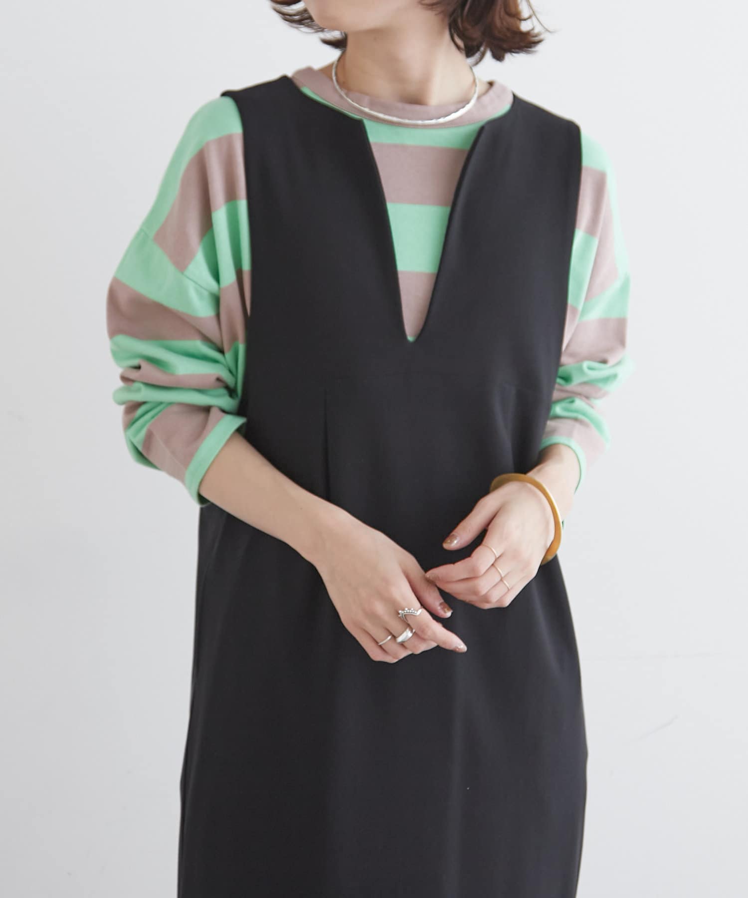 ・インナーにロンTや薄手のニットを合わせたり、幅広いアイテムと合わせていただける大活躍間違いなしのワンピースです。