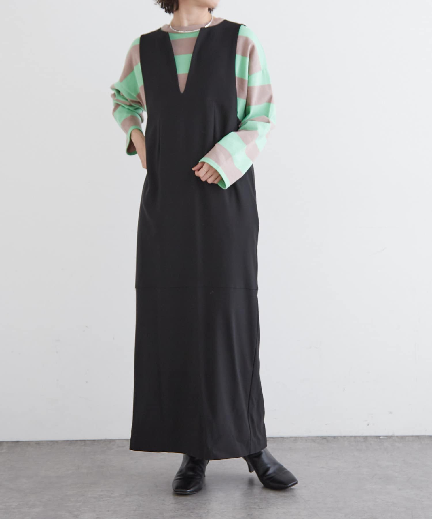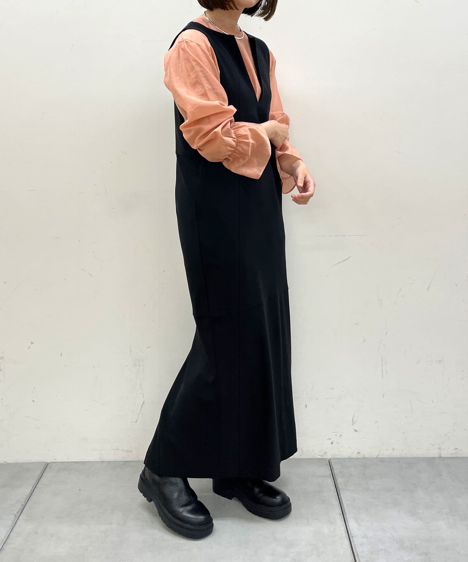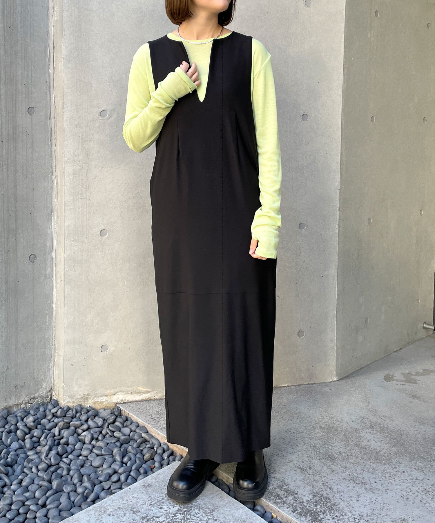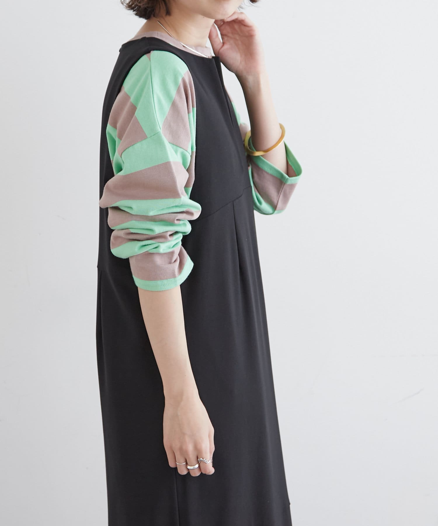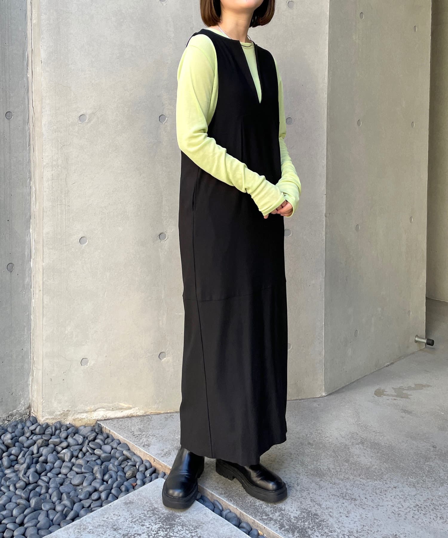 ・インナーにロンTや薄手のニットを合わせたり、幅広いアイテムと合わせていただける大活躍間違いなしのワンピースです。