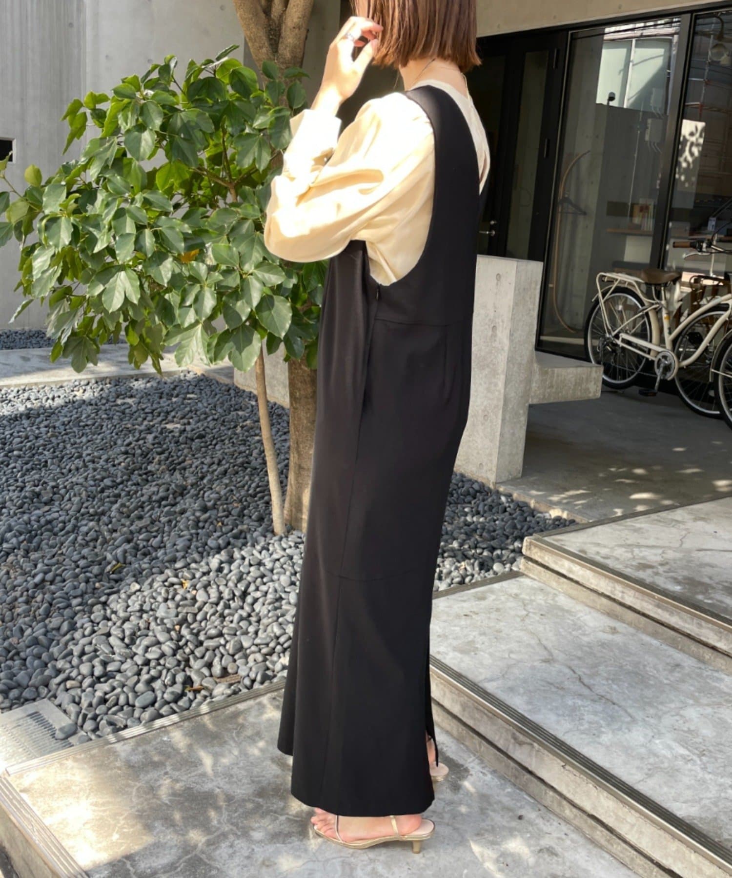 TOP > Omekashi > レディース > ワンピース > ジャンパースカート > 【オケージョンにも対応◎】ストレッチナロージャンパースカート
