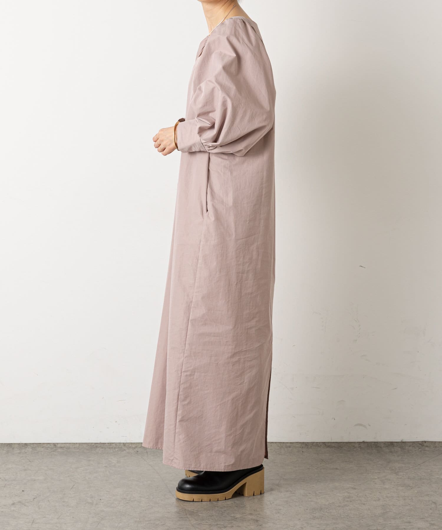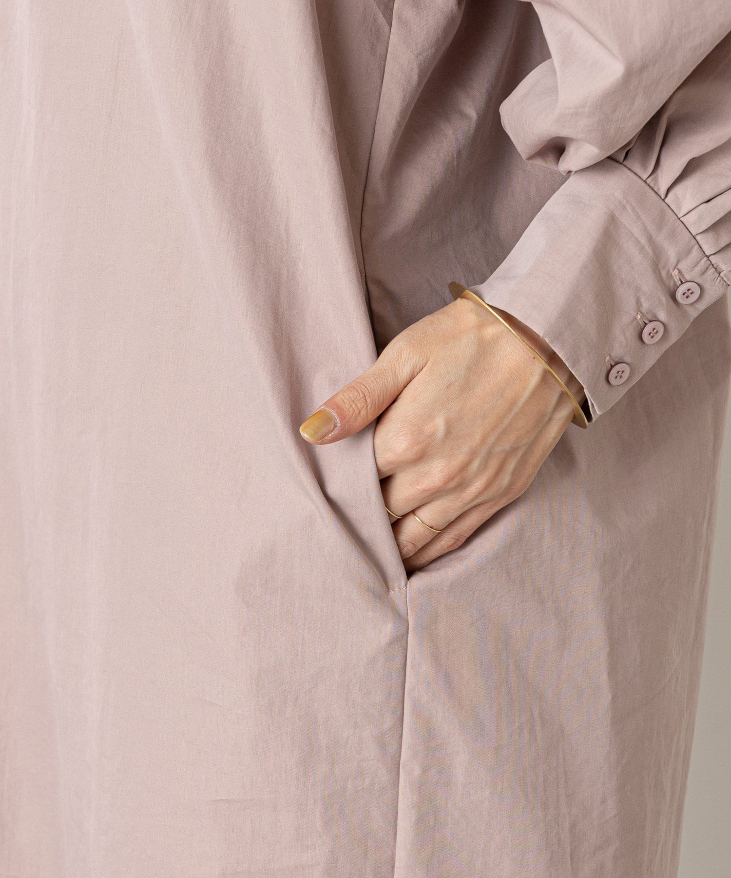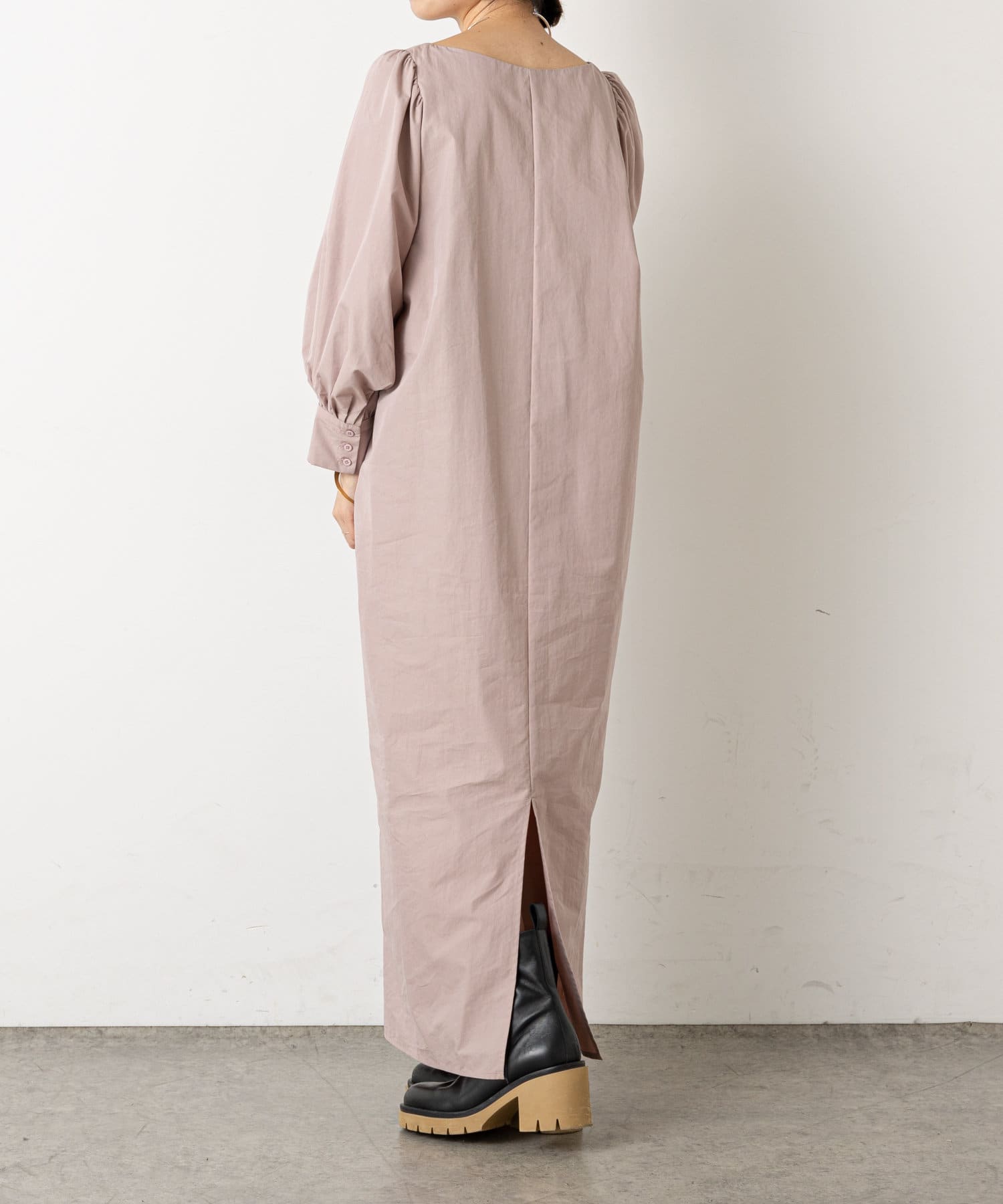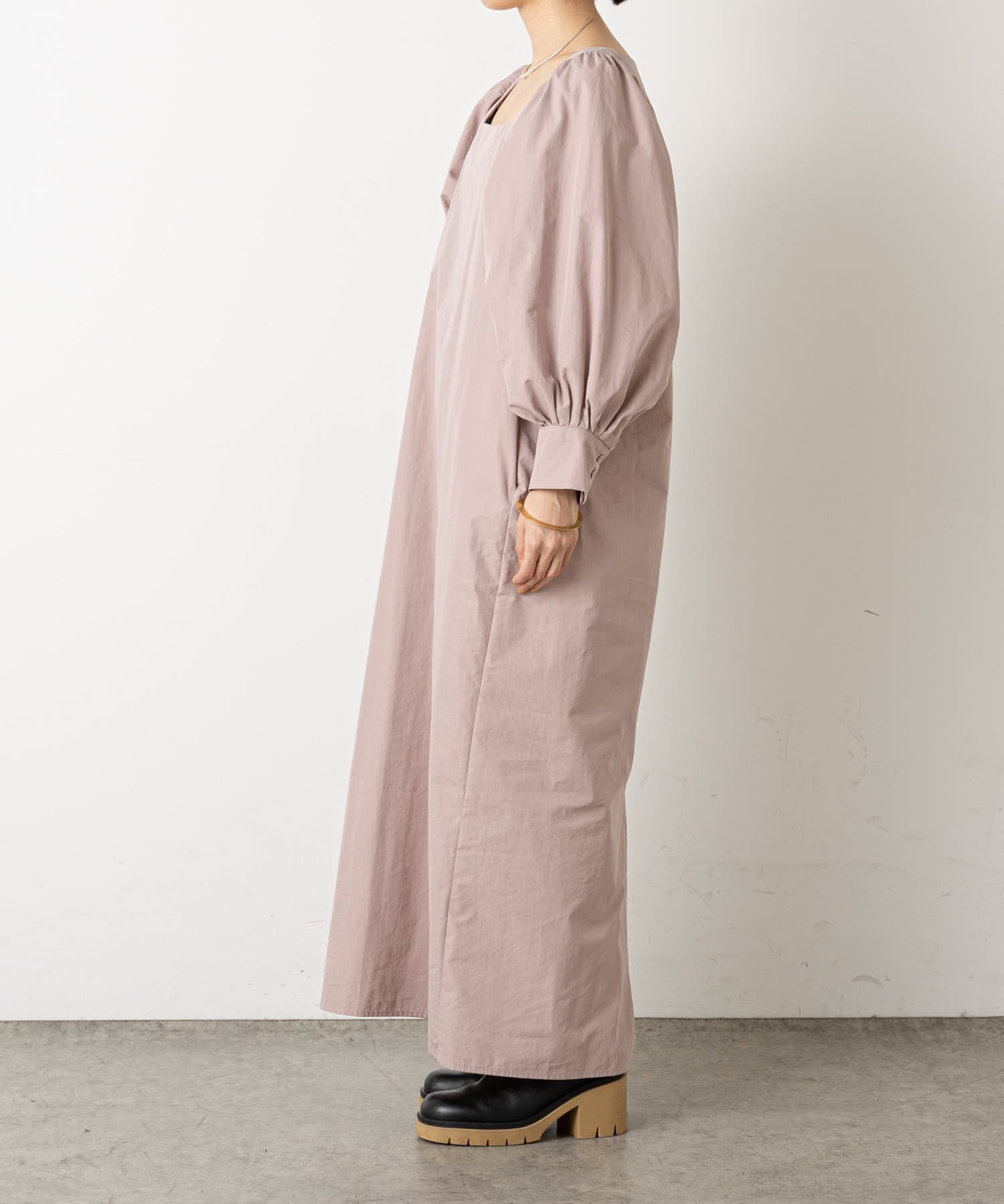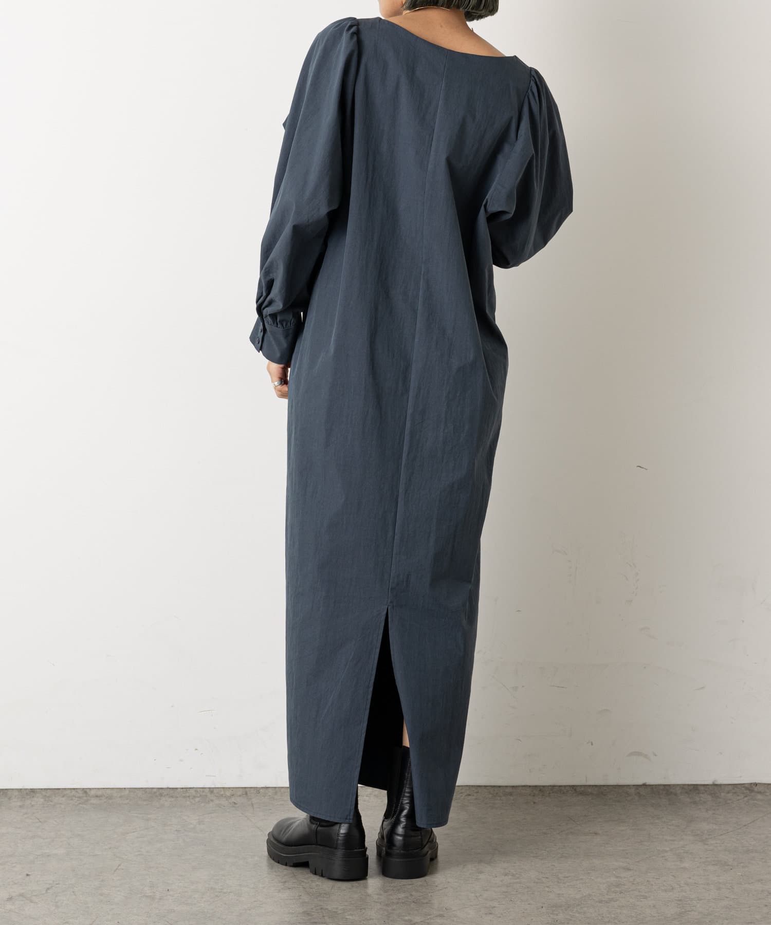 ・袖のタック+ギャザーのボリューム感と肩のバランスに拘り、身体を華奢に見せてくれて、さりげなく体型カバーもしてくれます。