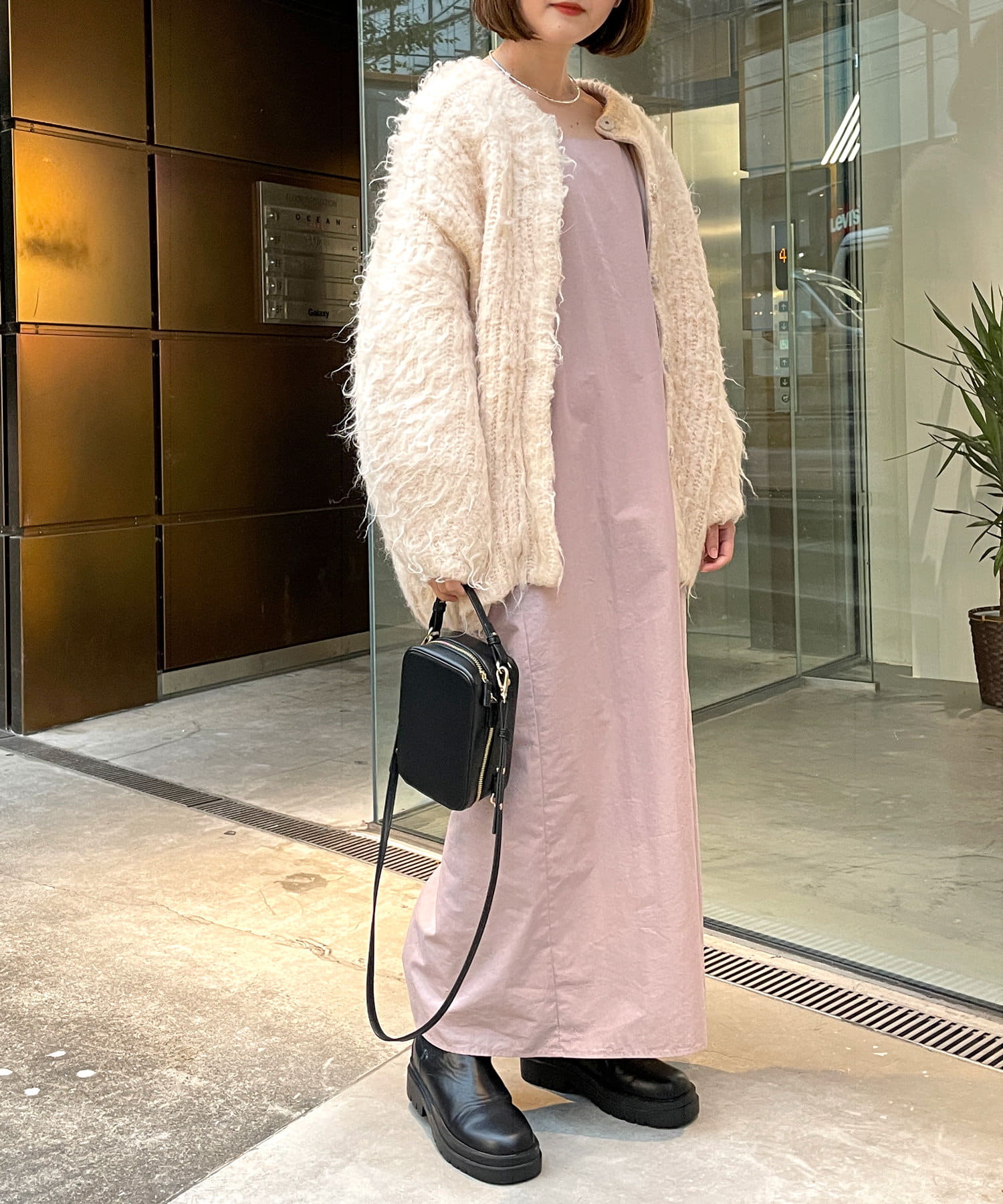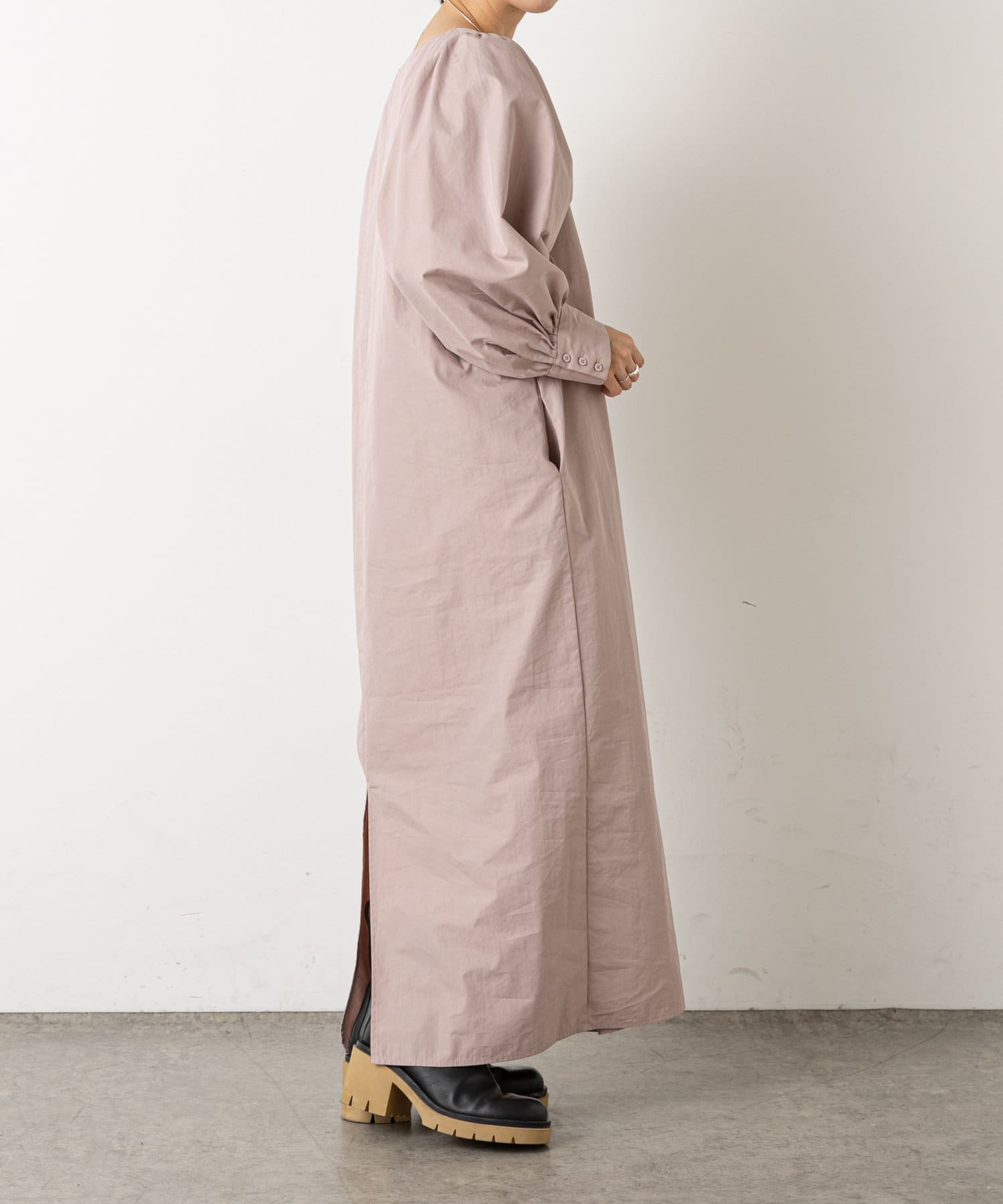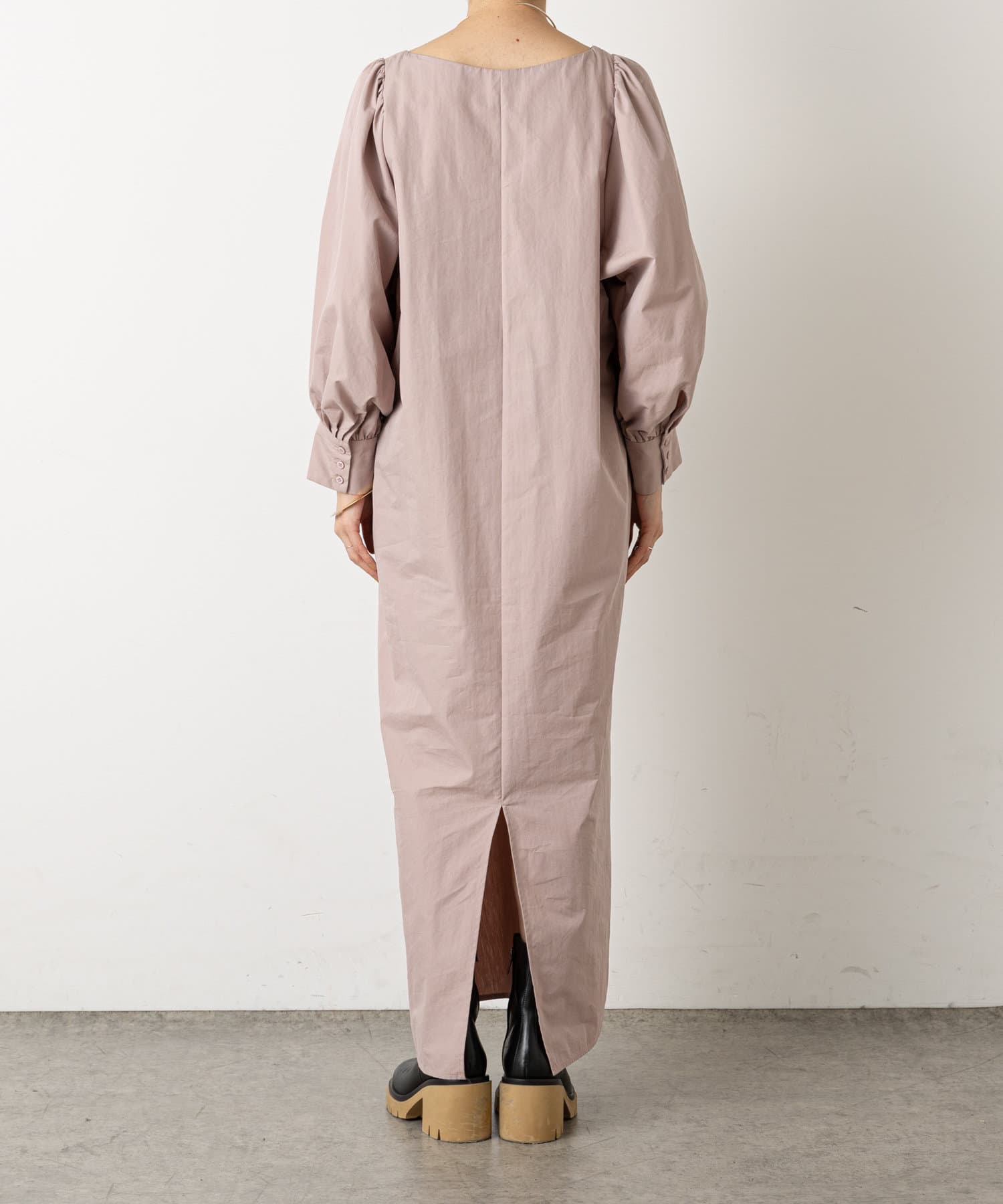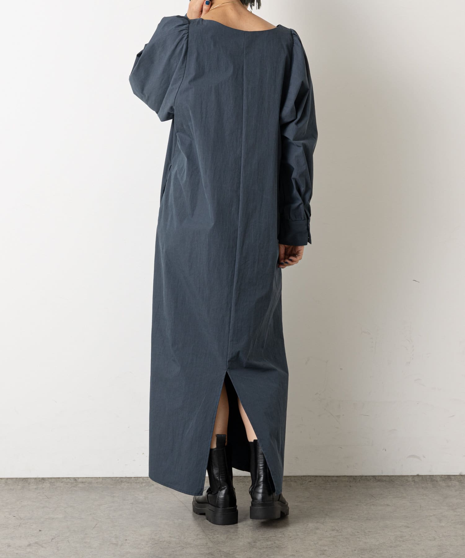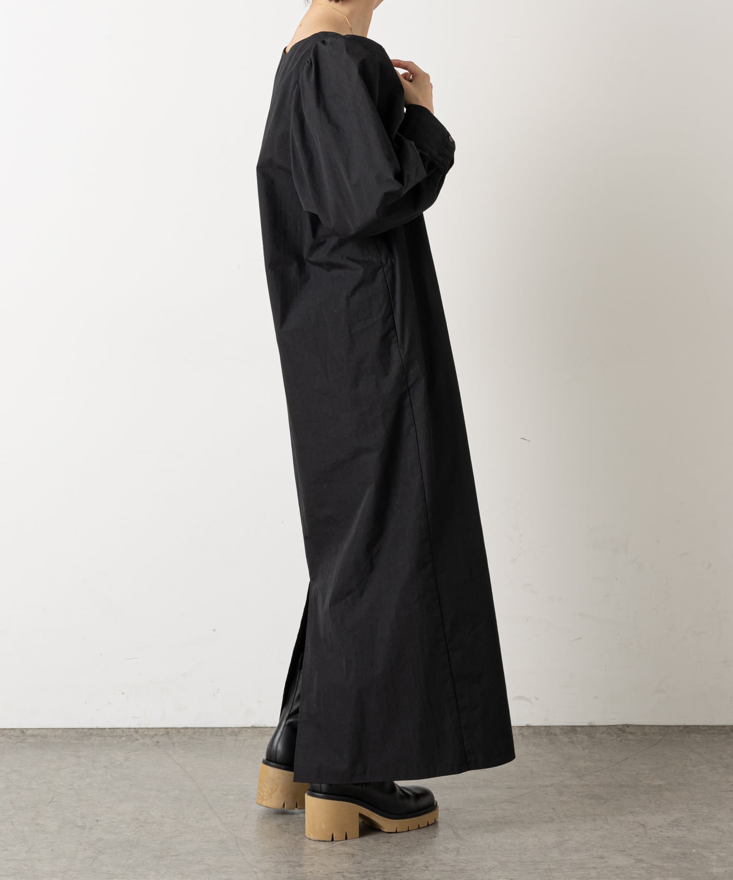・深めに開いたスクエアネックが大人っぽく、首回りをすっきりとみせてくれます。首元や手首が程よく見せられるため、アクセサリーとの相性もぴったりです。