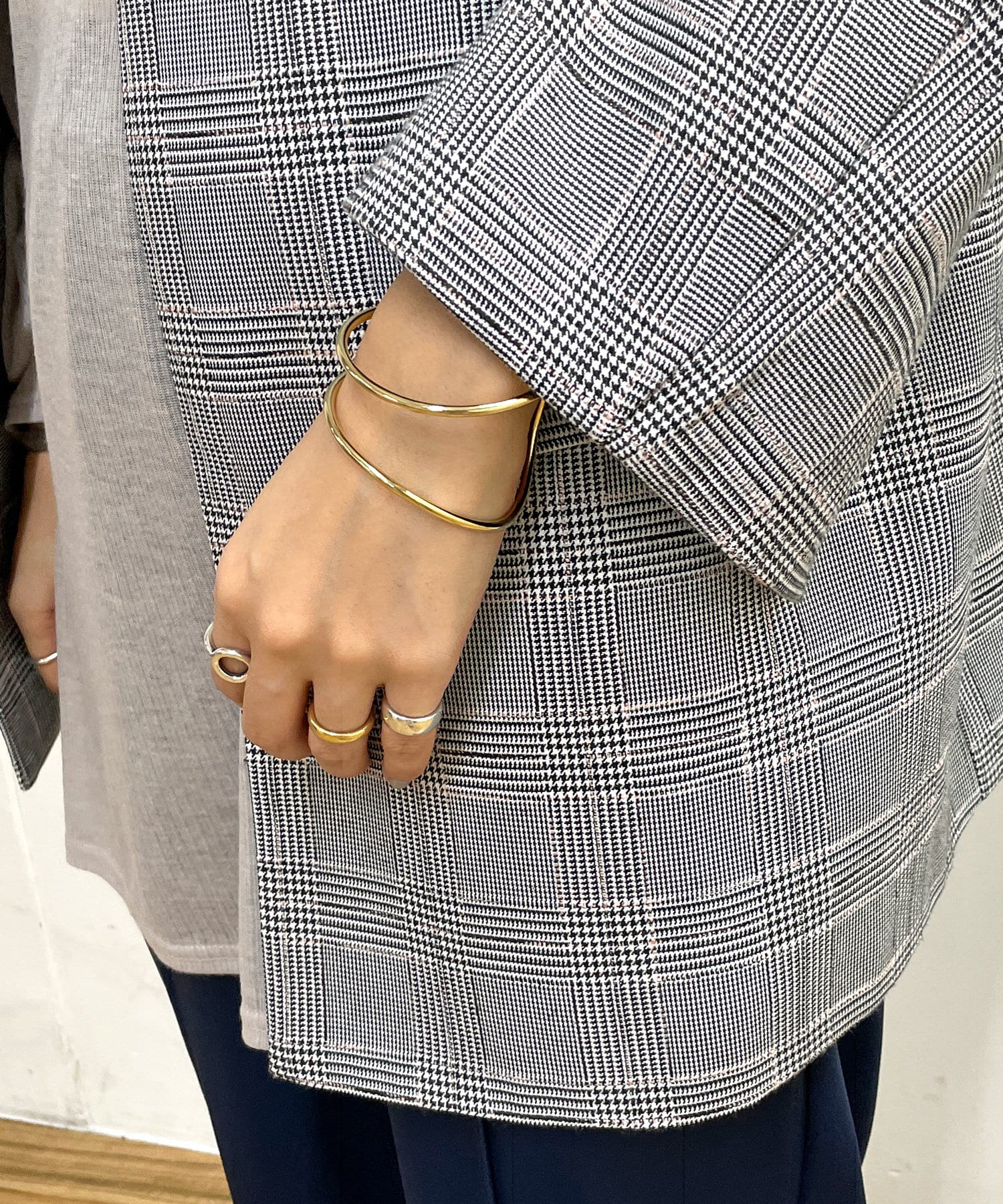 ・存在感のあるバングルは、一つ着けるだけでコーディネートのアクセントに◎