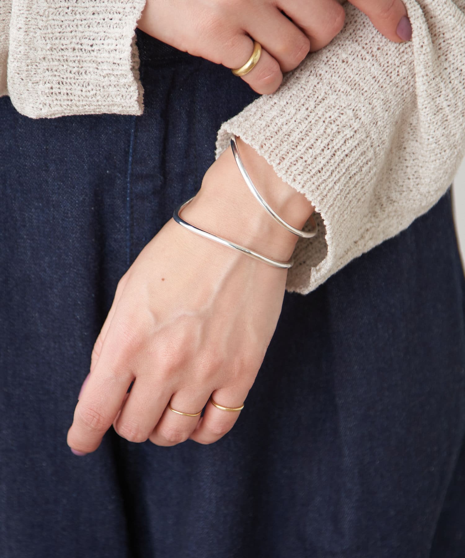 ・程よいボリューム感がありながら、着け心地は軽いバングルです。