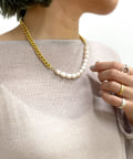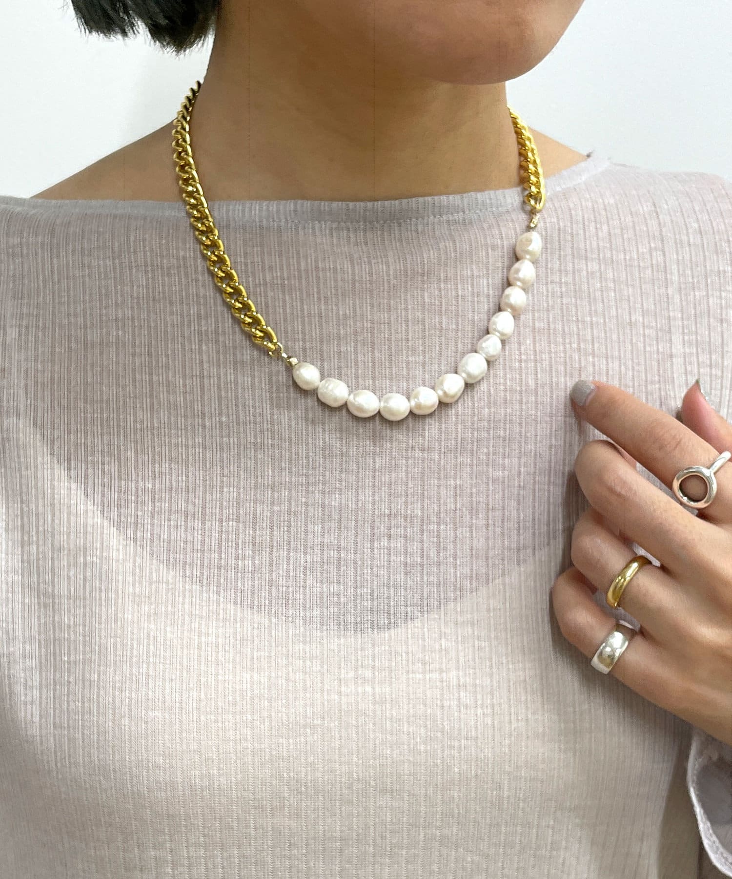 ・華やかなイメージのパールもエッジの効いたデザインに落とし込み、カジュアルスタイルも洗練されたスタイルに!