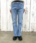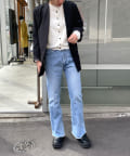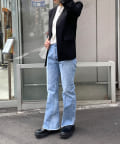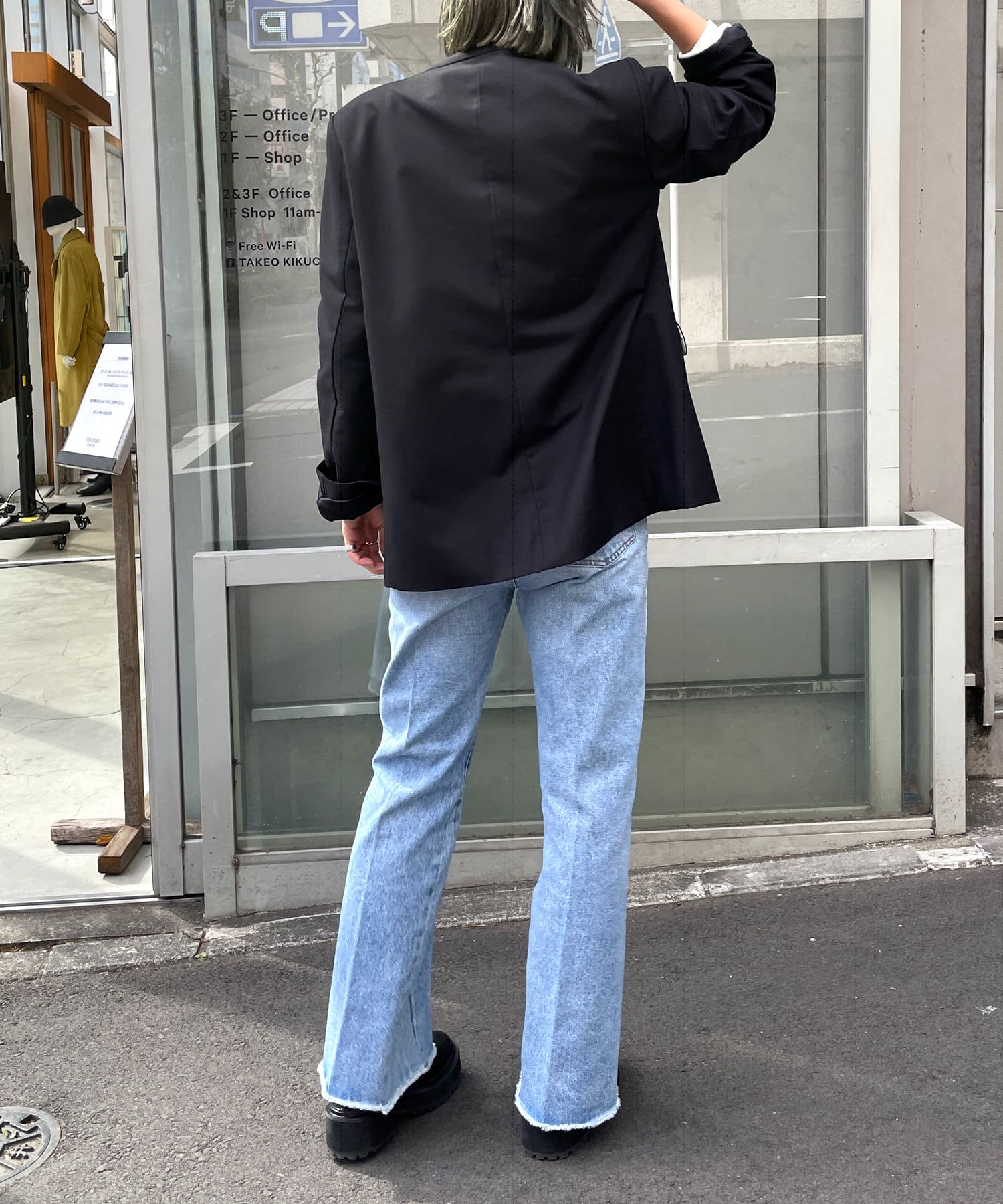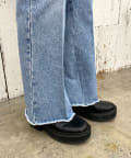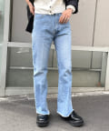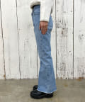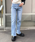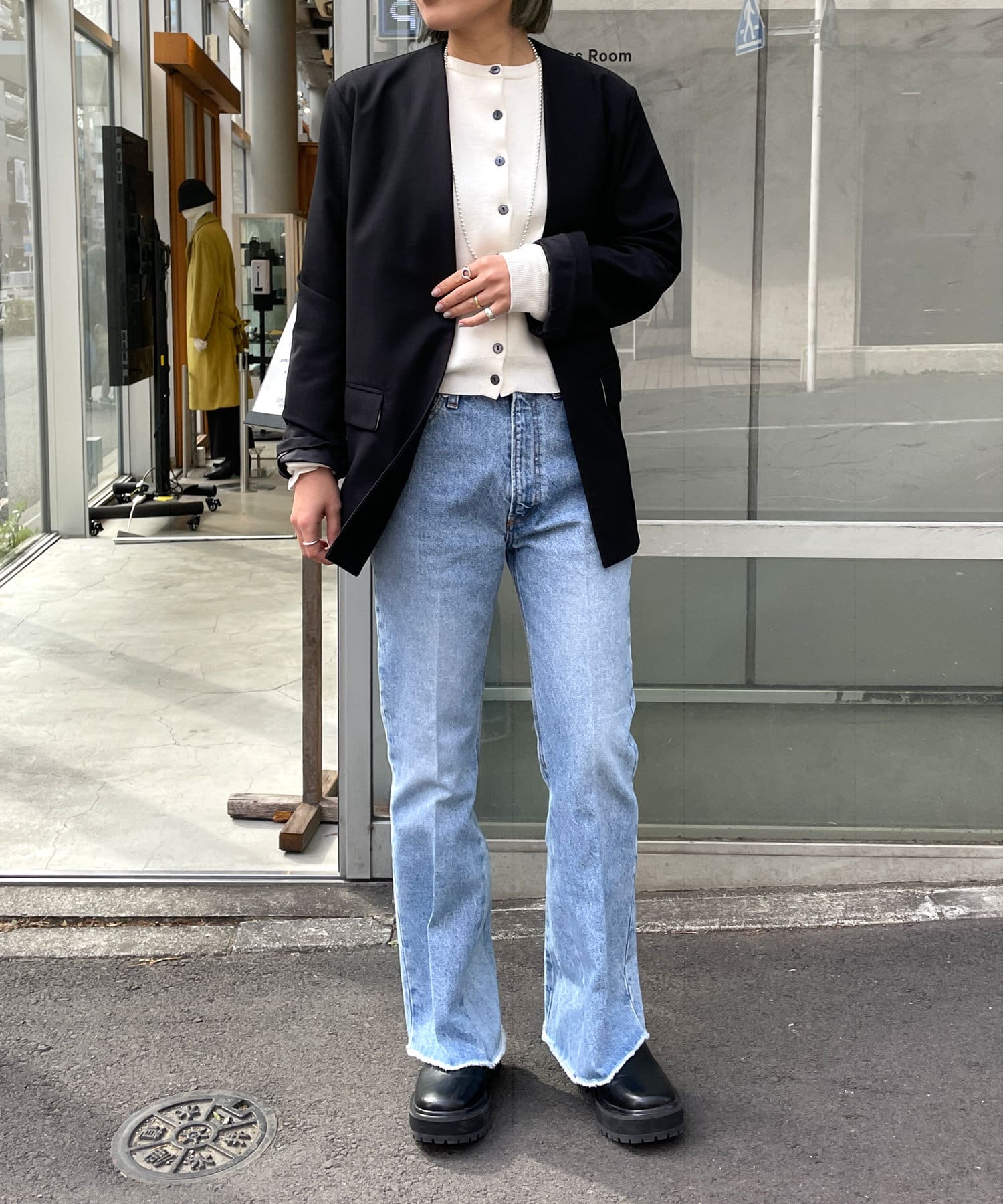・足元にワンポイントの切替を施したフレアシルエットのアイテムで、ヒップから裾に向かってのシルエットは非常にきれいなラインで穿いていただけます。