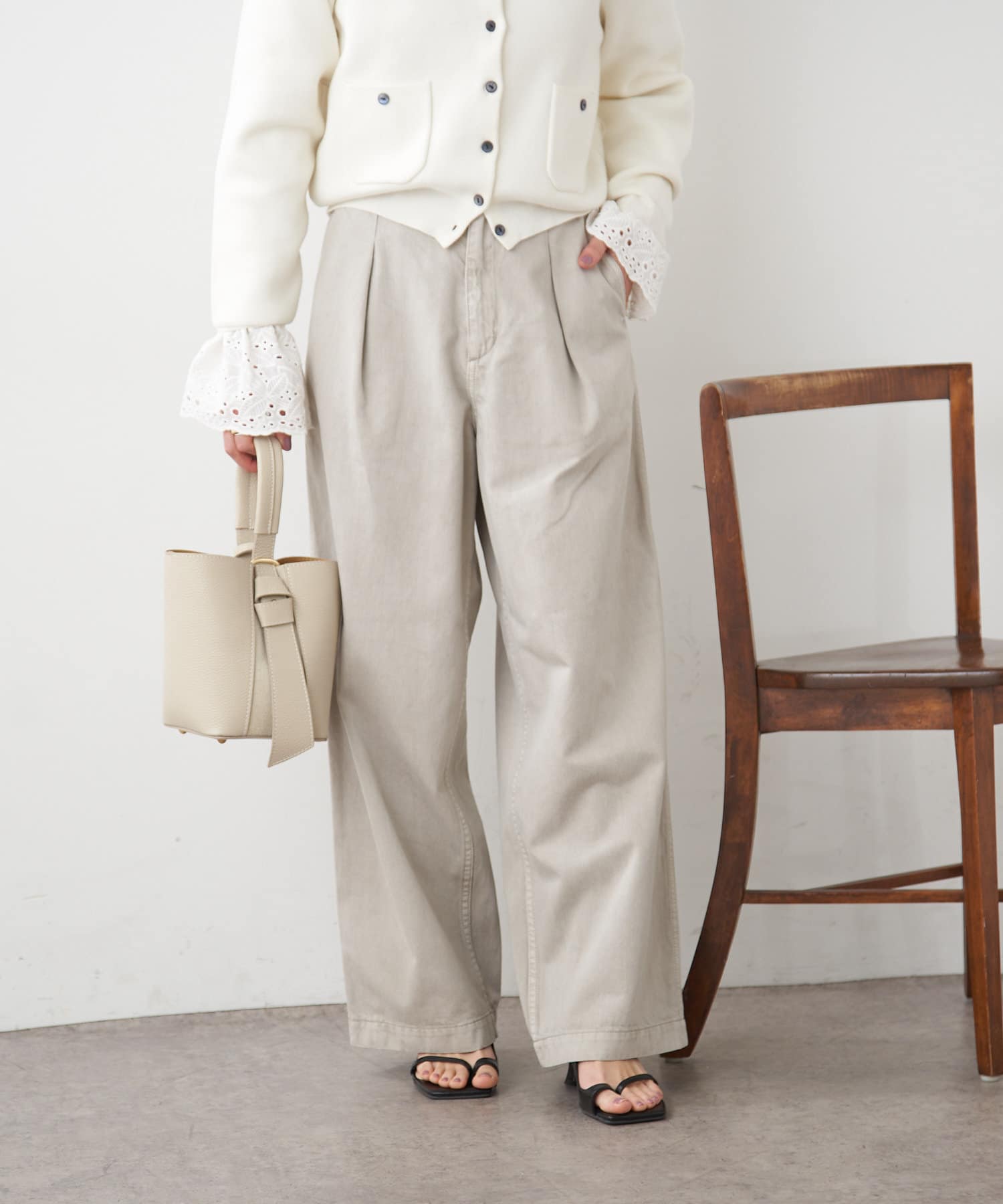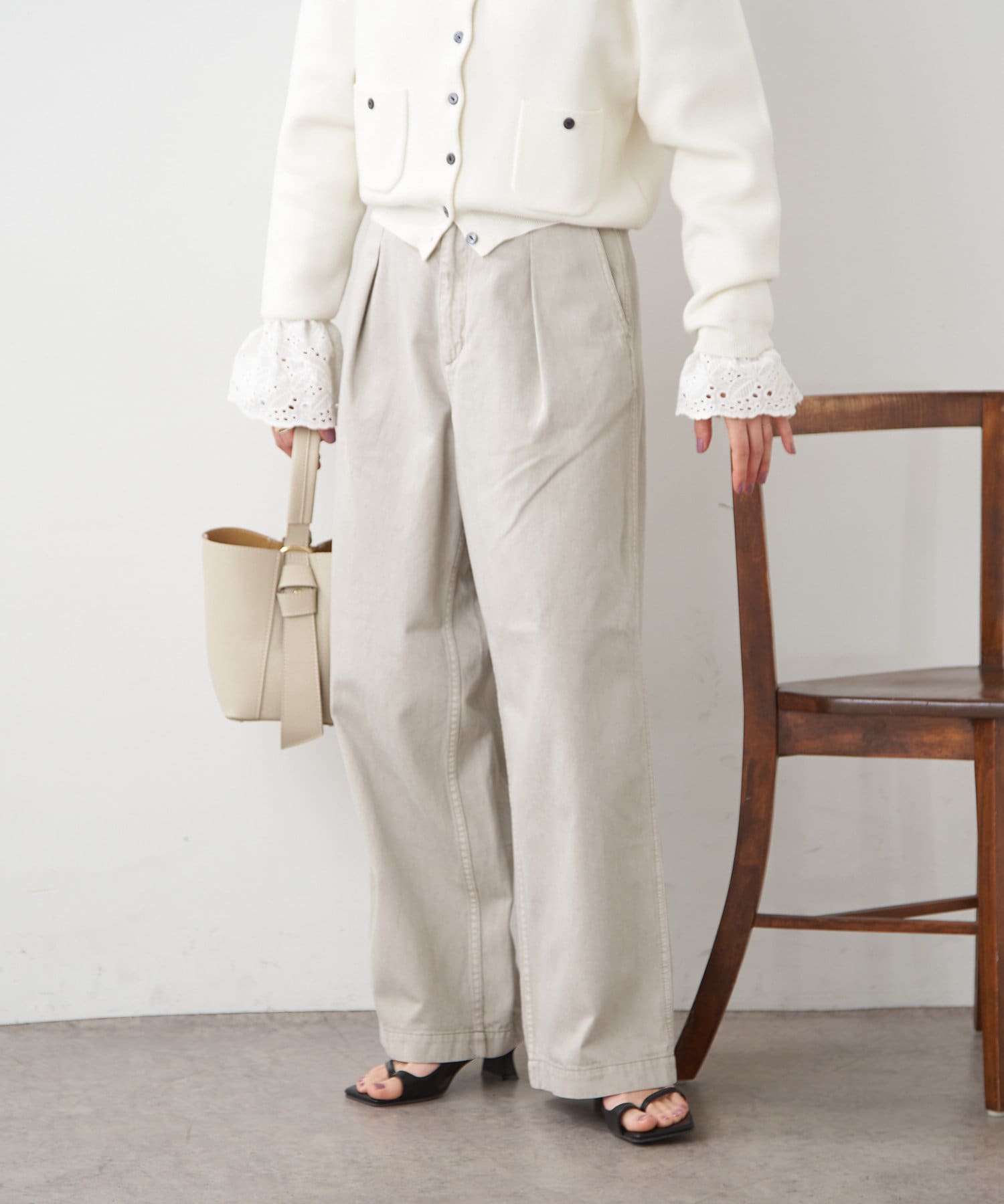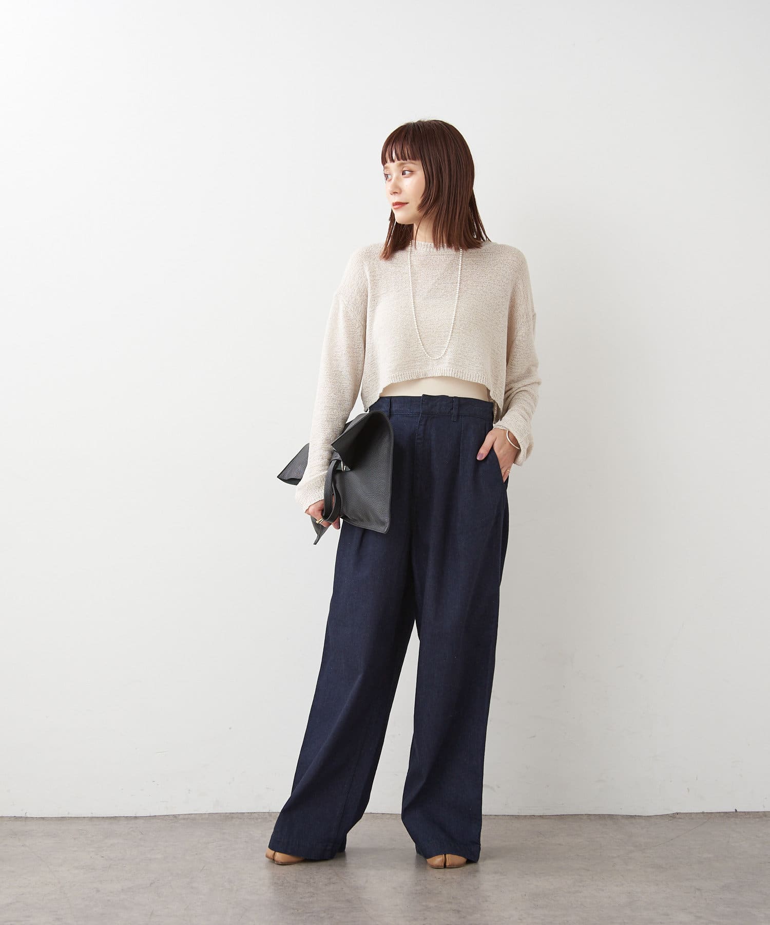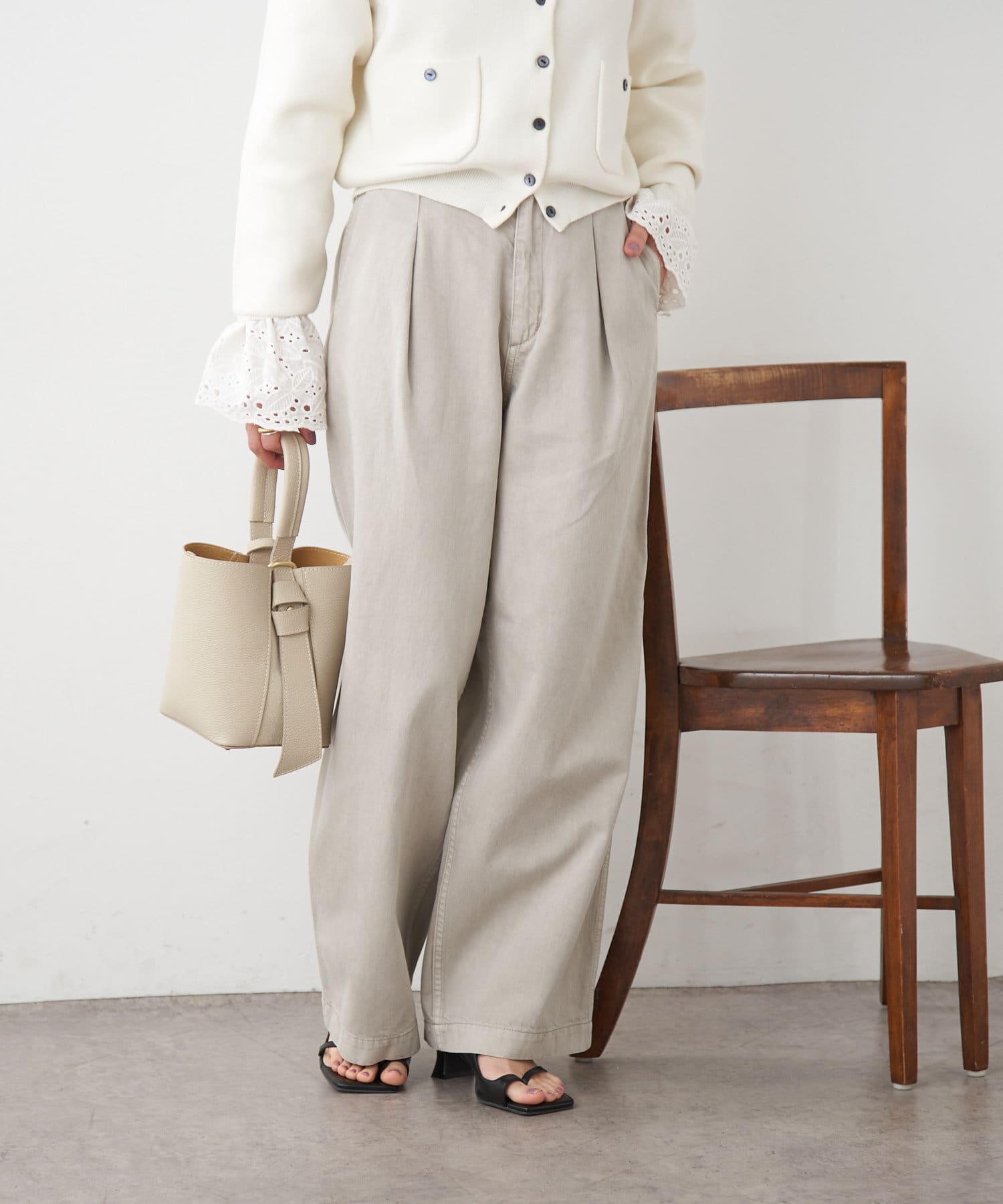 【ai.no.de】 kamogata タックデニムパンツ