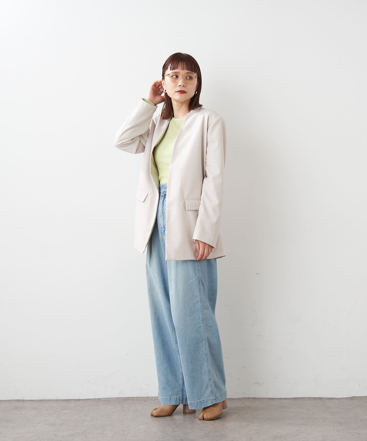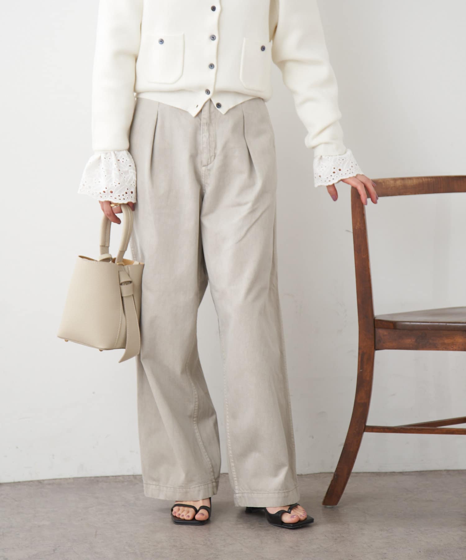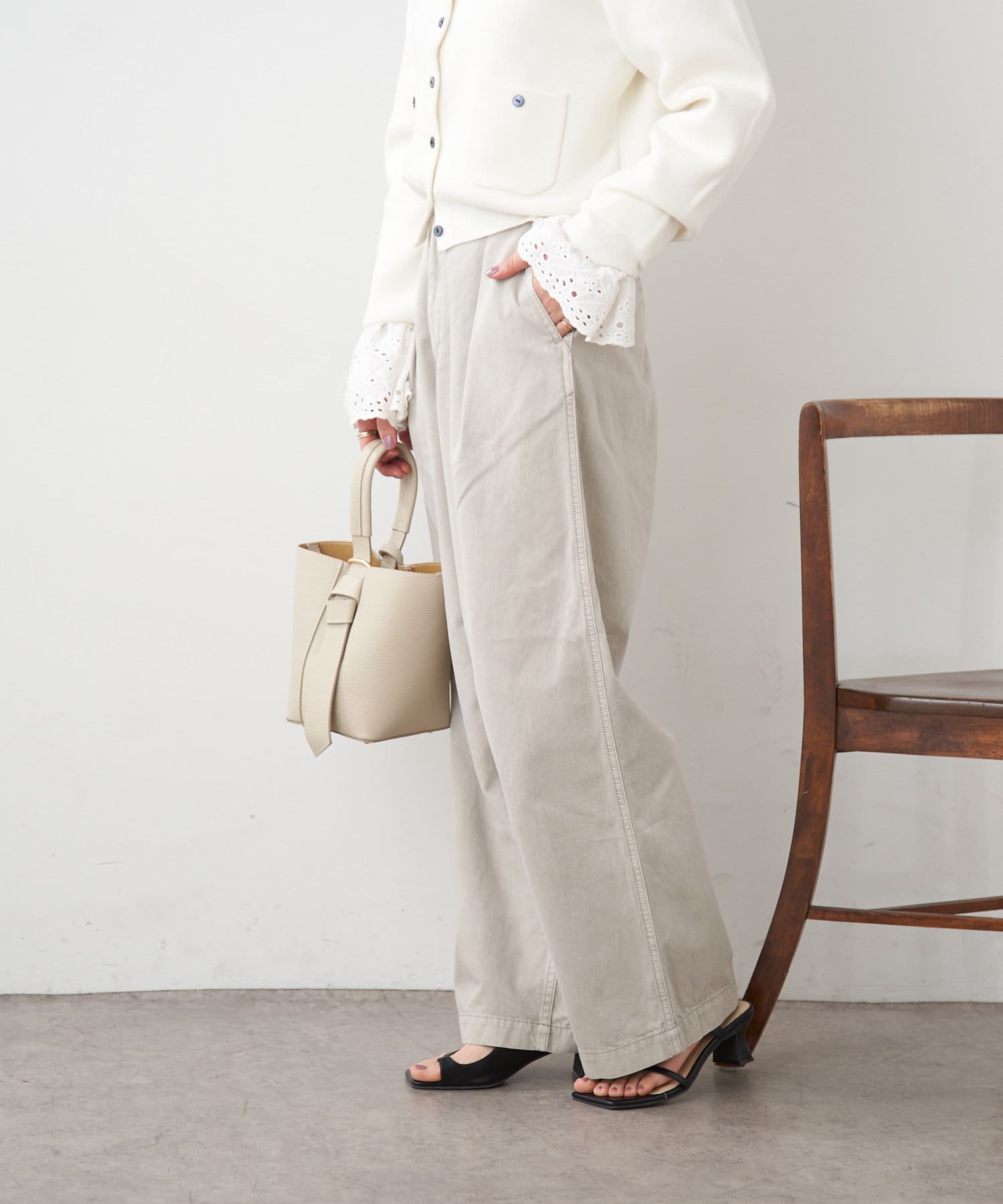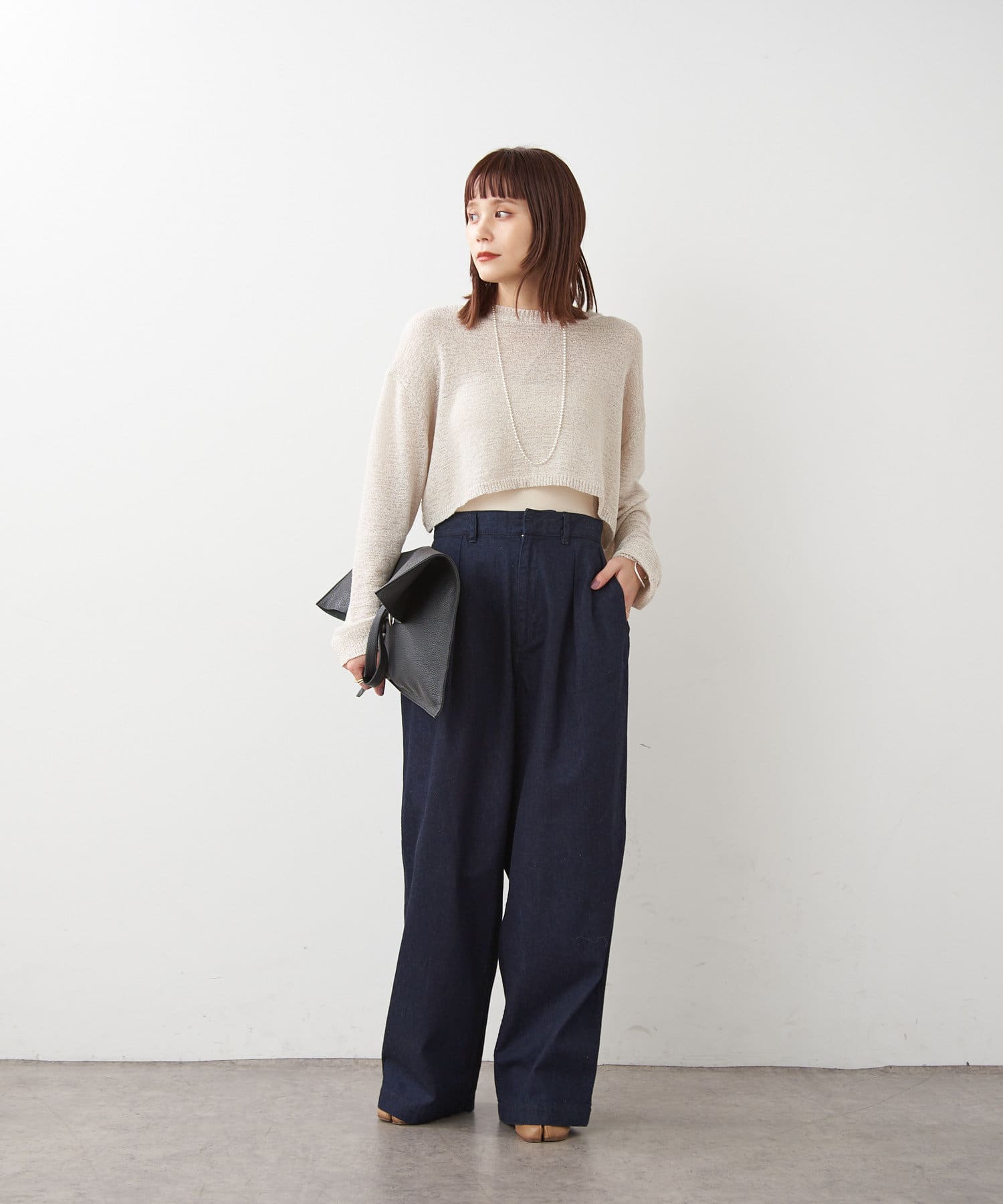 【ai.no.de】 kamogata タックデニムパンツ