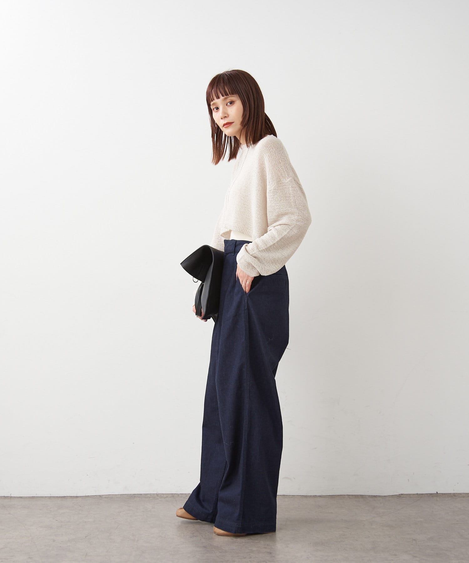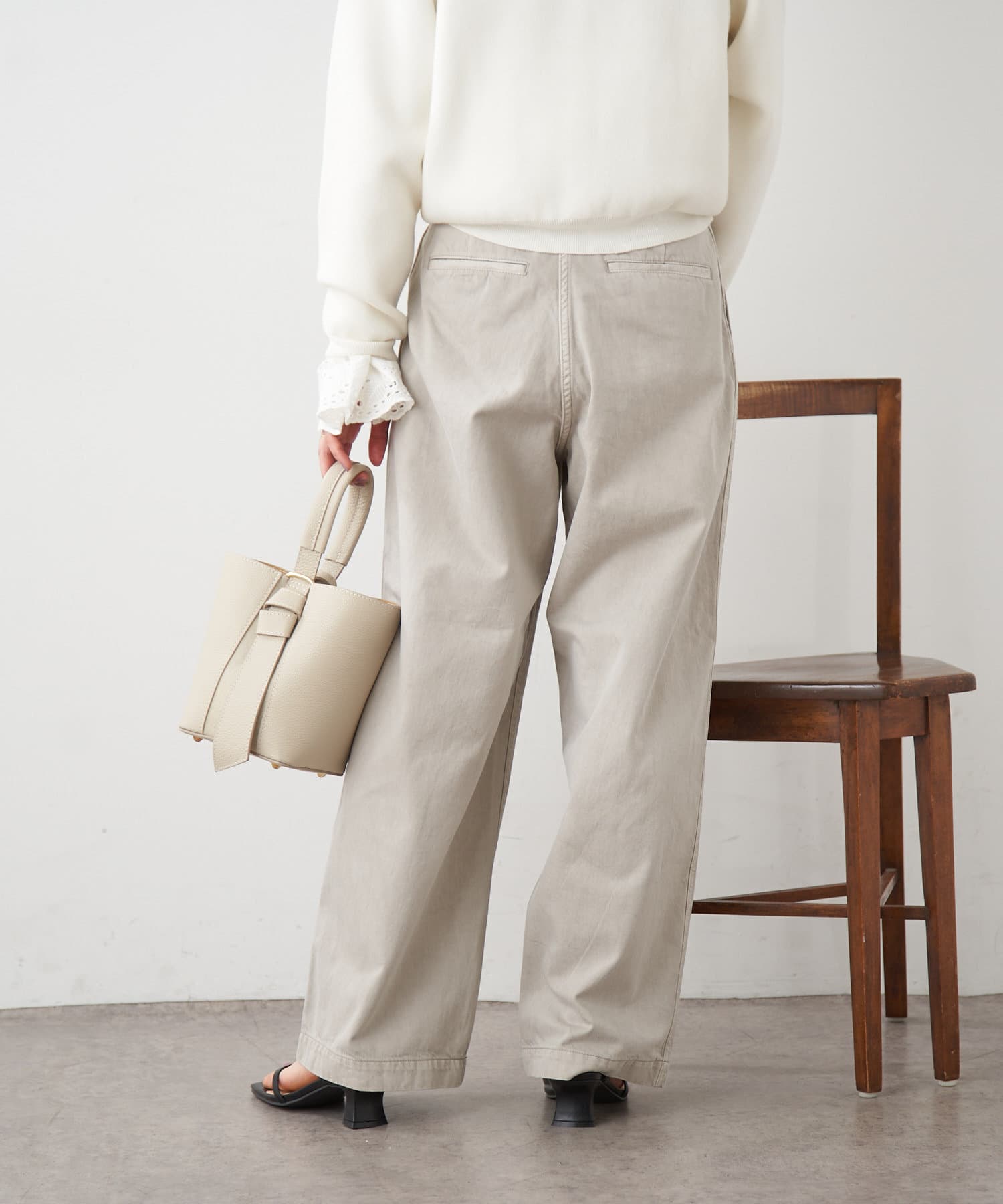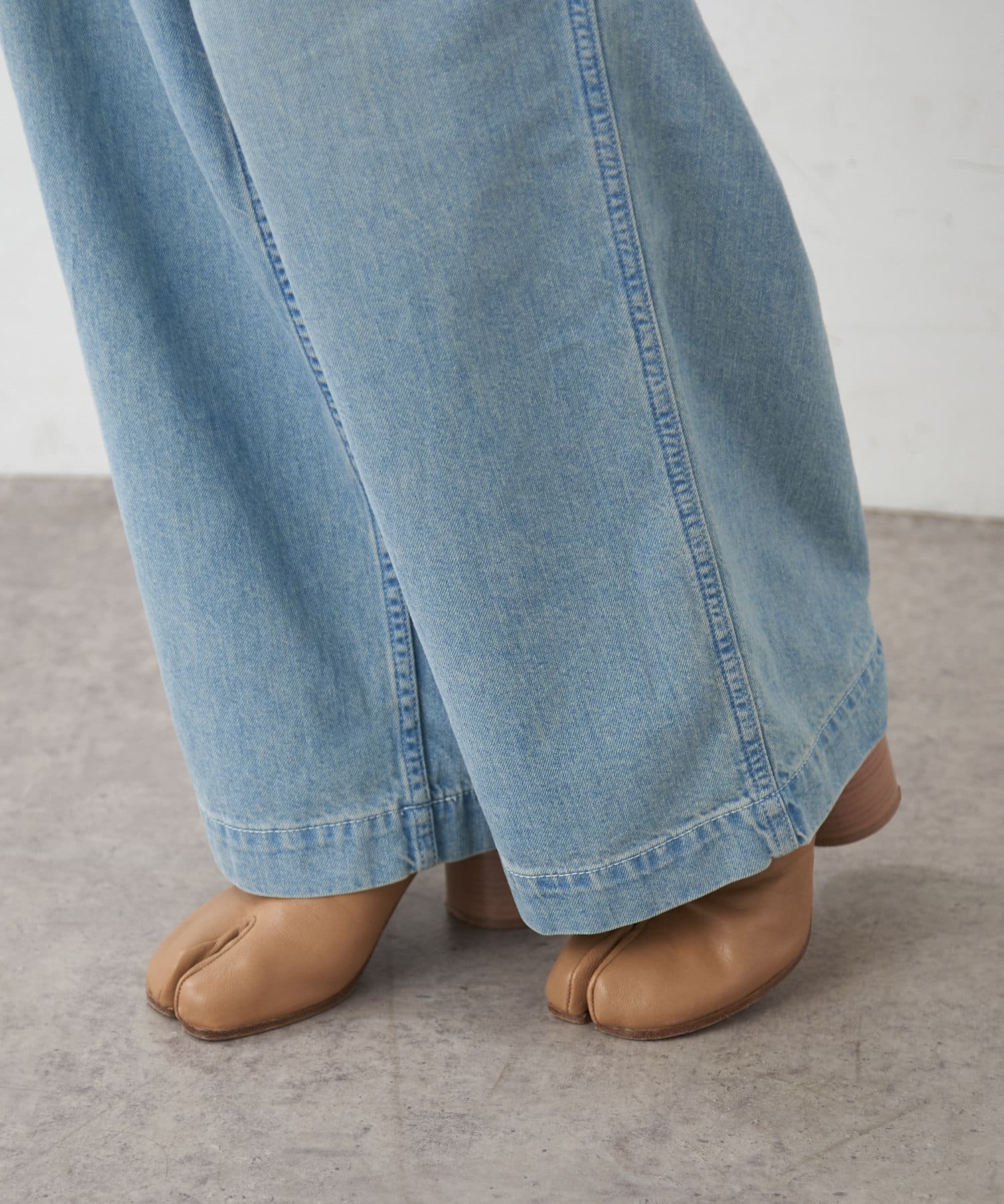 ・ボリュームのあるワイドなシルエットなのですが、8オンスと柔らかいライトオンスの生地を使用することで落ち感が出る為、ワイドなシルエットは残しつつ、リラックス感のある、少し綺麗な印象で穿いて頂けます。