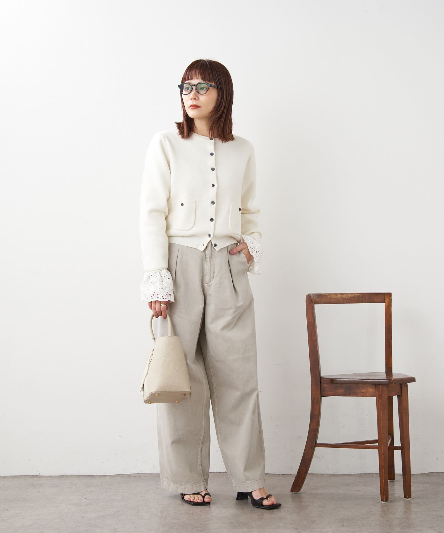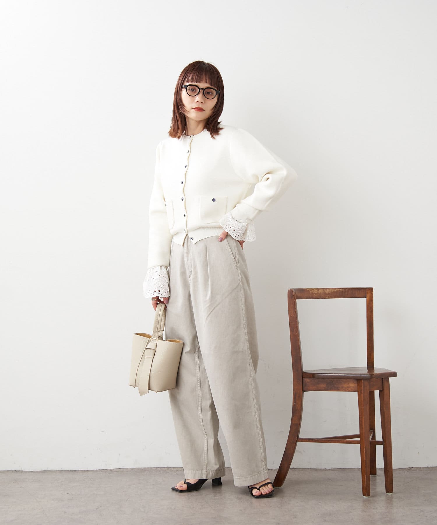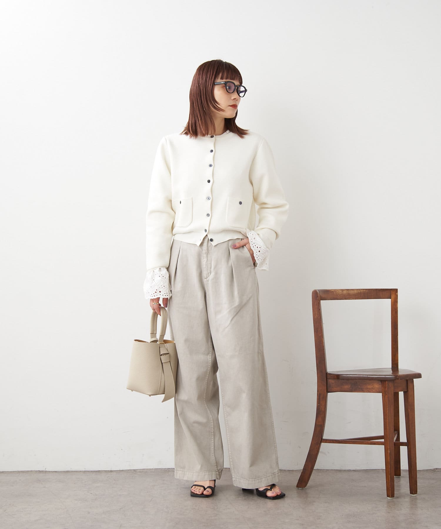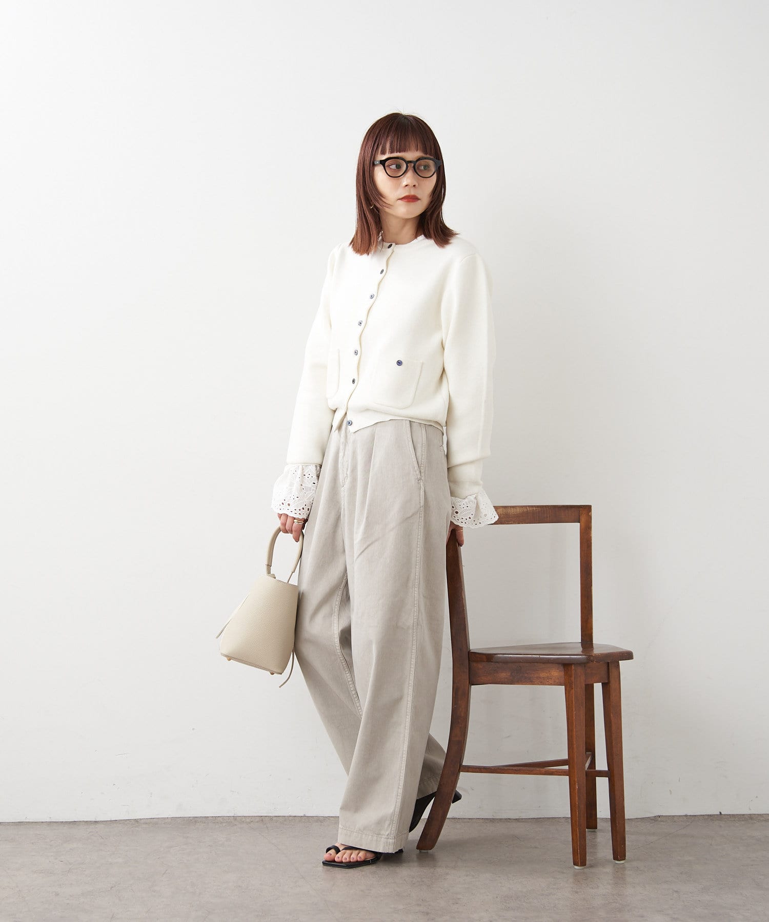 ・ボリュームのあるワイドなシルエットなのですが、8オンスと柔らかいライトオンスの生地を使用することで落ち感が出る為、ワイドなシルエットは残しつつ、リラックス感のある、少し綺麗な印象で穿いて頂けます。