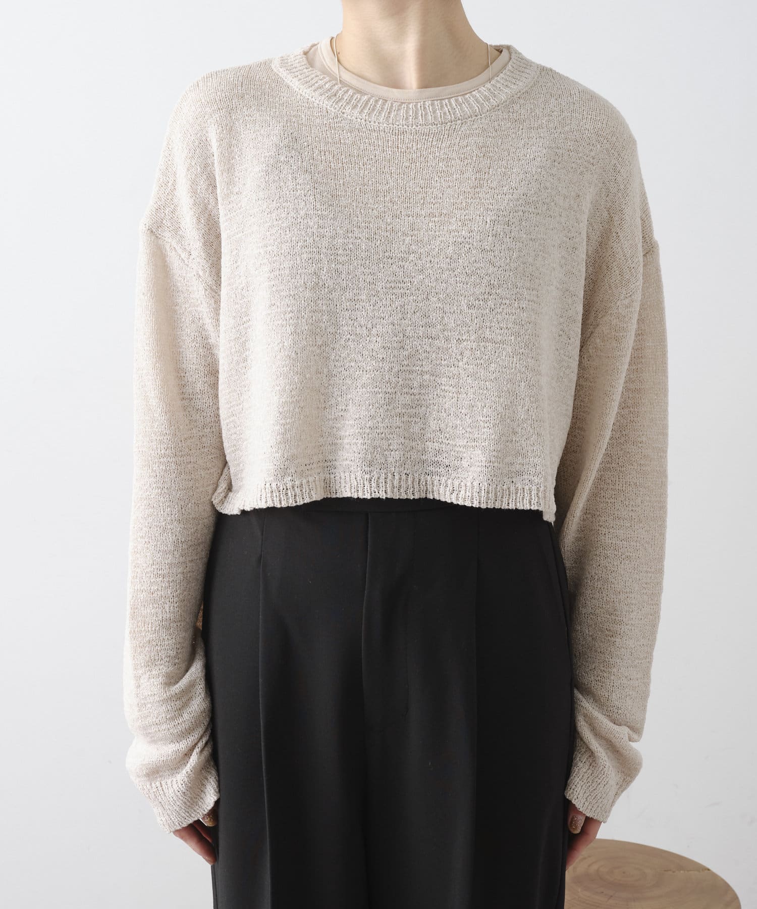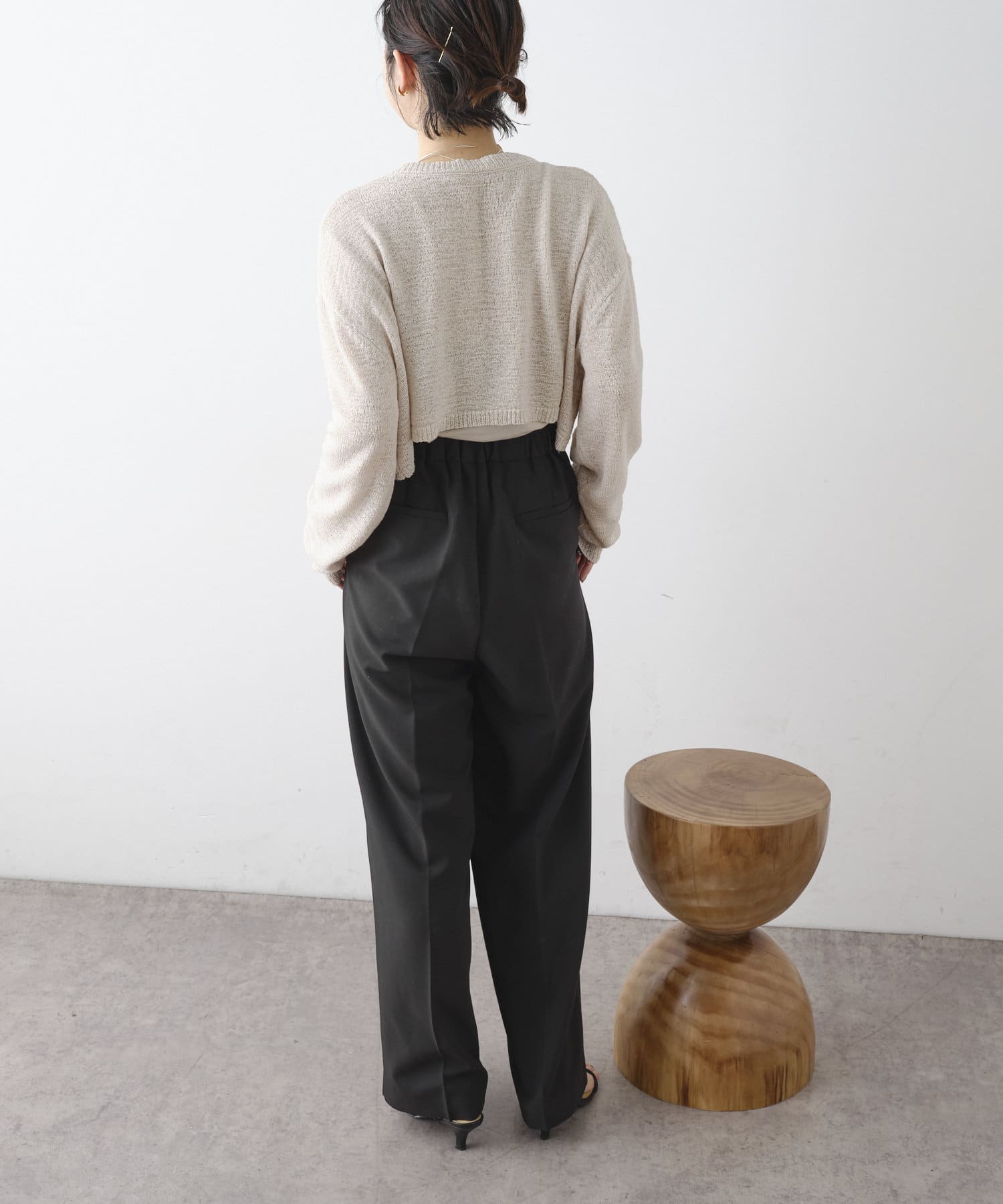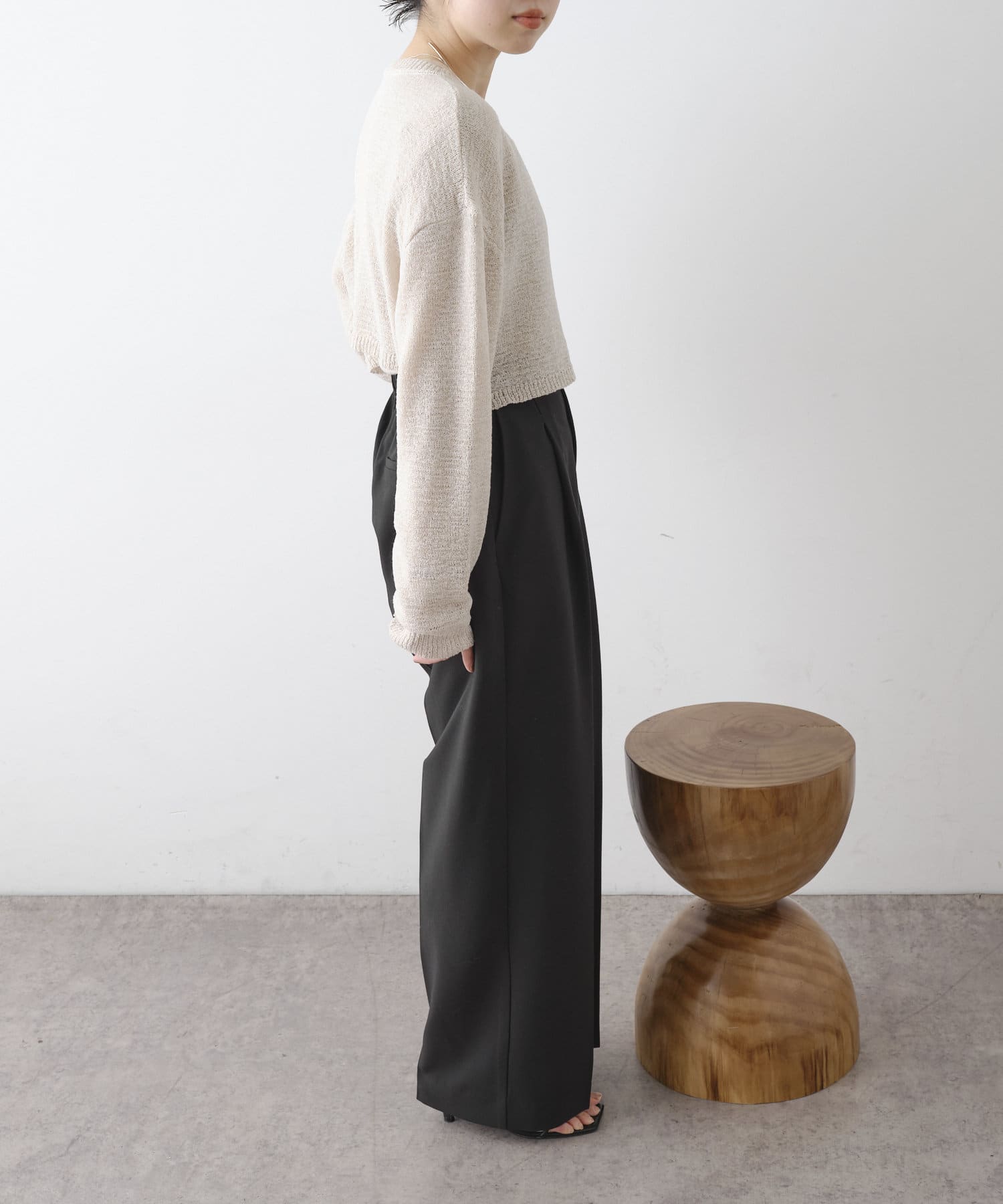 ・ショート丈なのでハイウエストのボトムスを合わせていただくと、さらにスタイルアップ効果も叶えてくれる一枚です。
