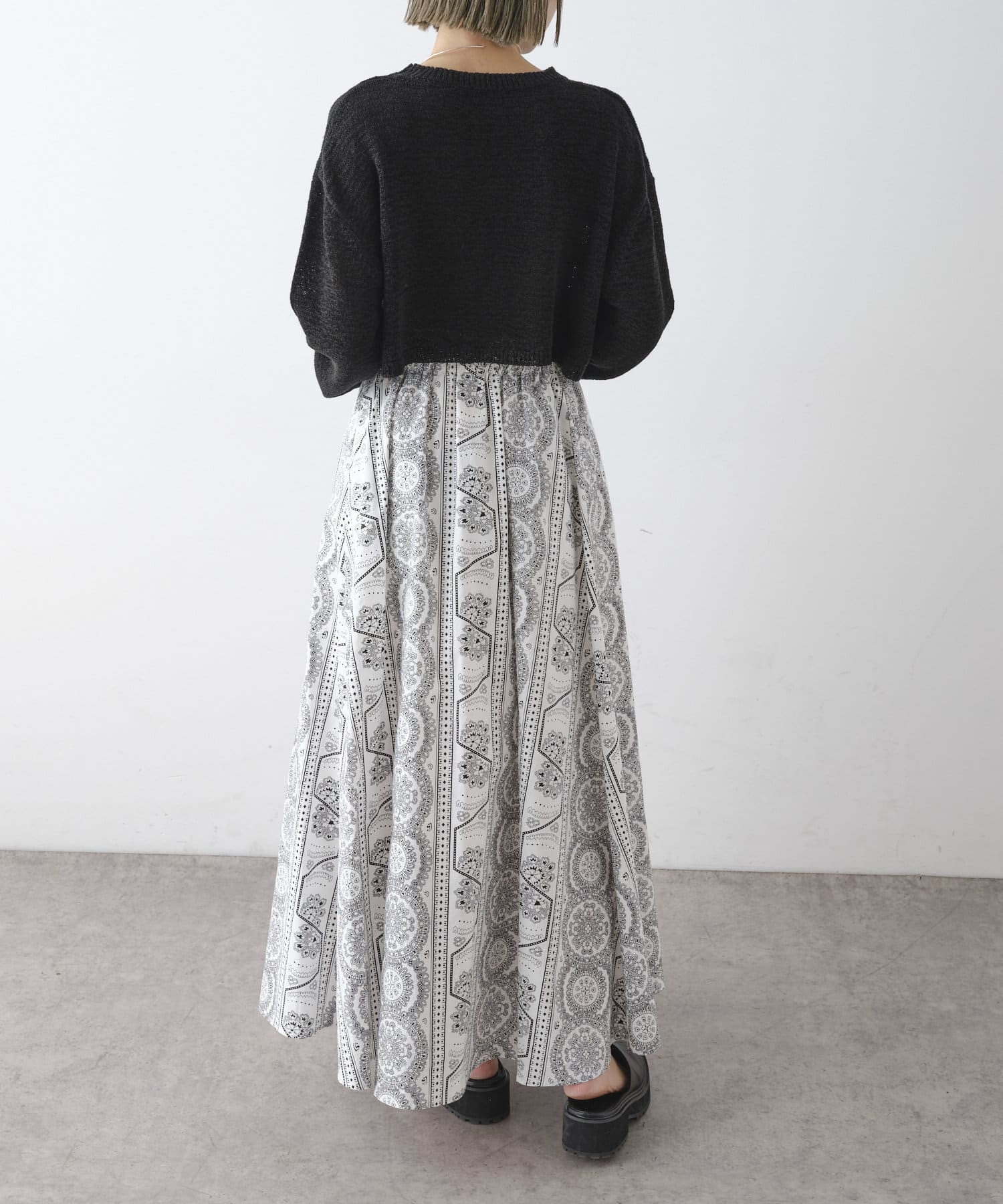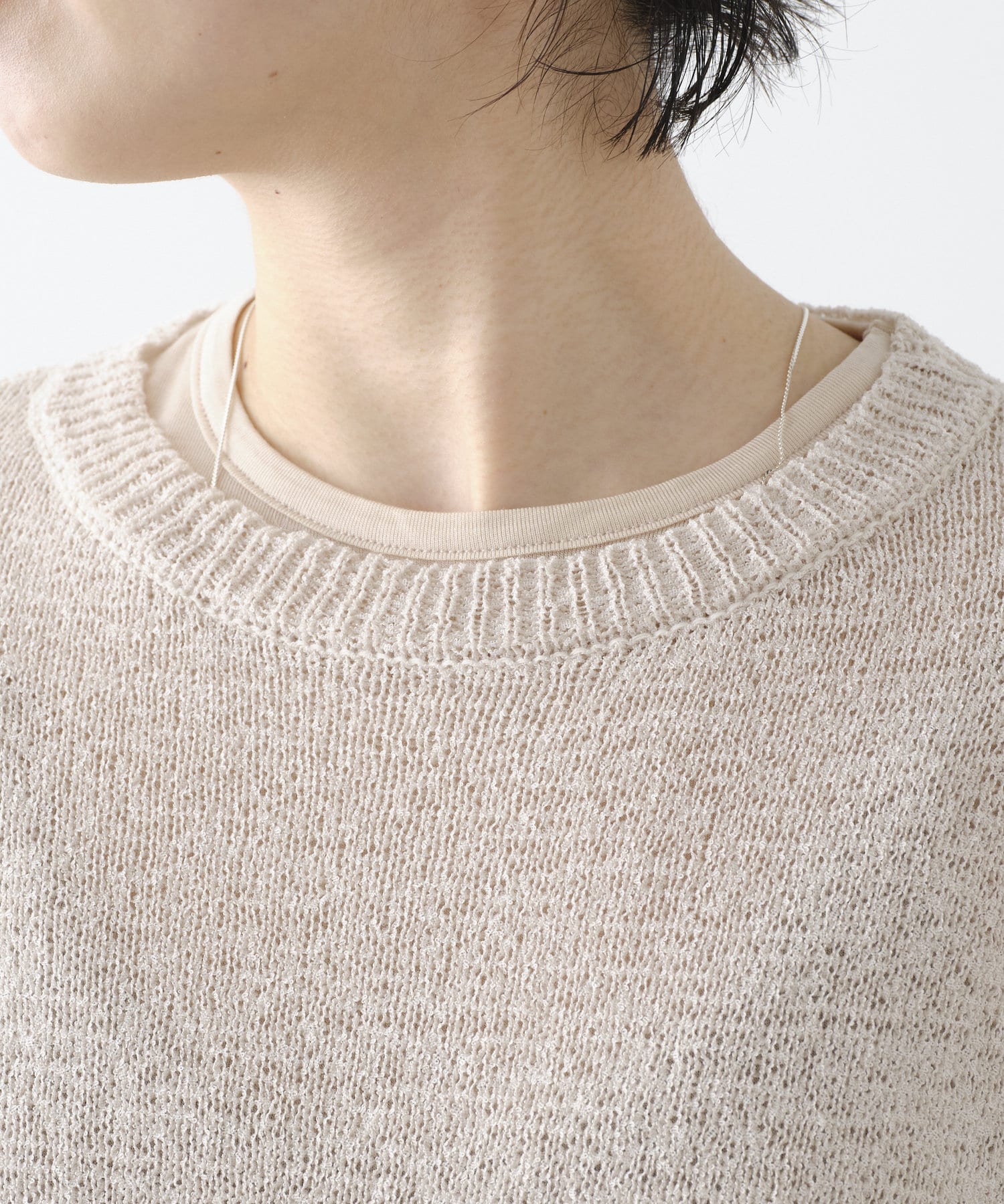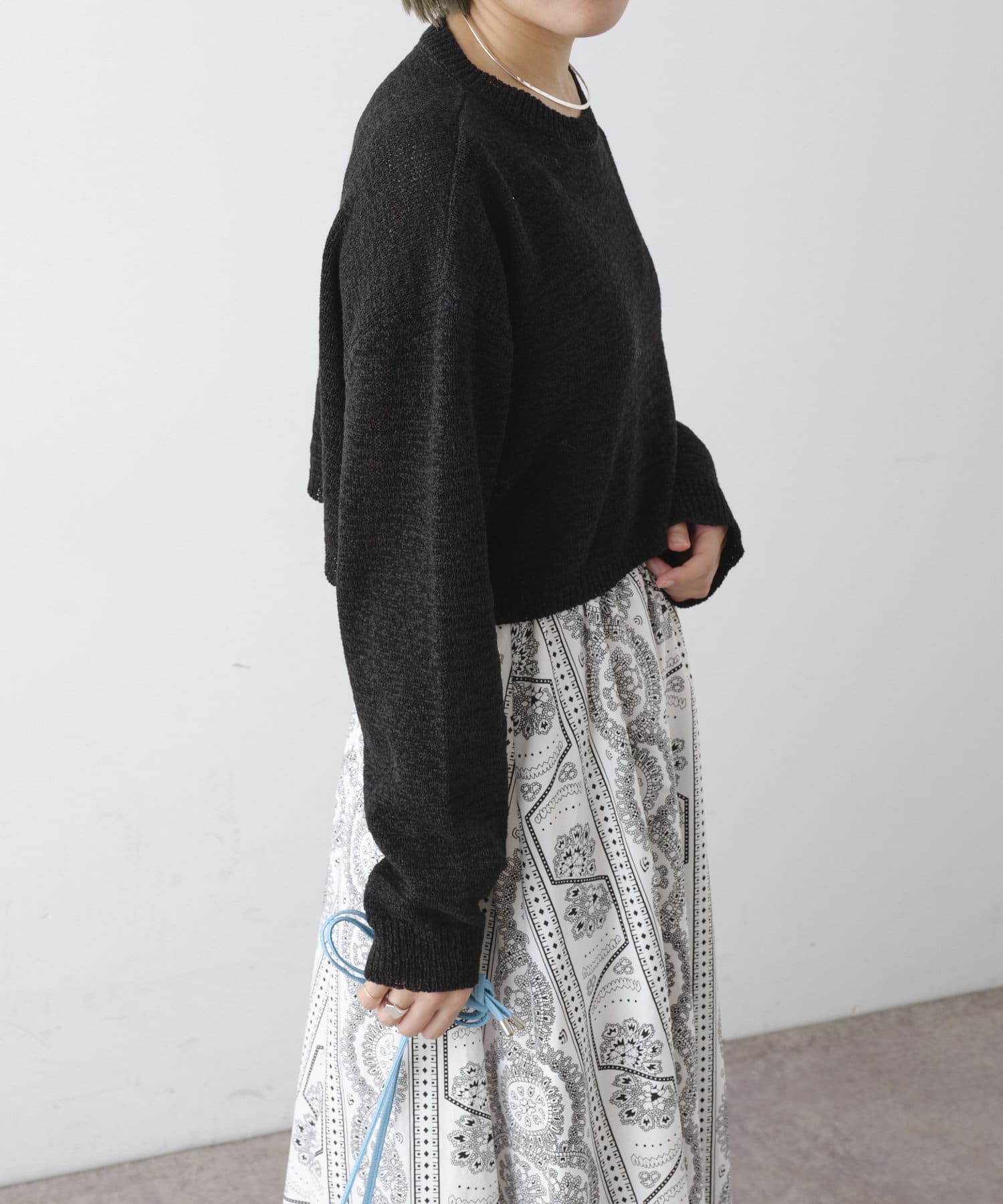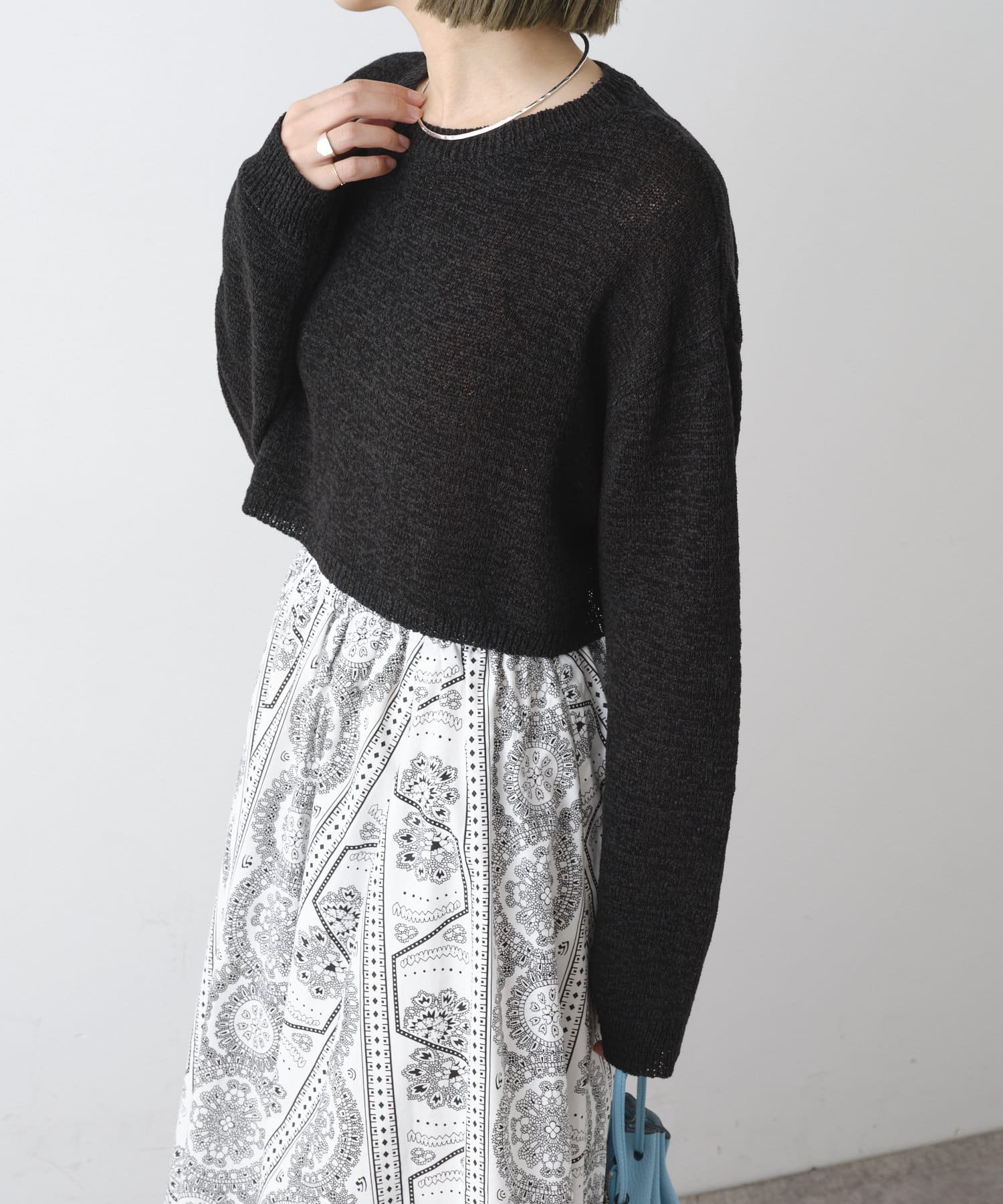 ・シンプルながらショート丈が今年らしい、旬のレイヤードスタイルが楽しめるショートニット。