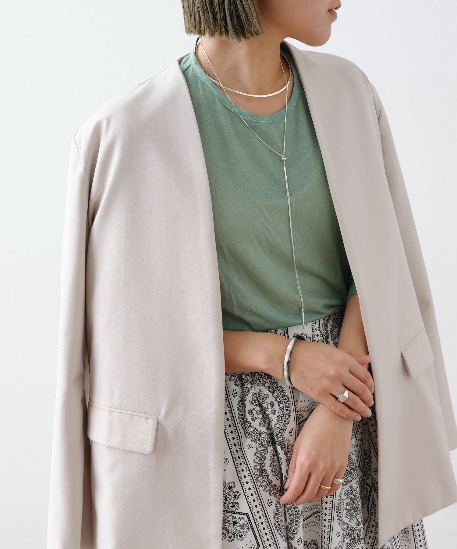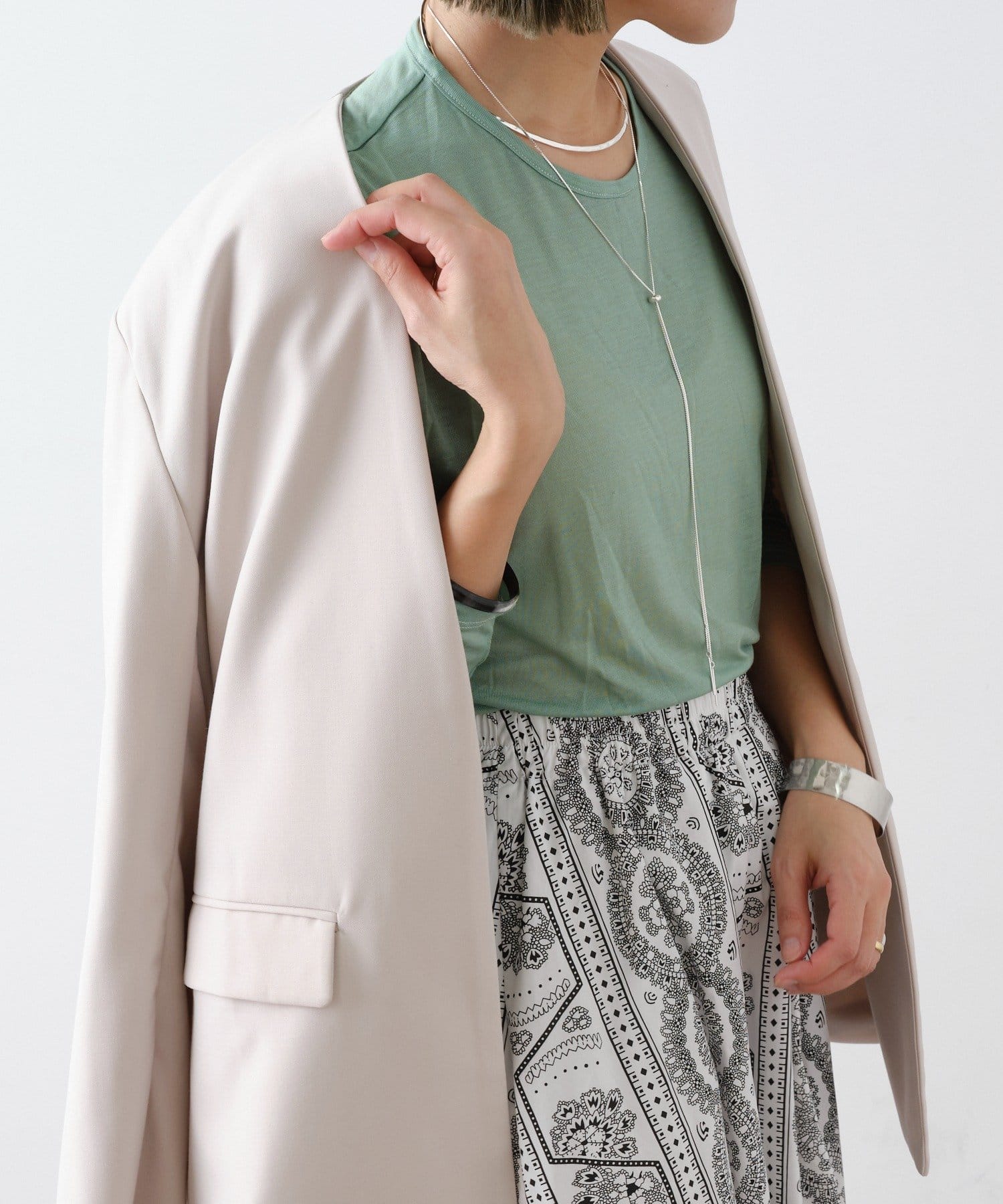 ・一枚ではもちろん、カーディガンやジャケットなどのインナーに着用し、レイヤードを楽しんでいただけます。