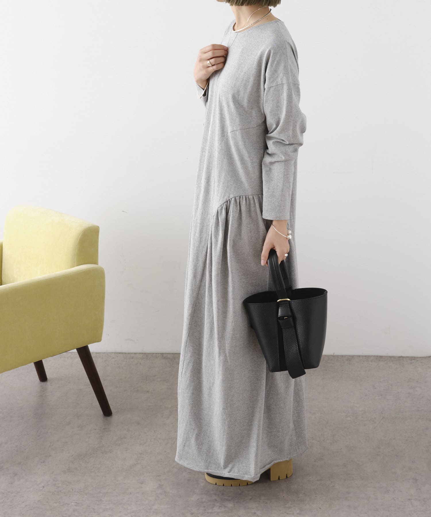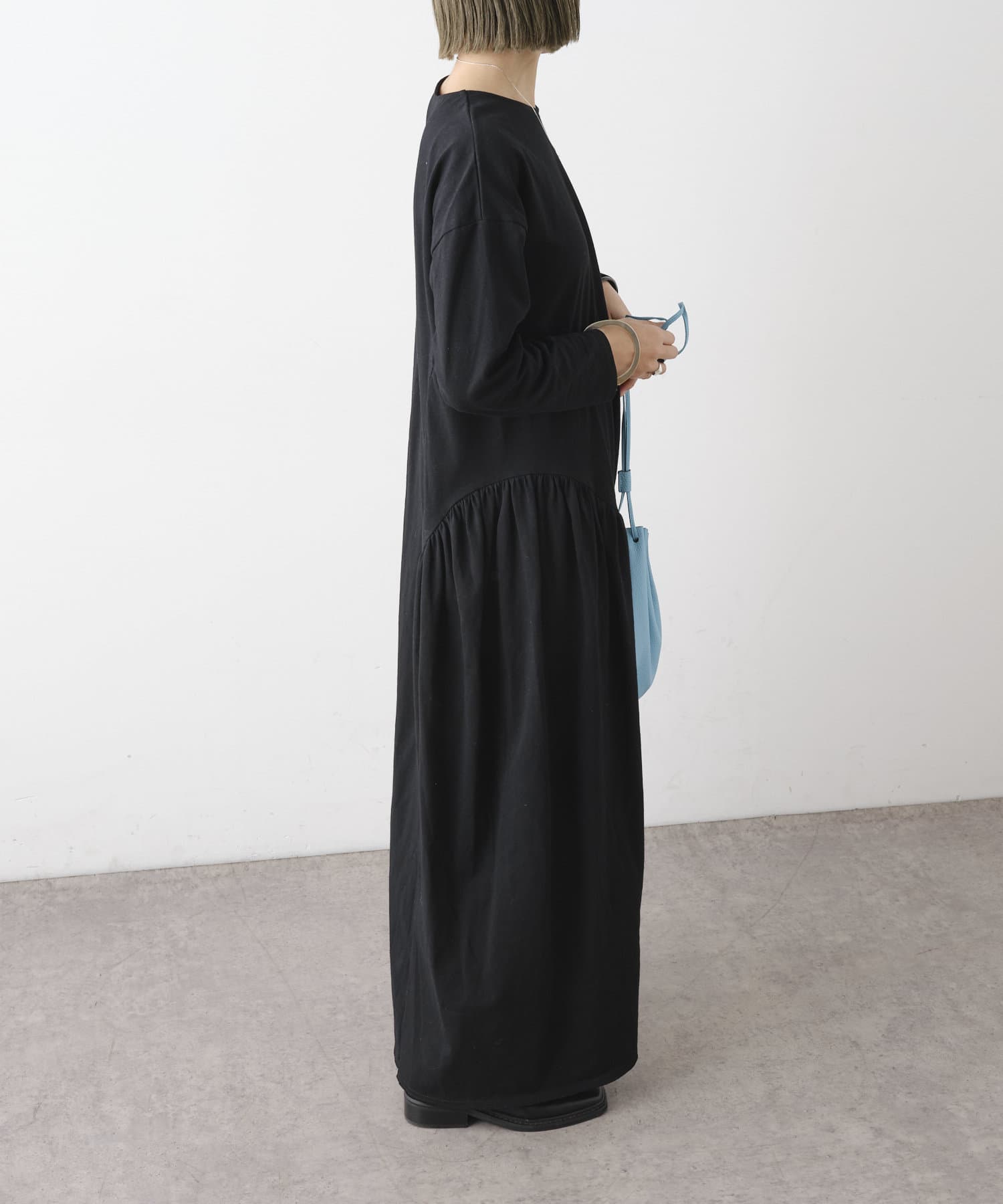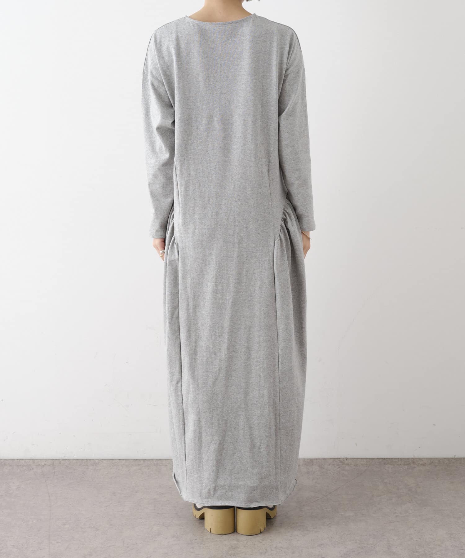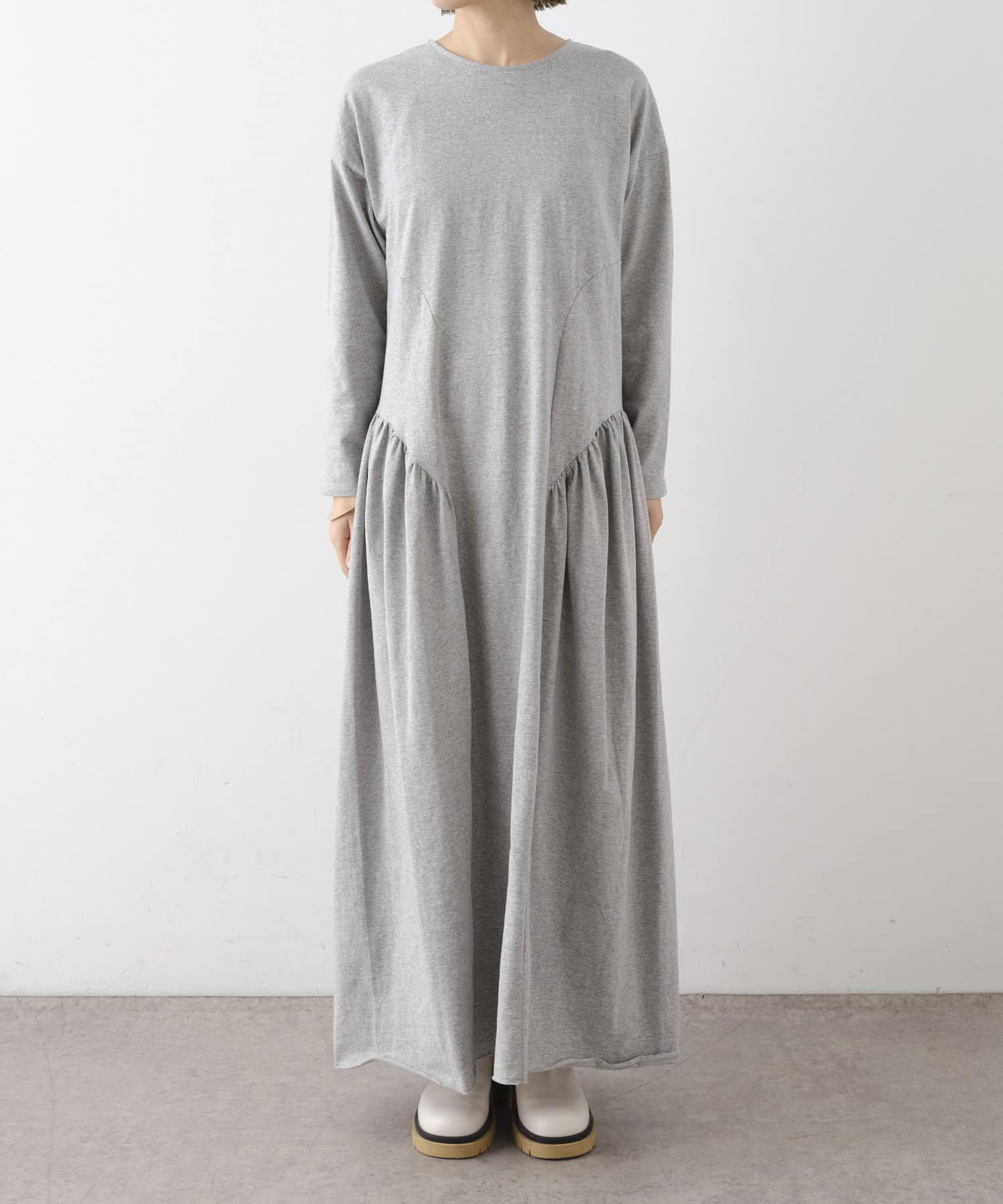 ラウンドギャザーカットロングドレス