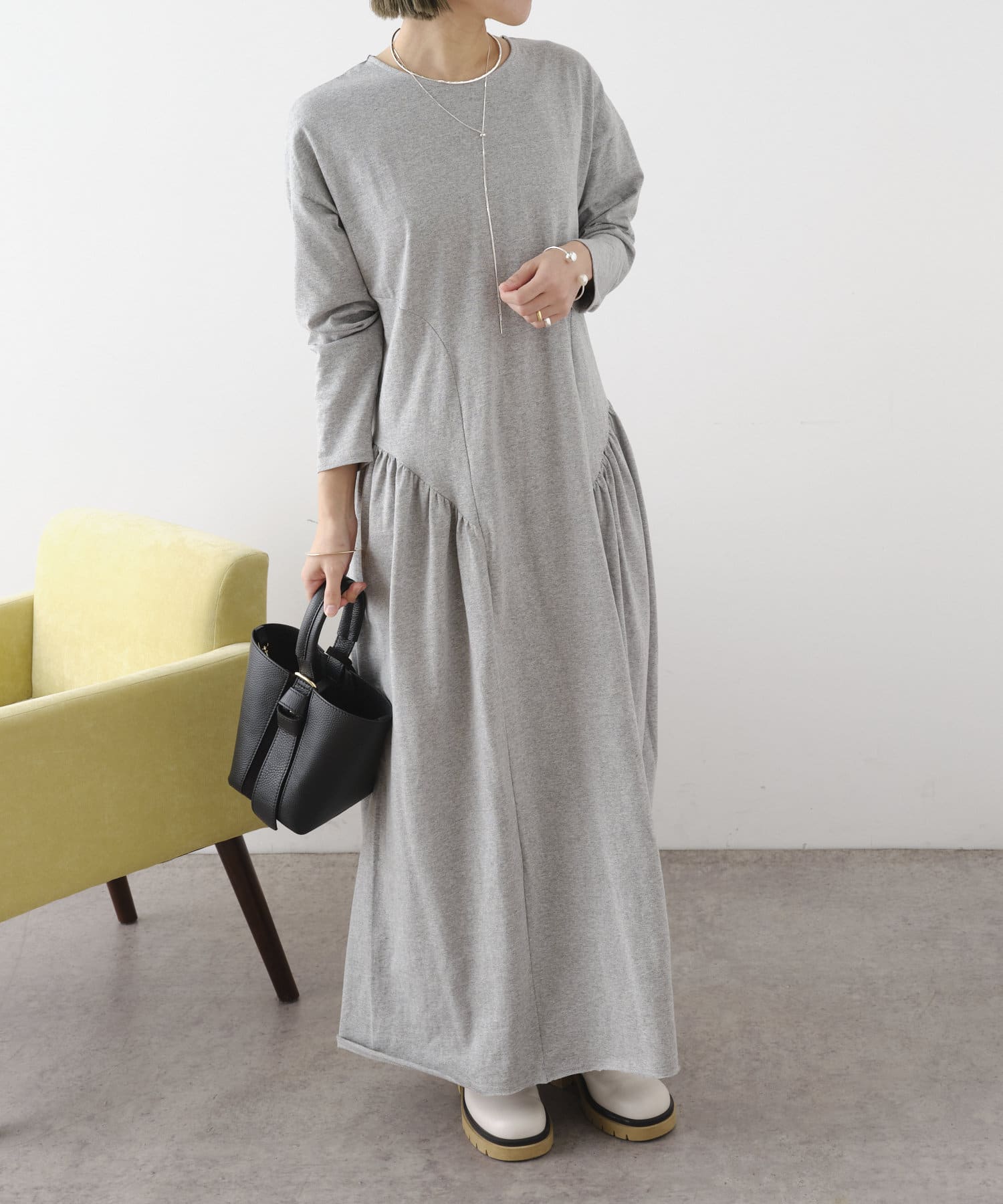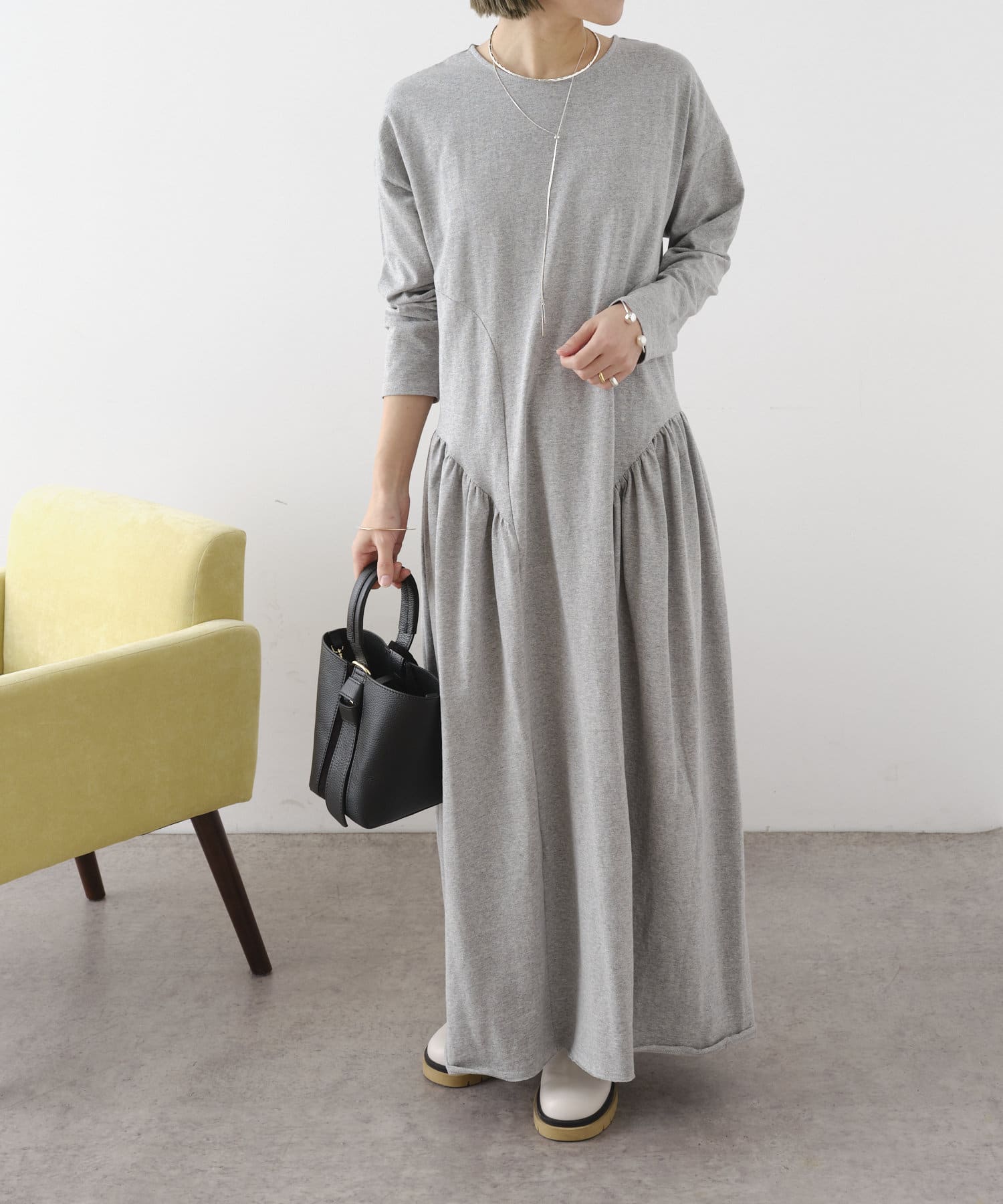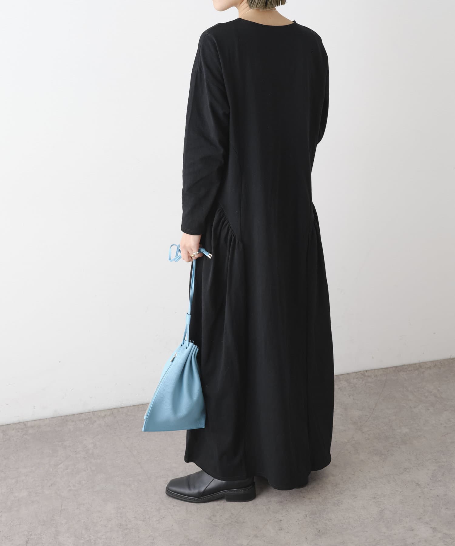 ラウンドギャザーカットロングドレス