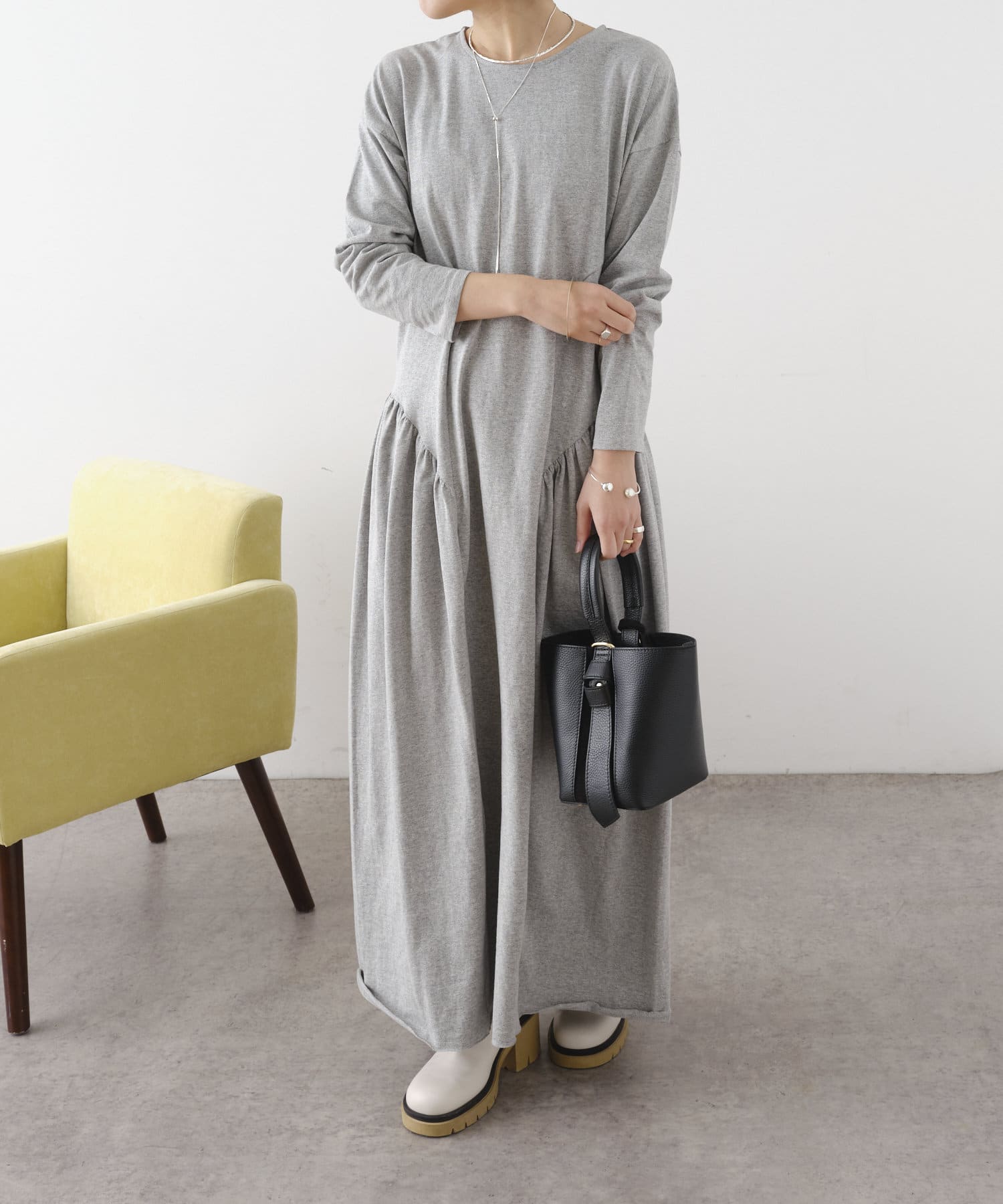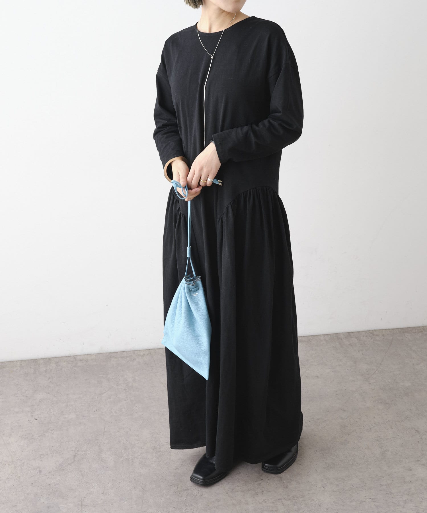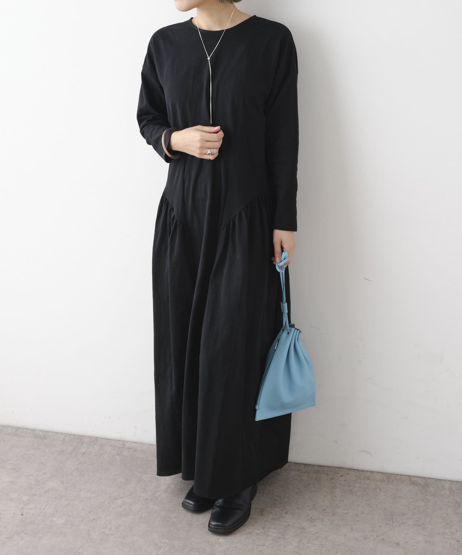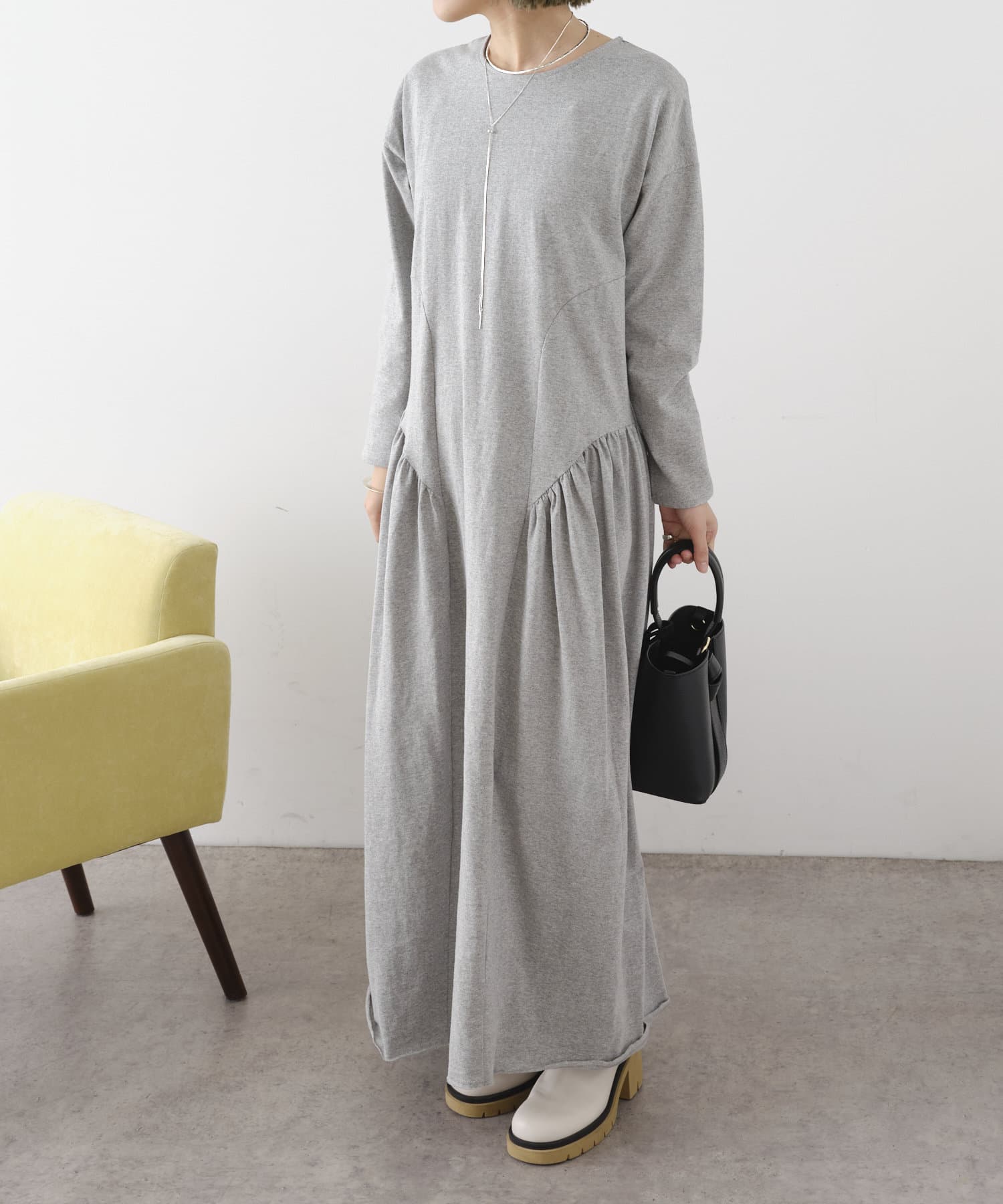 ラウンドギャザーカットロングドレス