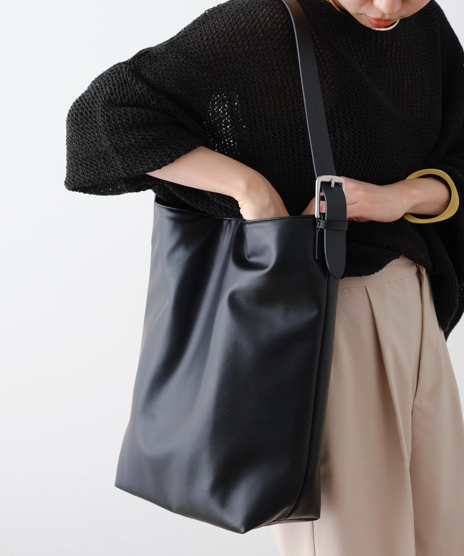 ・ハンドル部分がベルトで調節可能で、トートでもショルダーでもお使いいただけます。