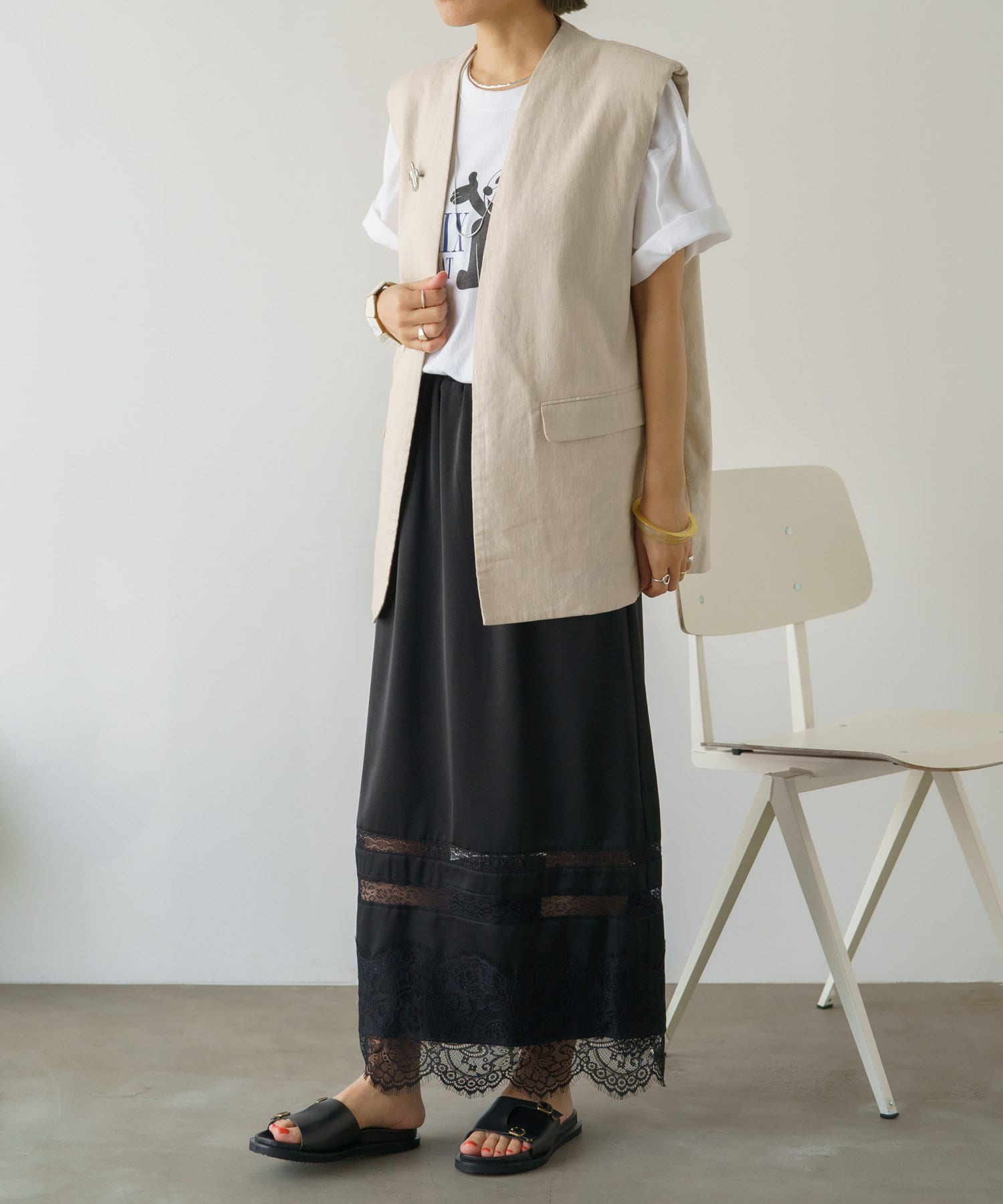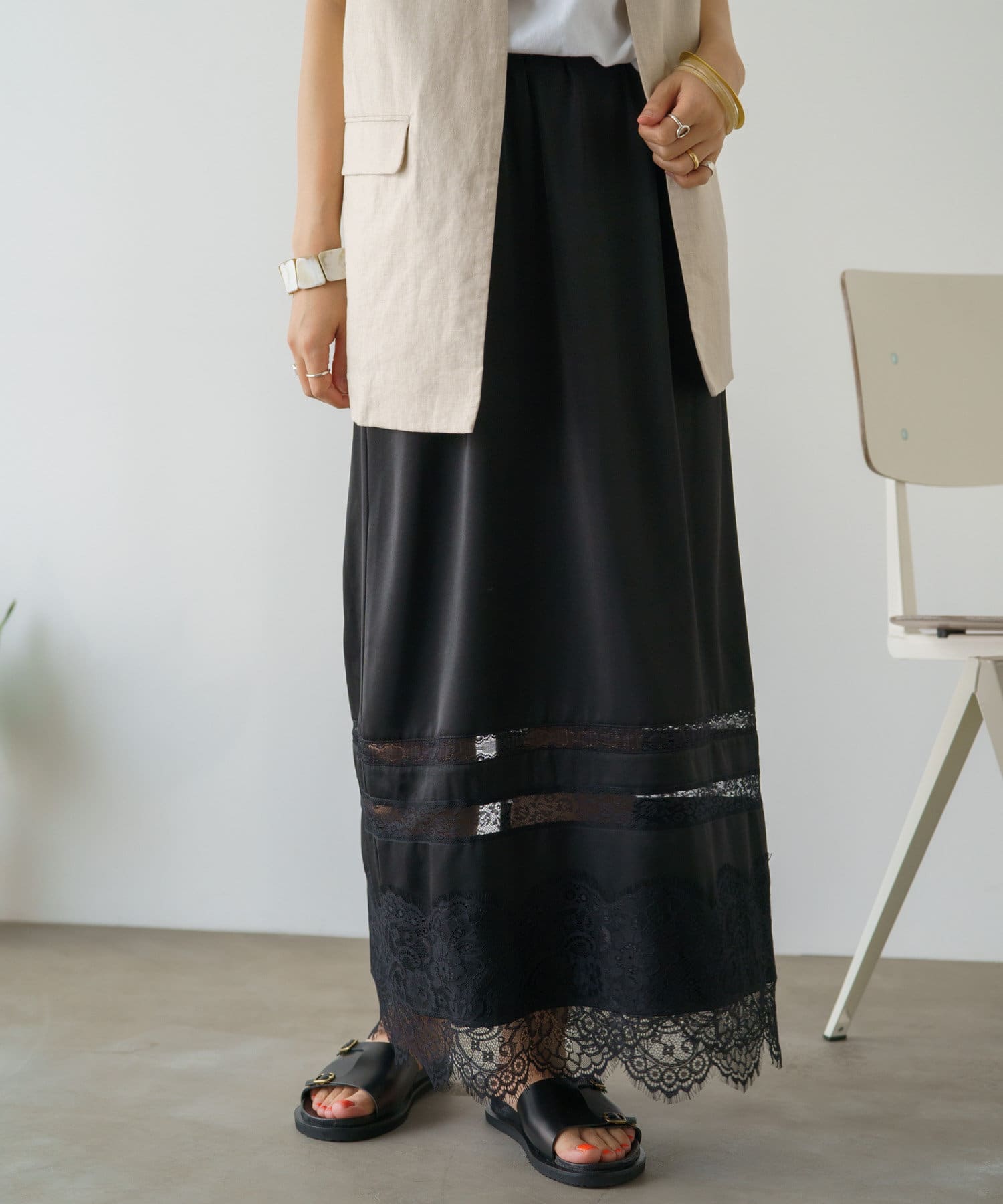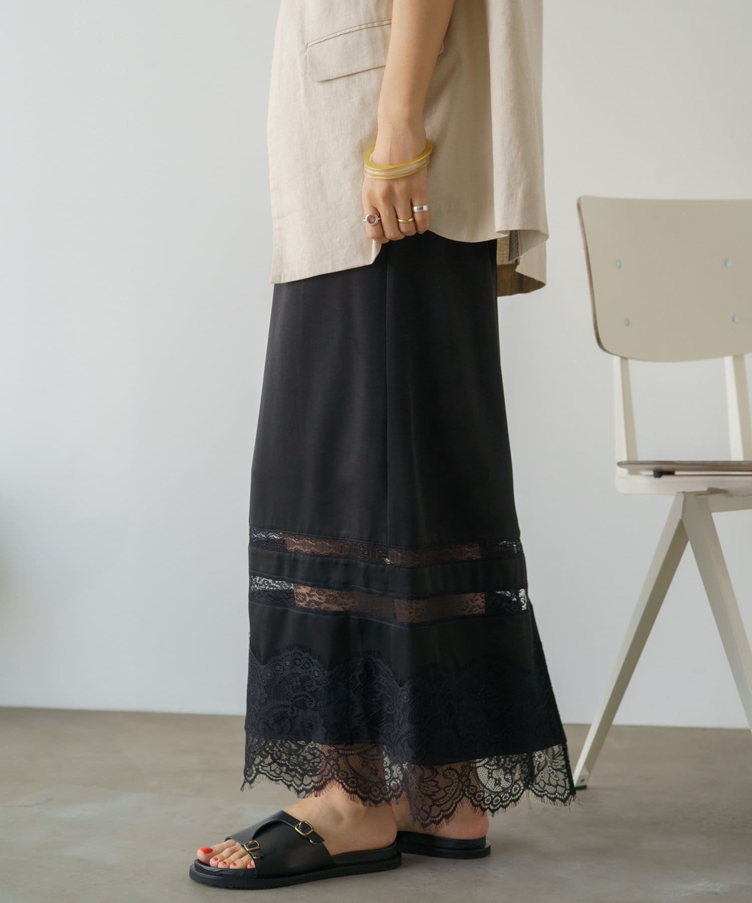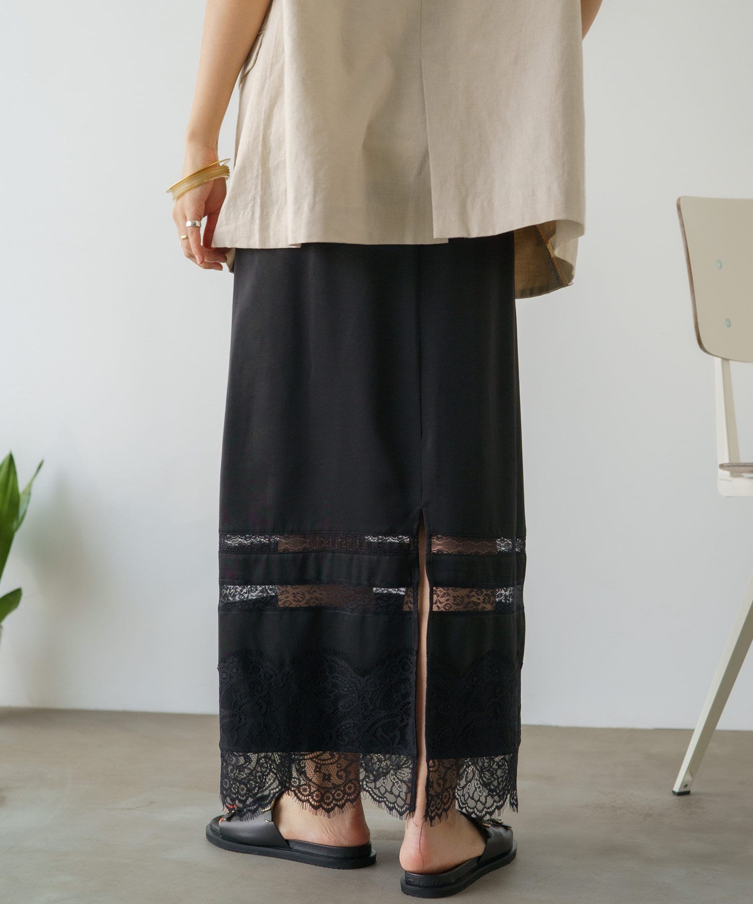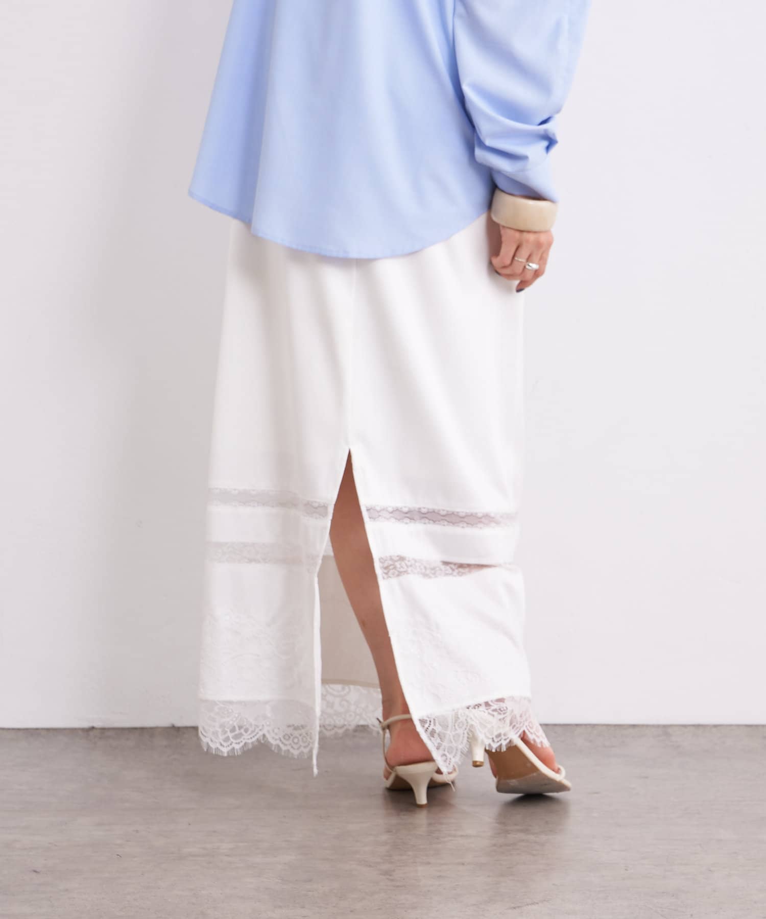 ・裾のレース使いがポイントになること間違いなしのタイトスカートです。