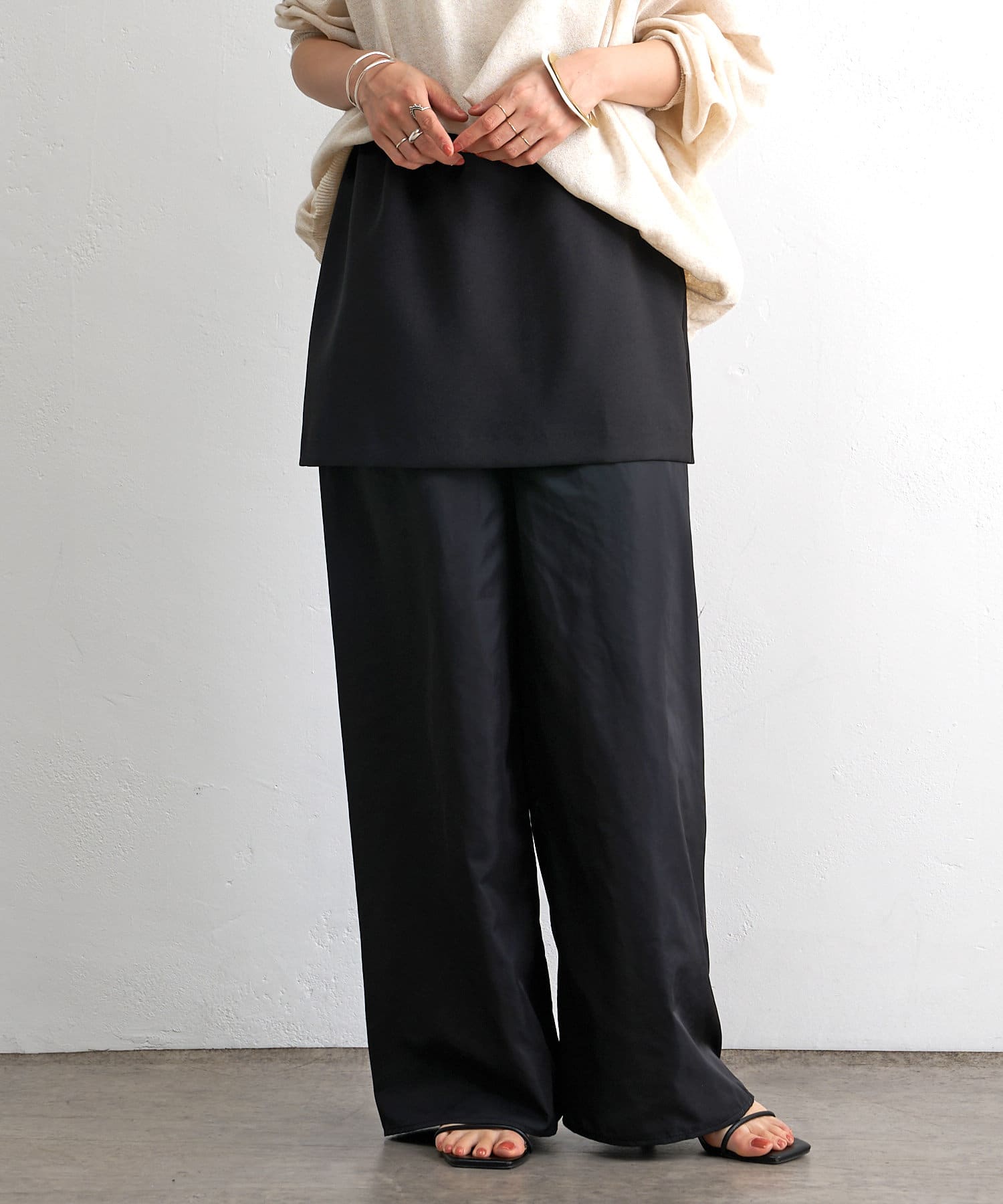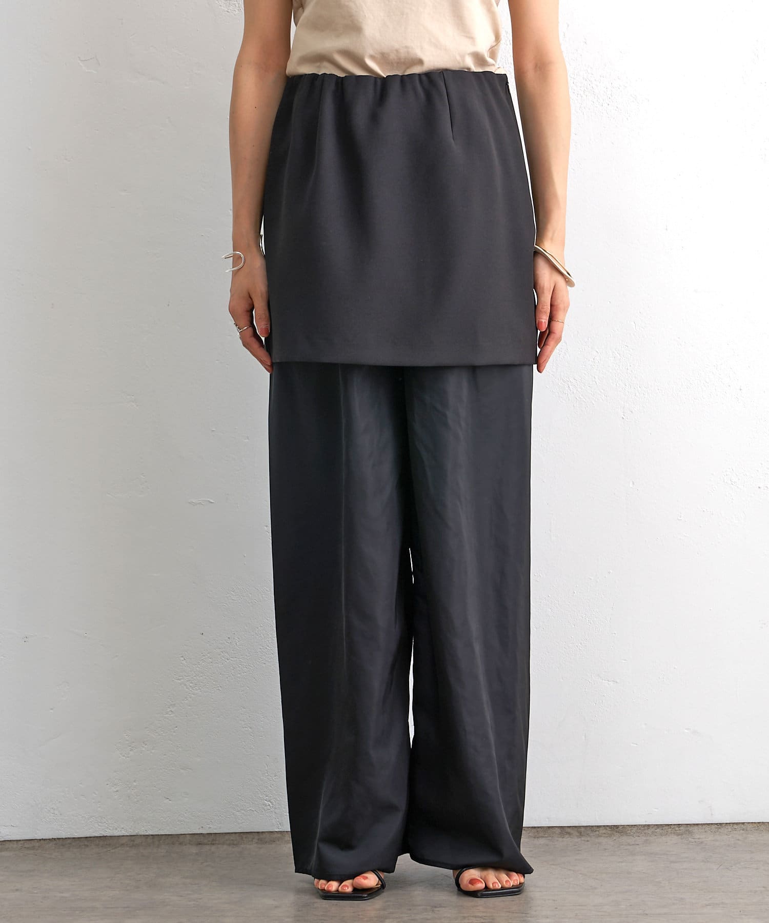 ・一枚ではもちろん、パンツとのレイヤードにぴったりなイージーミニスカート
