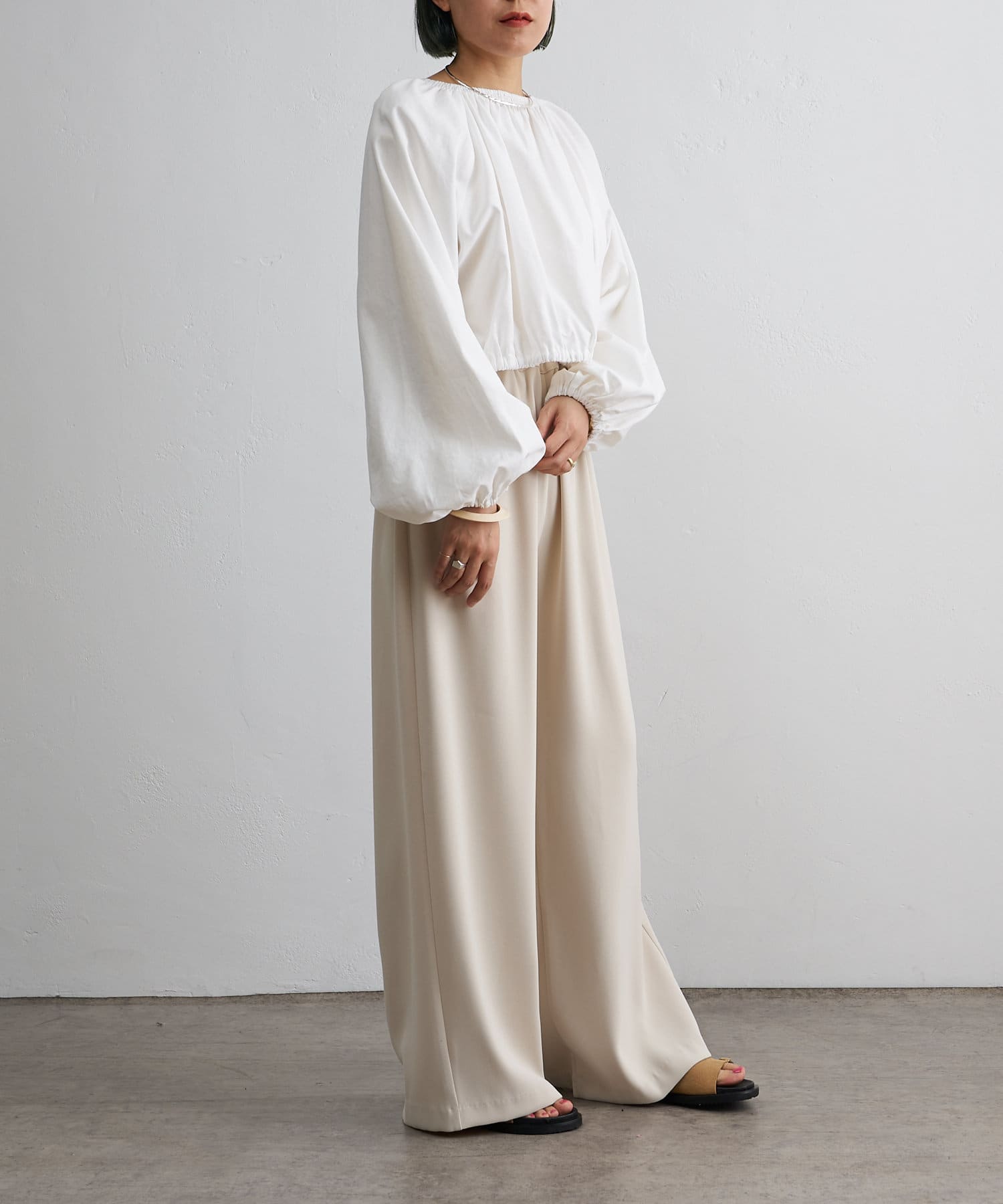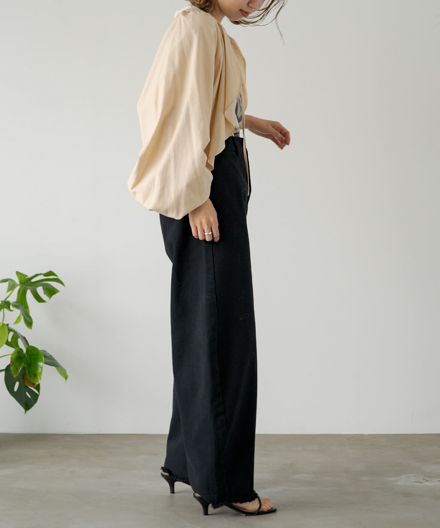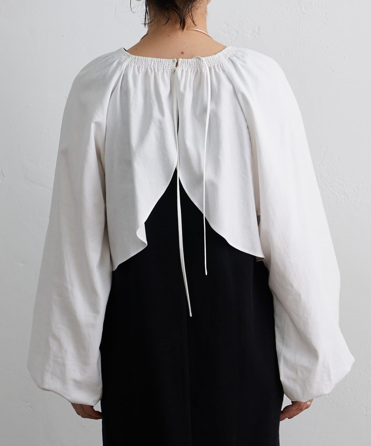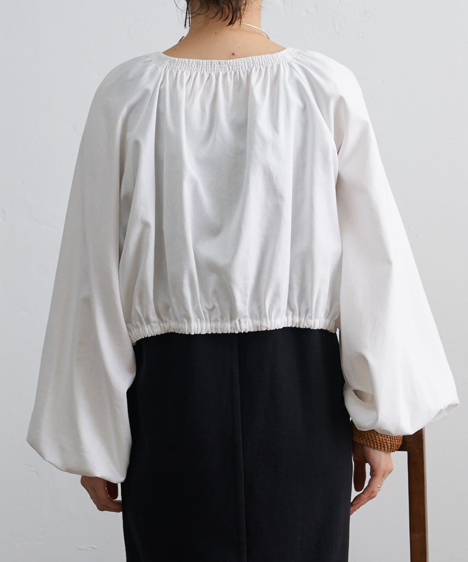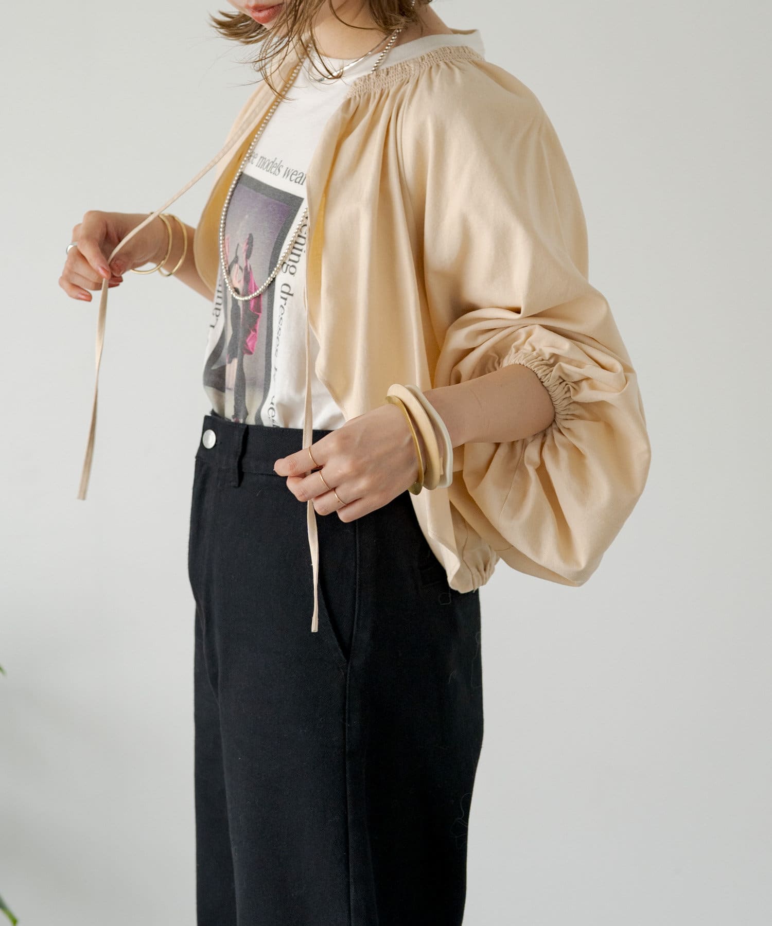 ・程よい袖ボリュームがポイントになりながらも、旬なショート丈でバランスが取りやすい一着。