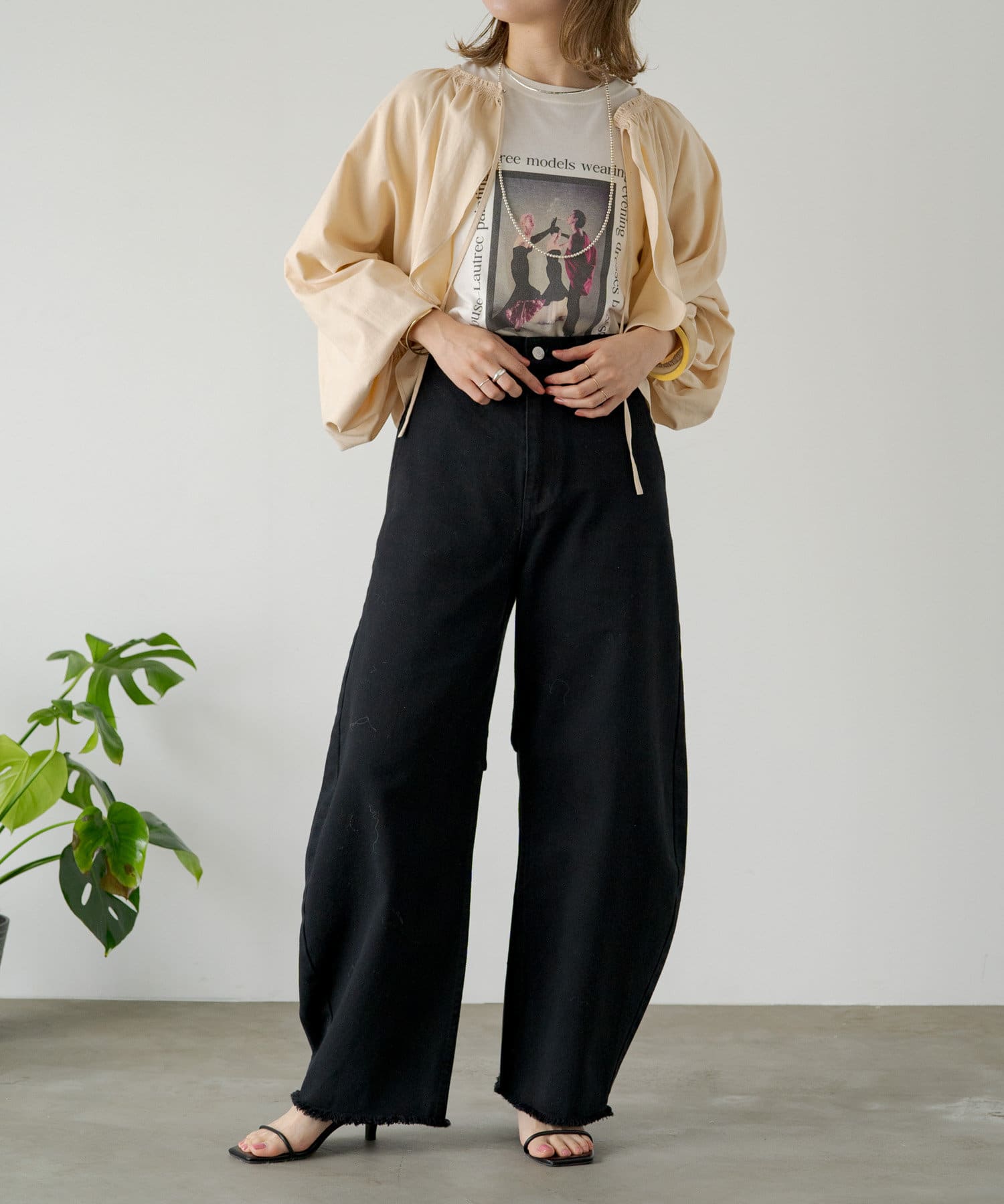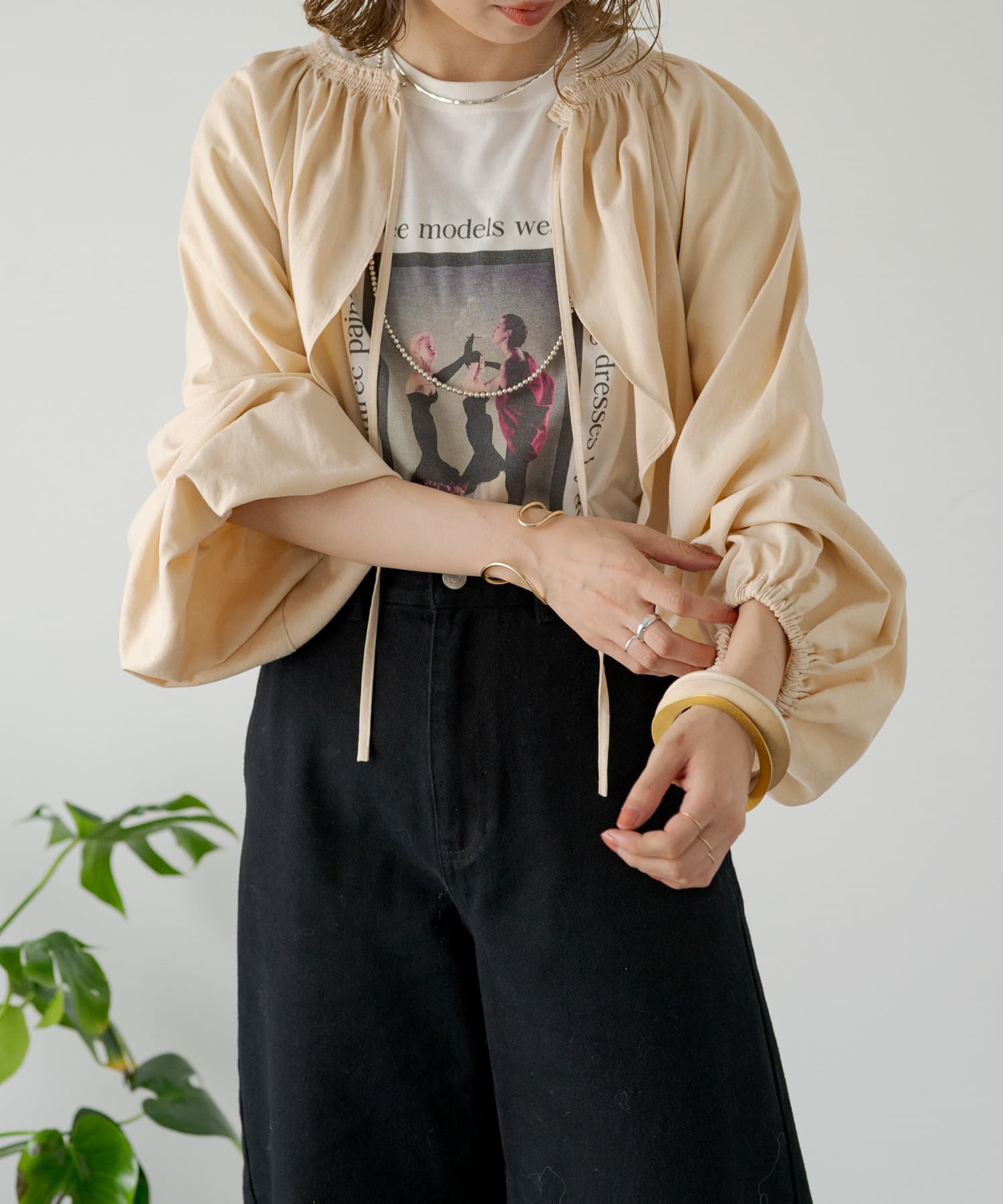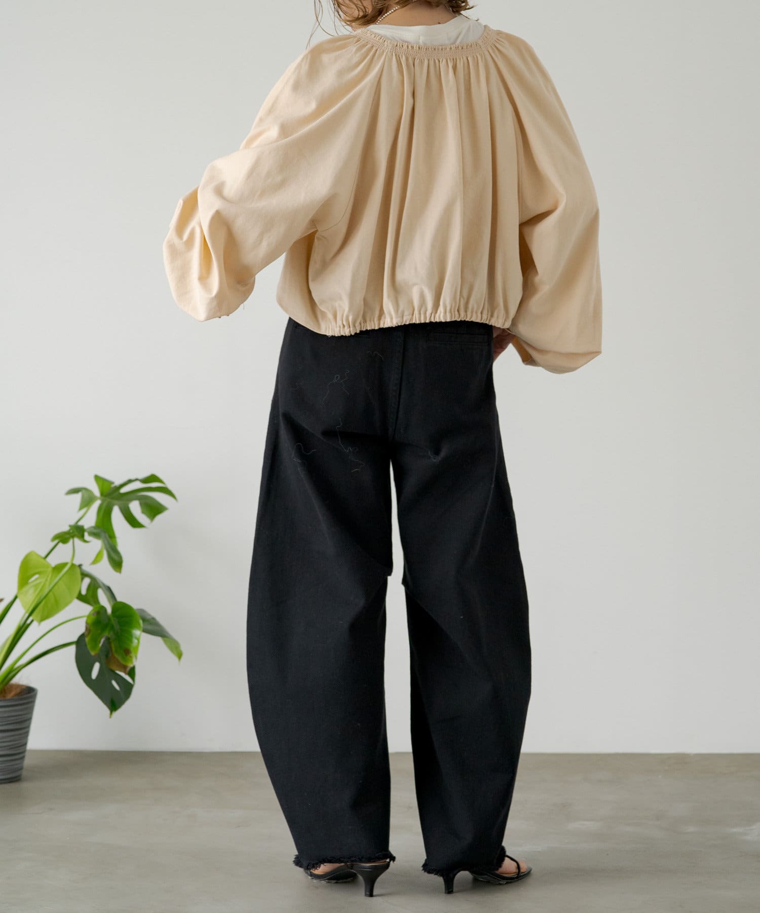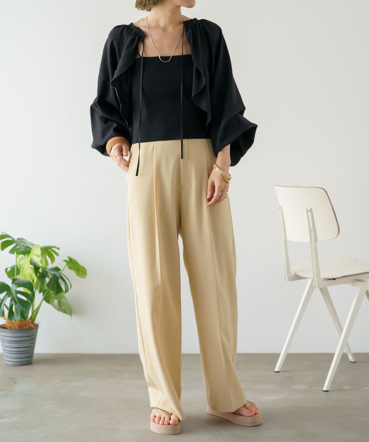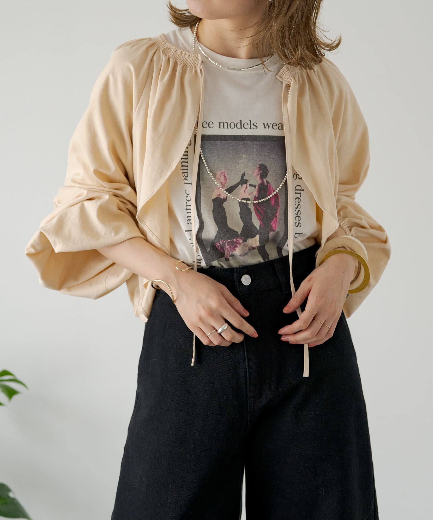 ・程よい袖ボリュームがポイントになりながらも、旬なショート丈でバランスが取りやすい一着。