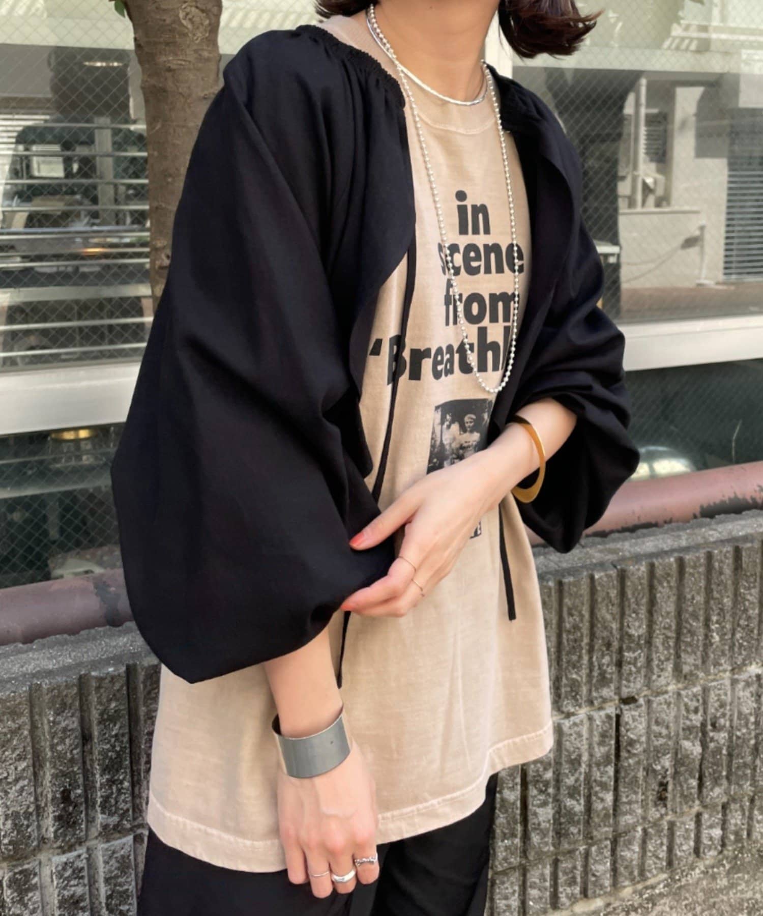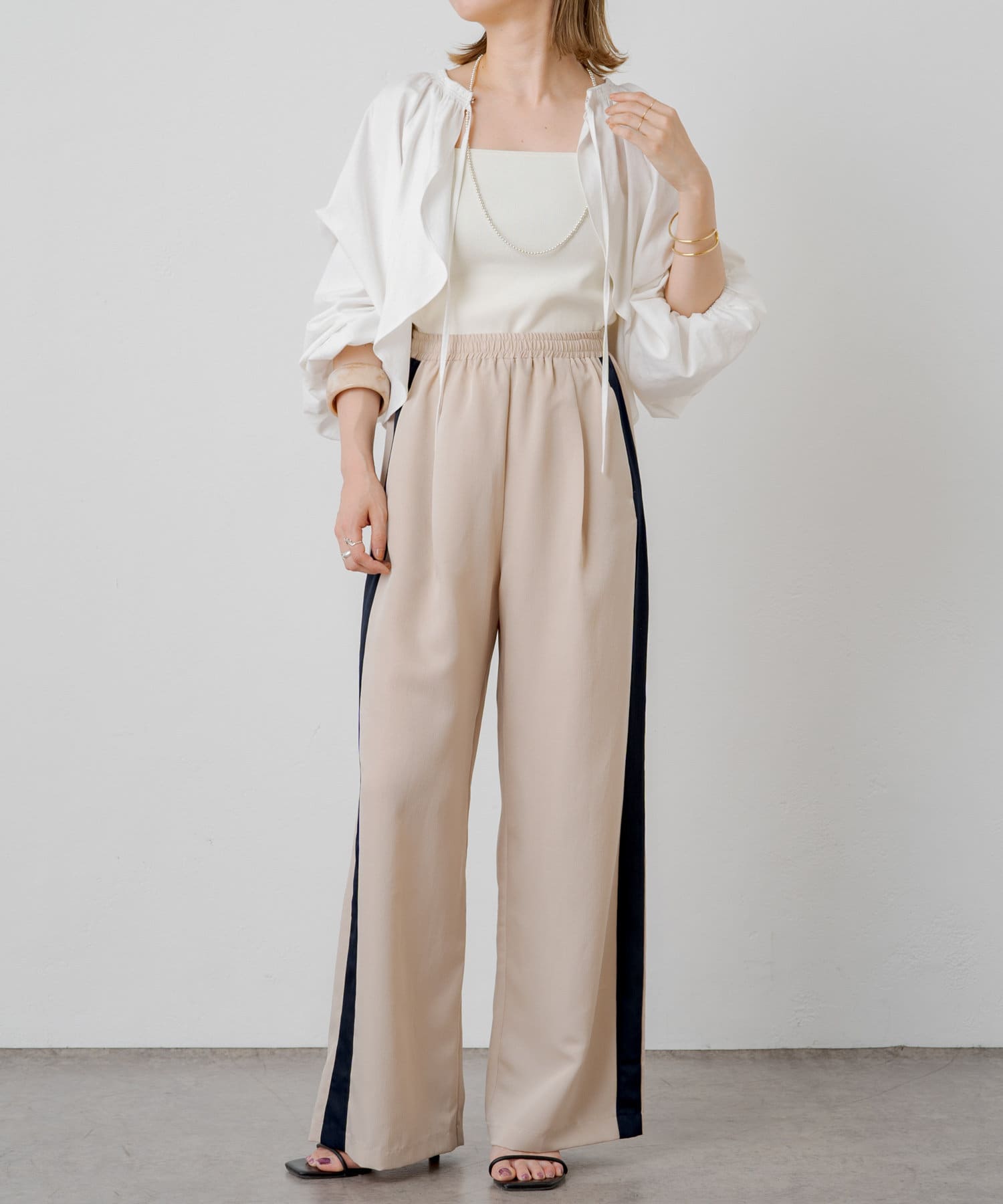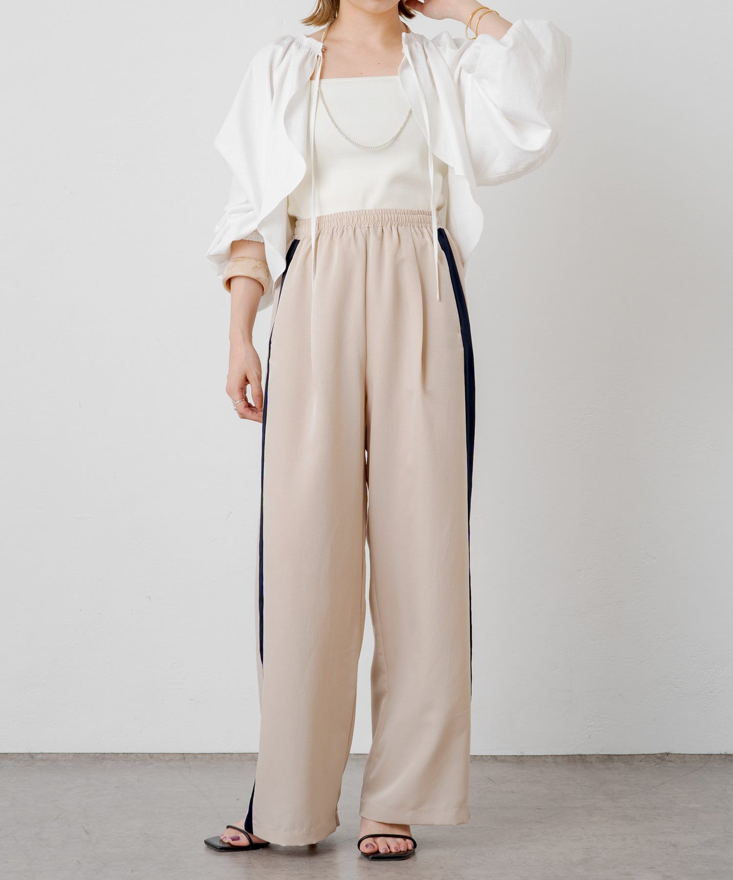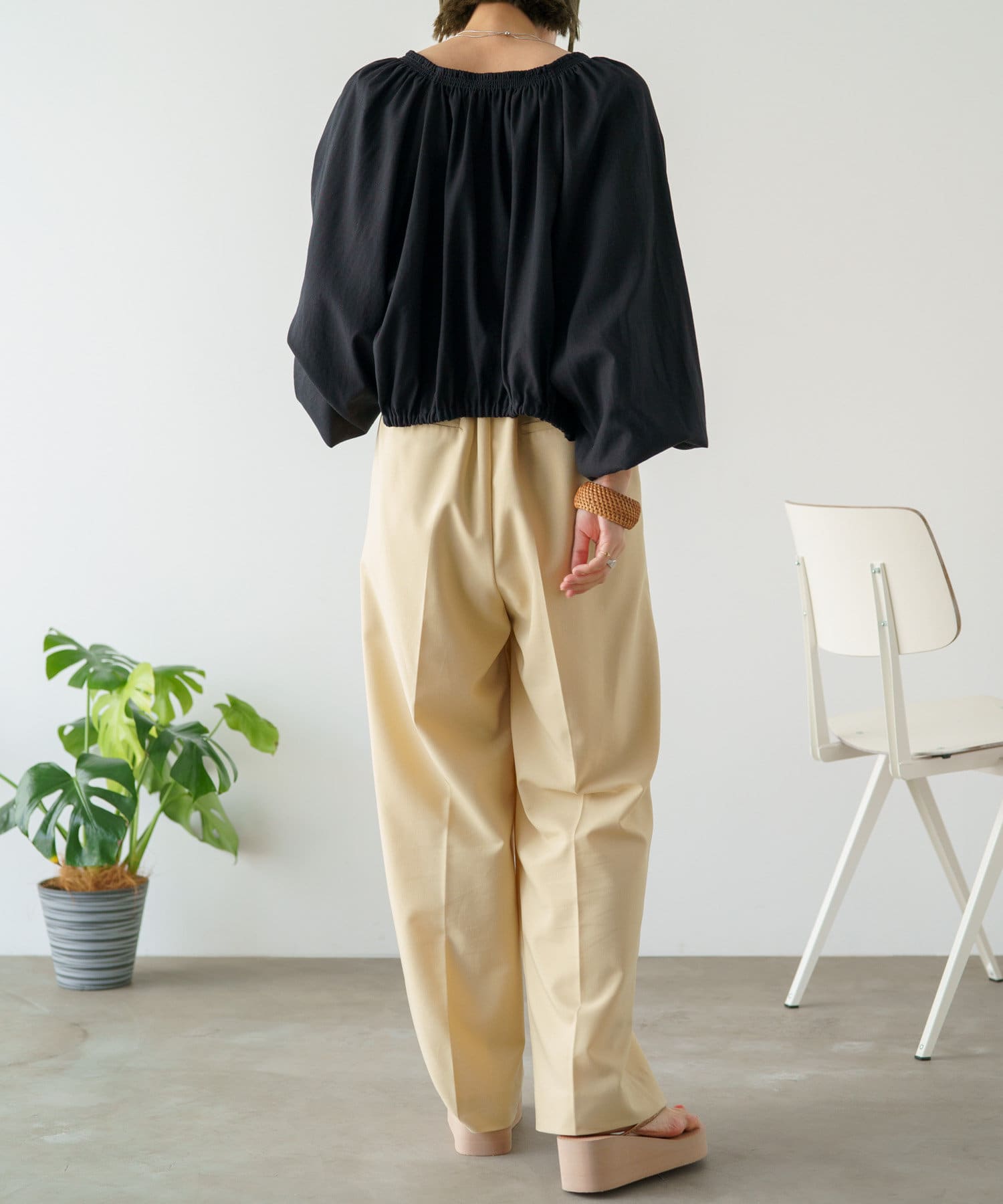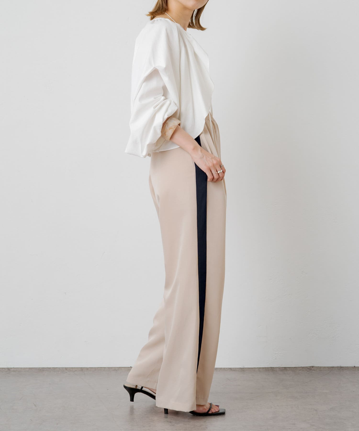 ・程よい袖ボリュームがポイントになりながらも、旬なショート丈でバランスが取りやすい一着。