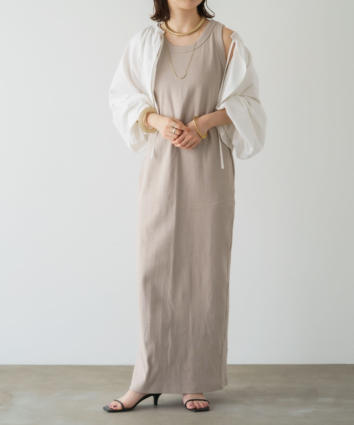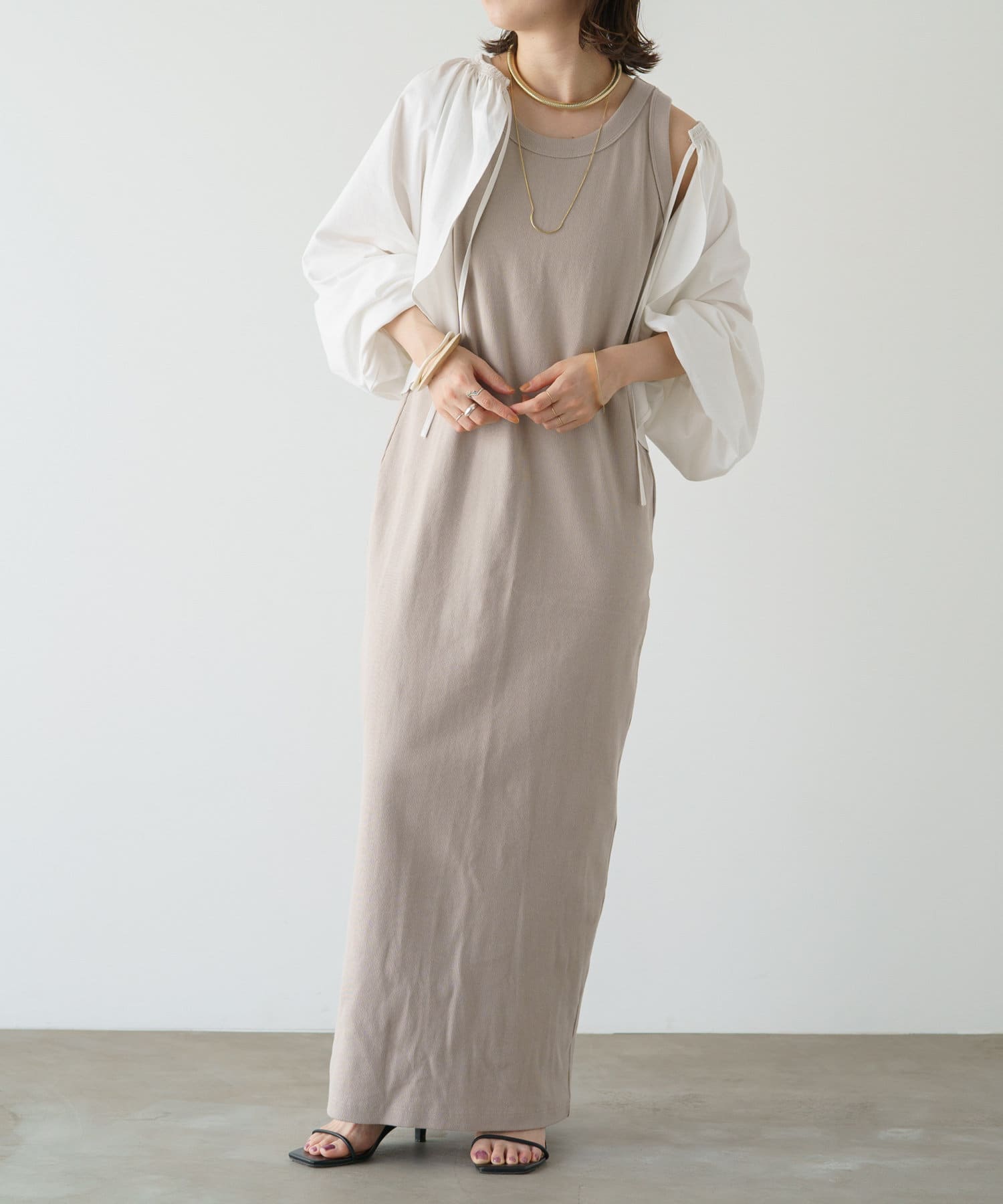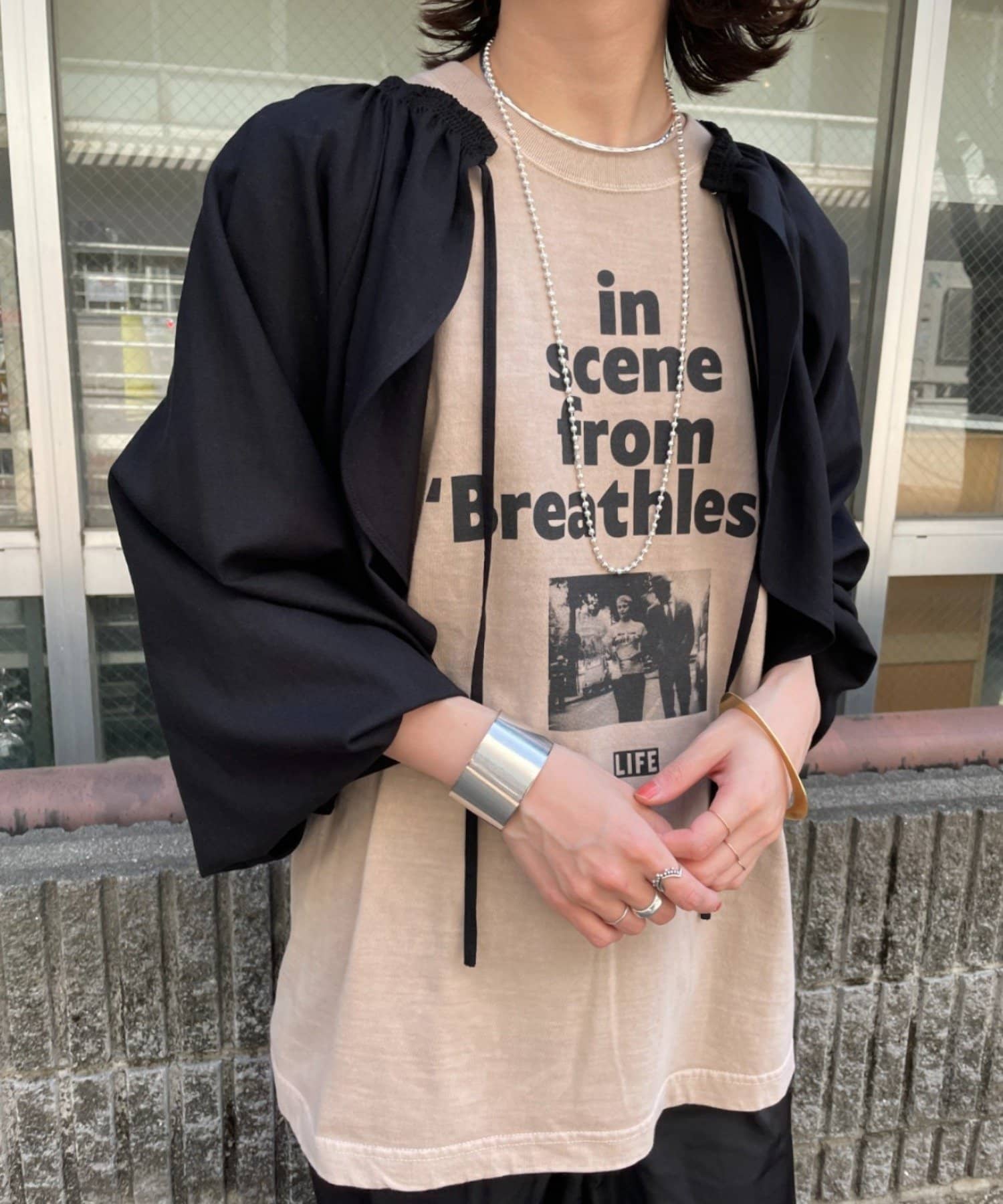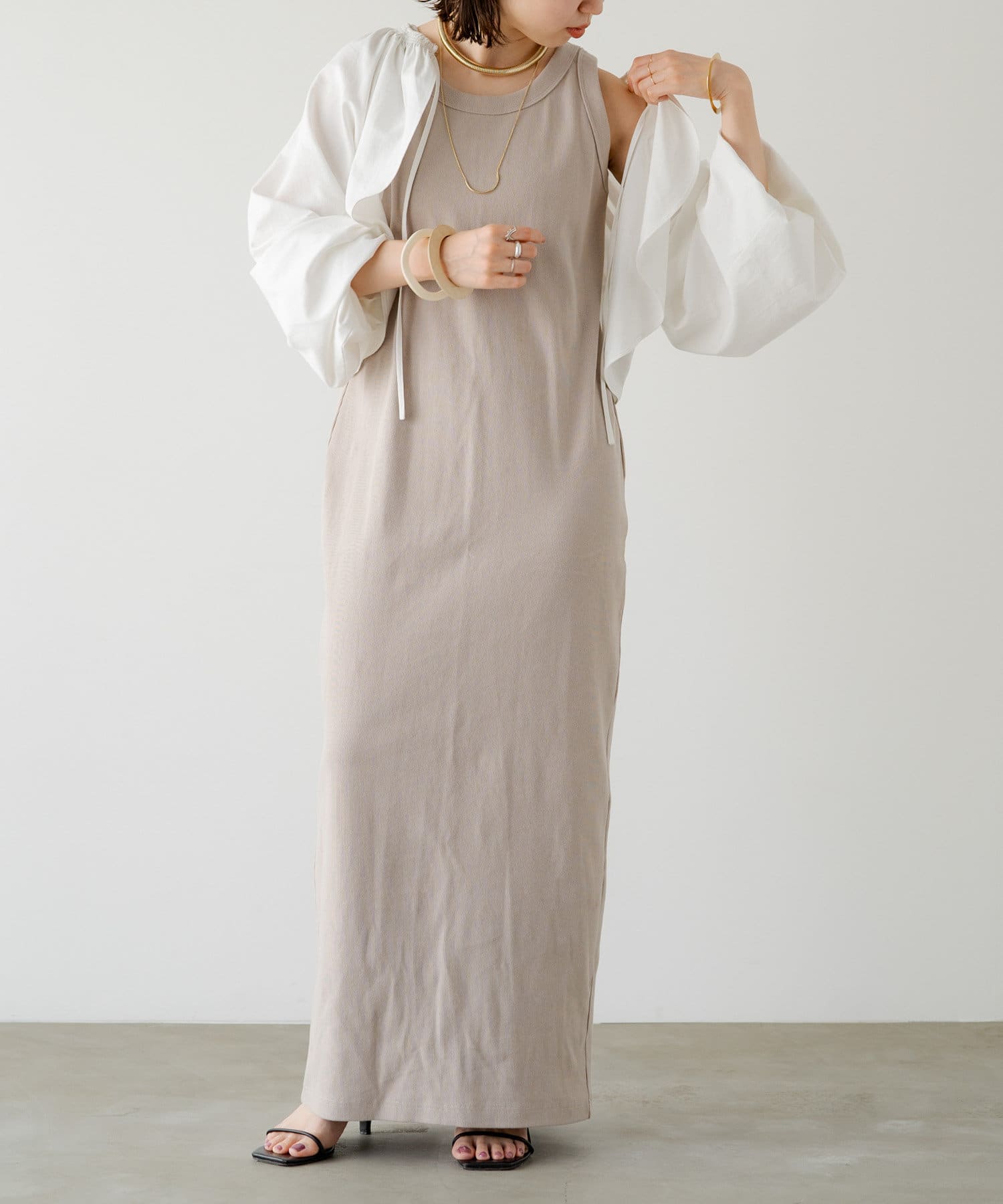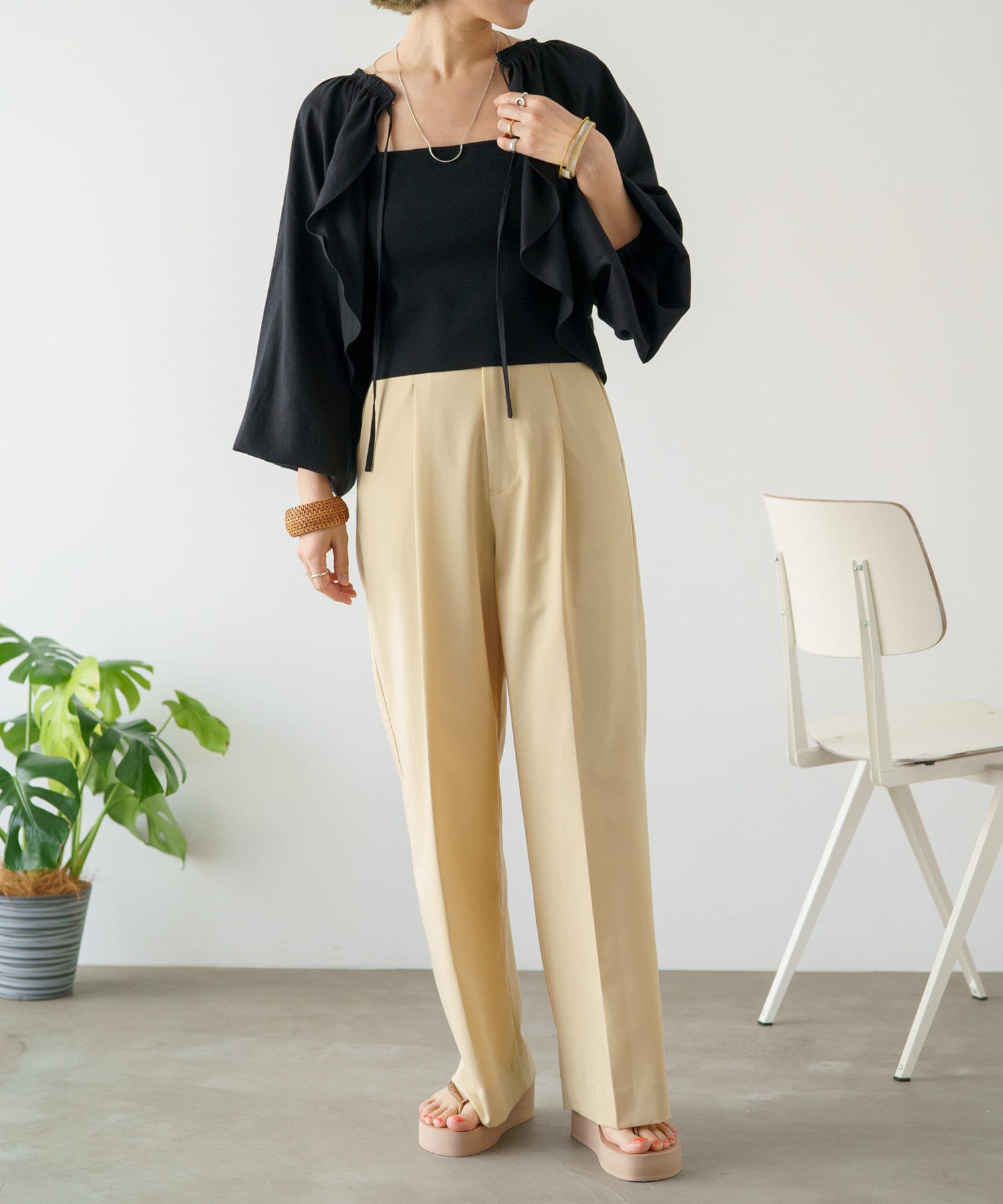 ・程よい袖ボリュームがポイントになりながらも、旬なショート丈でバランスが取りやすい一着。