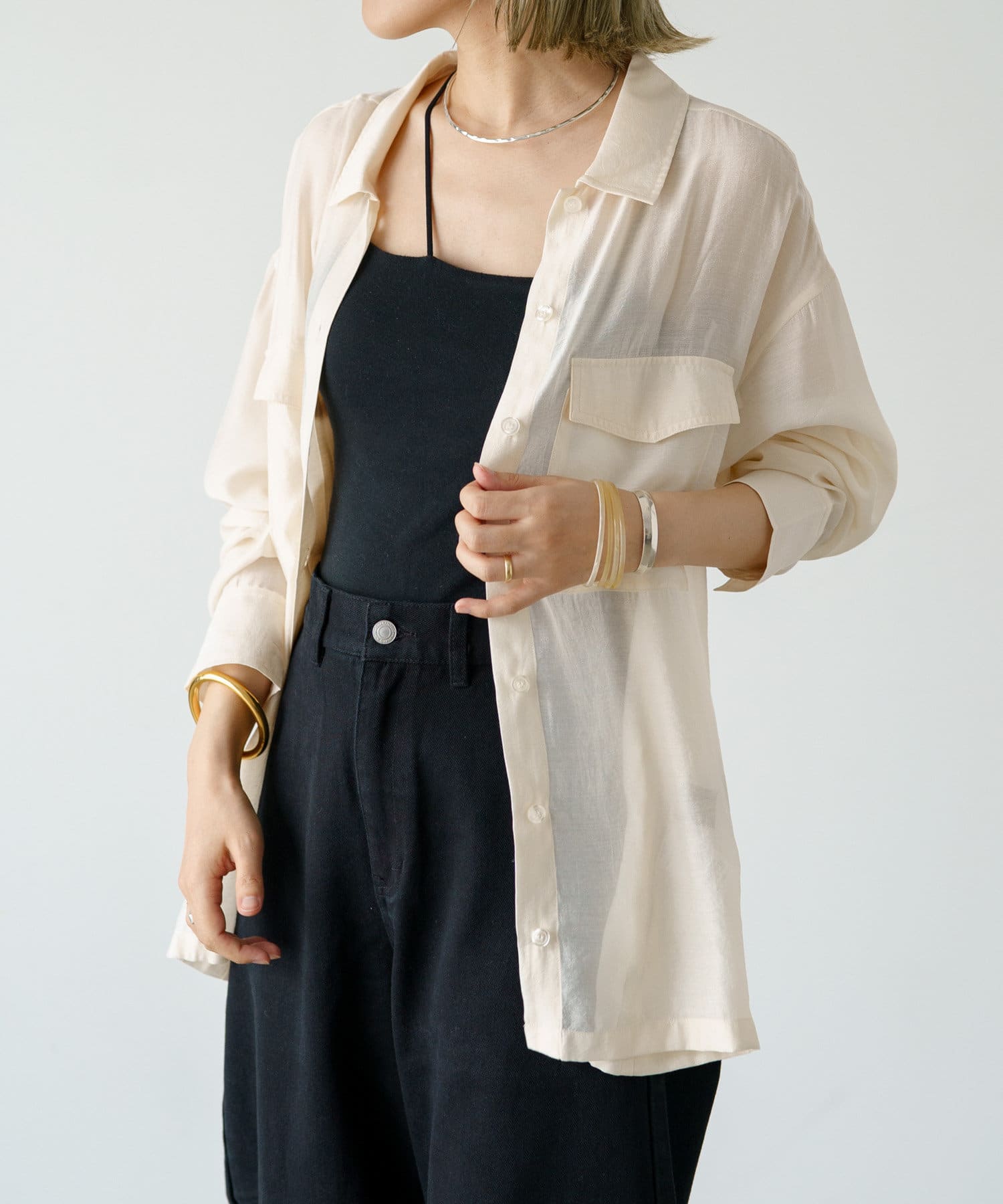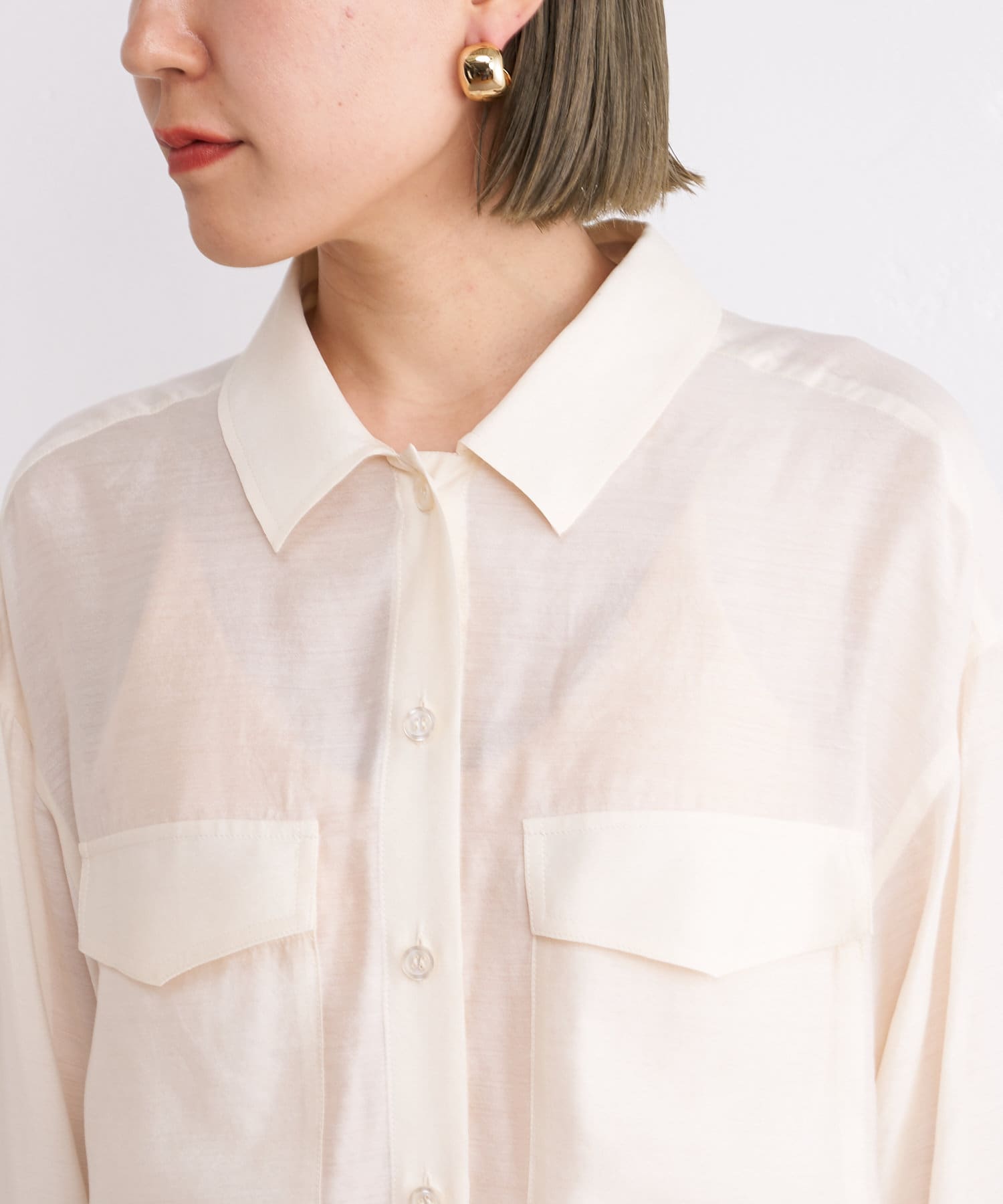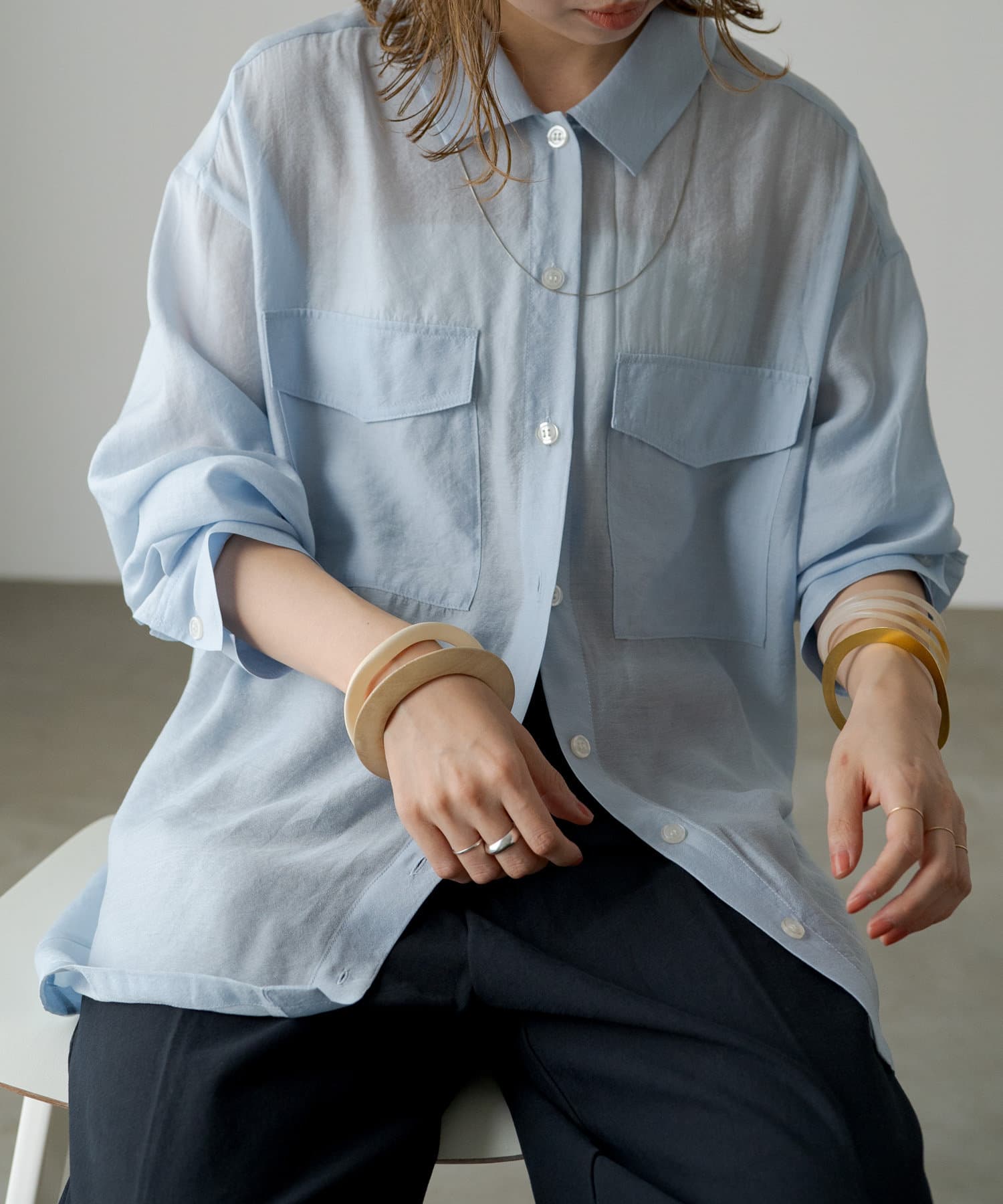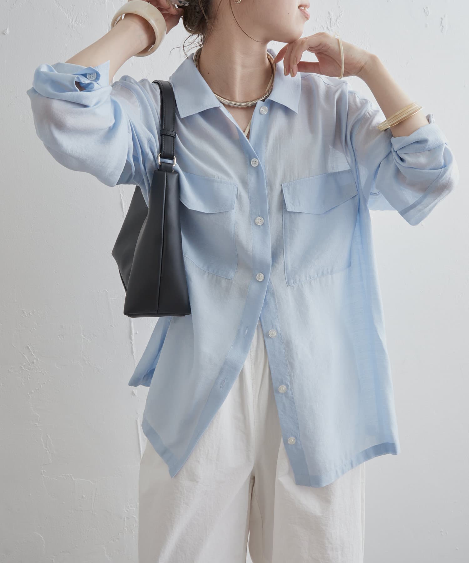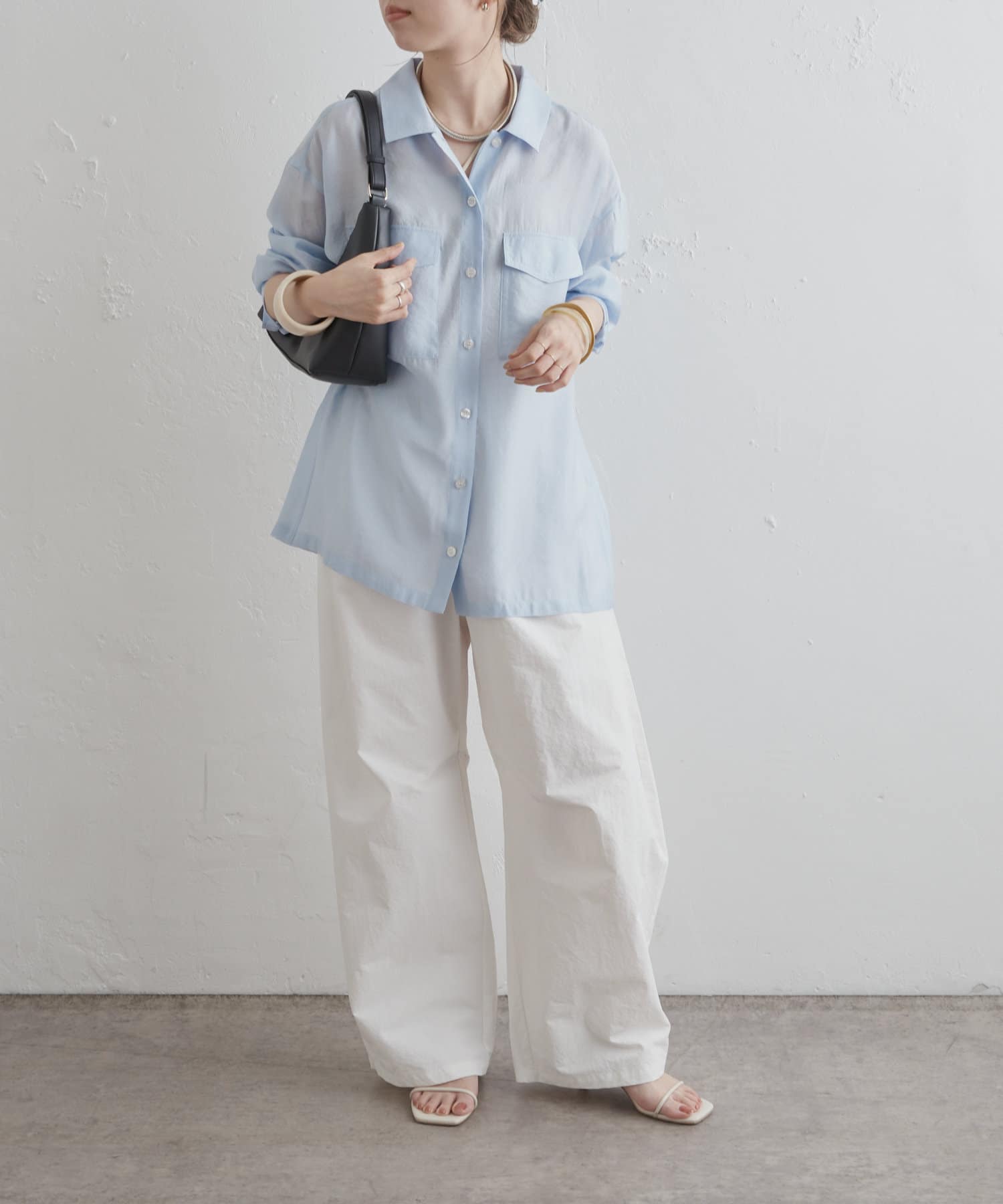 ポケット使いがポイントの着回し抜群のシアーシャツ