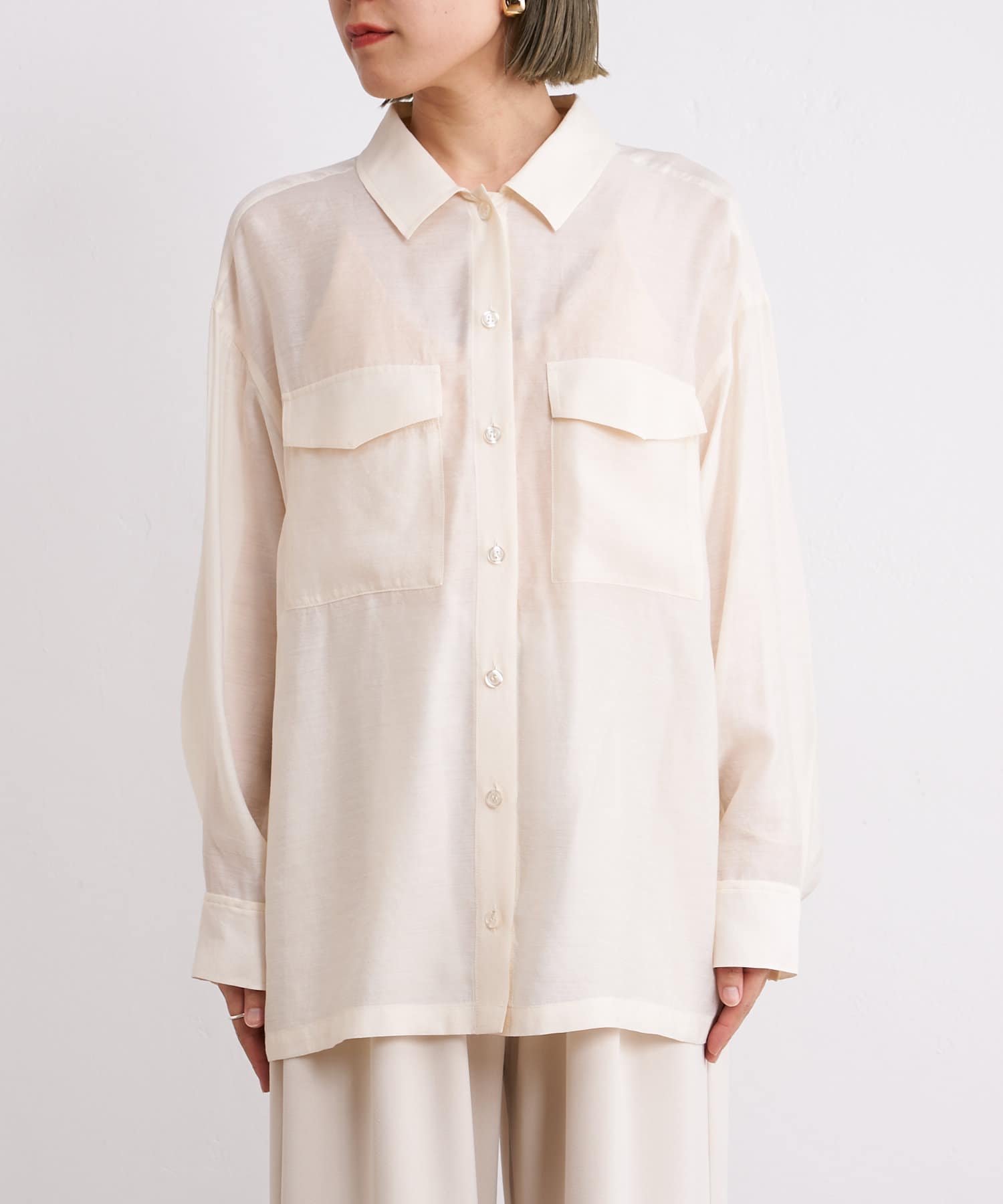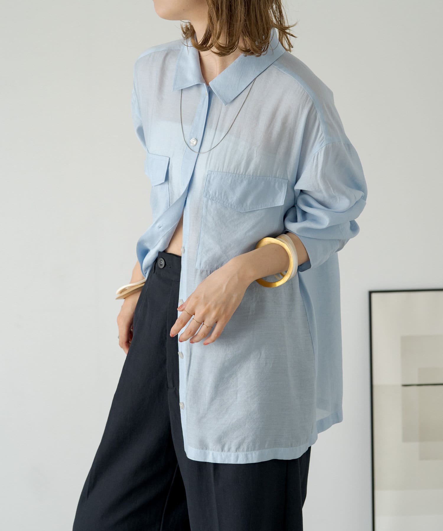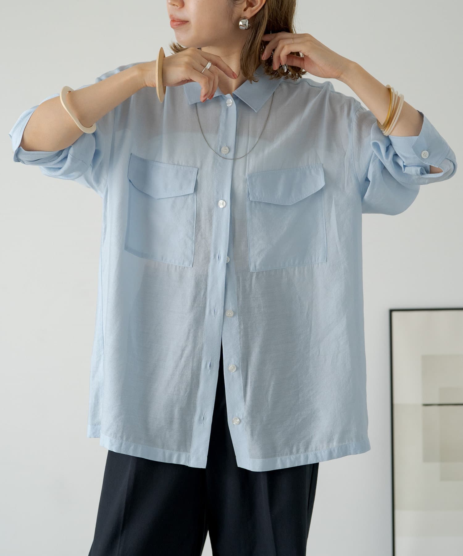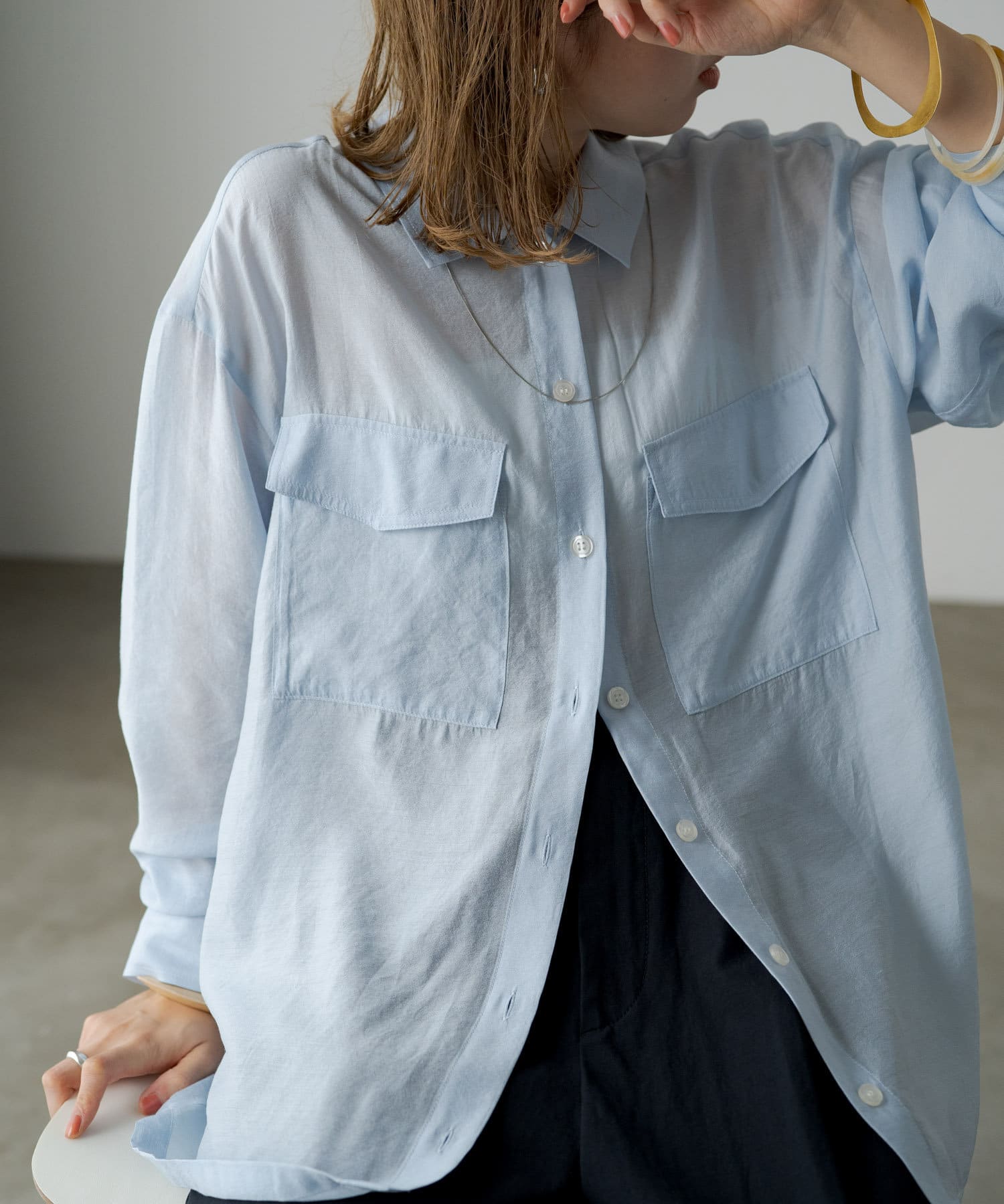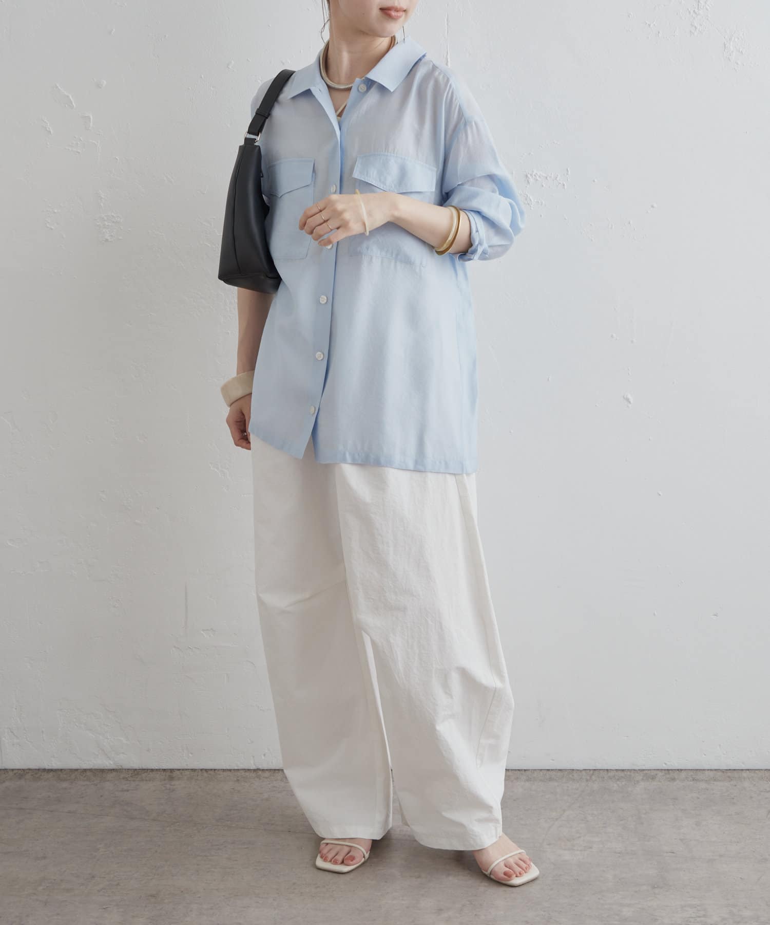 ポケット使いがポイントの着回し抜群のシアーシャツ