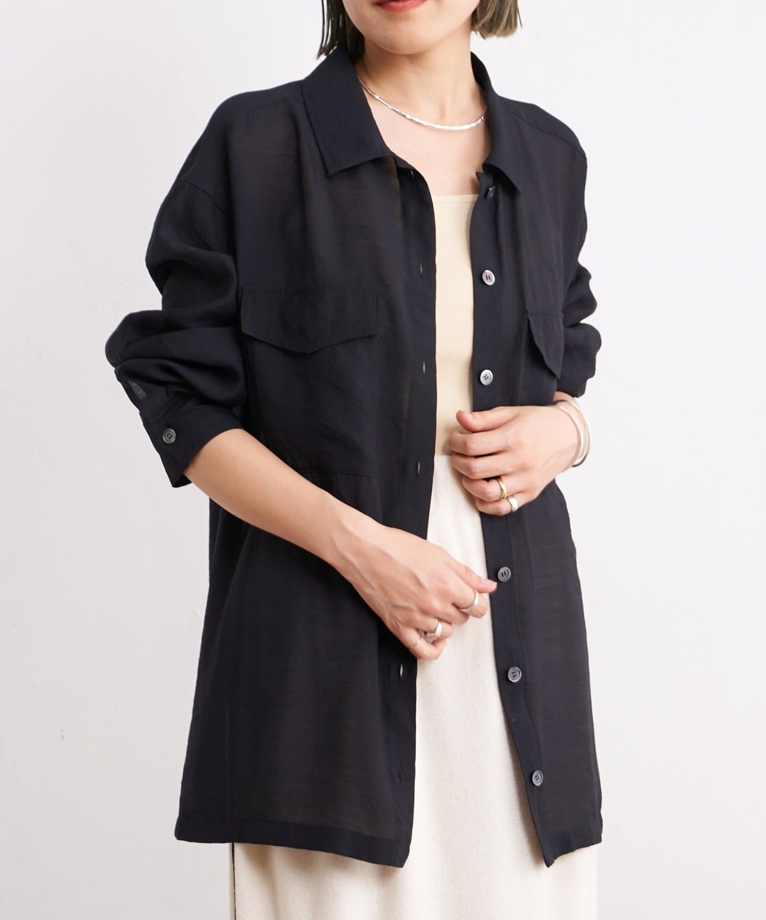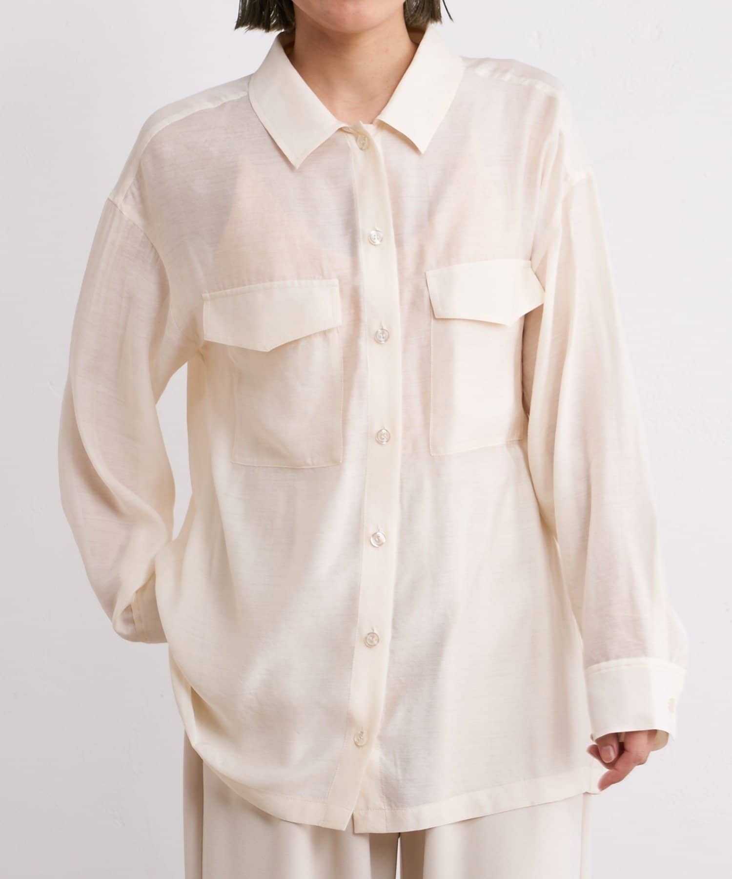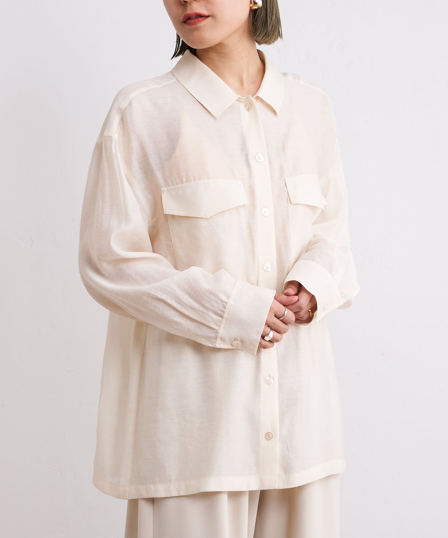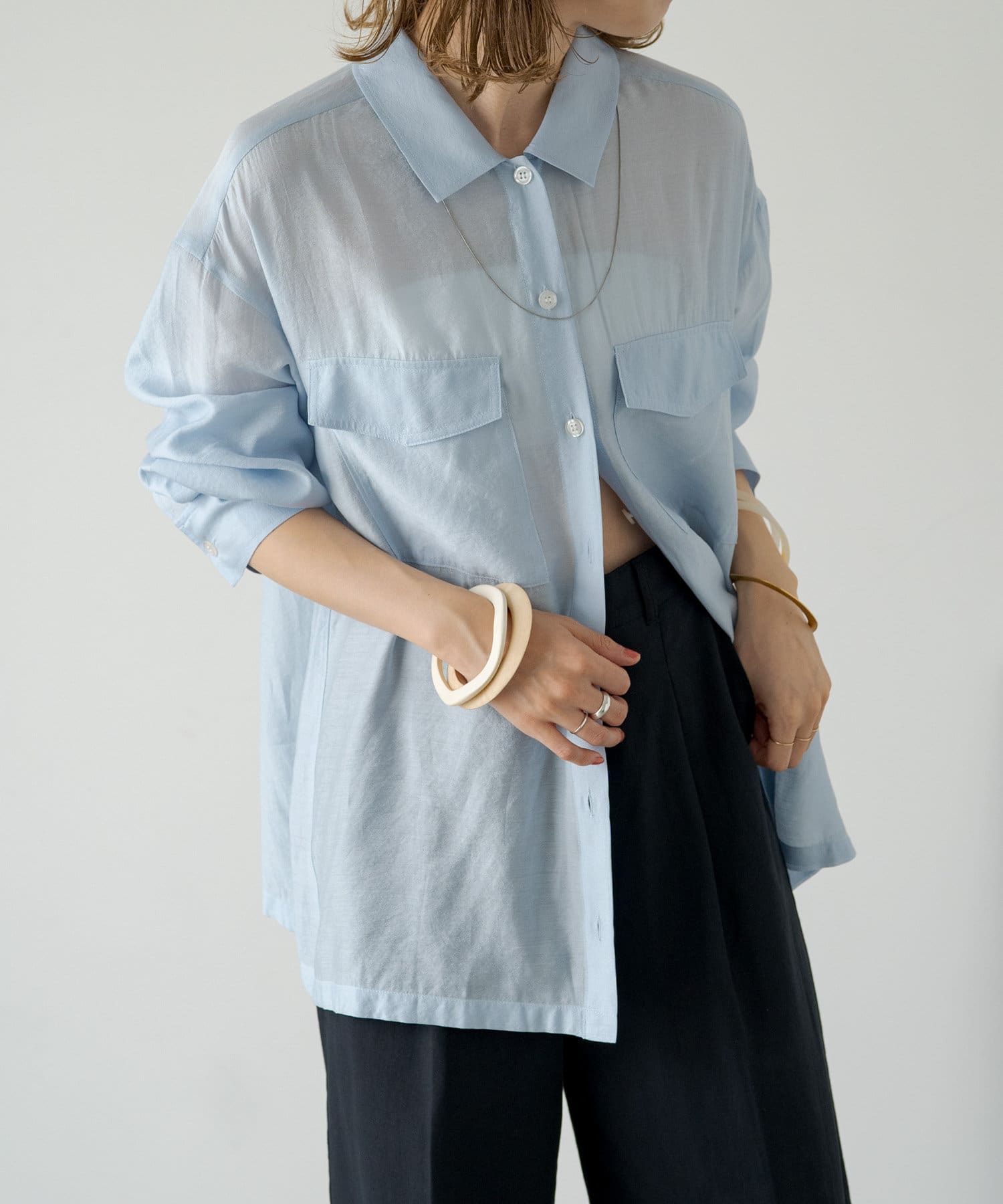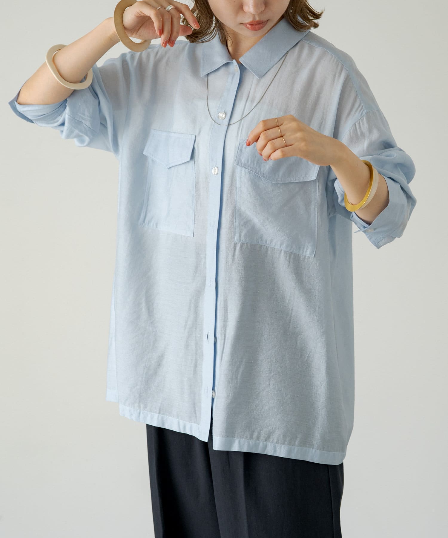 ポケット使いがポイントの着回し抜群のシアーシャツ
