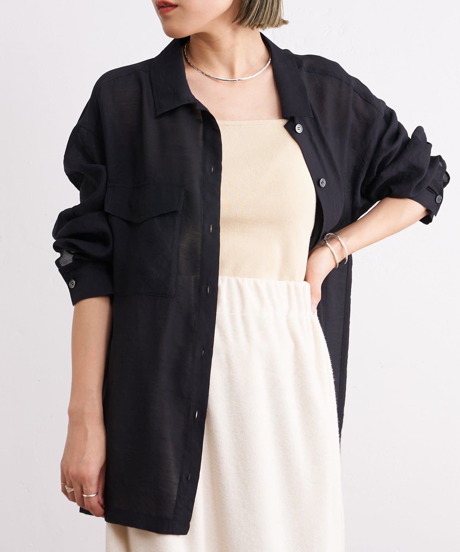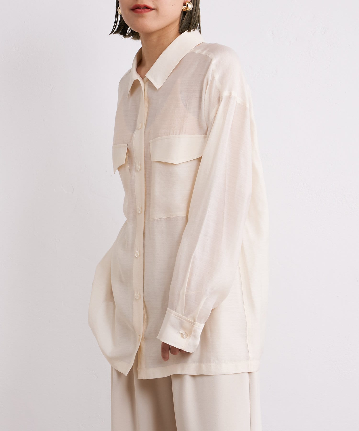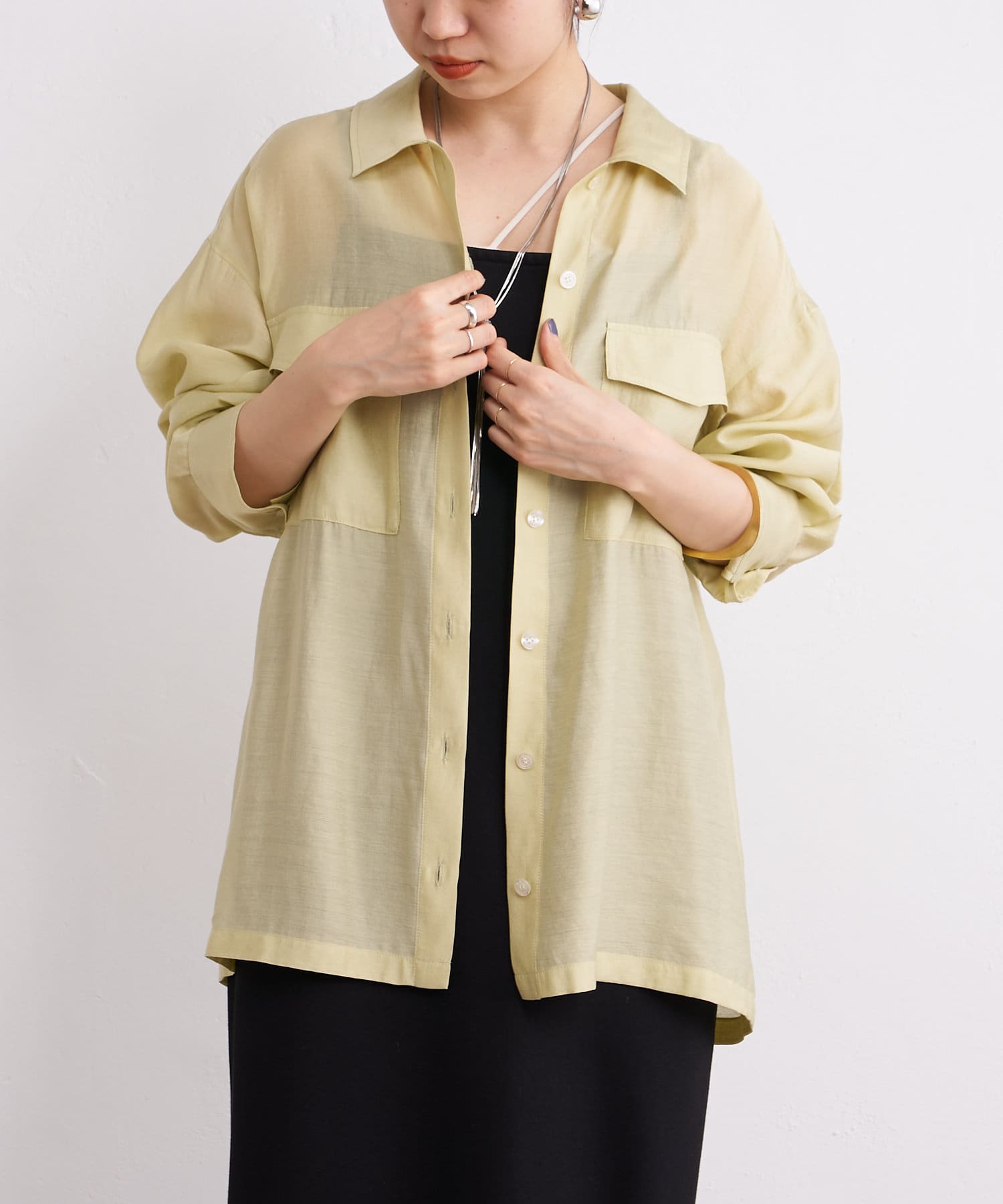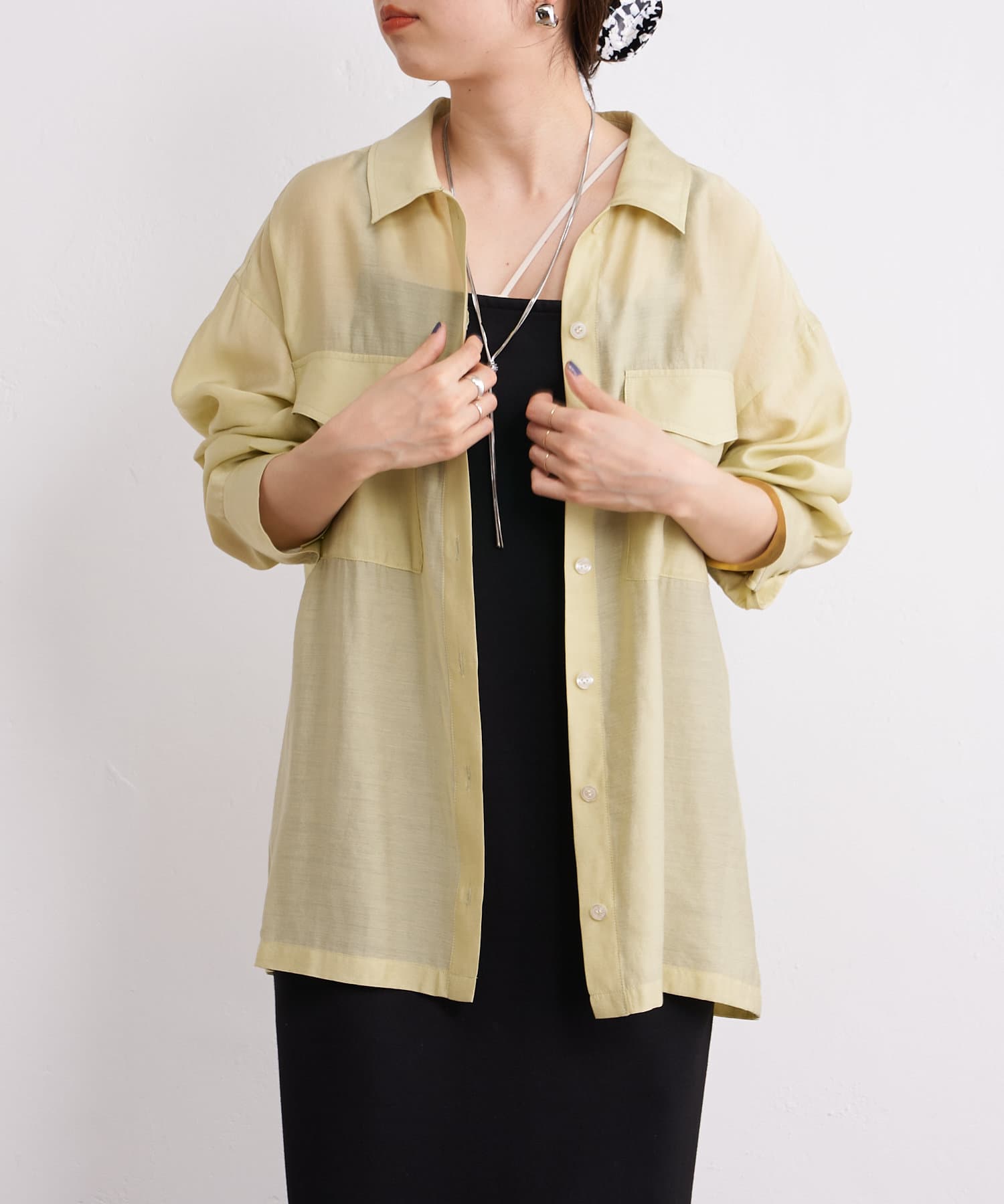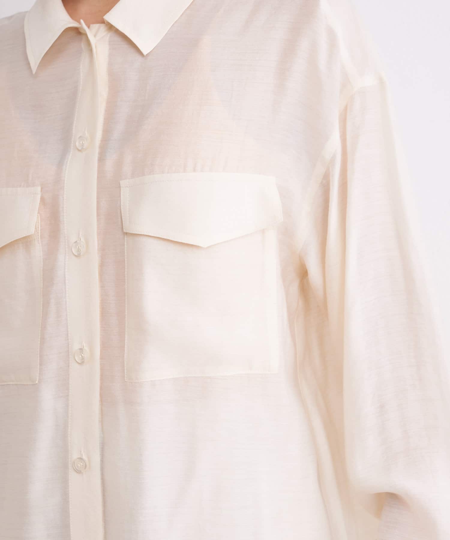 ポケット使いがポイントの着回し抜群のシアーシャツ