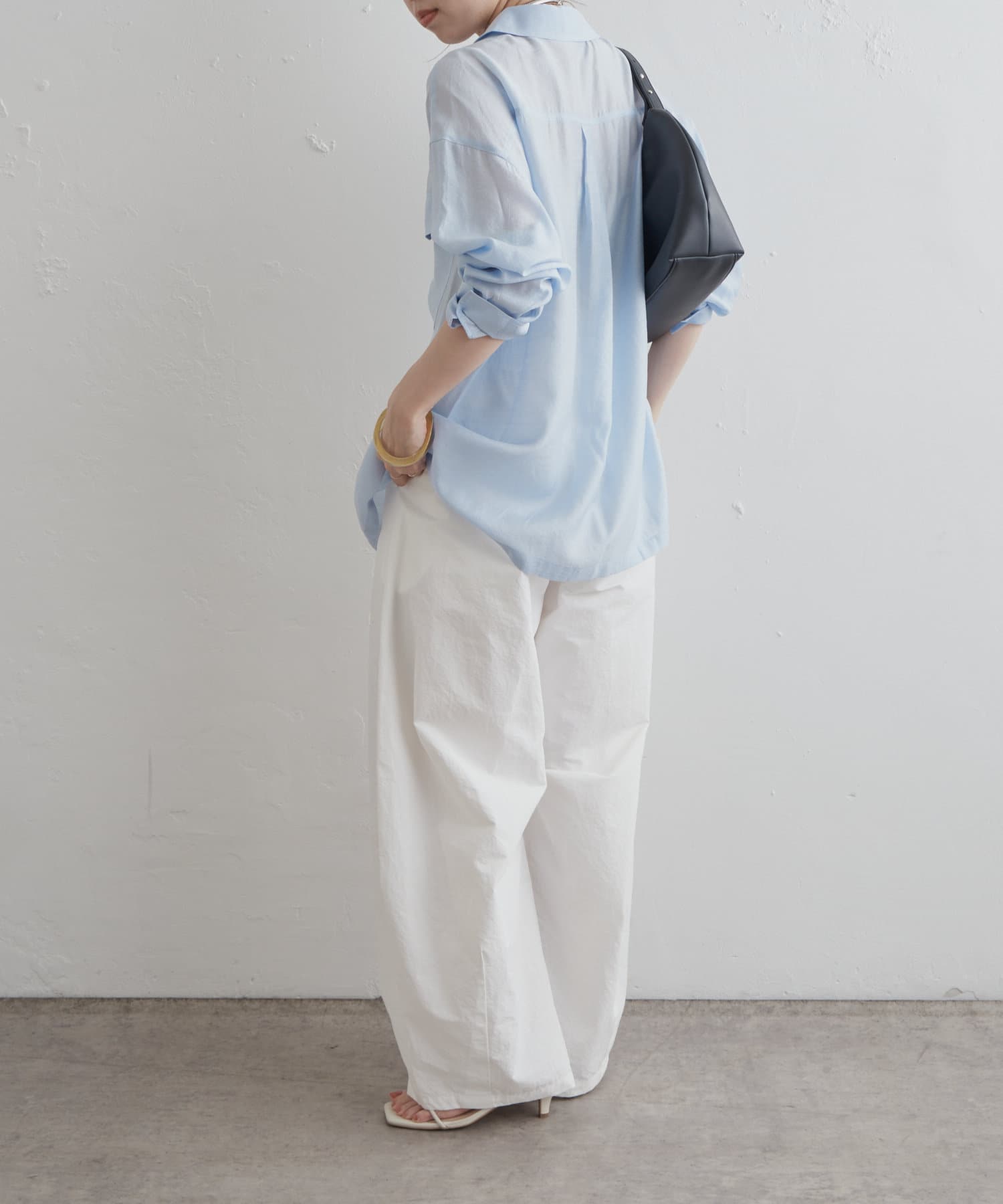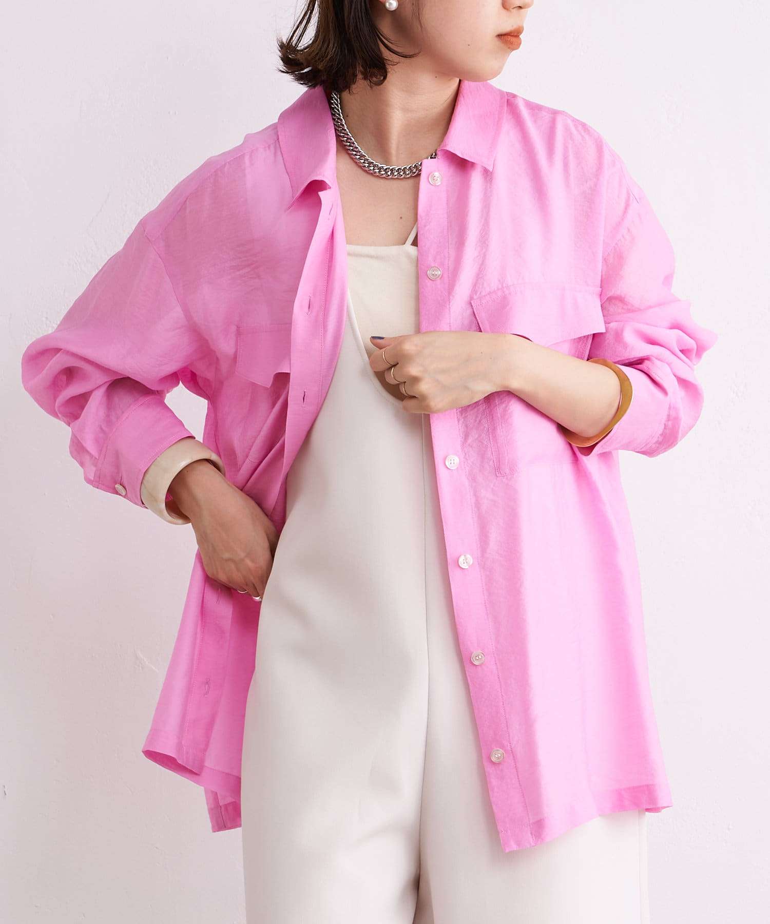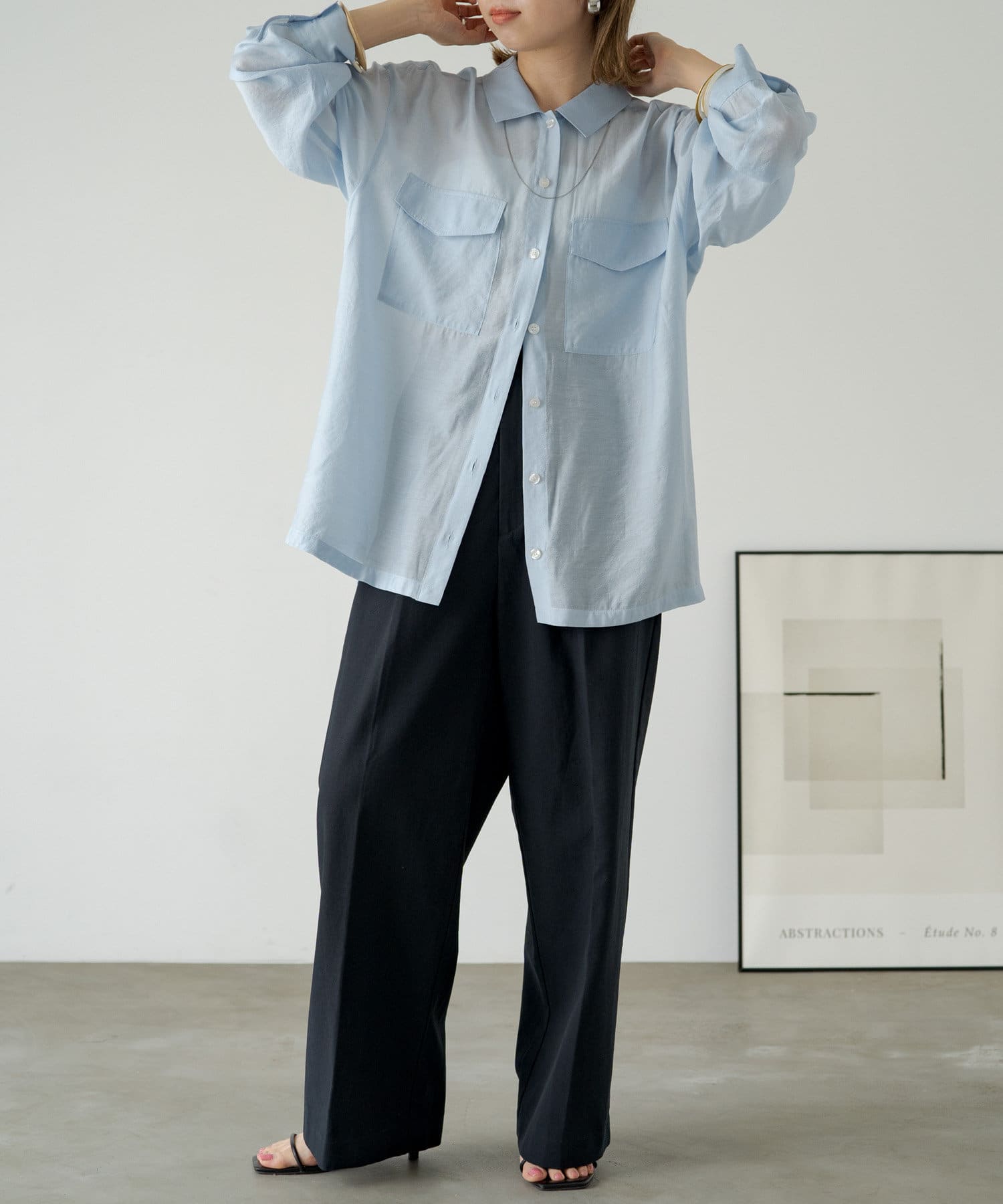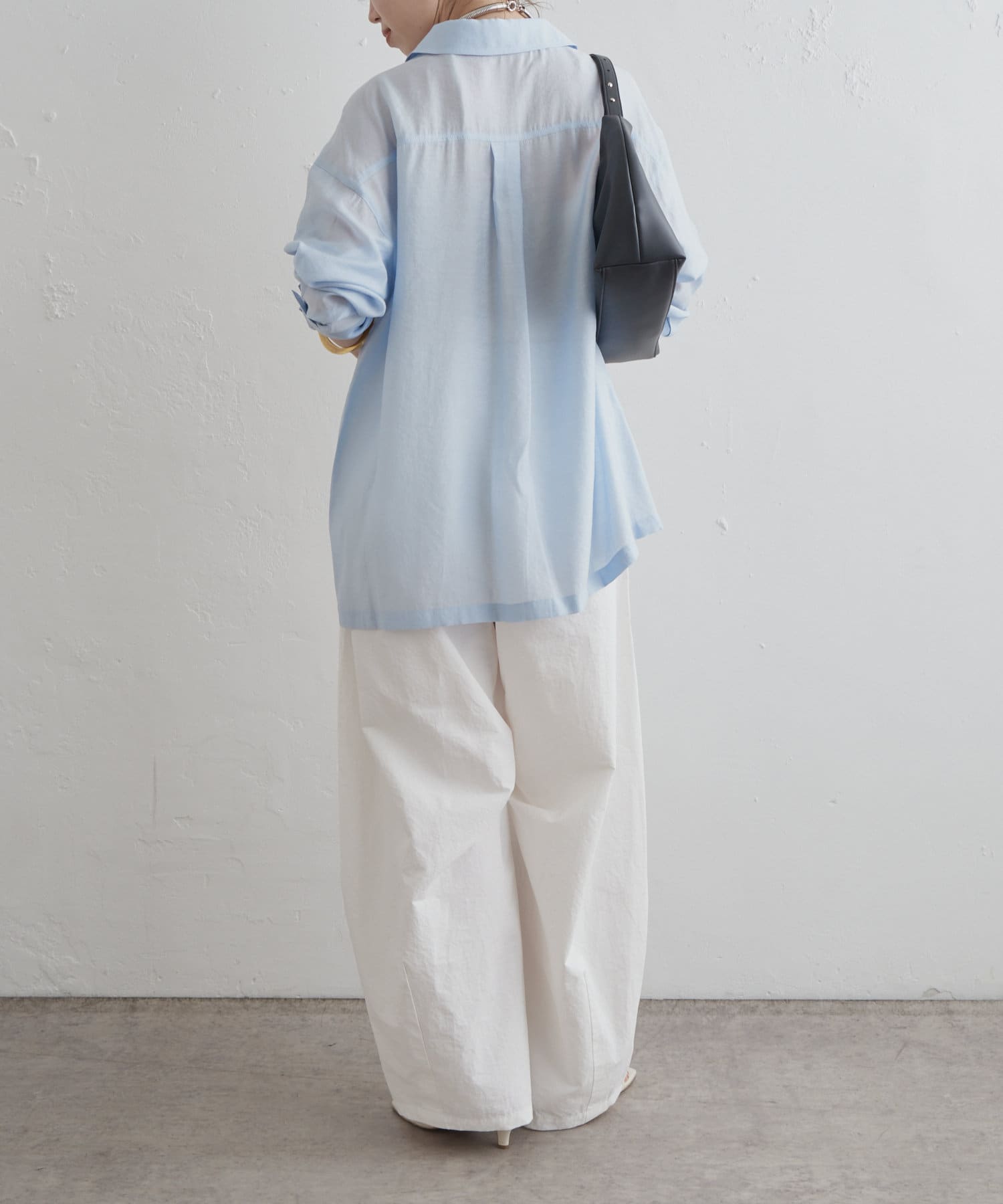 ポケット使いがポイントの着回し抜群のシアーシャツ