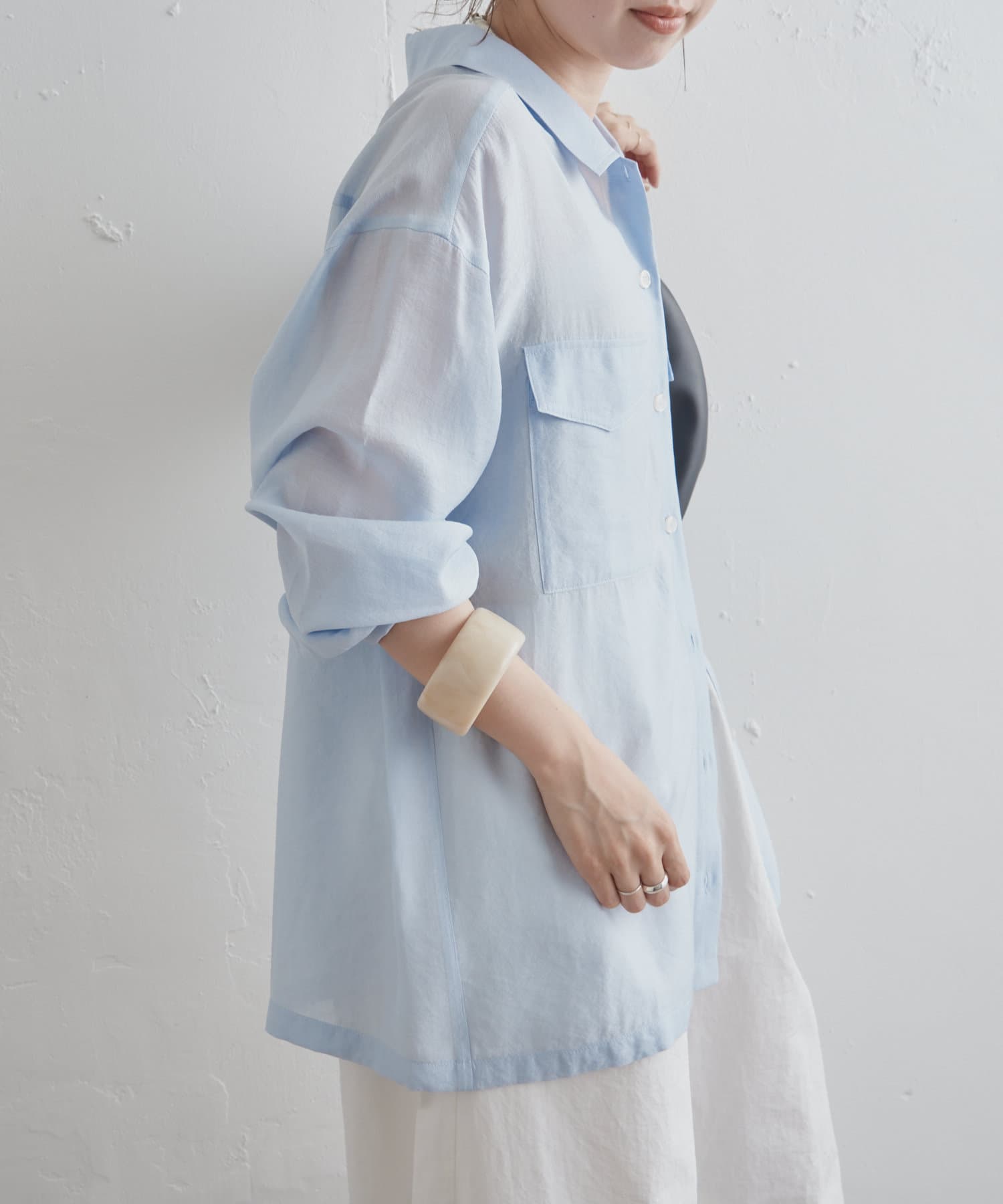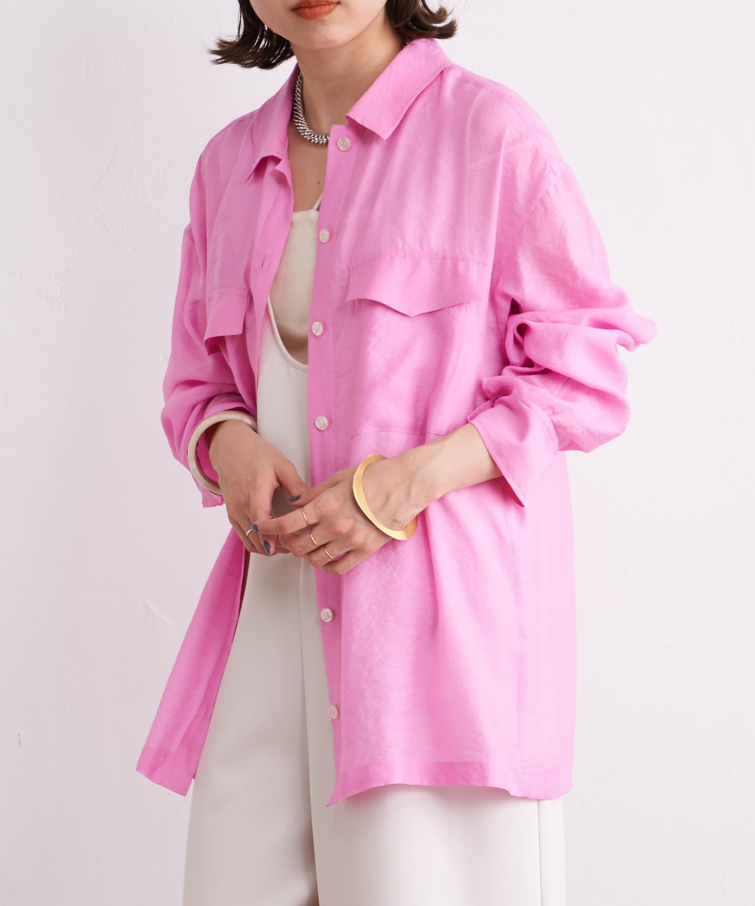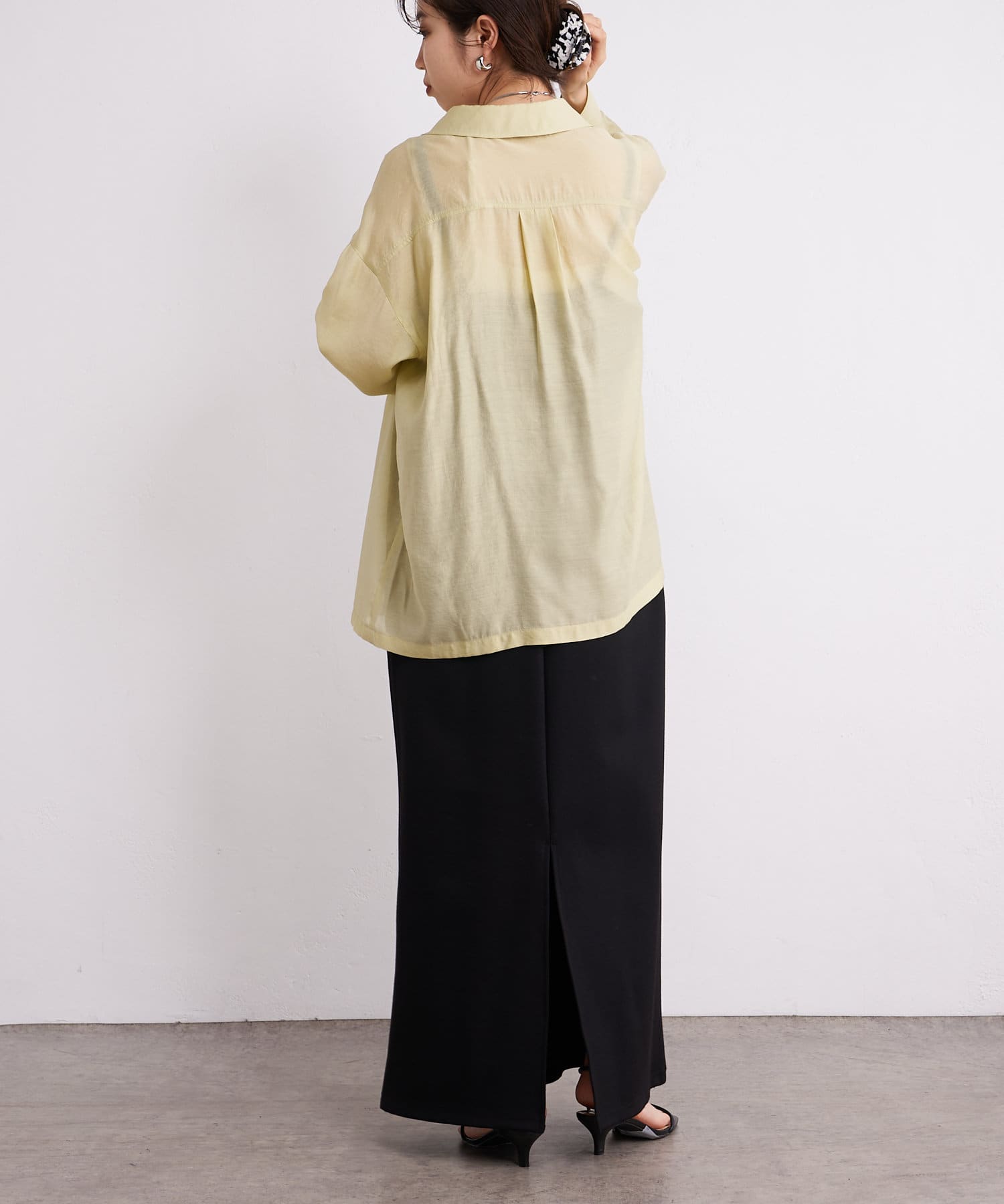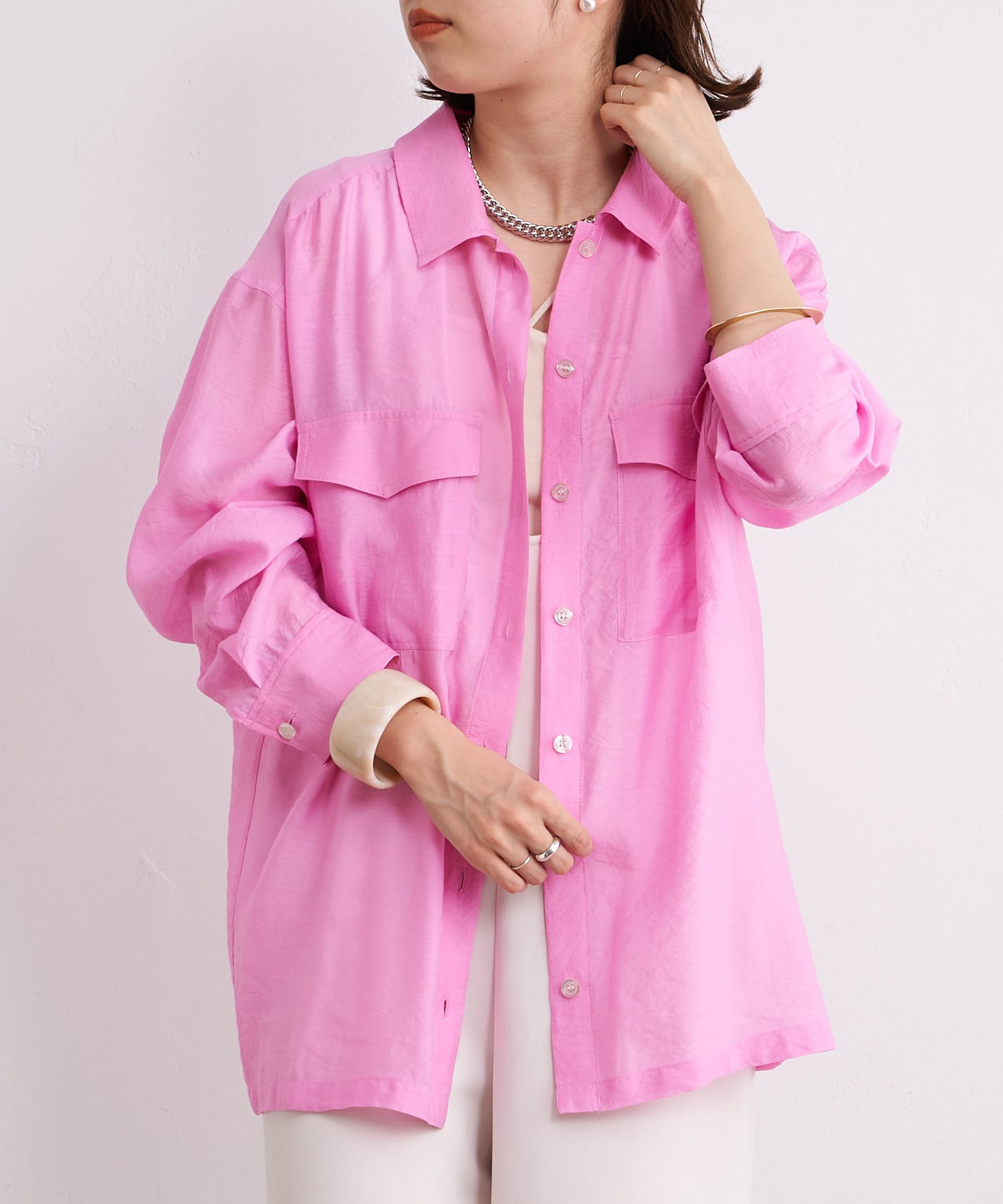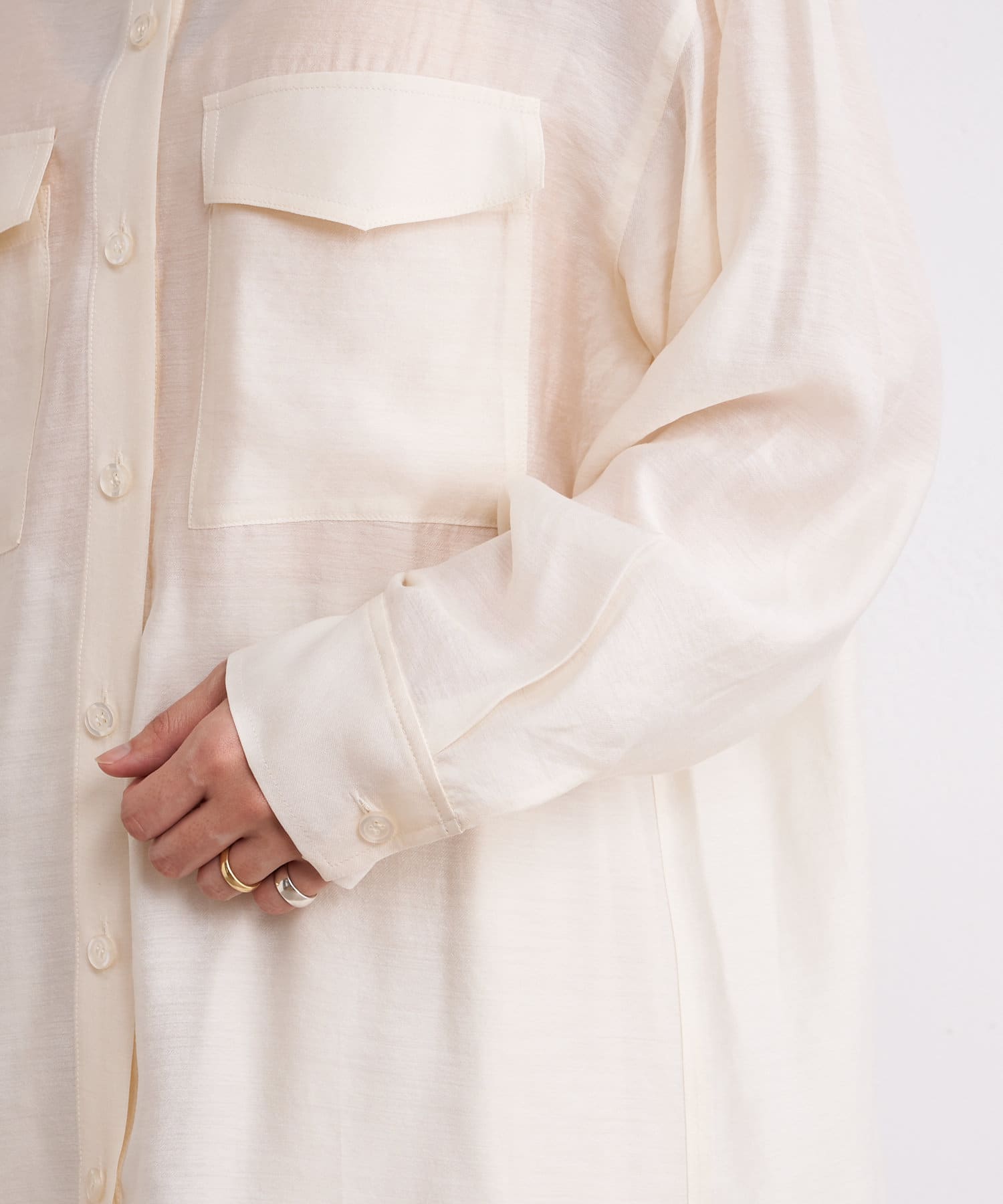 ポケット使いがポイントの着回し抜群のシアーシャツ