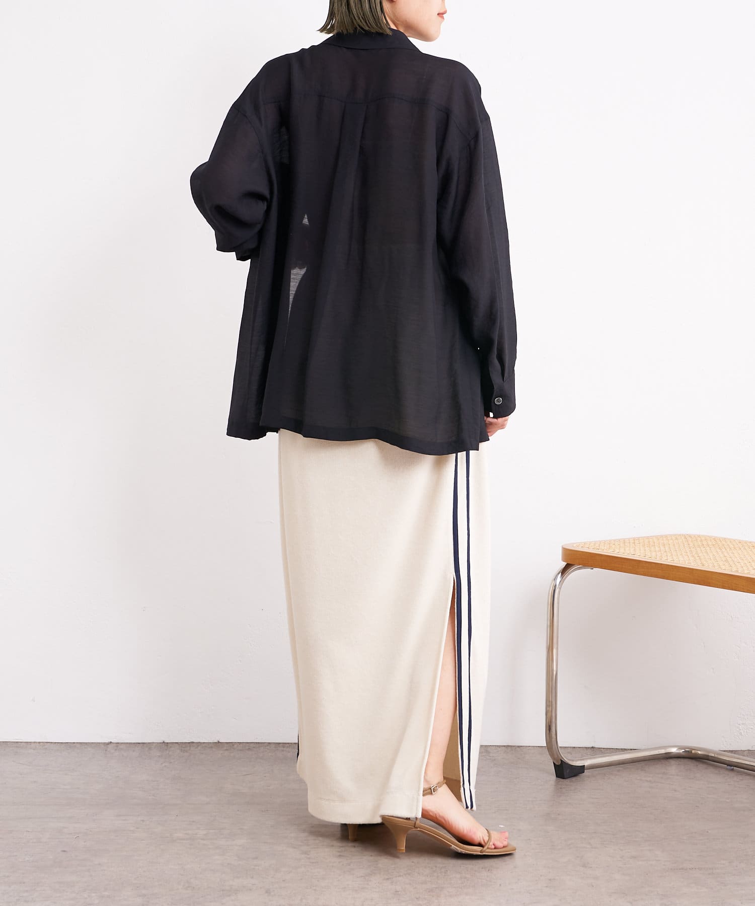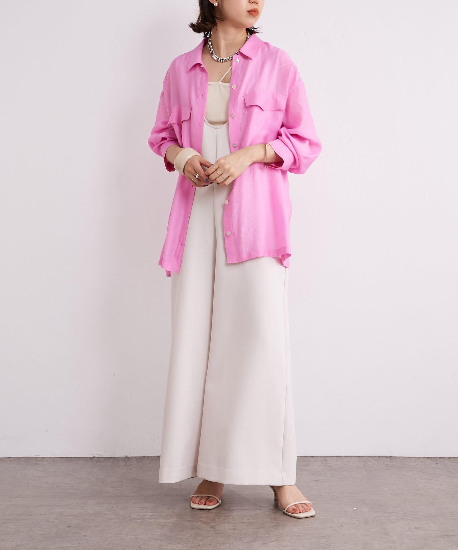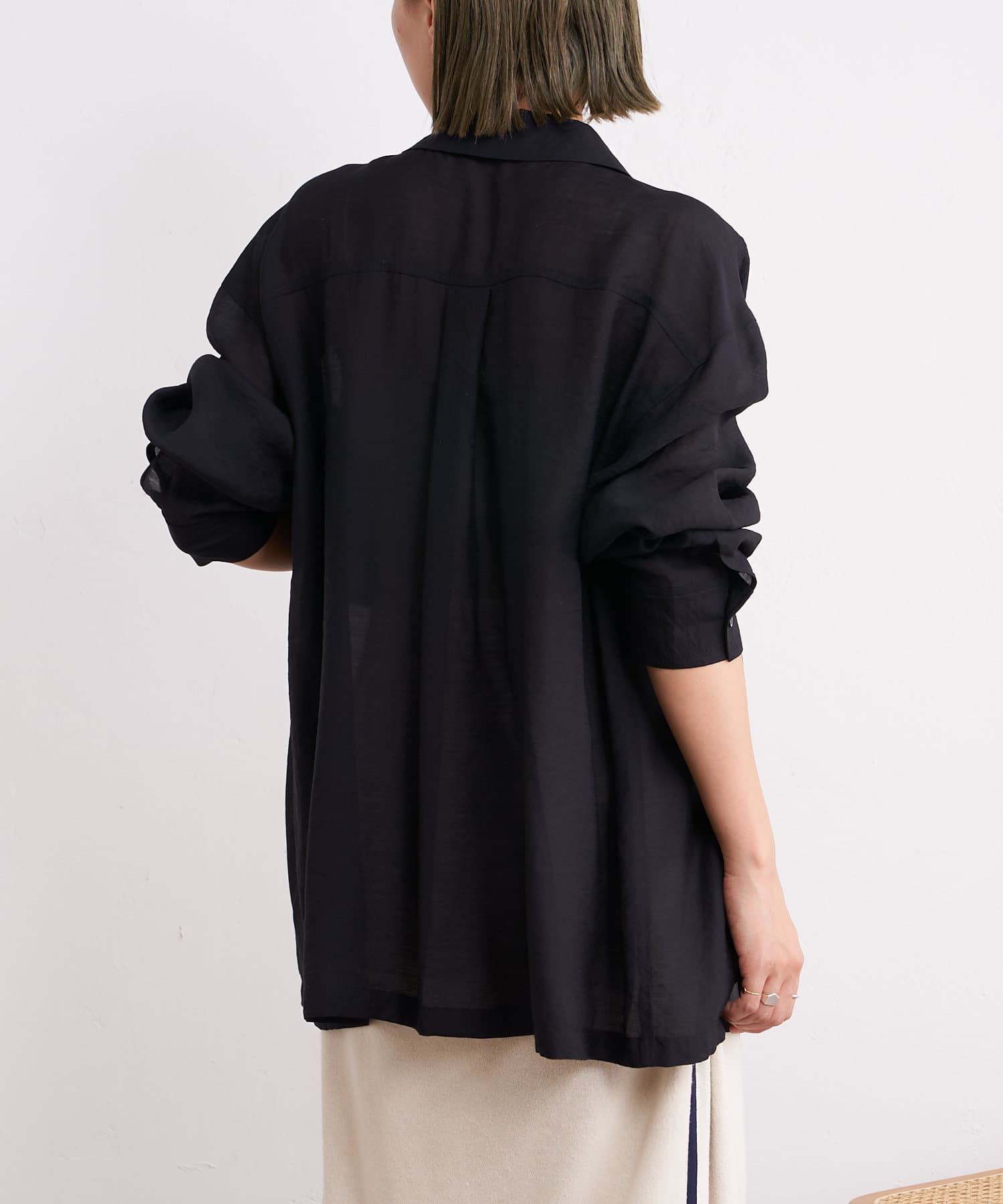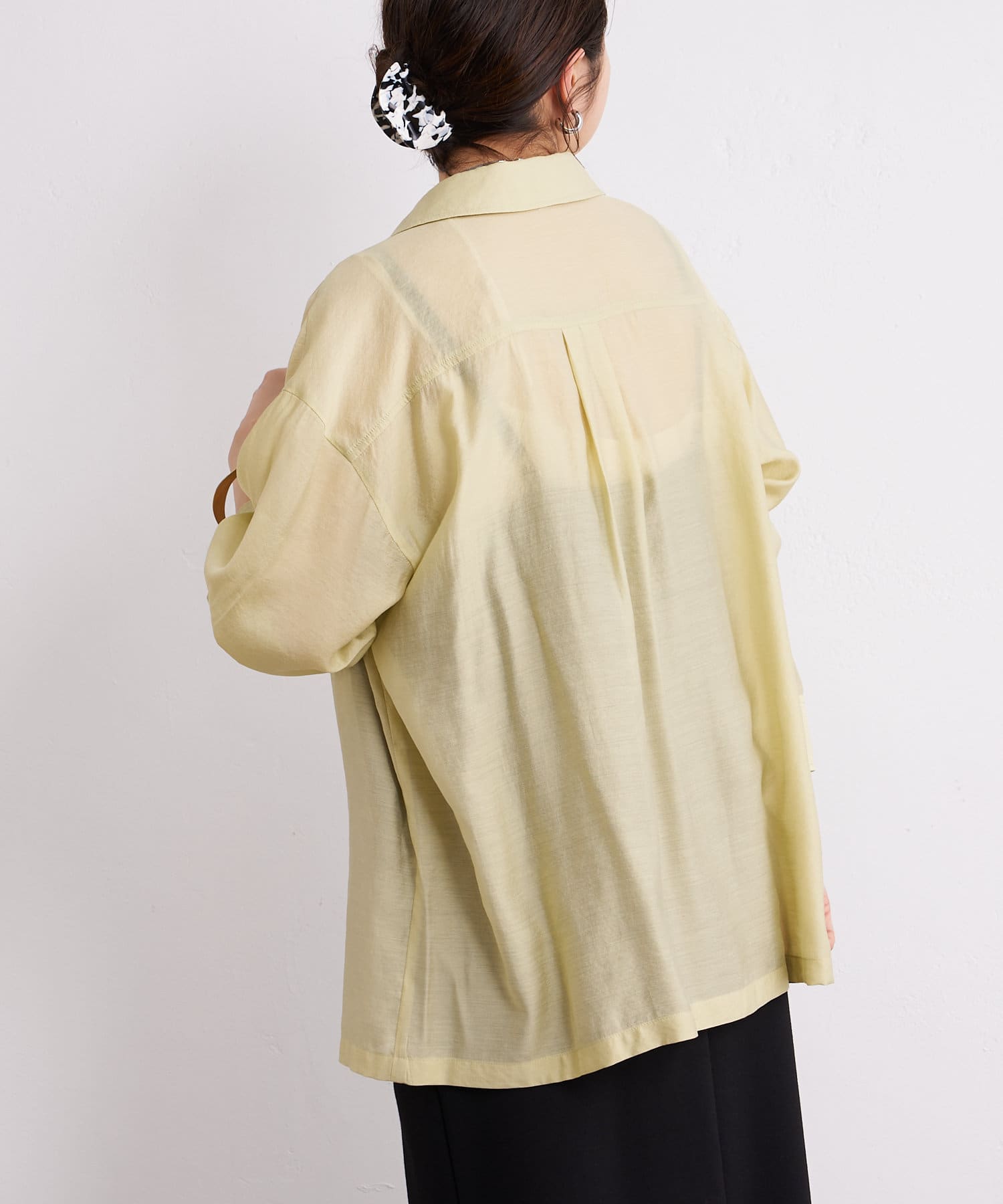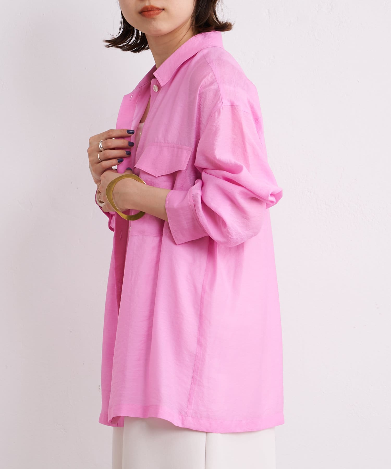 ポケット使いがポイントの着回し抜群のシアーシャツ