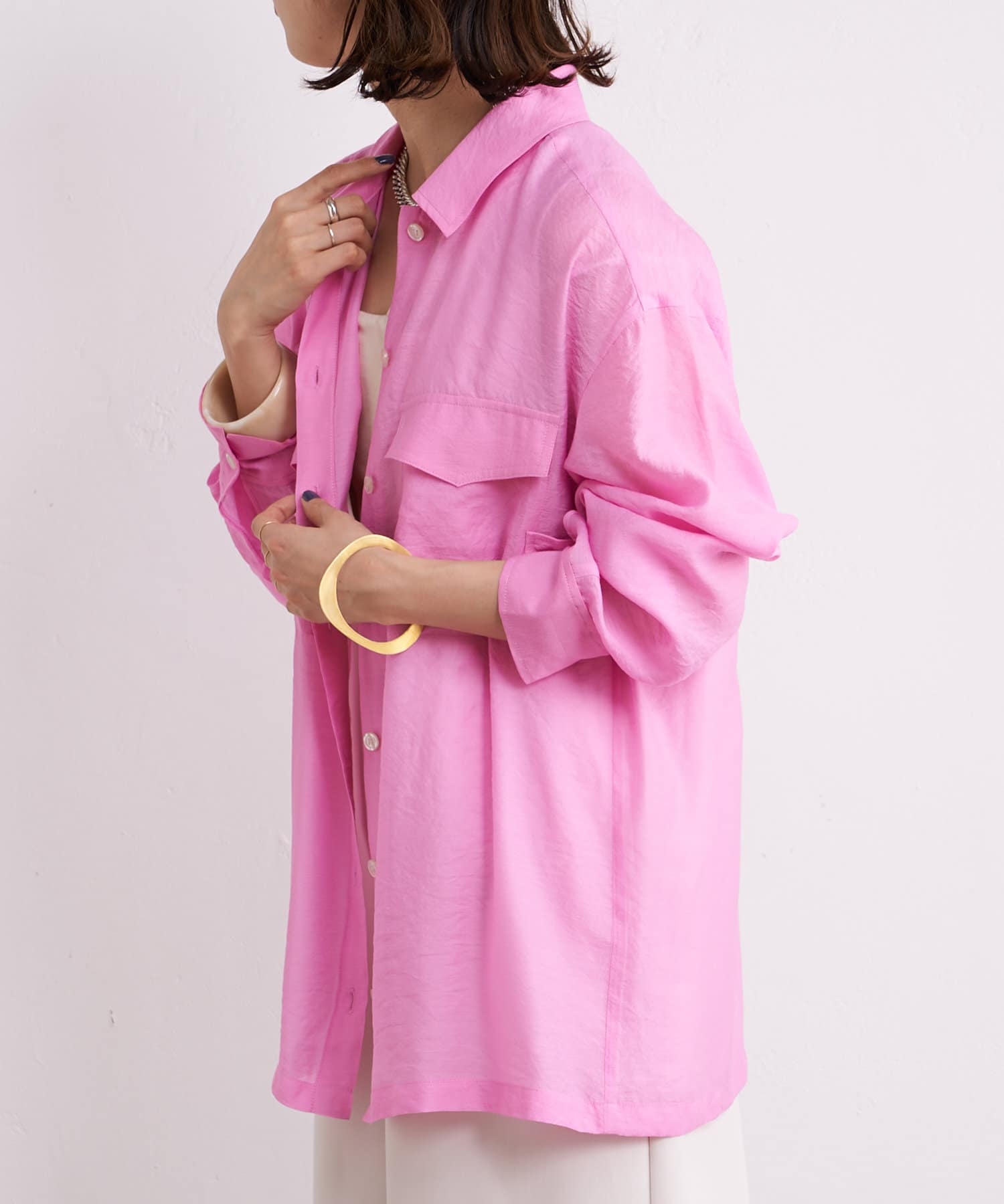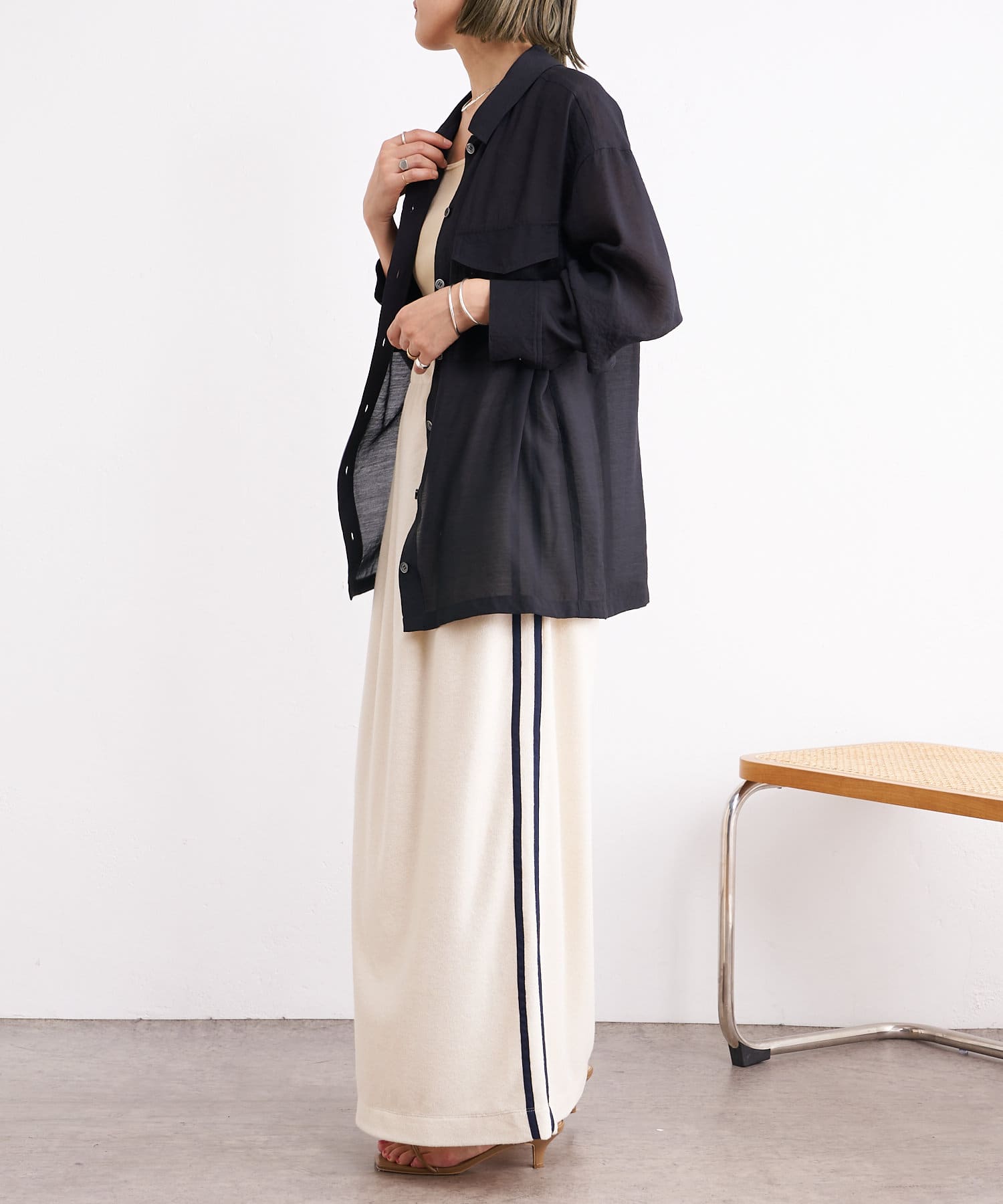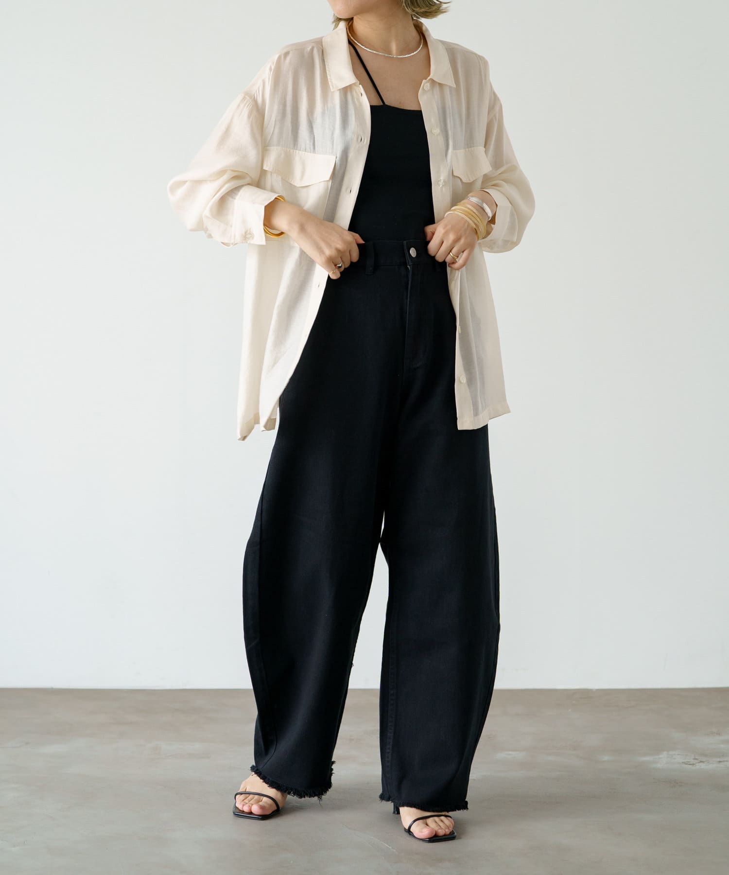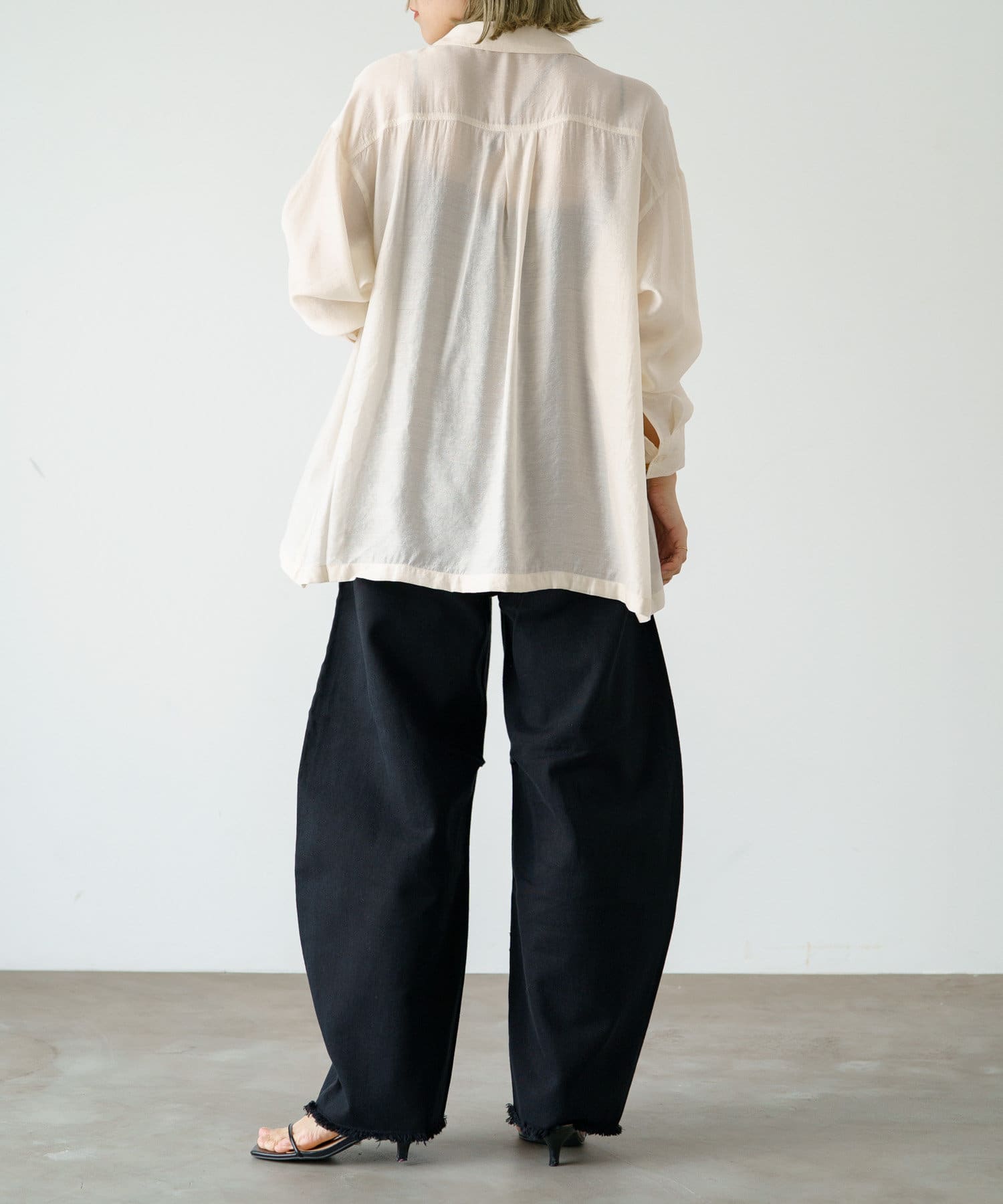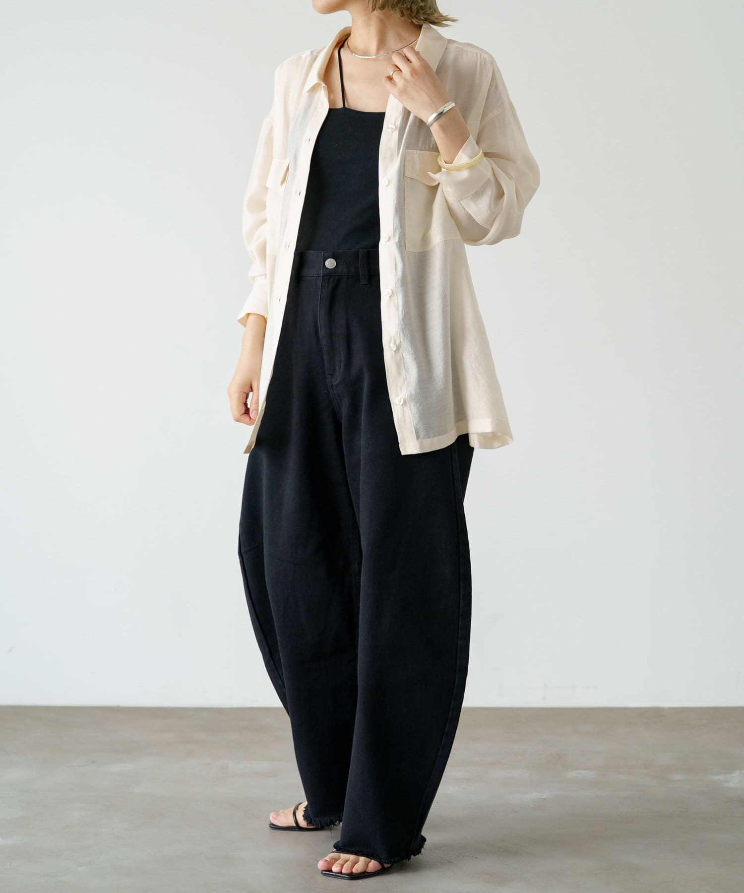 ポケット使いがポイントの着回し抜群のシアーシャツ