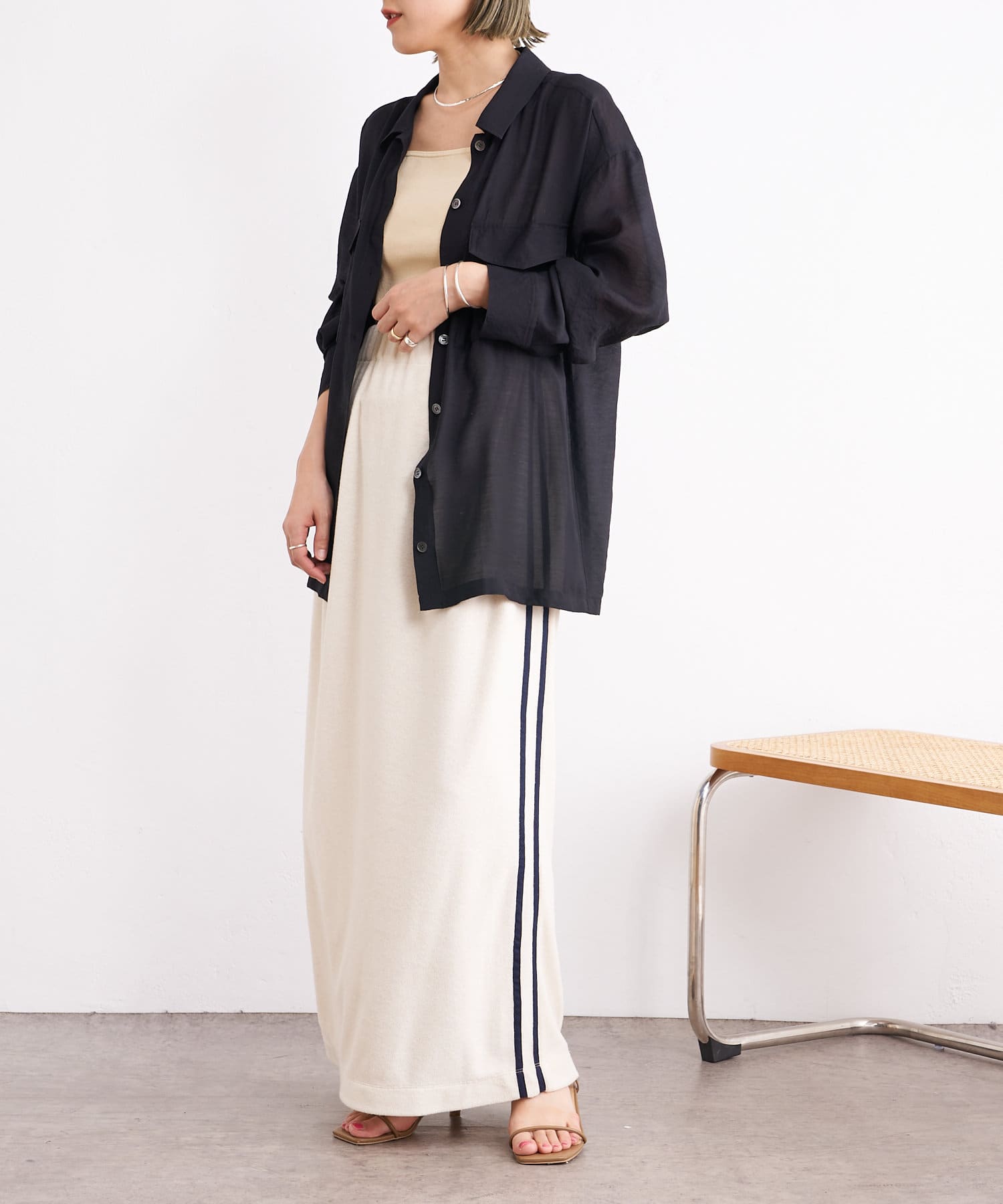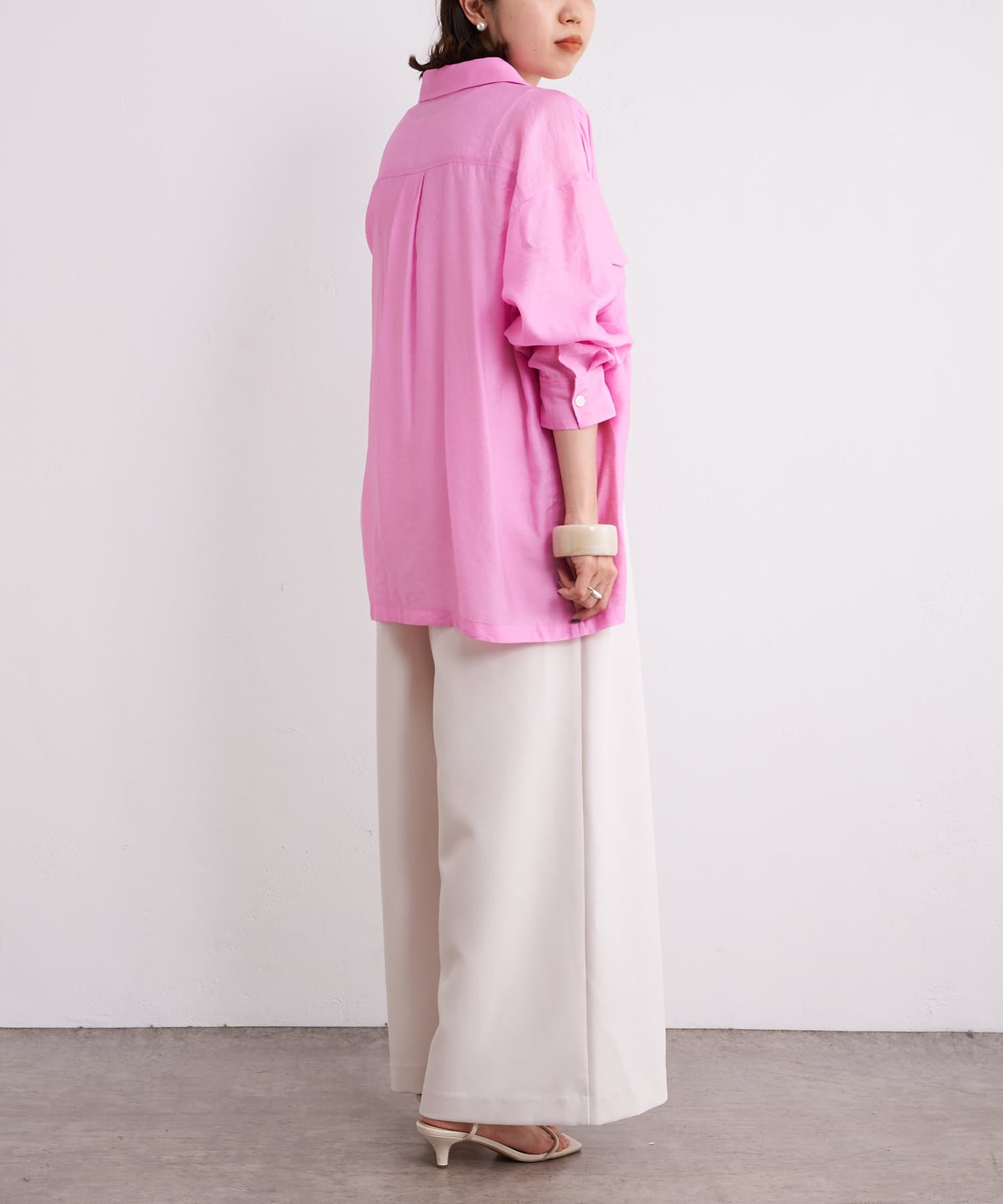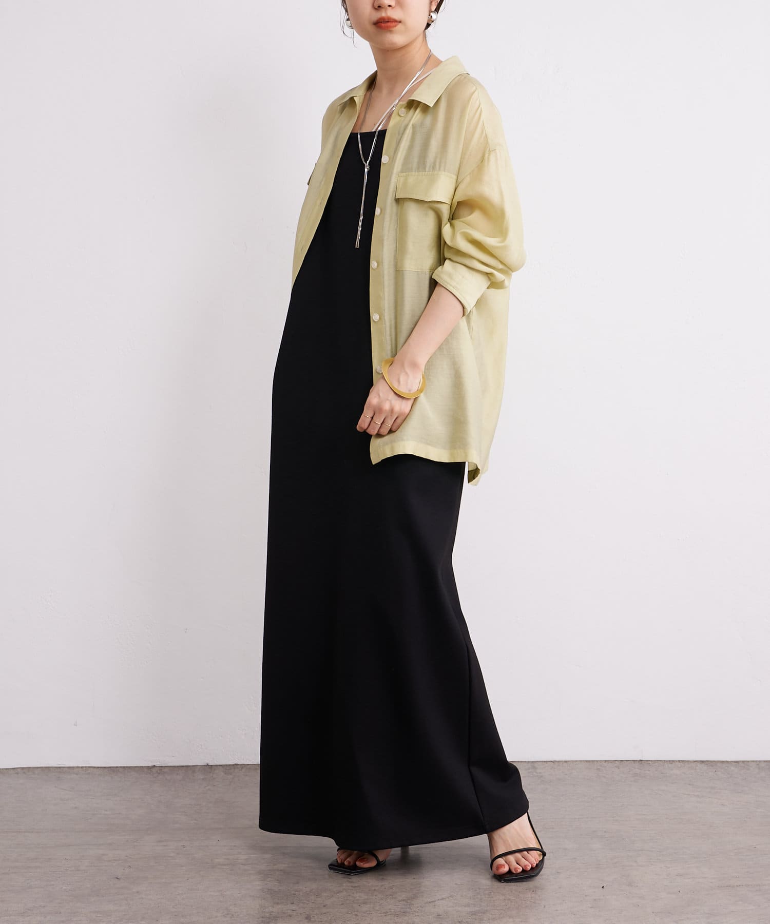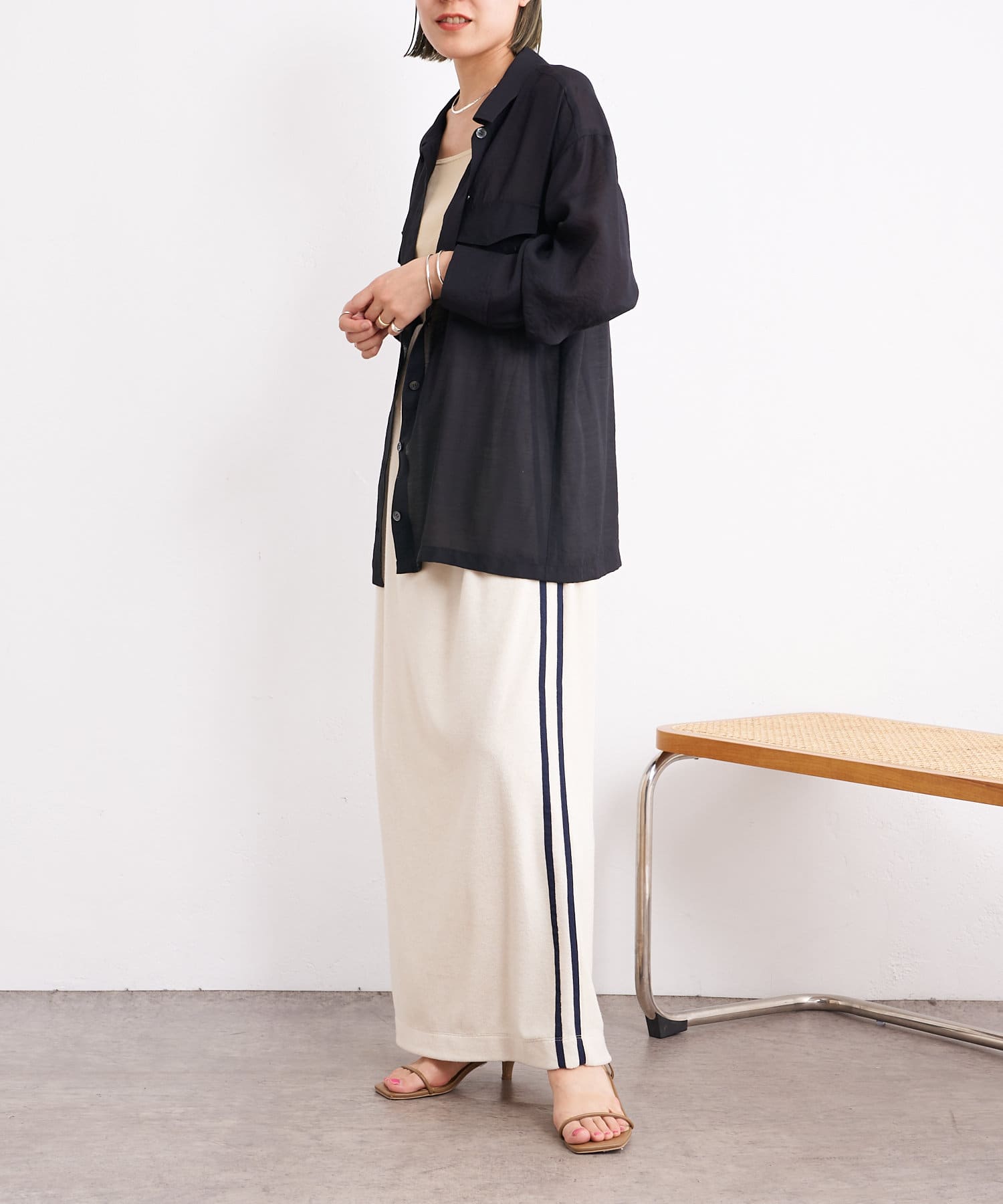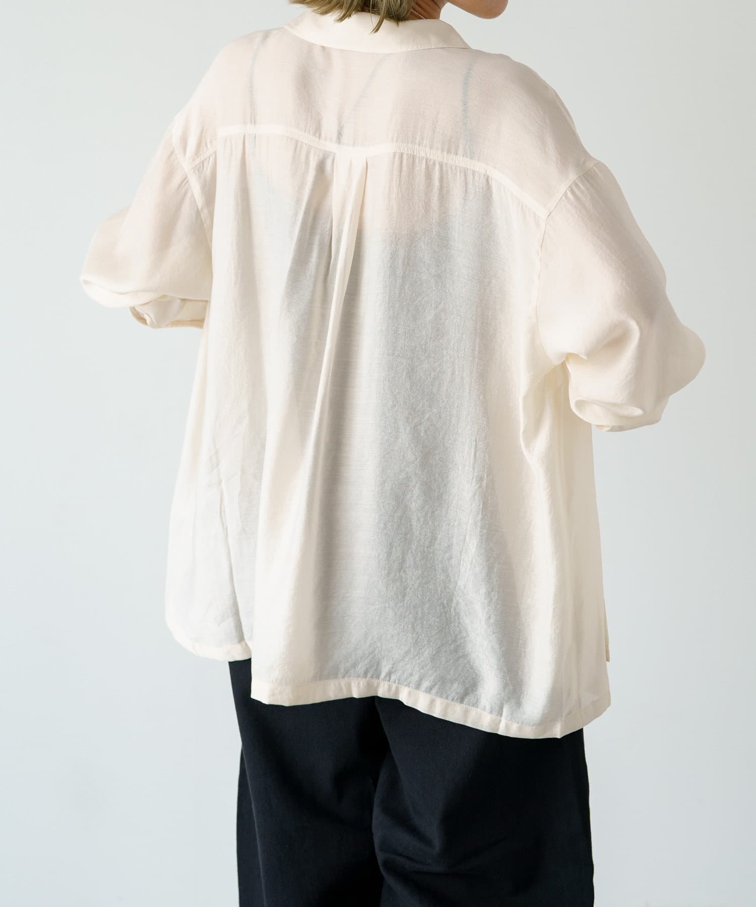 ポケット使いがポイントの着回し抜群のシアーシャツ