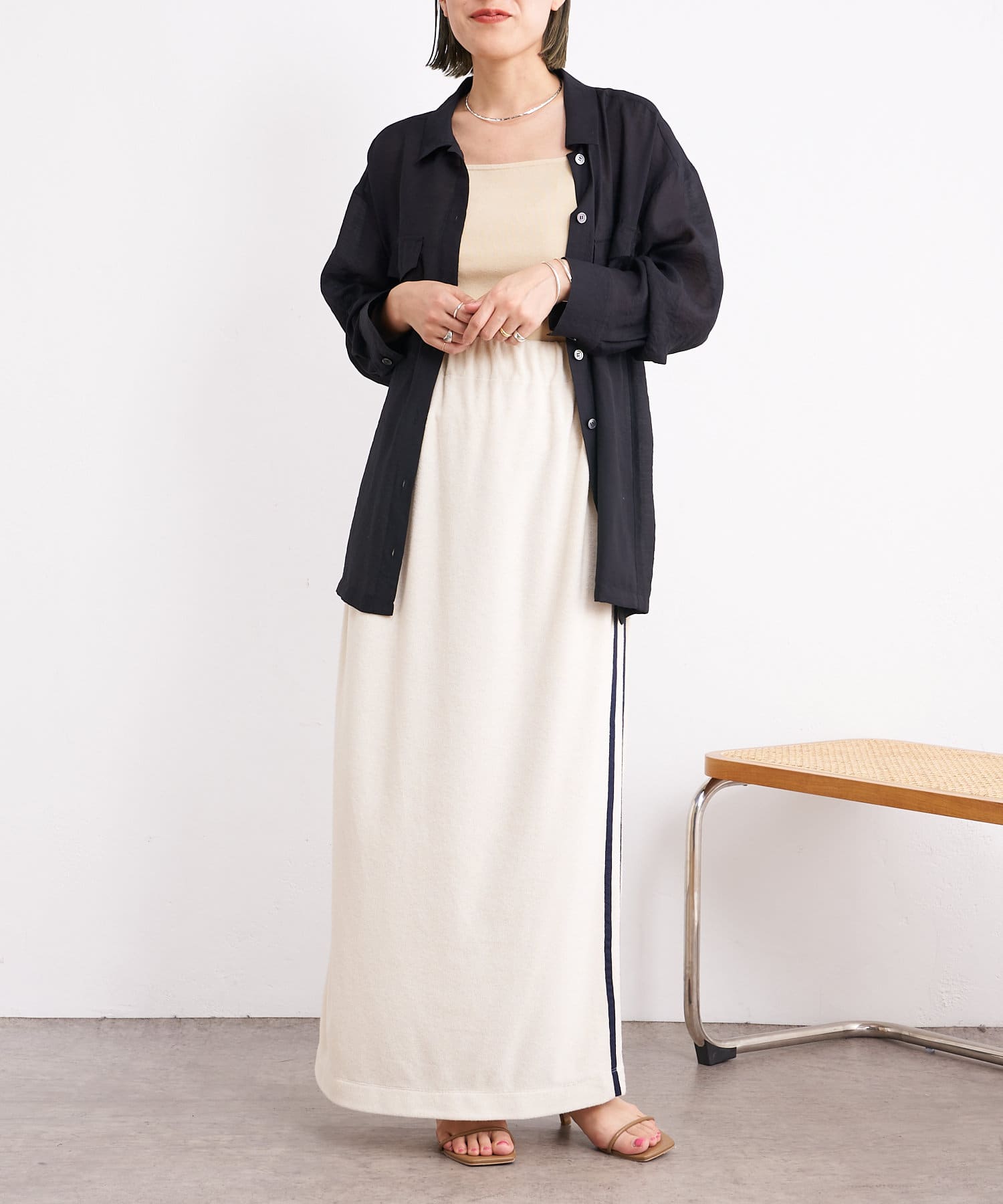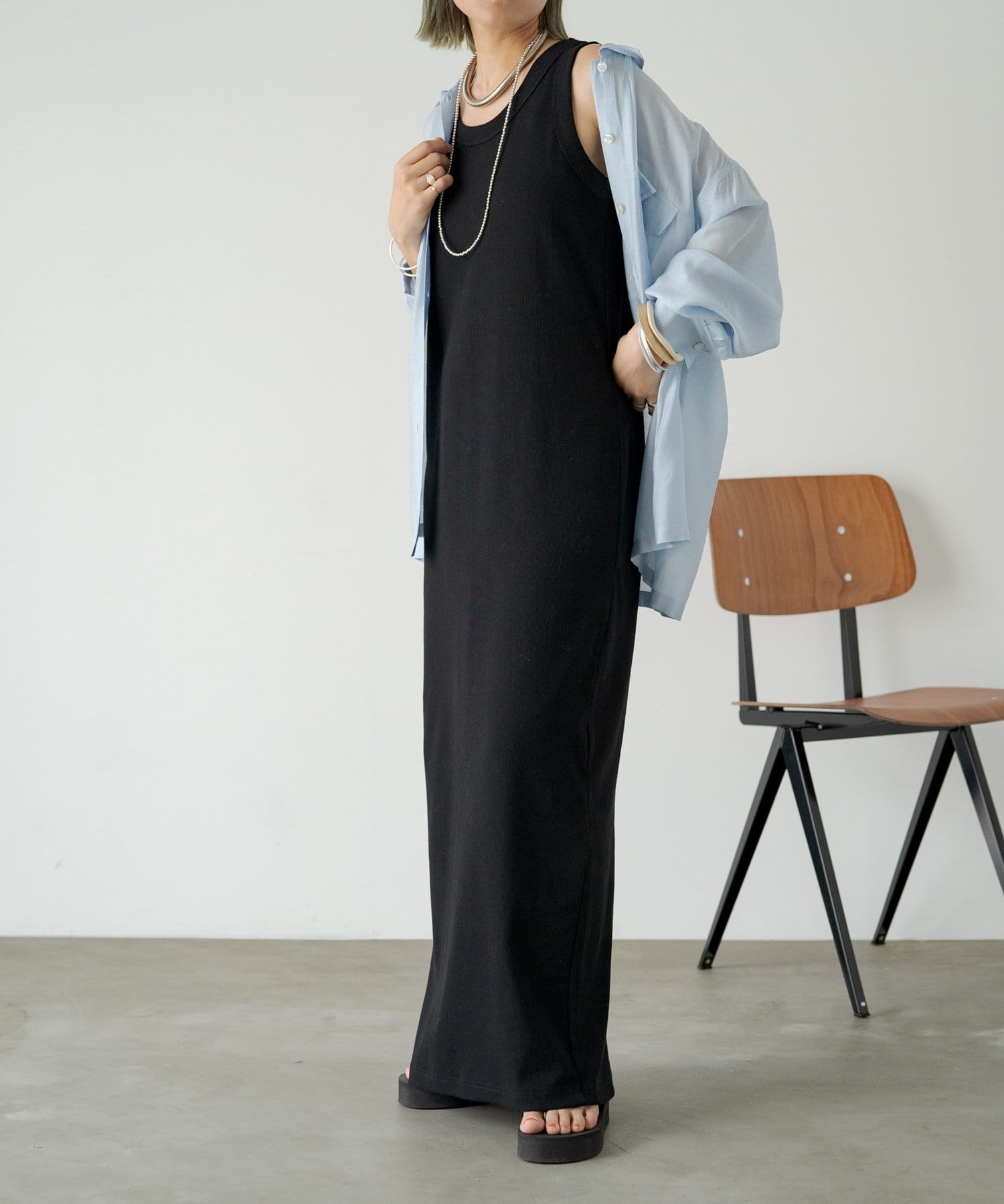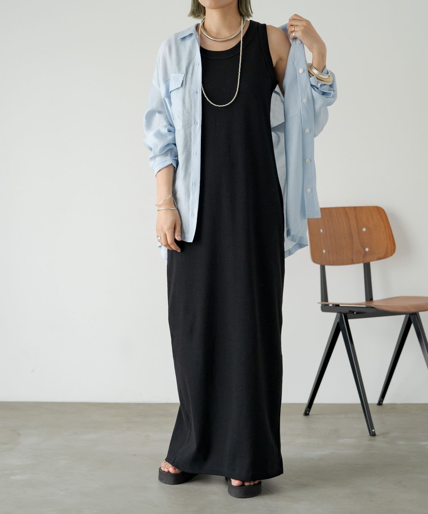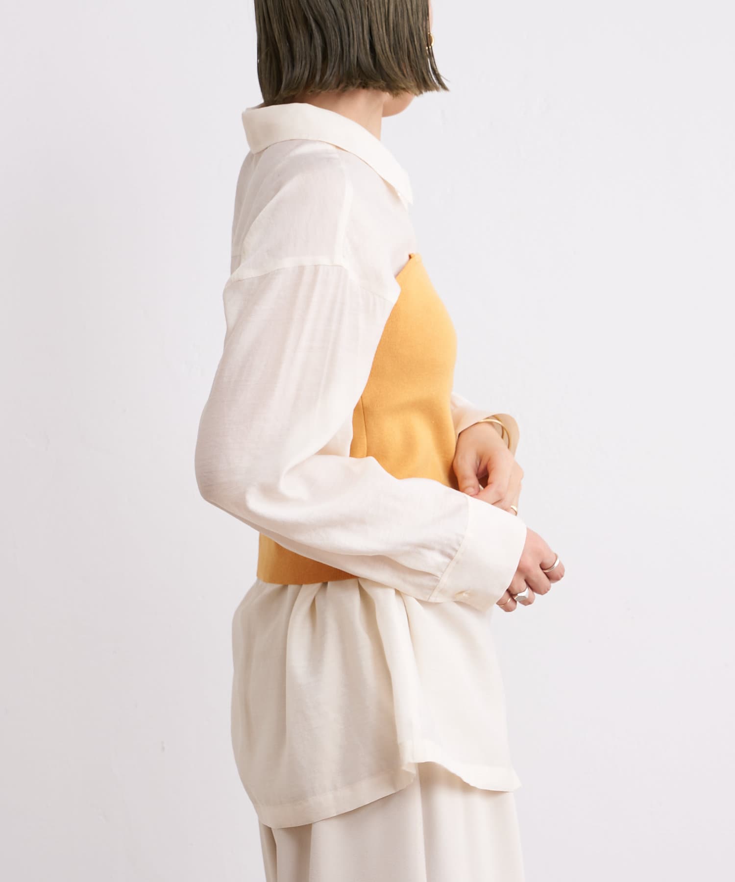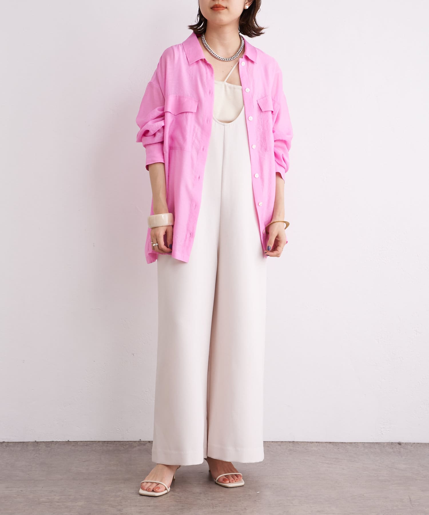 ポケット使いがポイントの着回し抜群のシアーシャツ