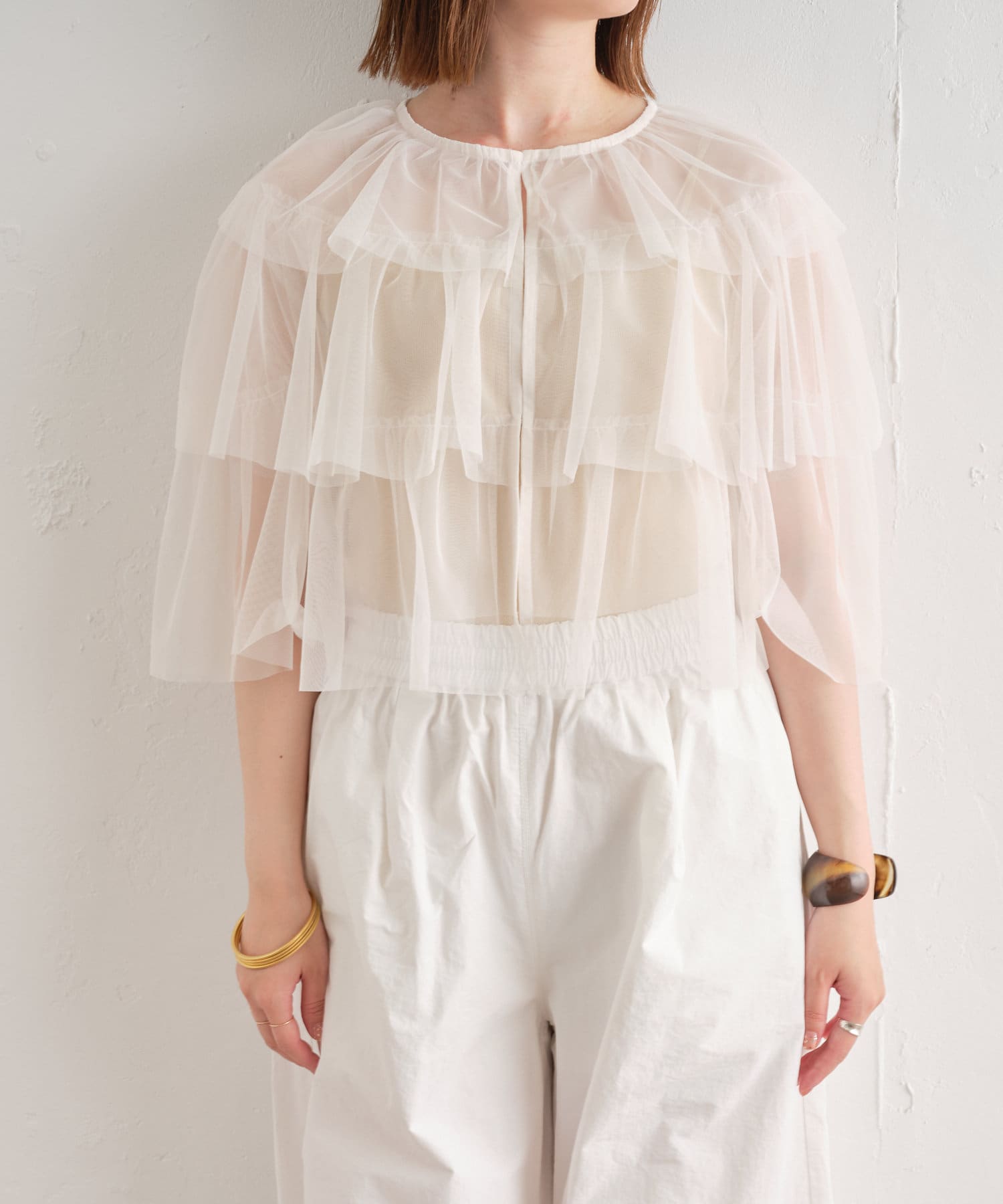 着用するだけでおしゃれ見えするチュールブラウス