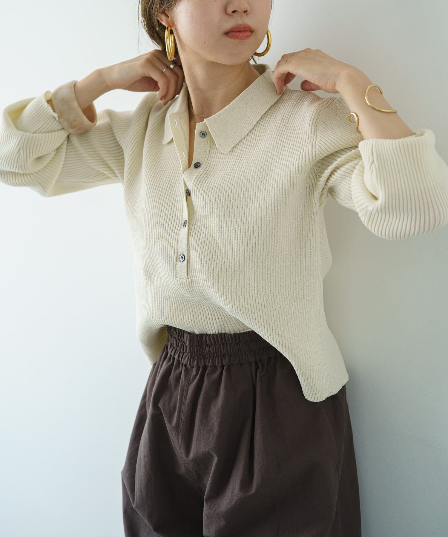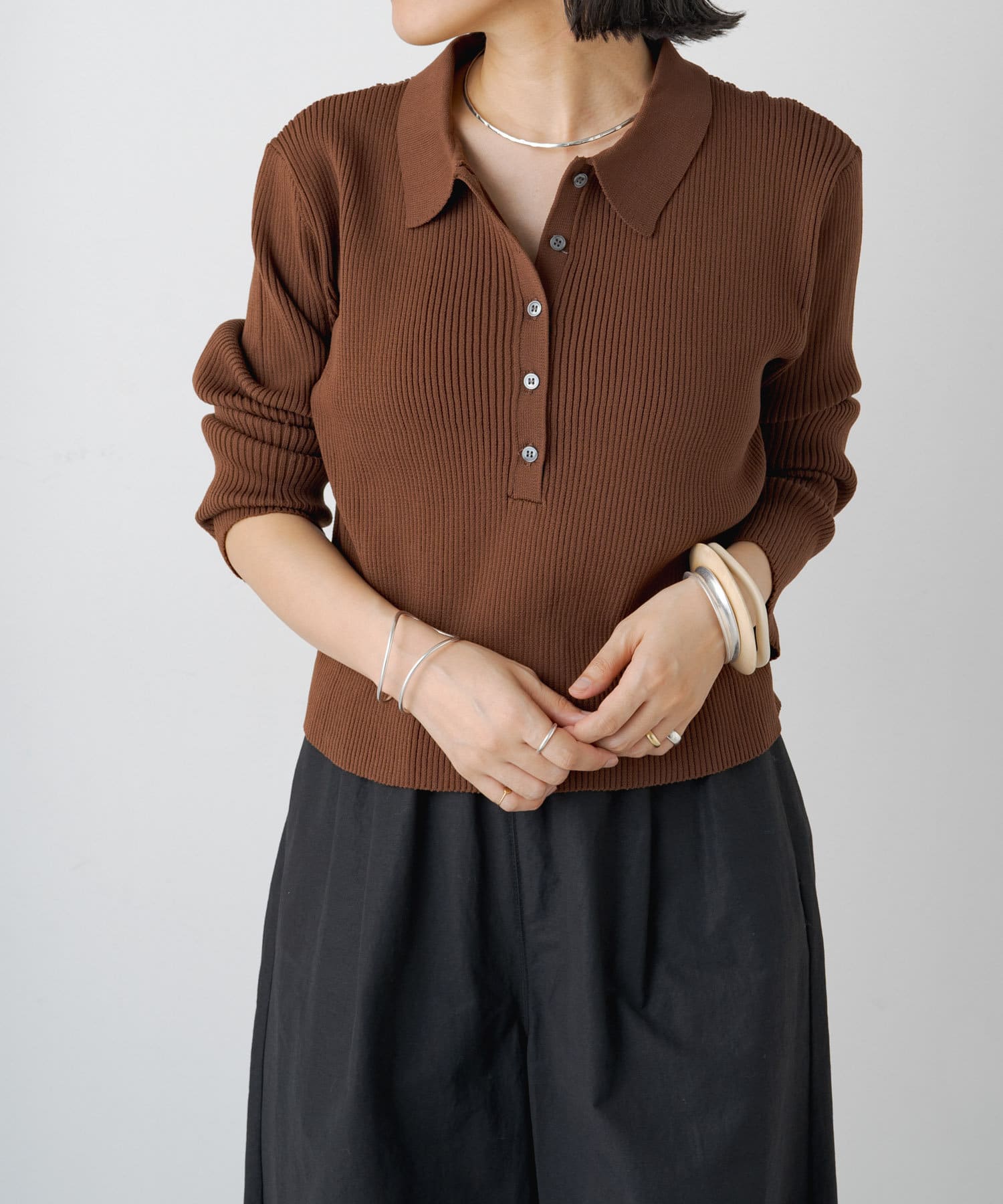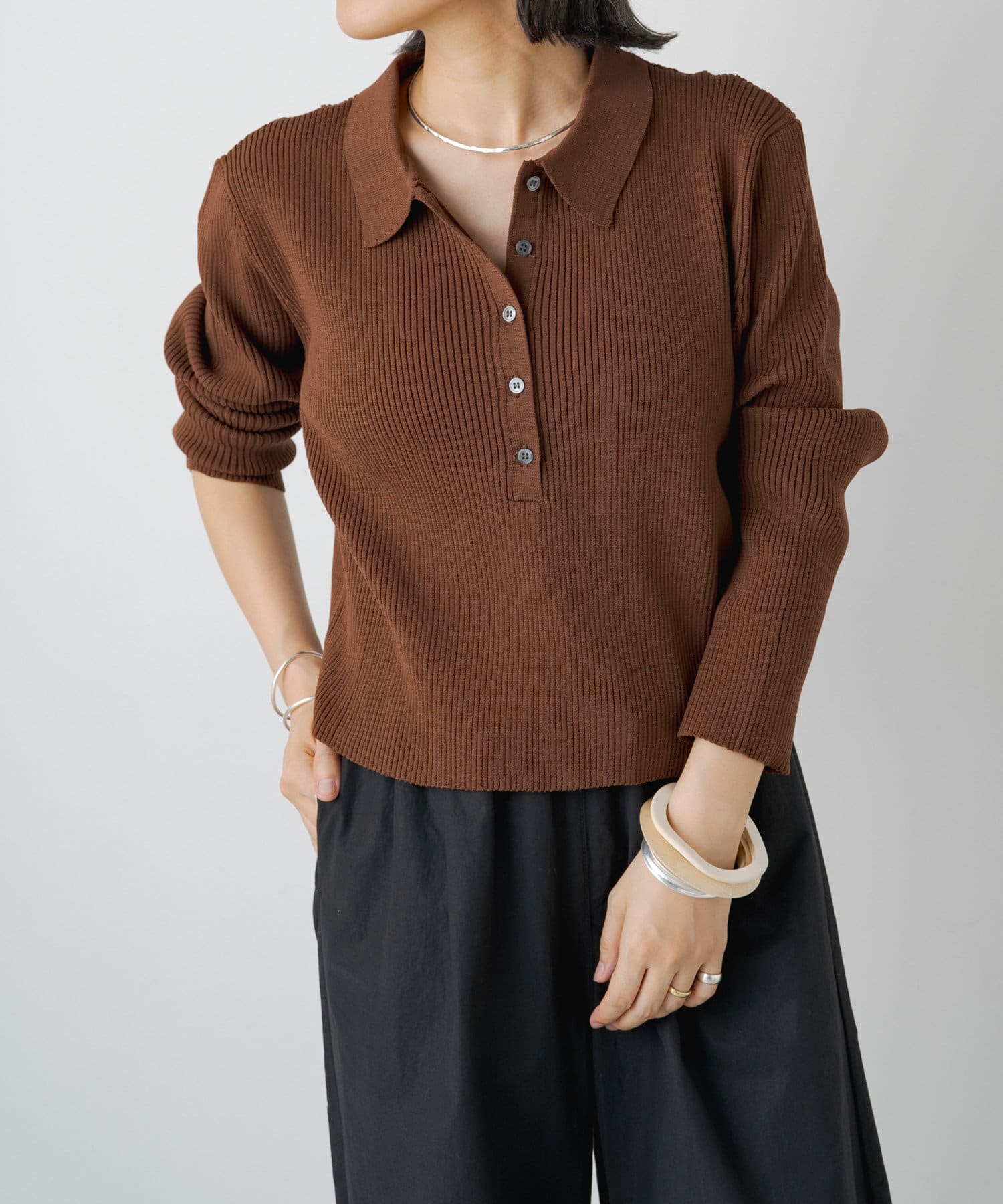 ・さらっとしたニット生地が特徴で、シンプルながら一枚で決まるニットポロ