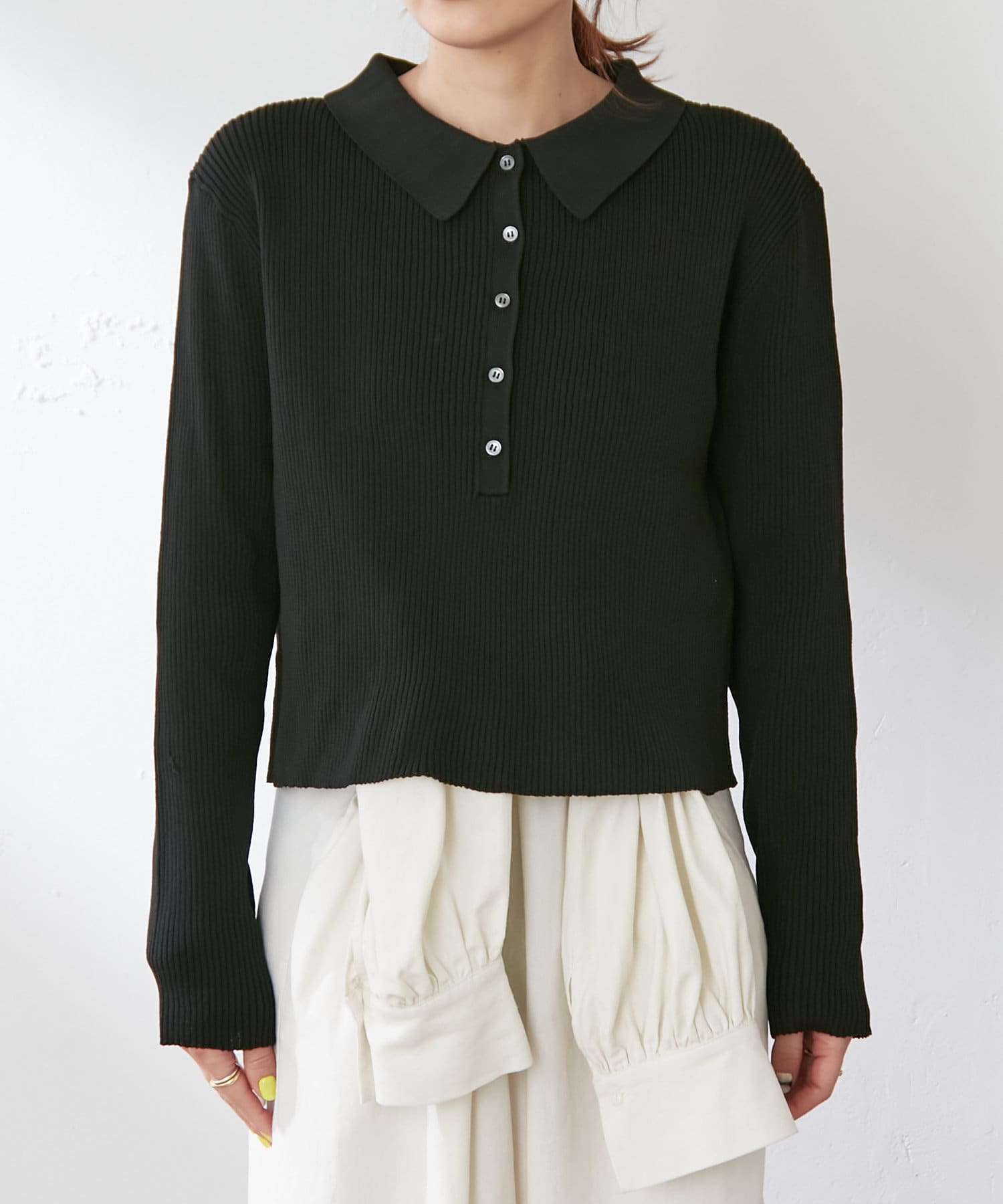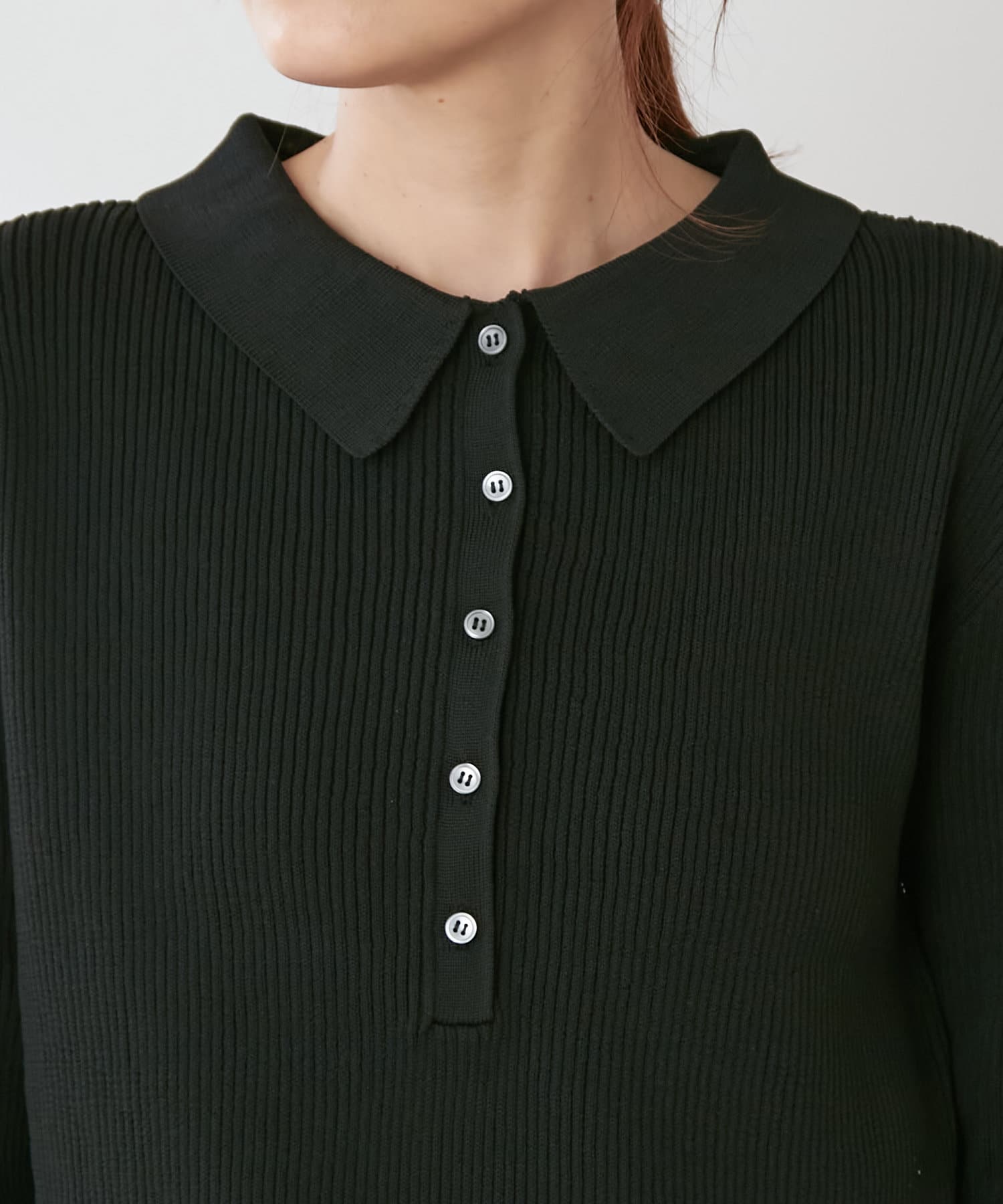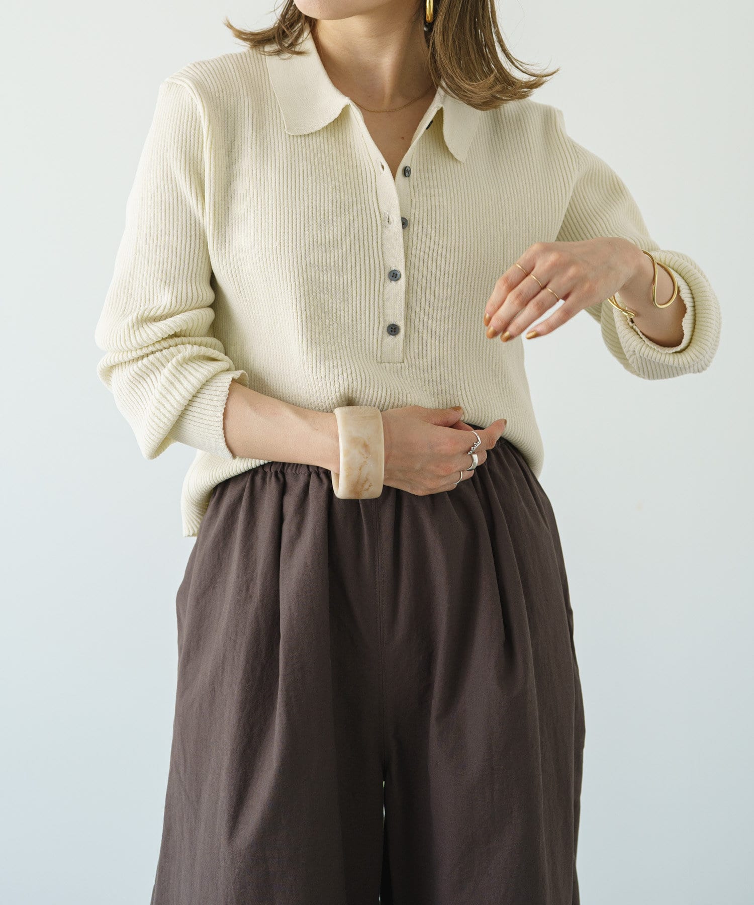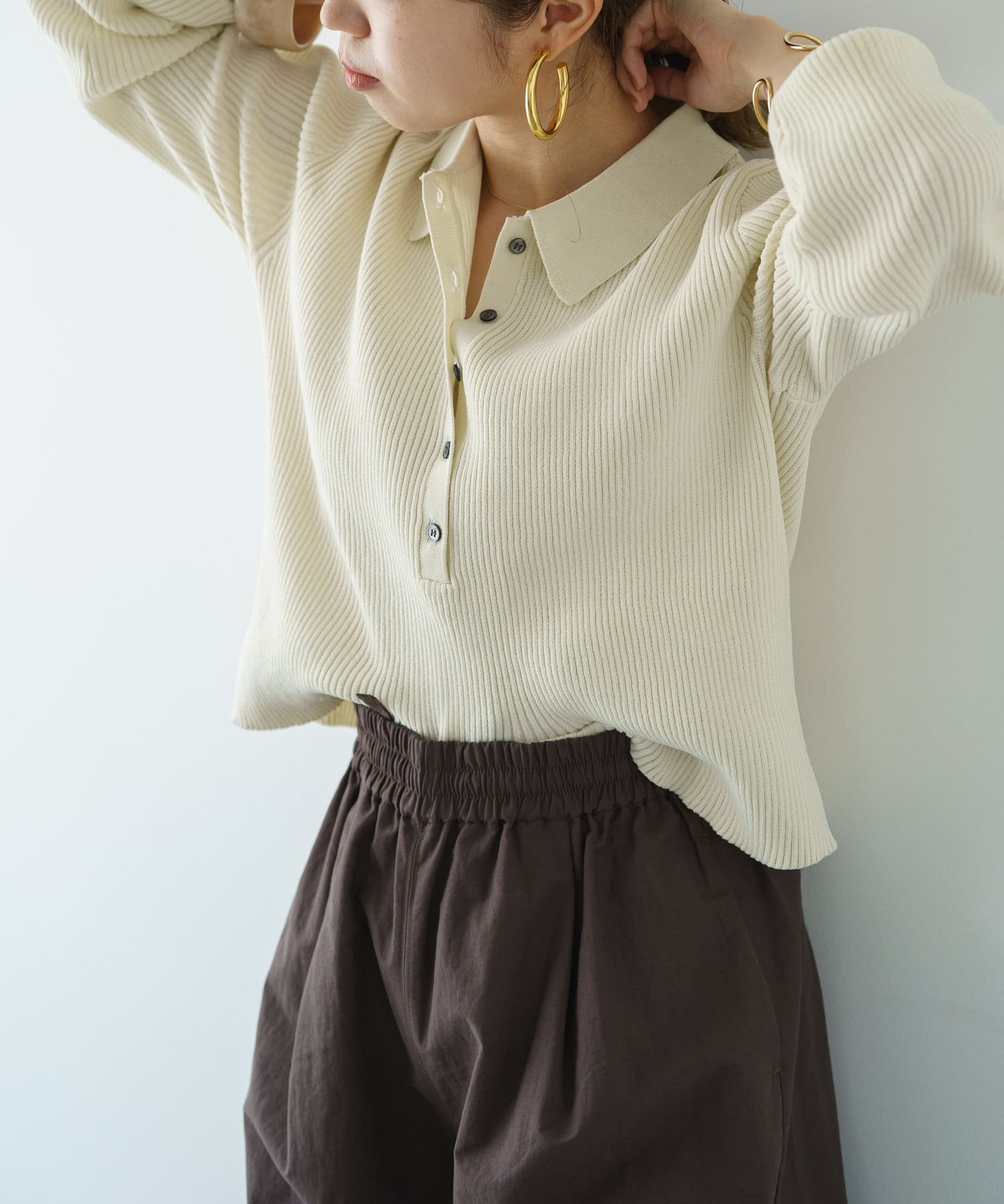 ・さらっとしたニット生地が特徴で、シンプルながら一枚で決まるニットポロ