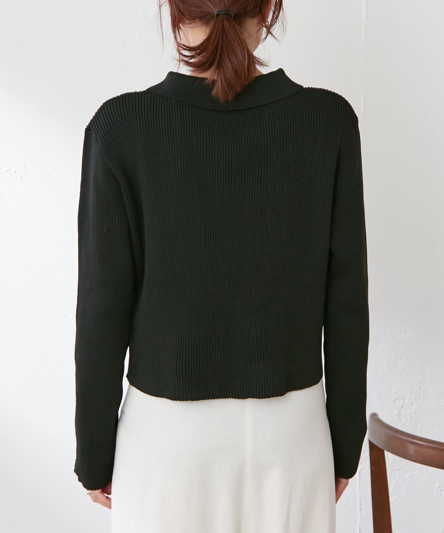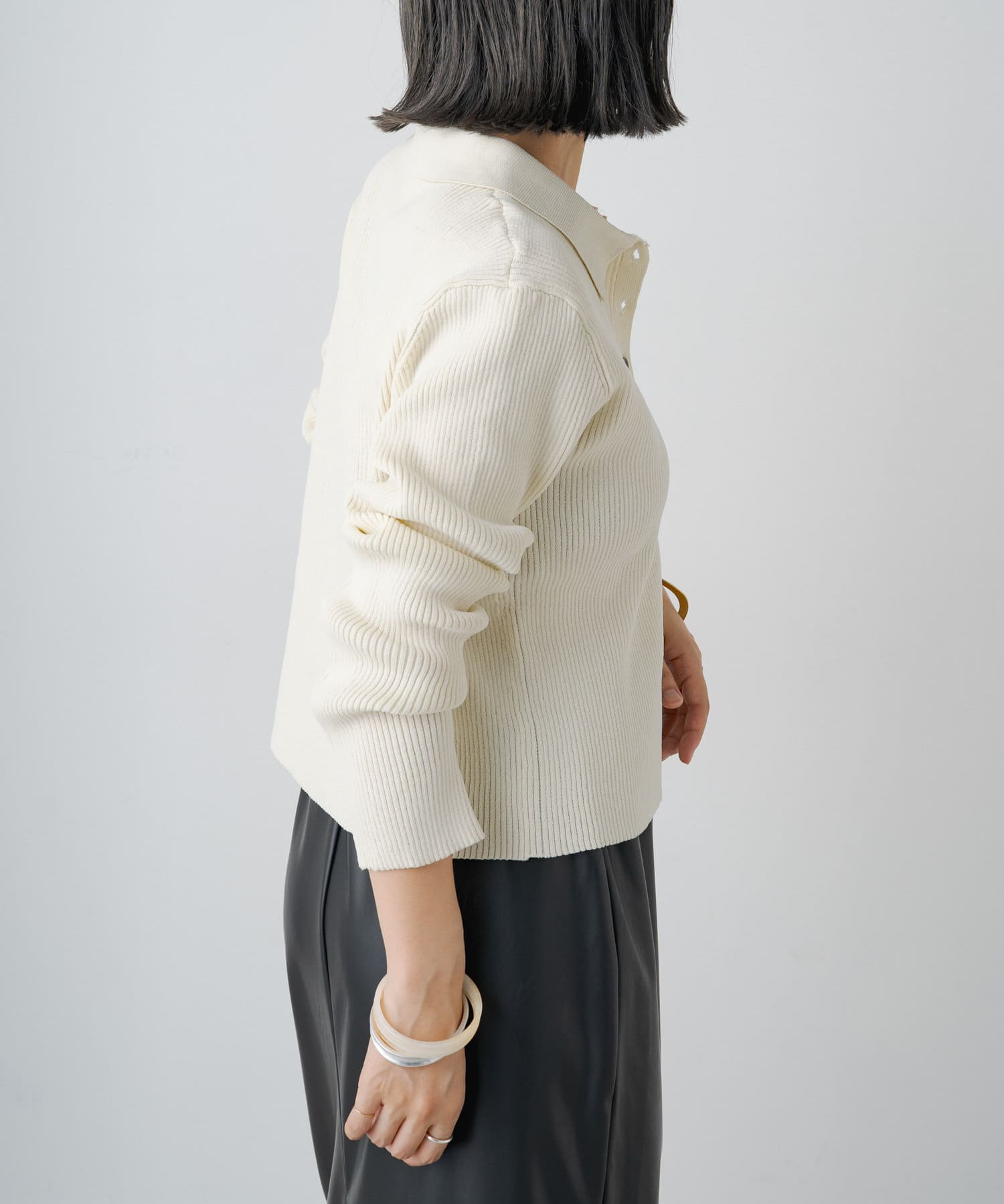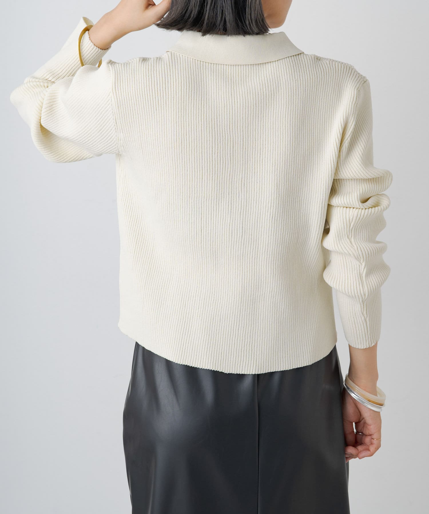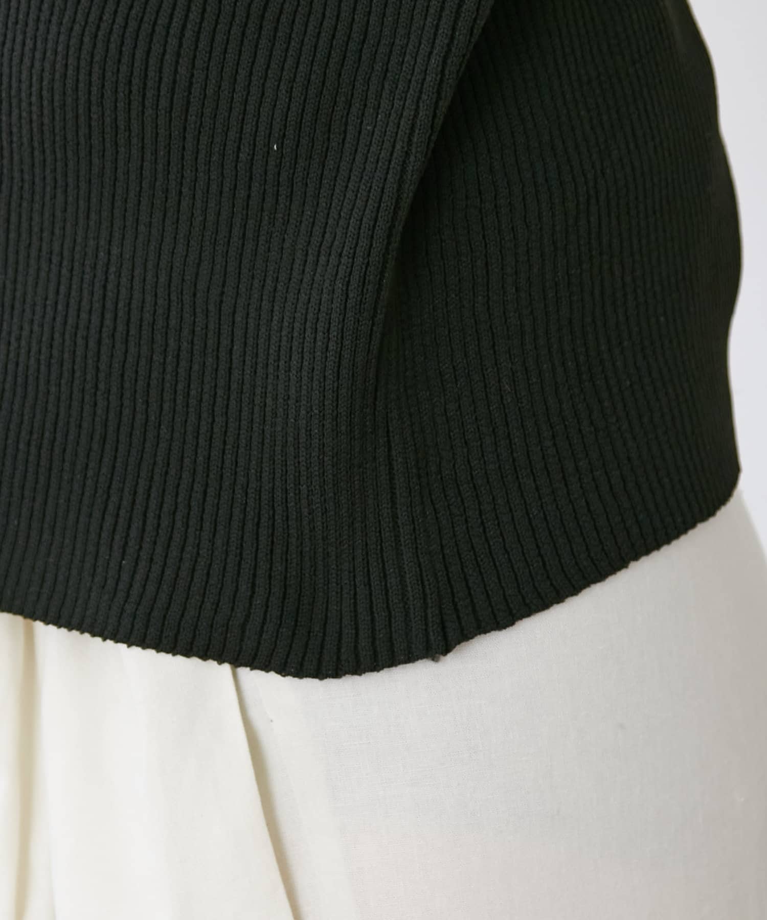 ・伸縮性のあるリブの編地がボディラインに程よくフィット。上半身をすっきりと見せてくれます。