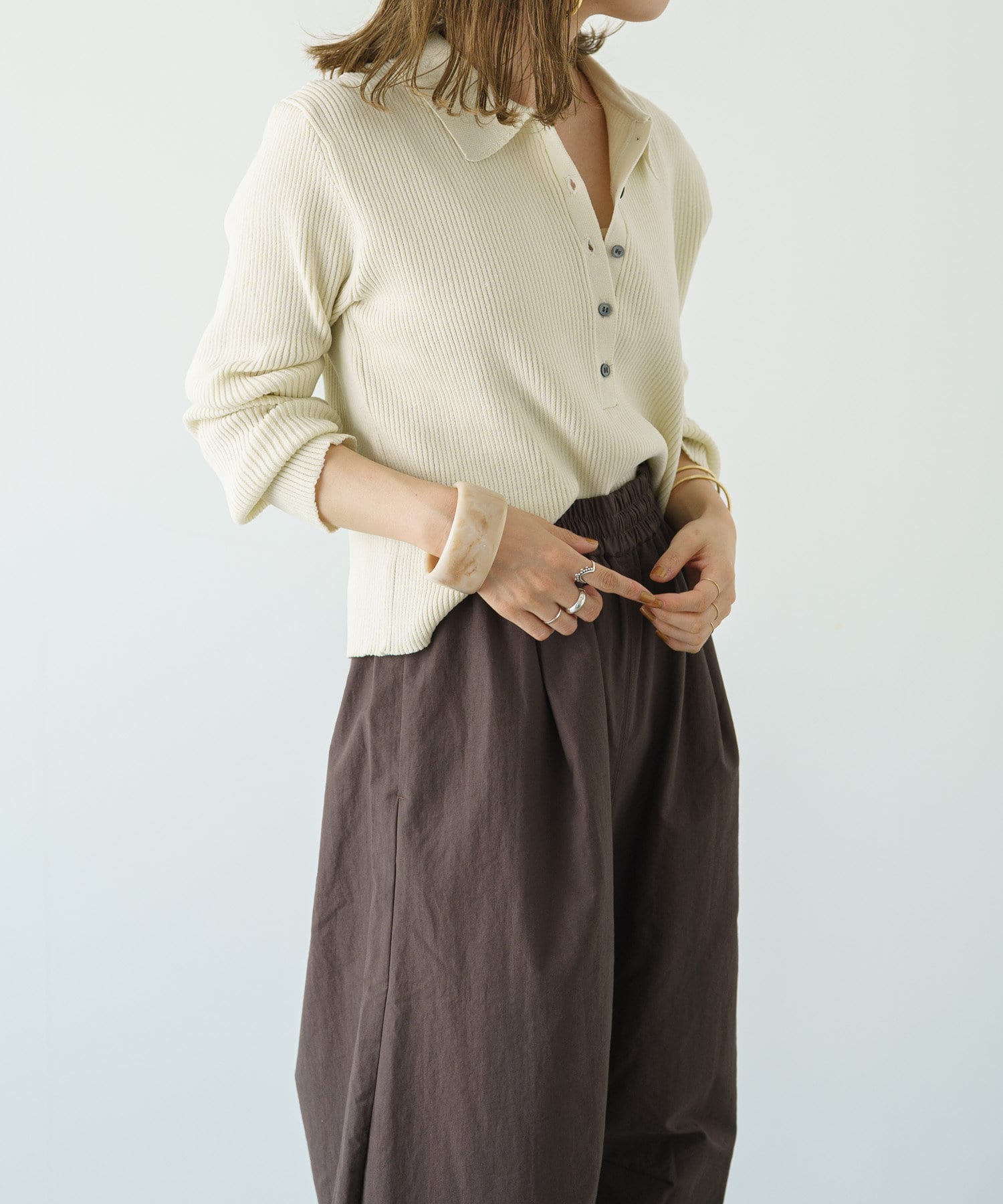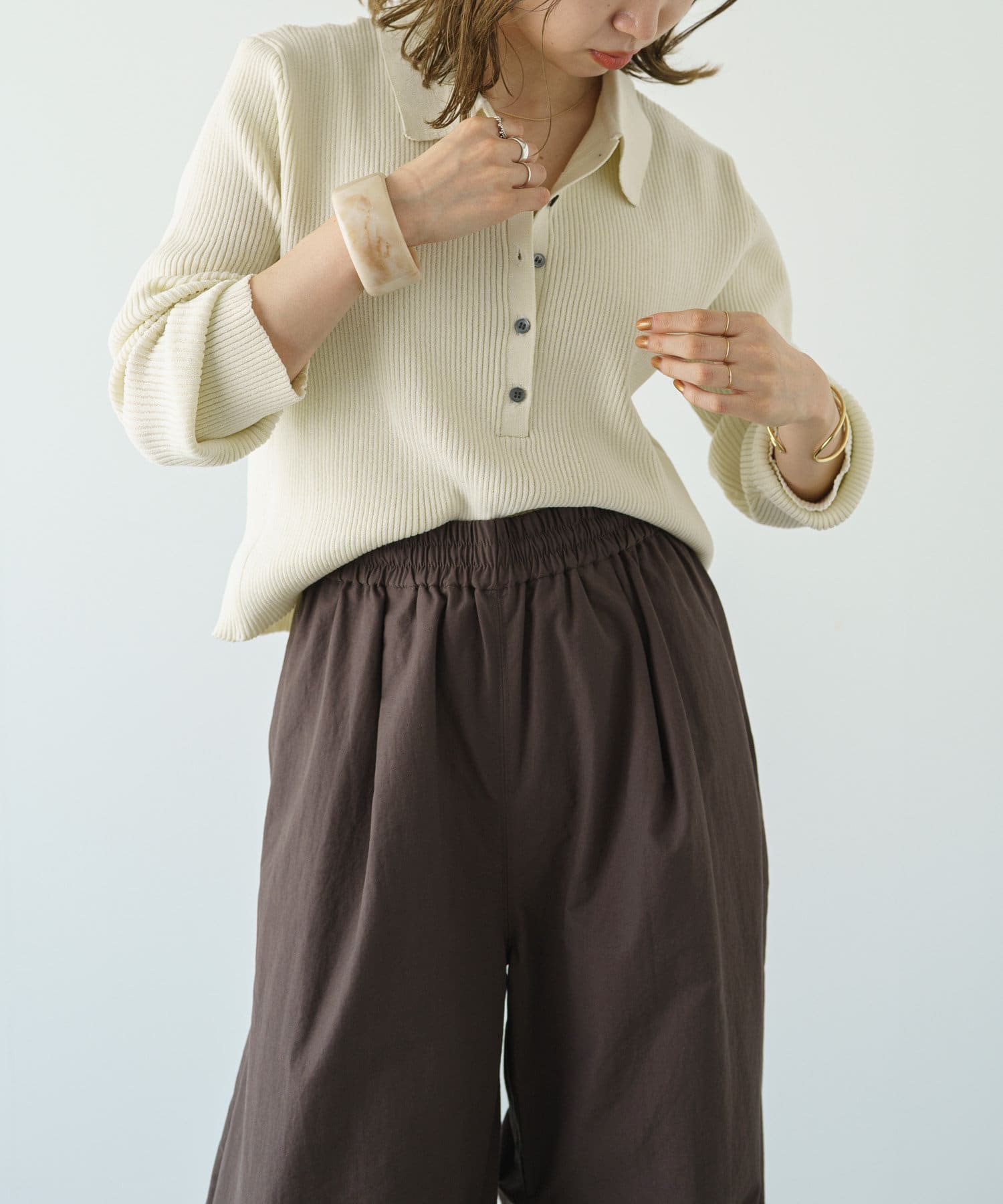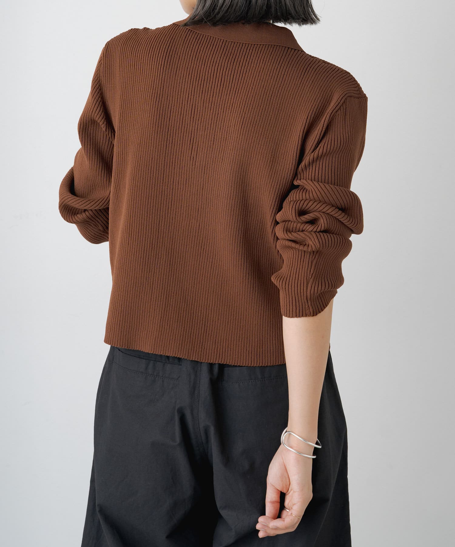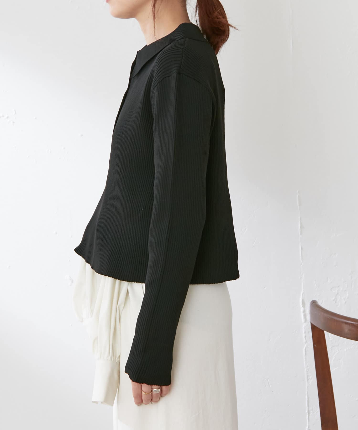 ・伸縮性のあるリブの編地がボディラインに程よくフィット。上半身をすっきりと見せてくれます。