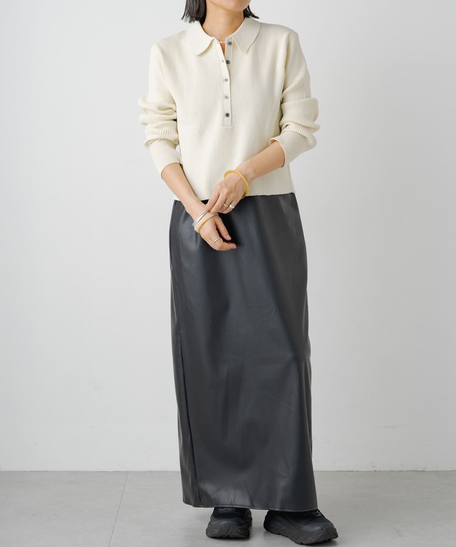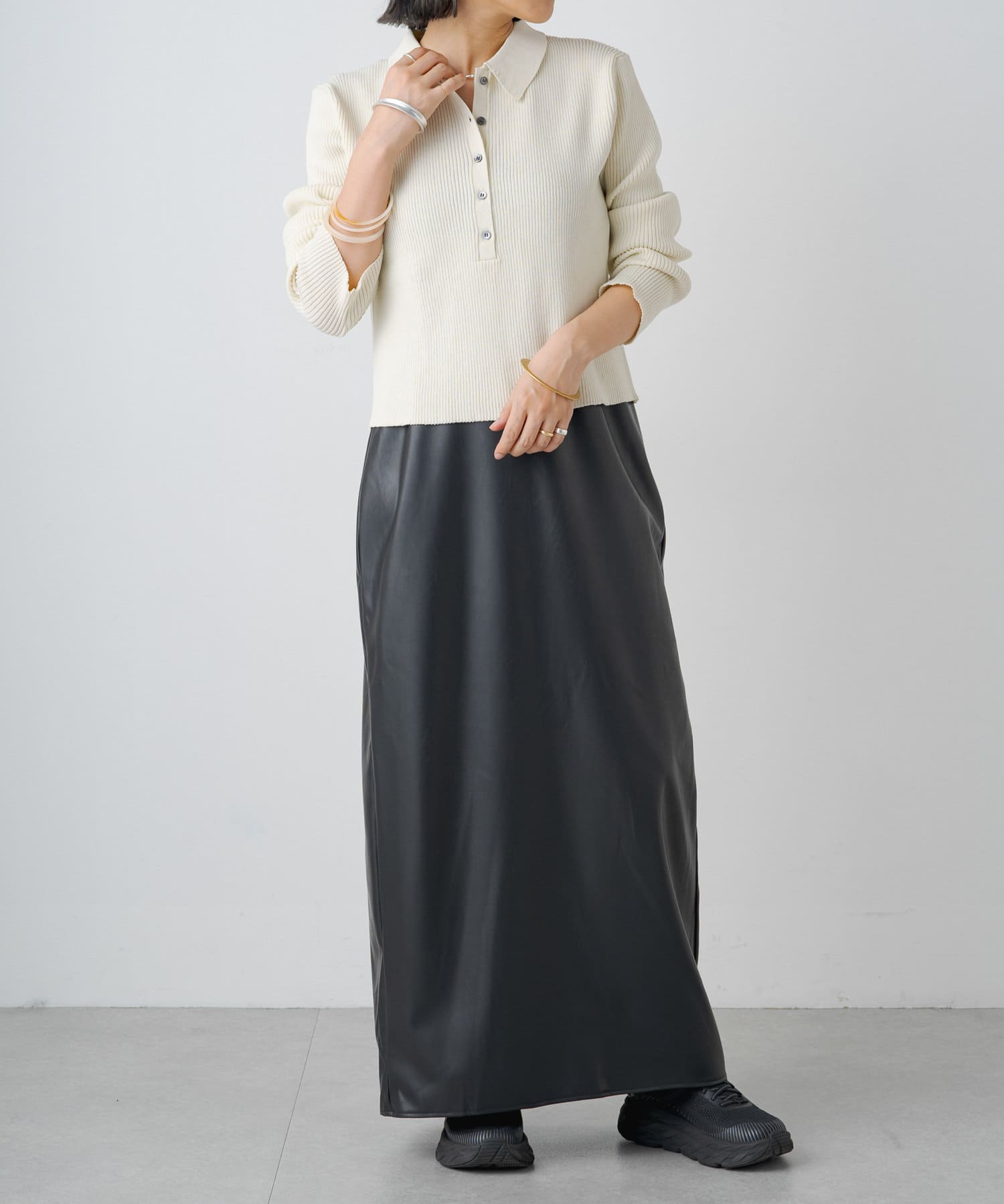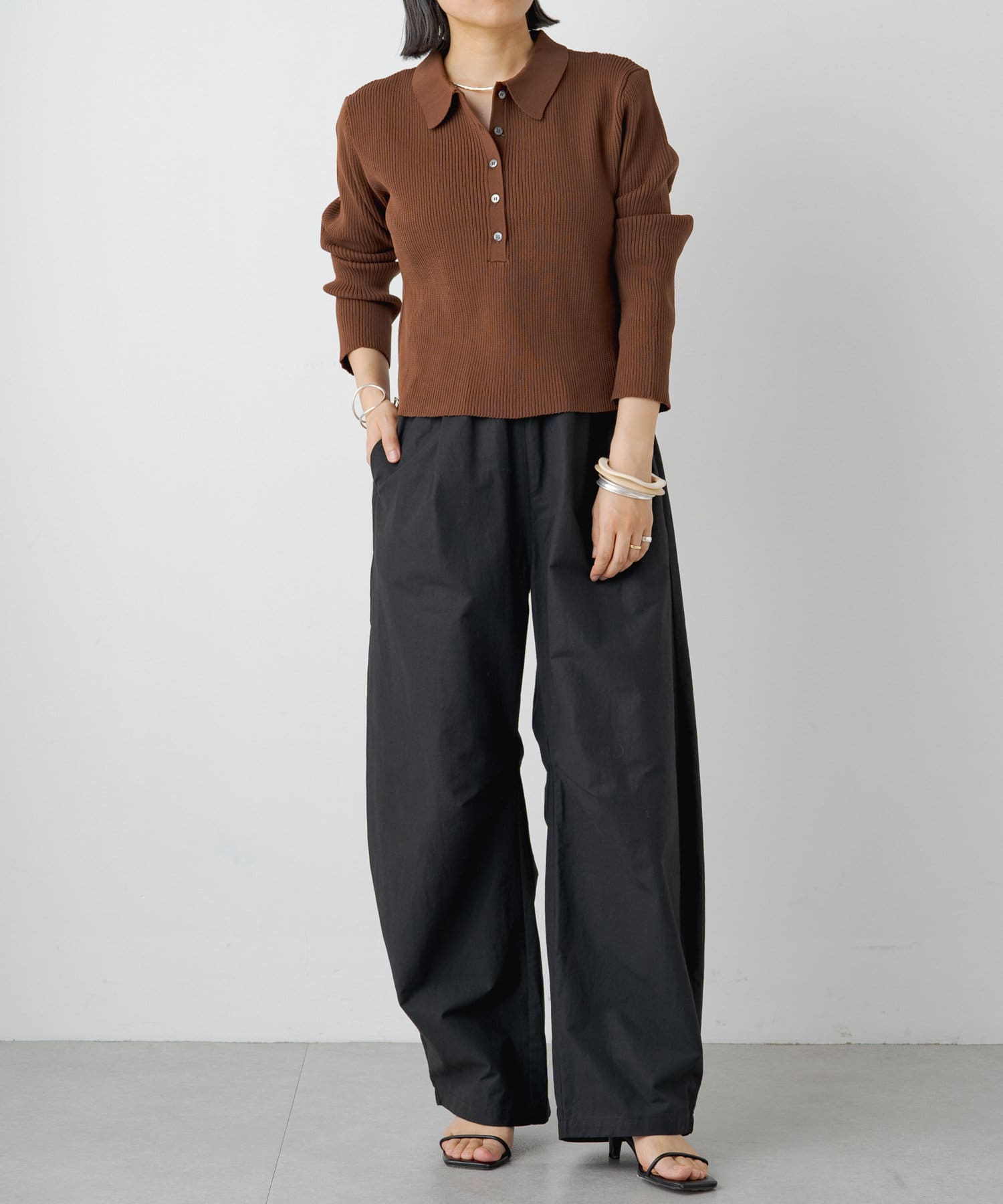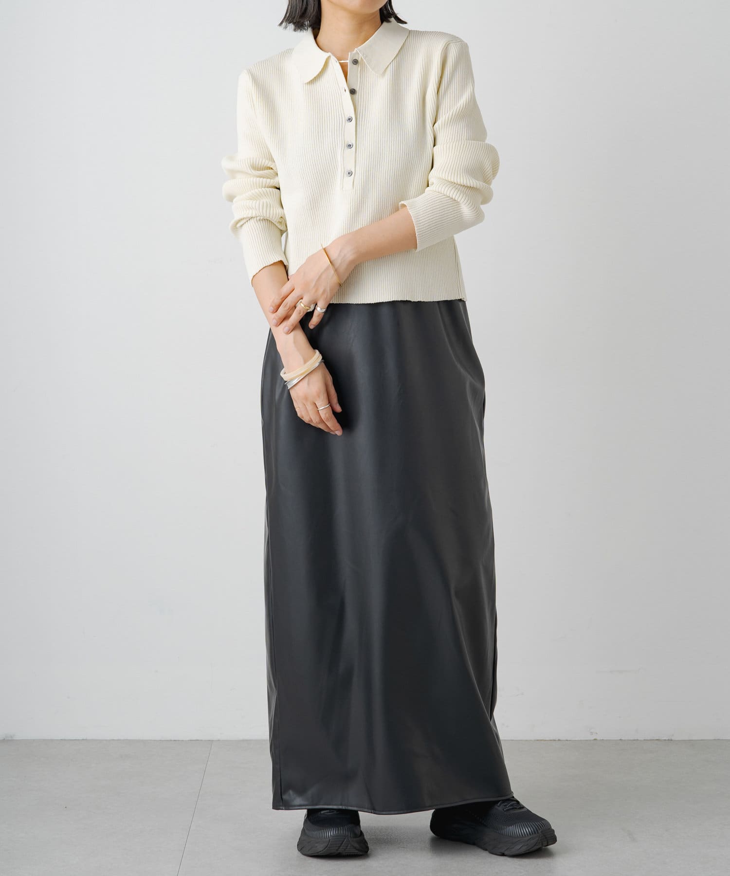 ・伸縮性のあるリブの編地がボディラインに程よくフィット。上半身をすっきりと見せてくれます。