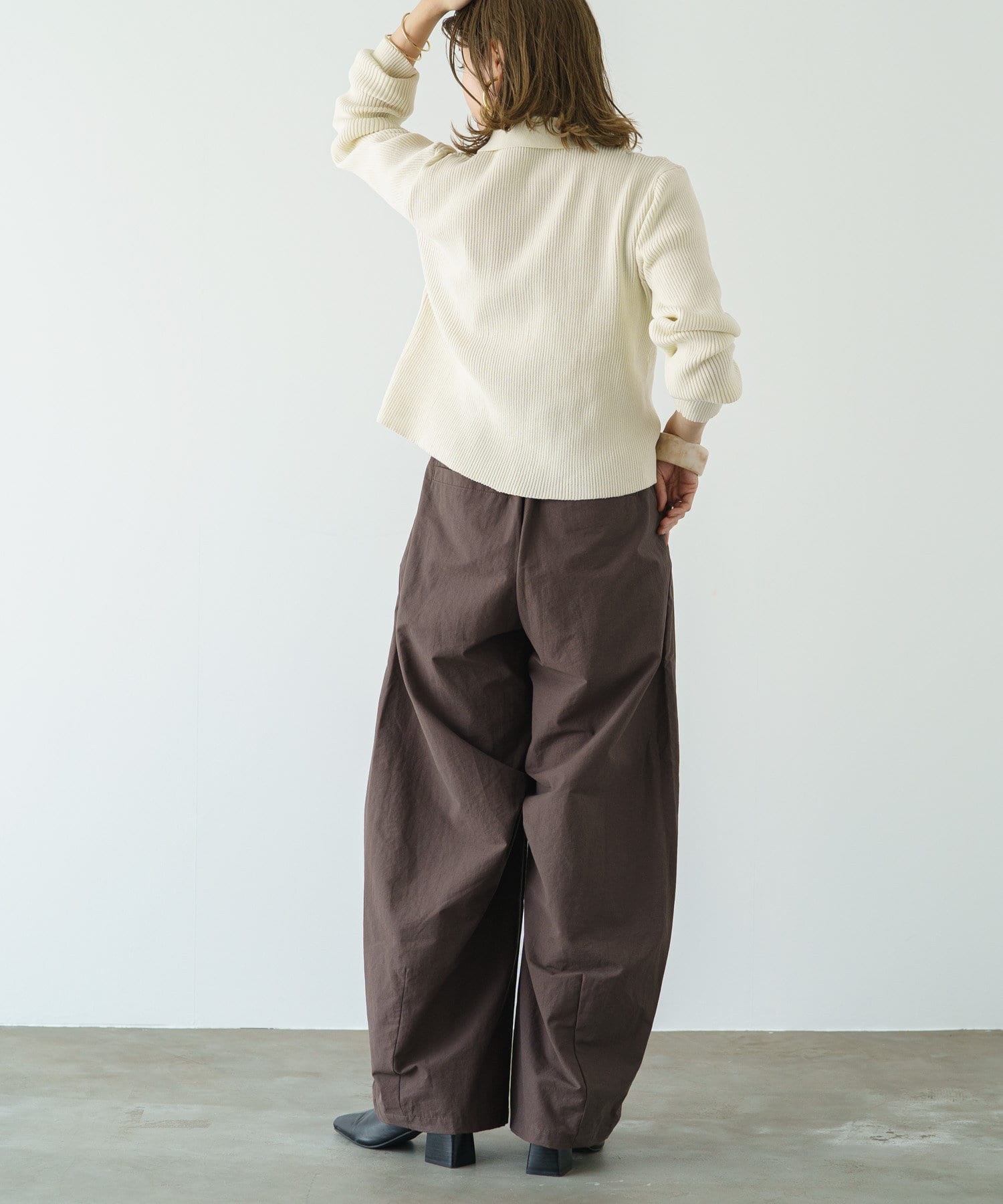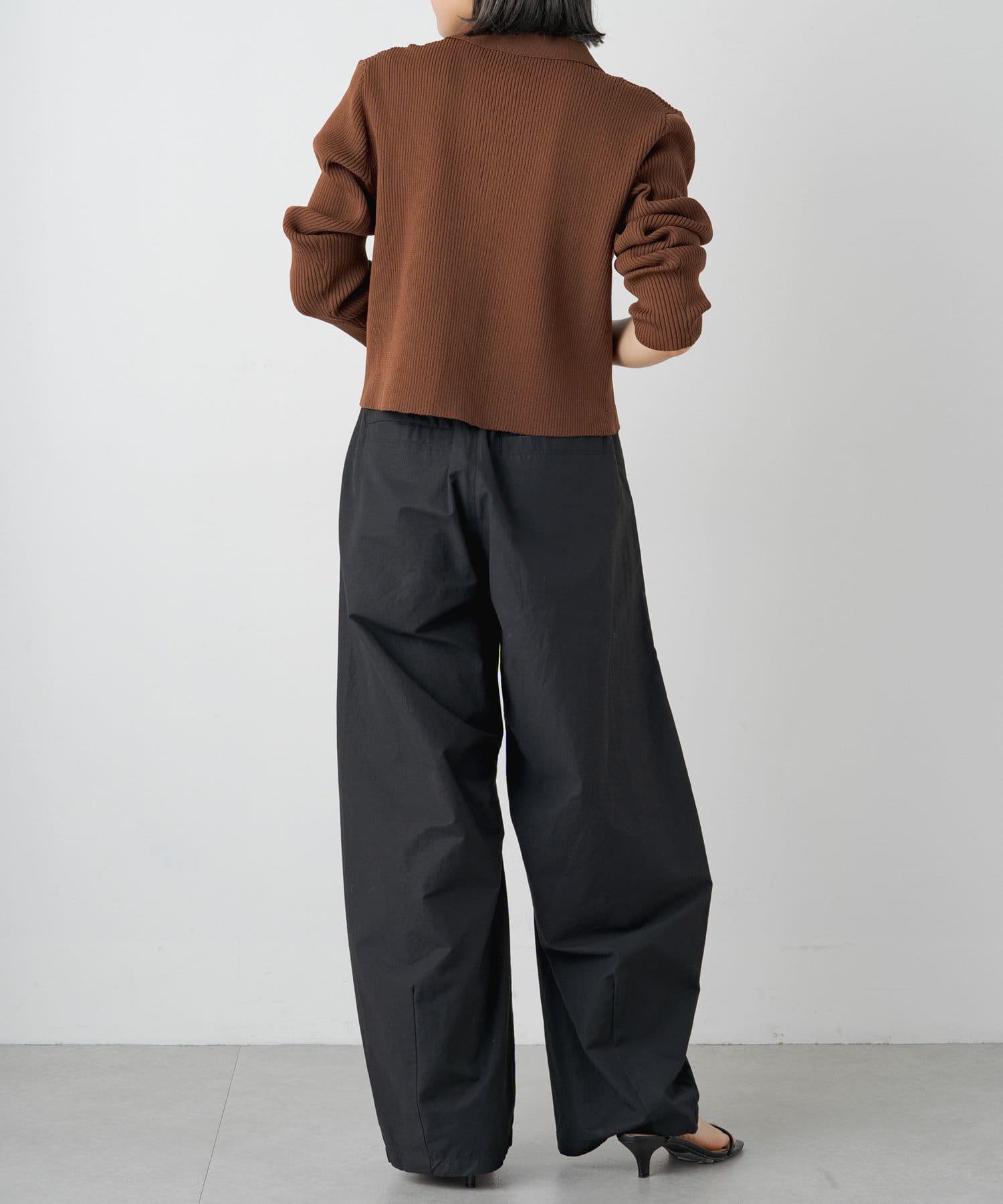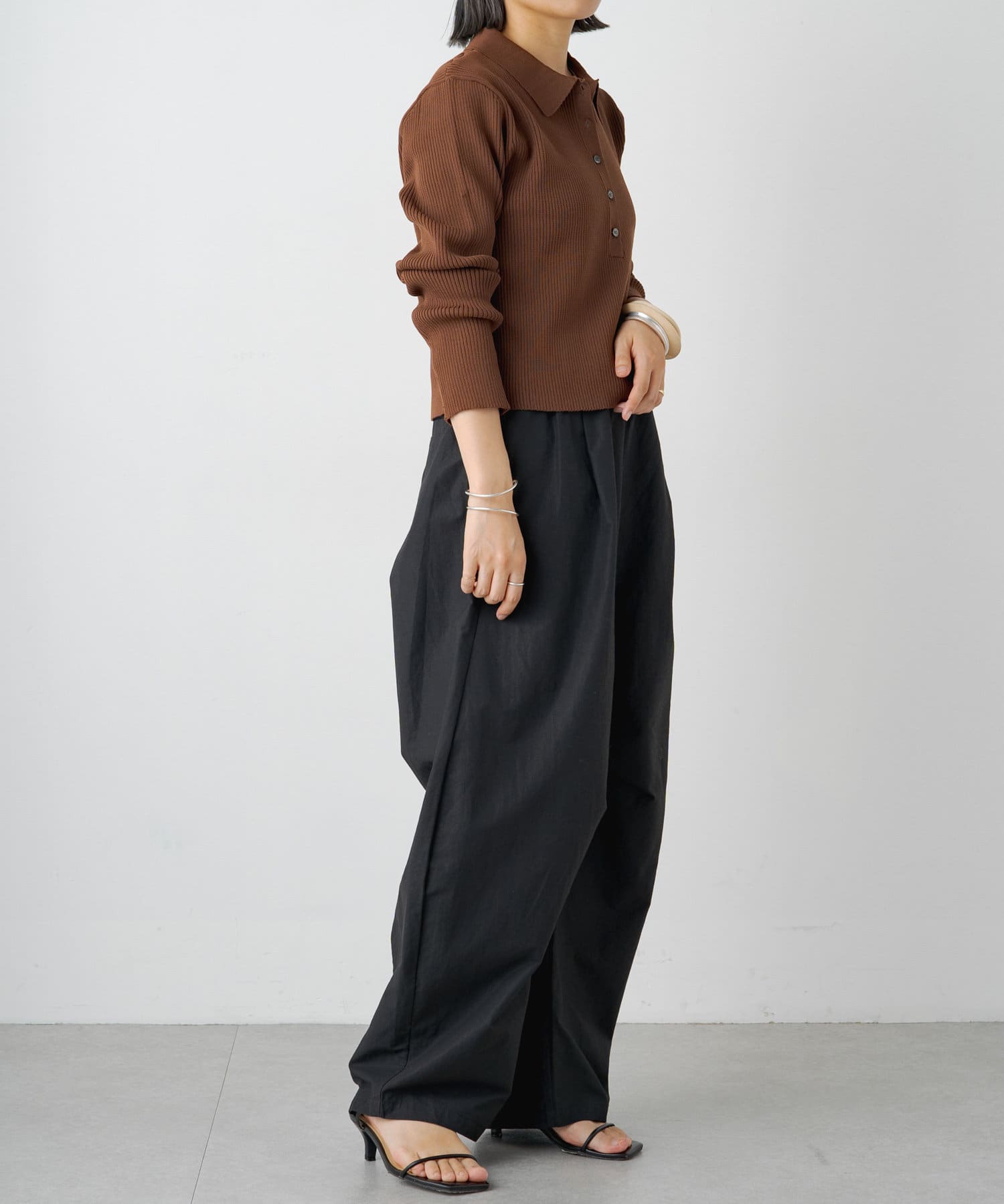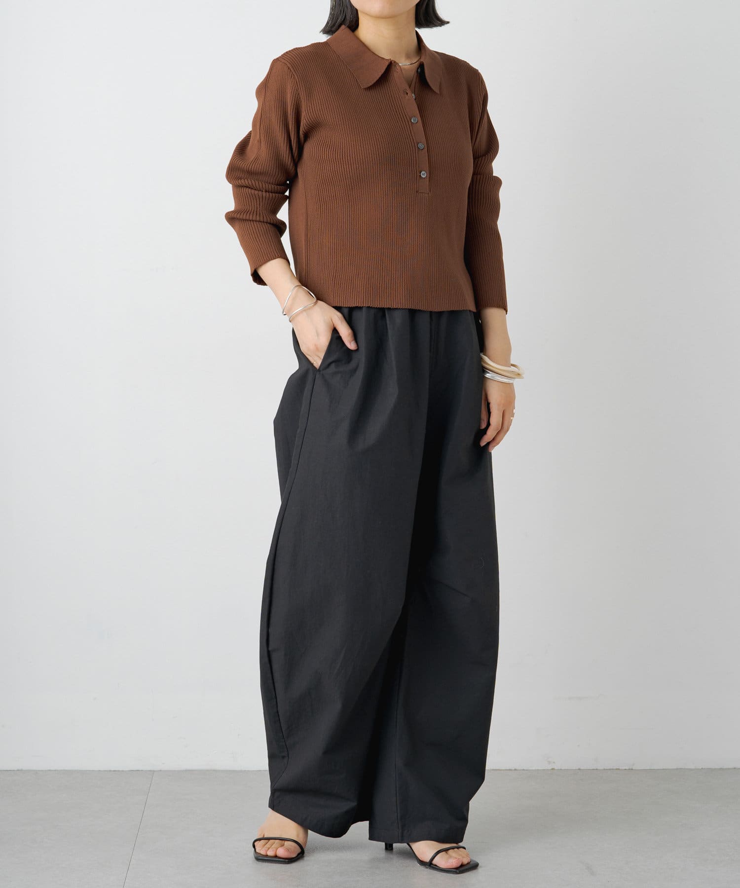 ・伸縮性のあるリブの編地がボディラインに程よくフィット。上半身をすっきりと見せてくれます。