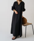 ・襟ぐりにはホックが付いているので、首回りのあき具合も調整していただけます。Vあきで着ていただくとより大人な洗練された印象に。
