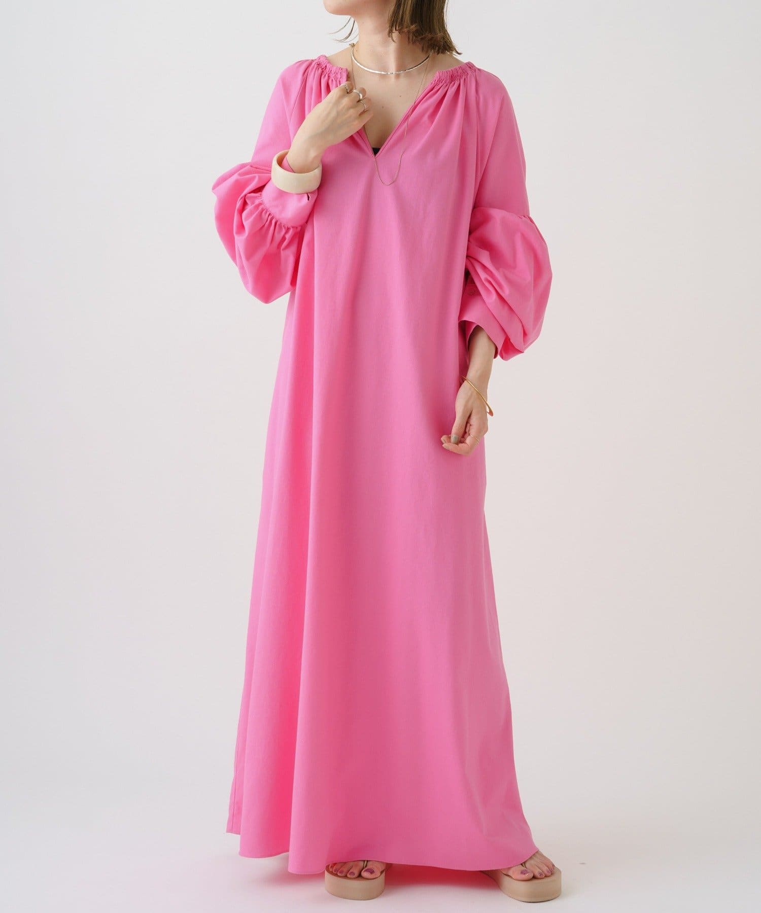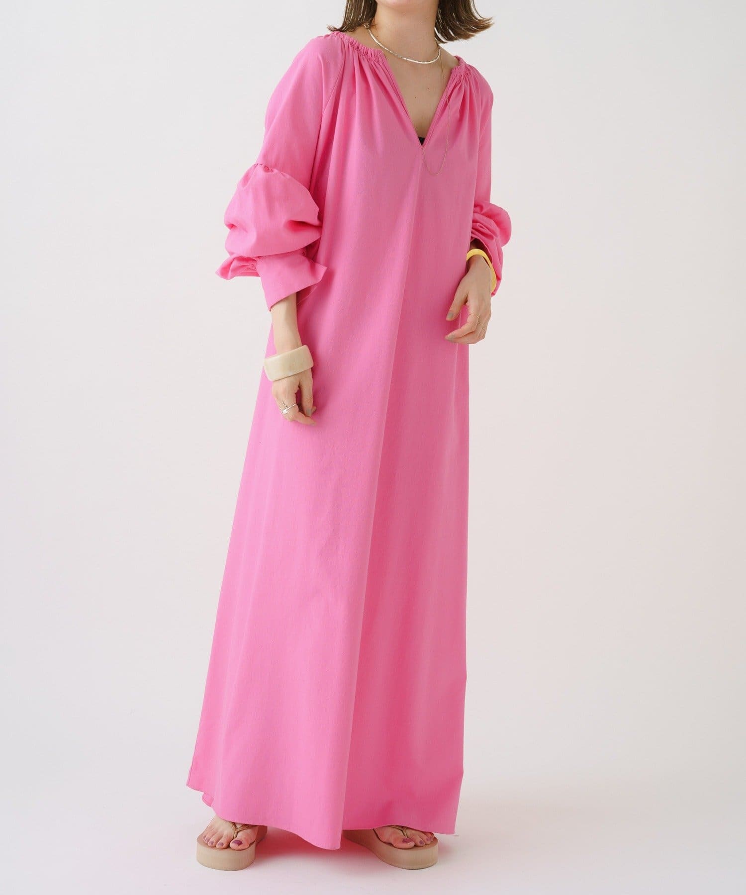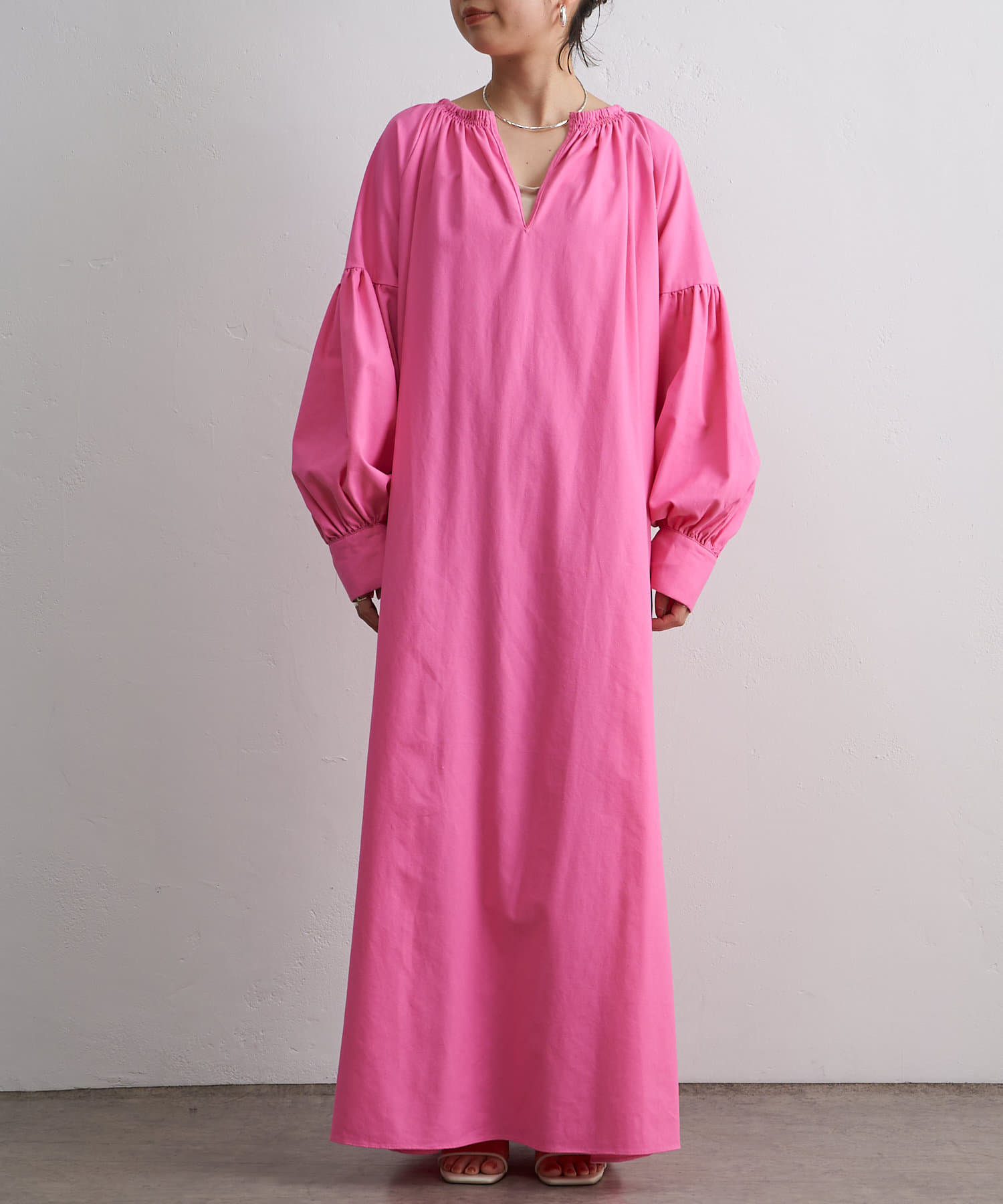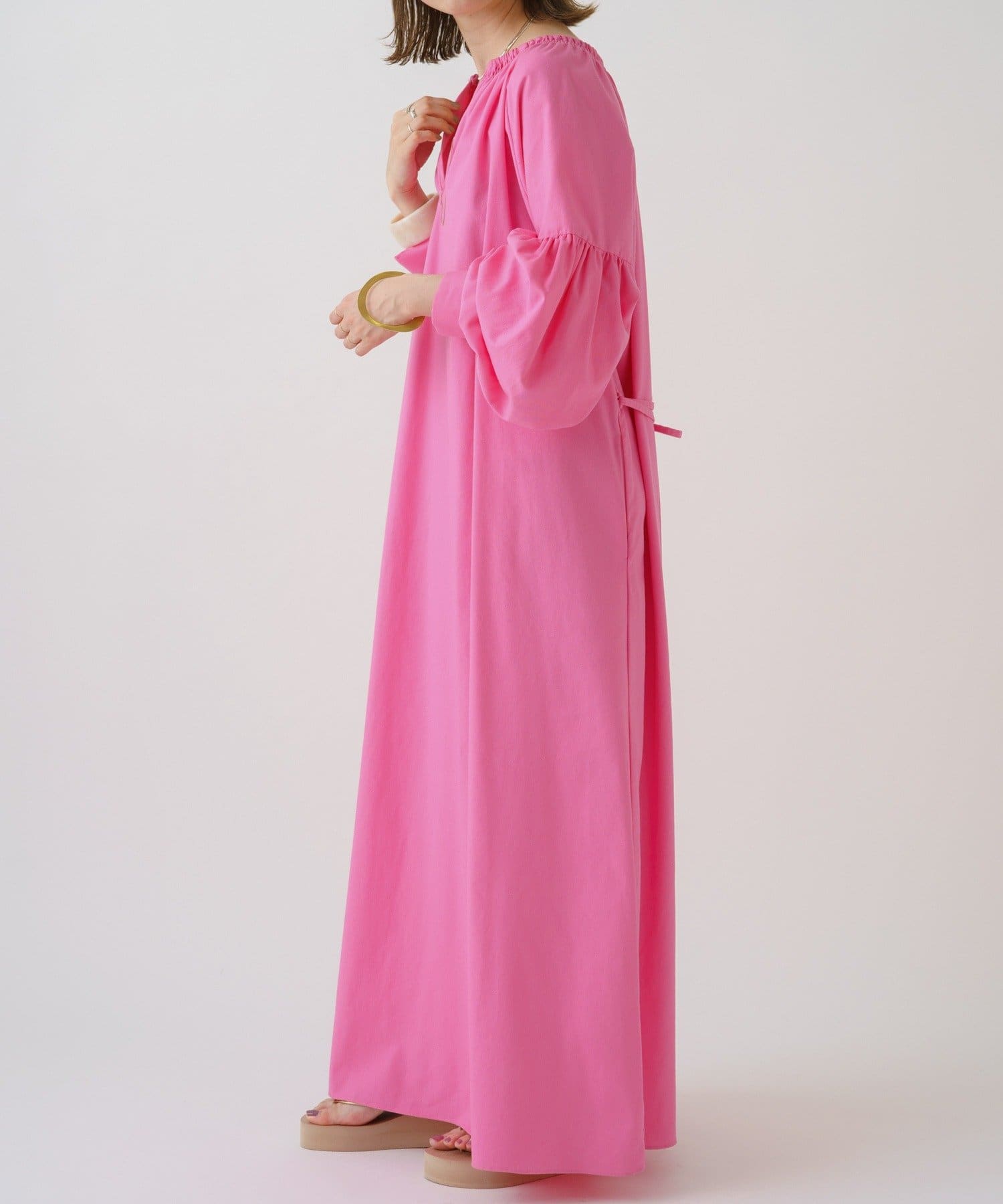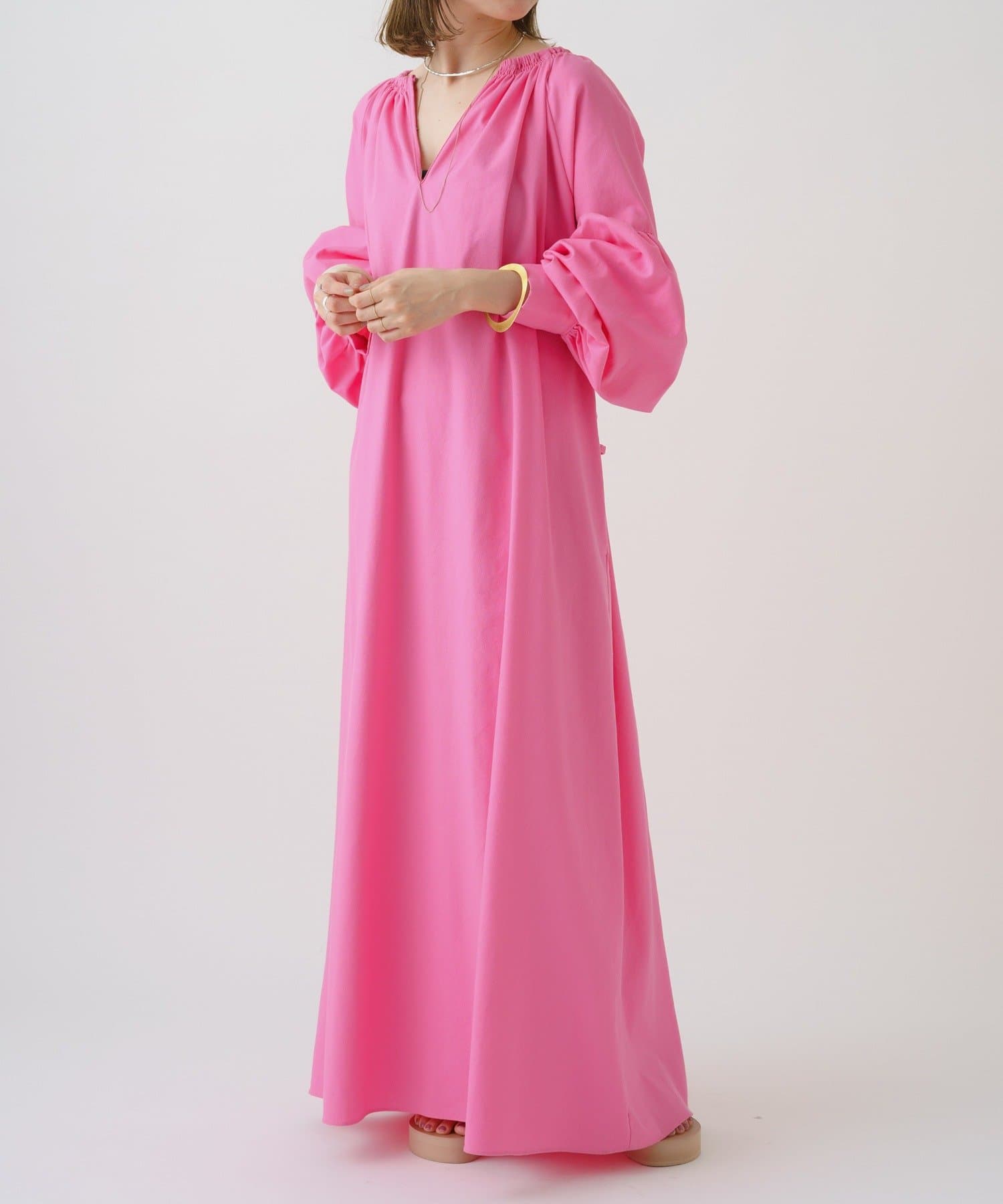 【WEB限定カラーのピンク】シンプルながら、一枚で華やかに決めてくれるワンピース