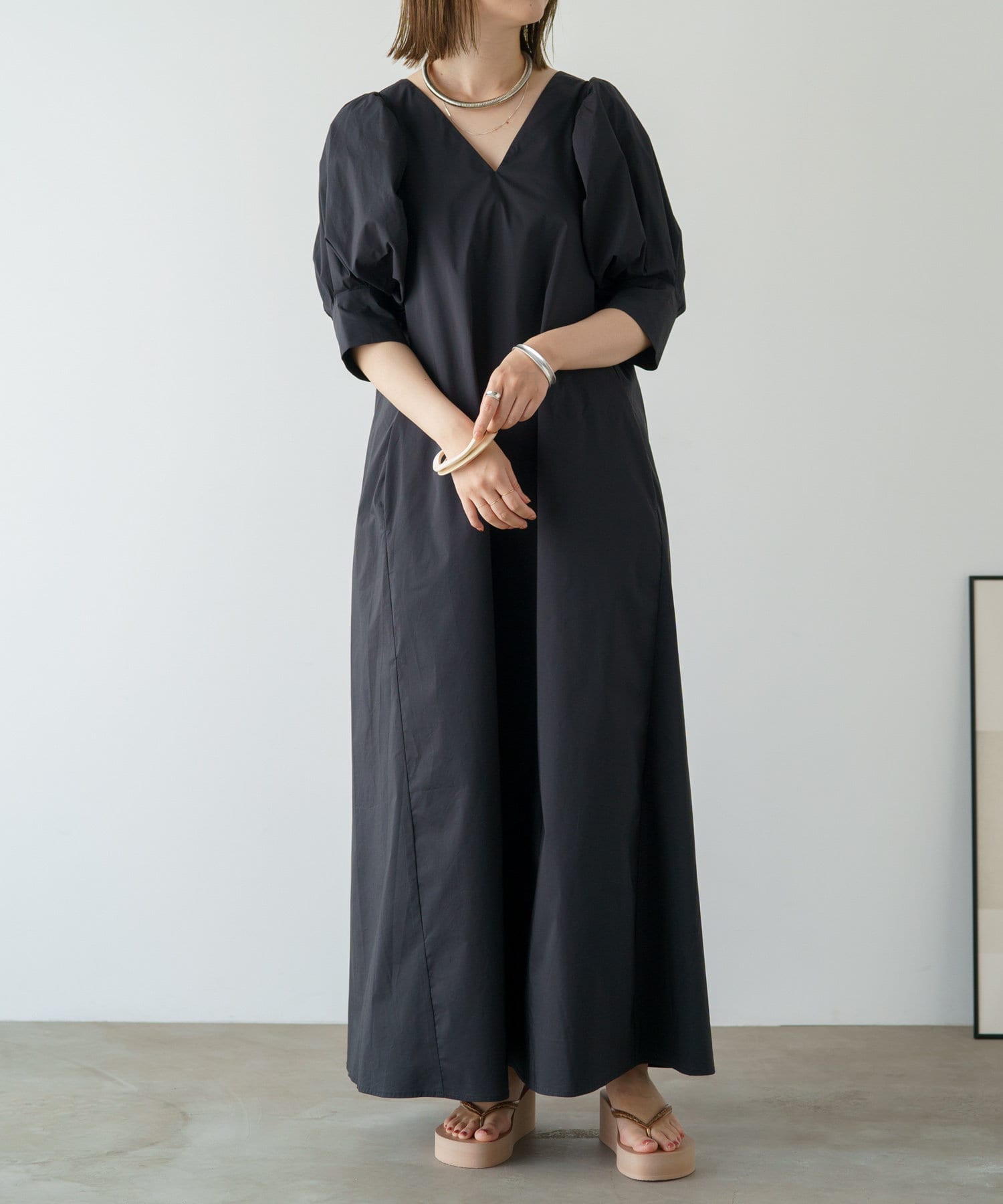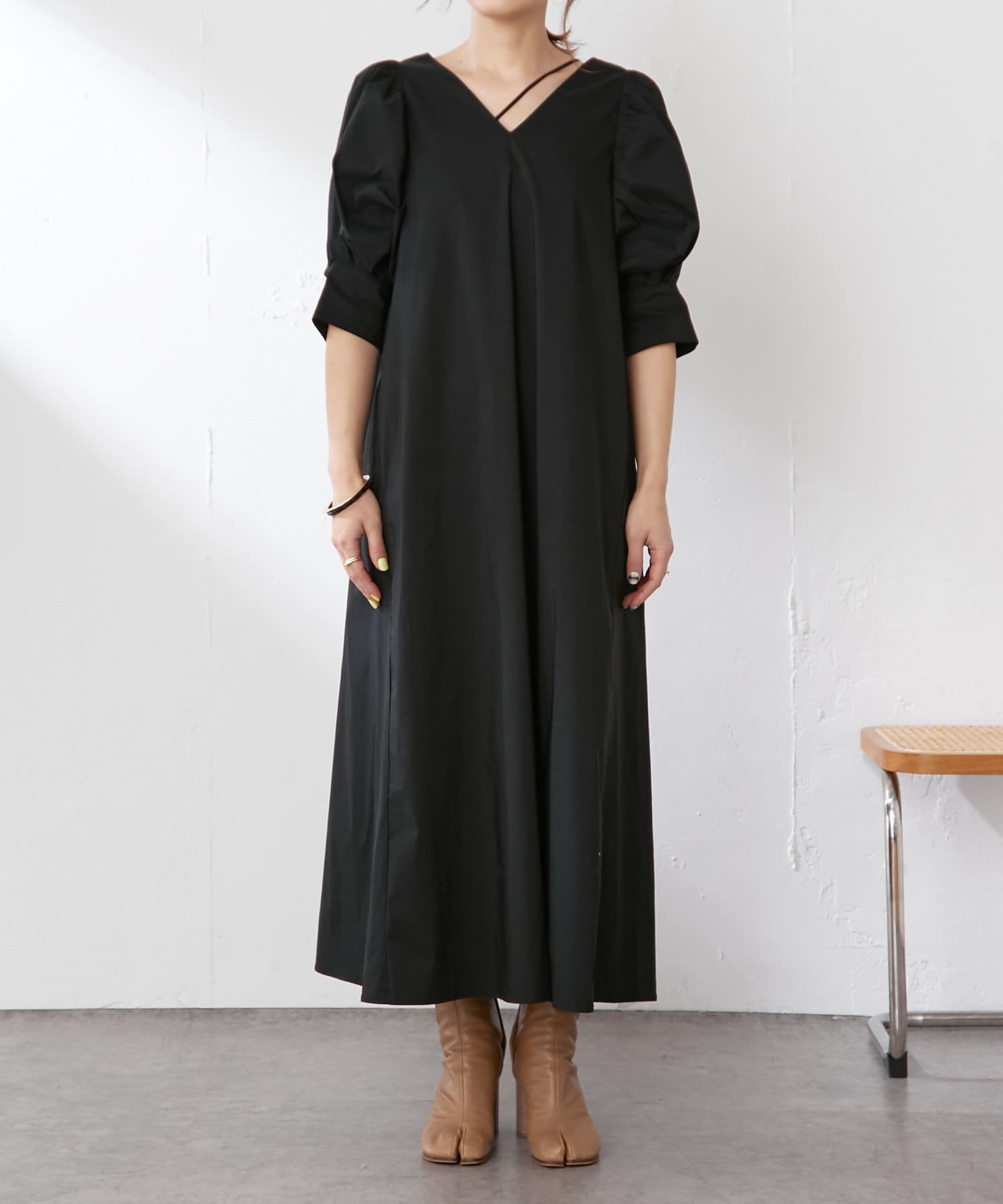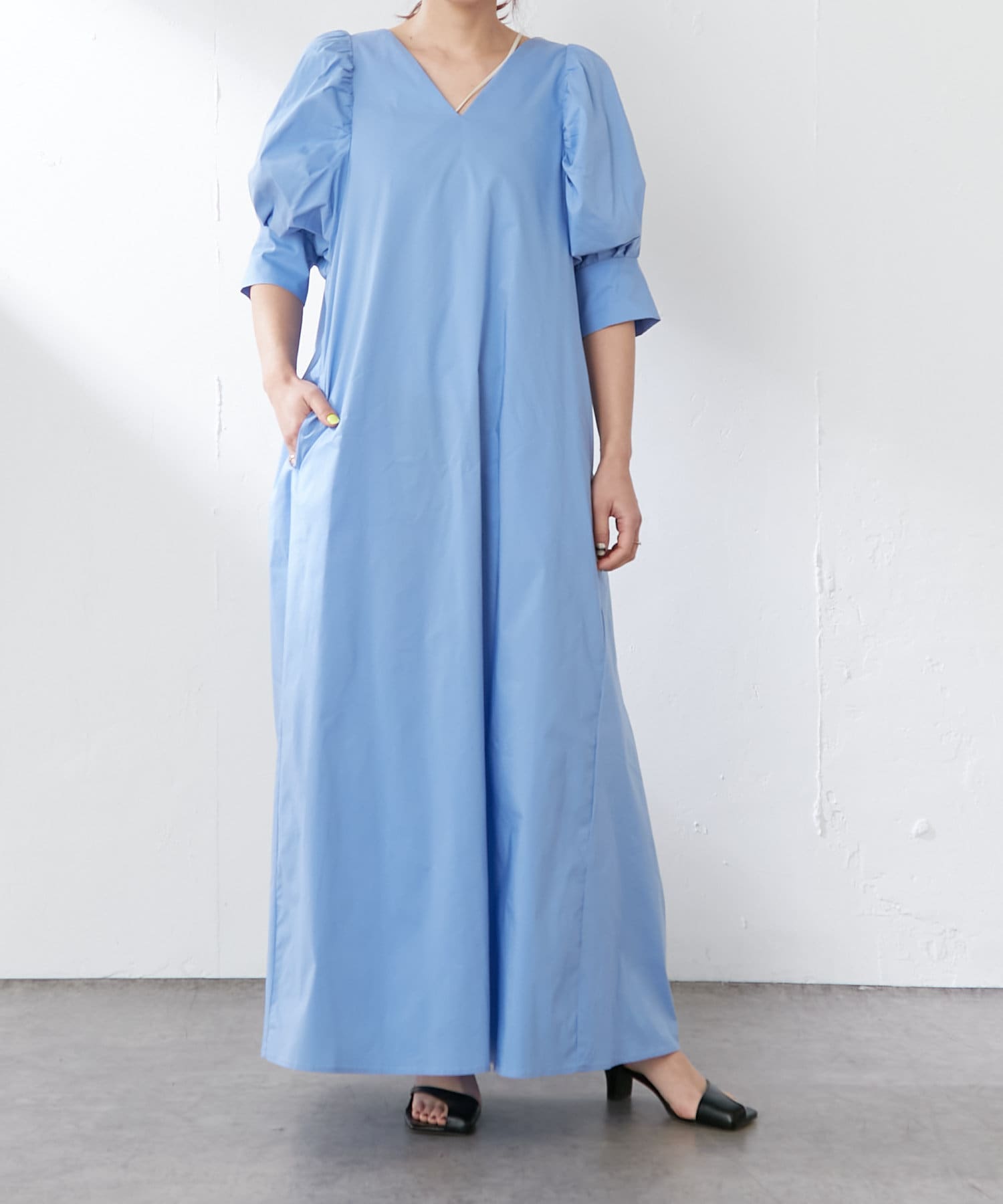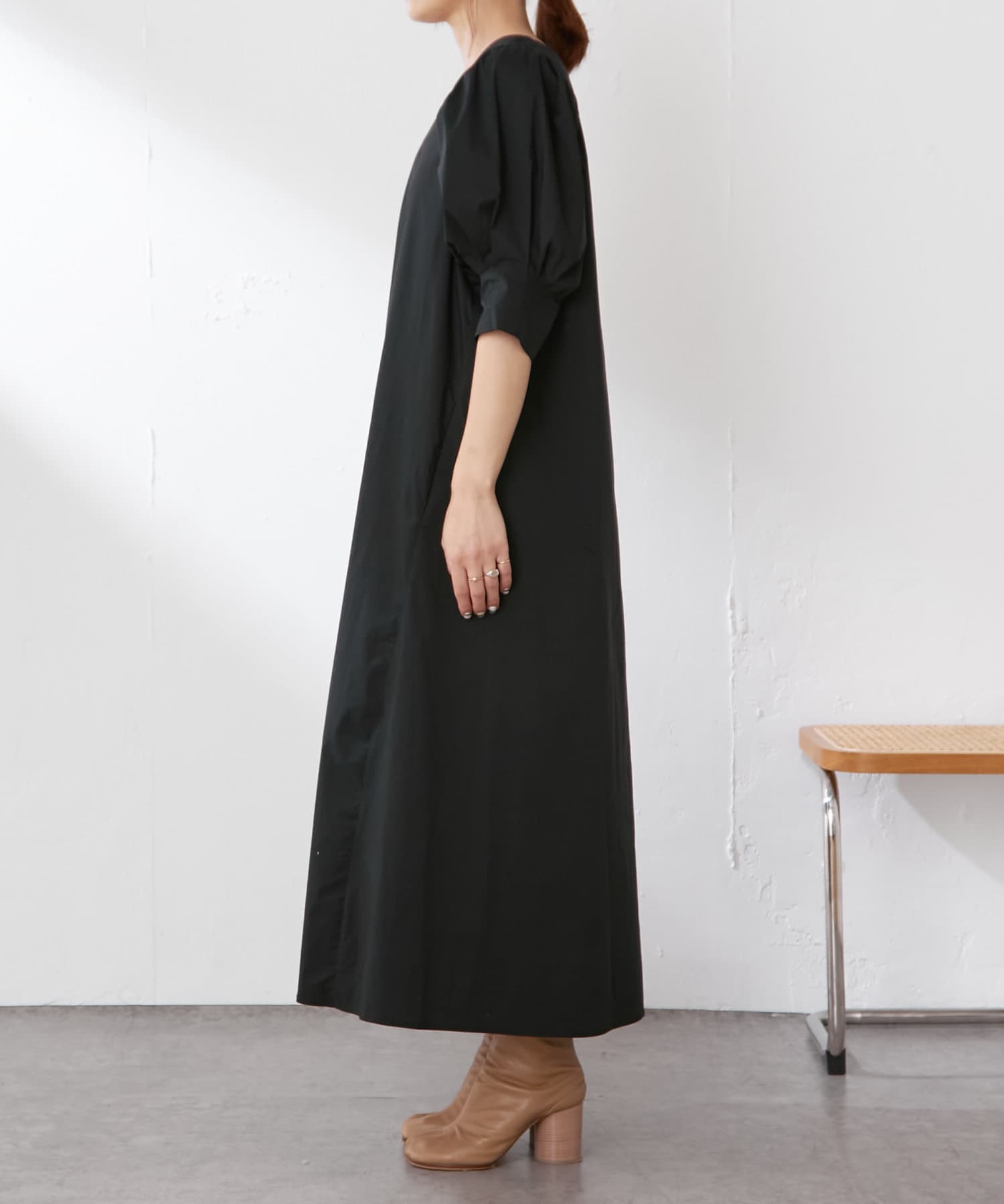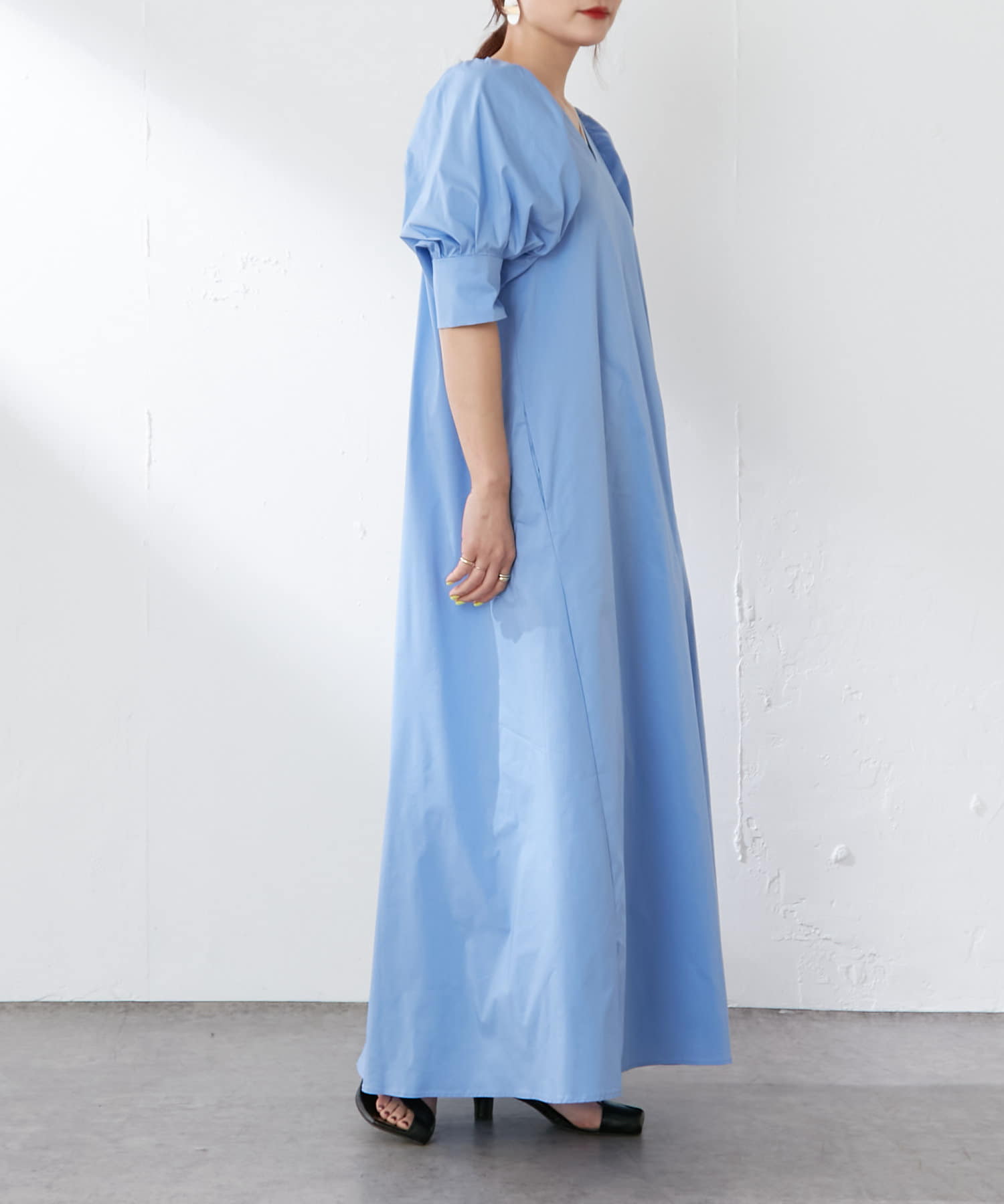 ・袖のタック+ギャザーのボリューム感と肩のバランスに拘り、身体を華奢に見せてくれます。