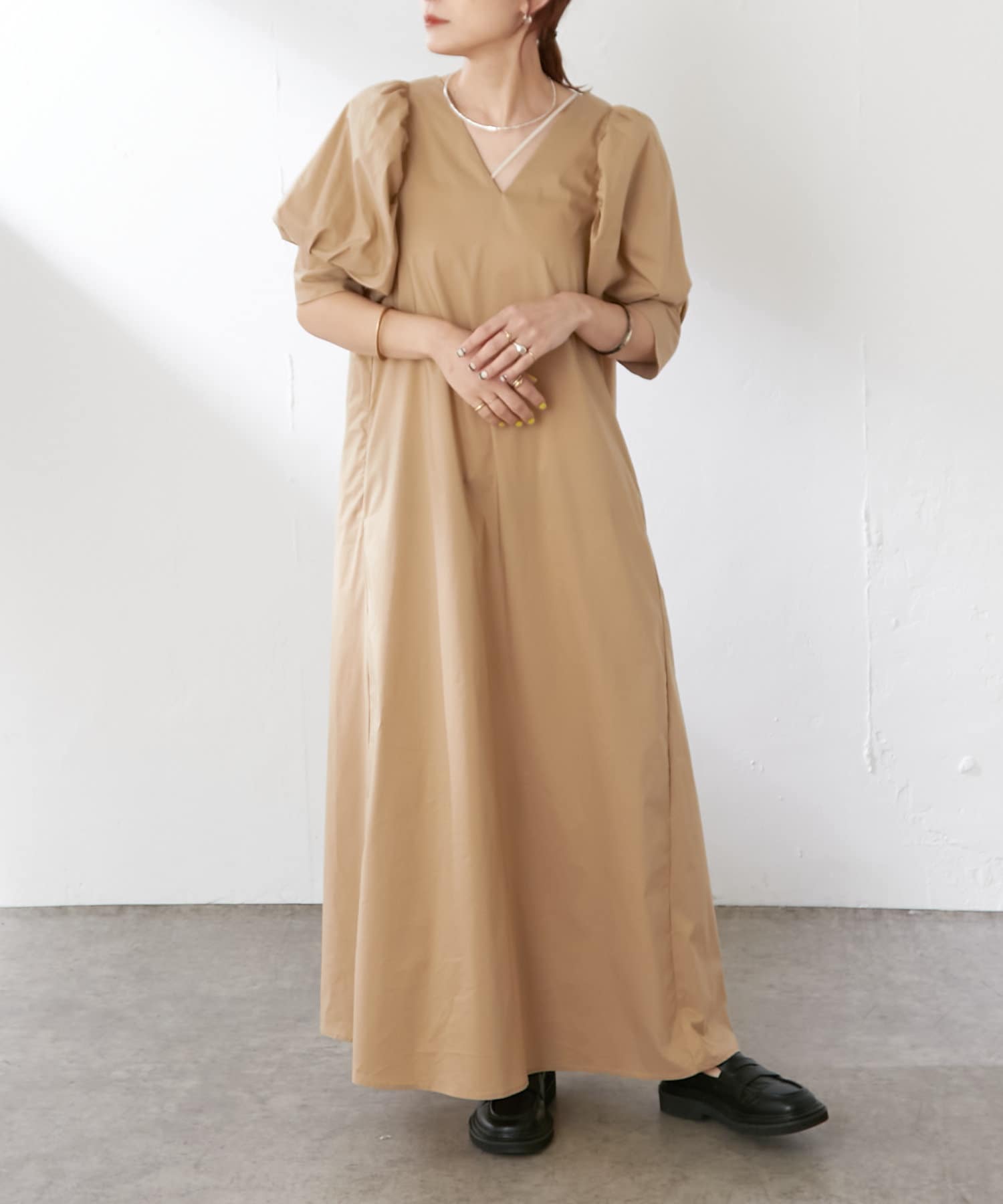 ・足元はフラットサンダルを合わせたり、あえてスニーカー合わせでも素敵な着こなしに仕上げてくれます。